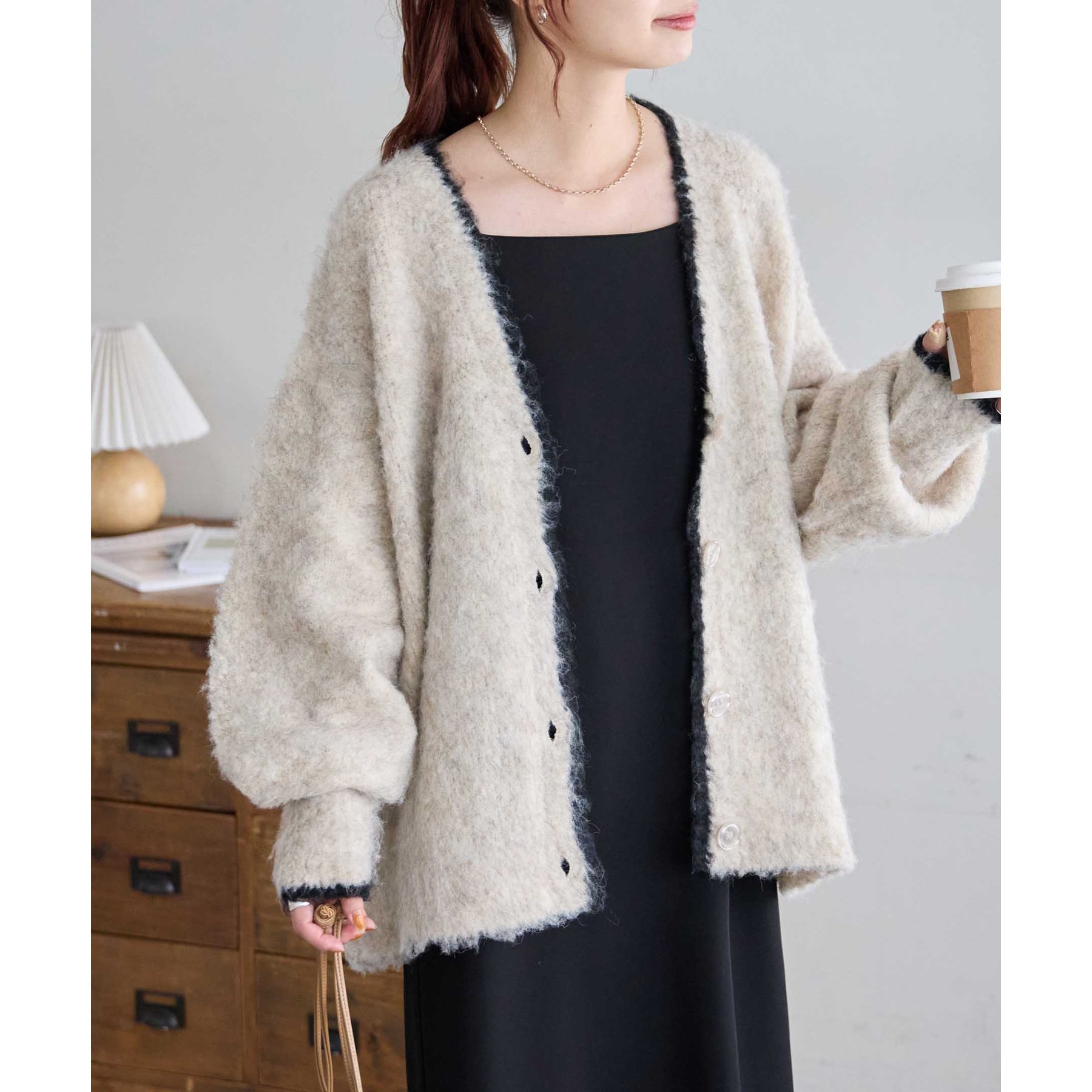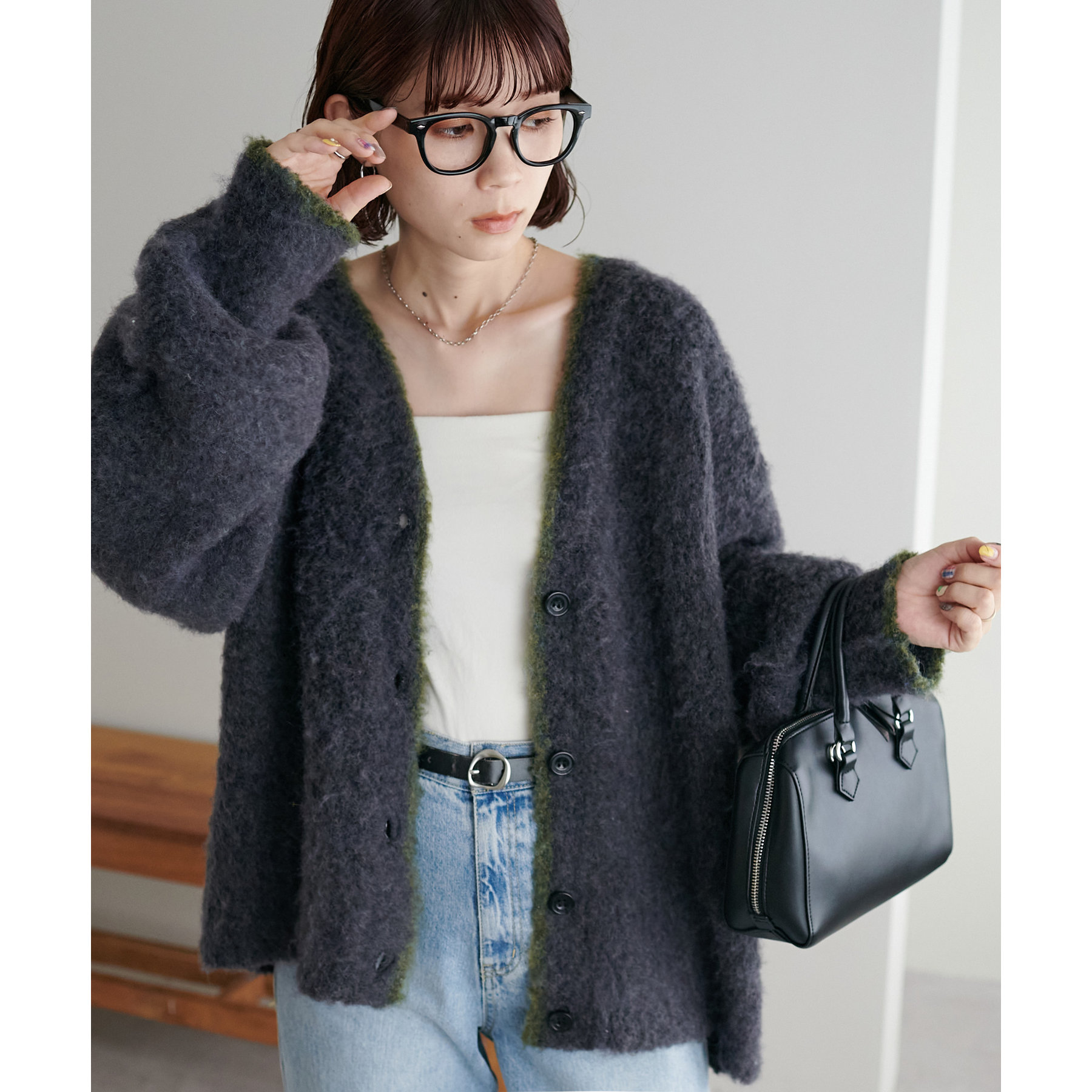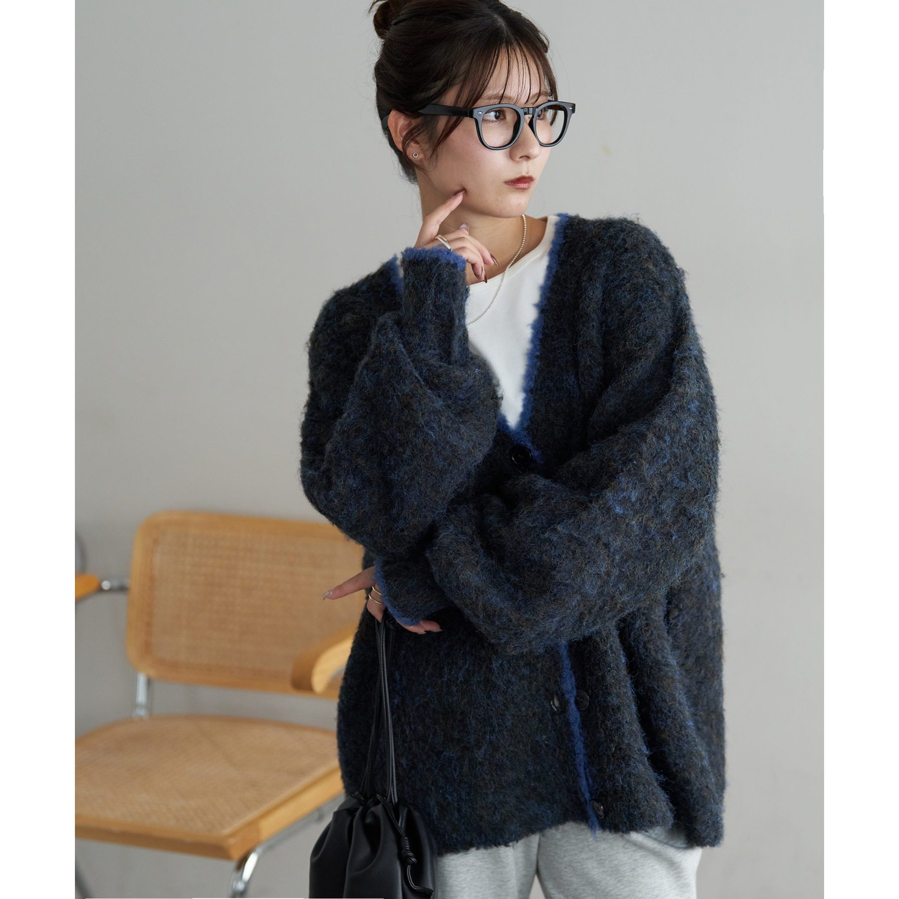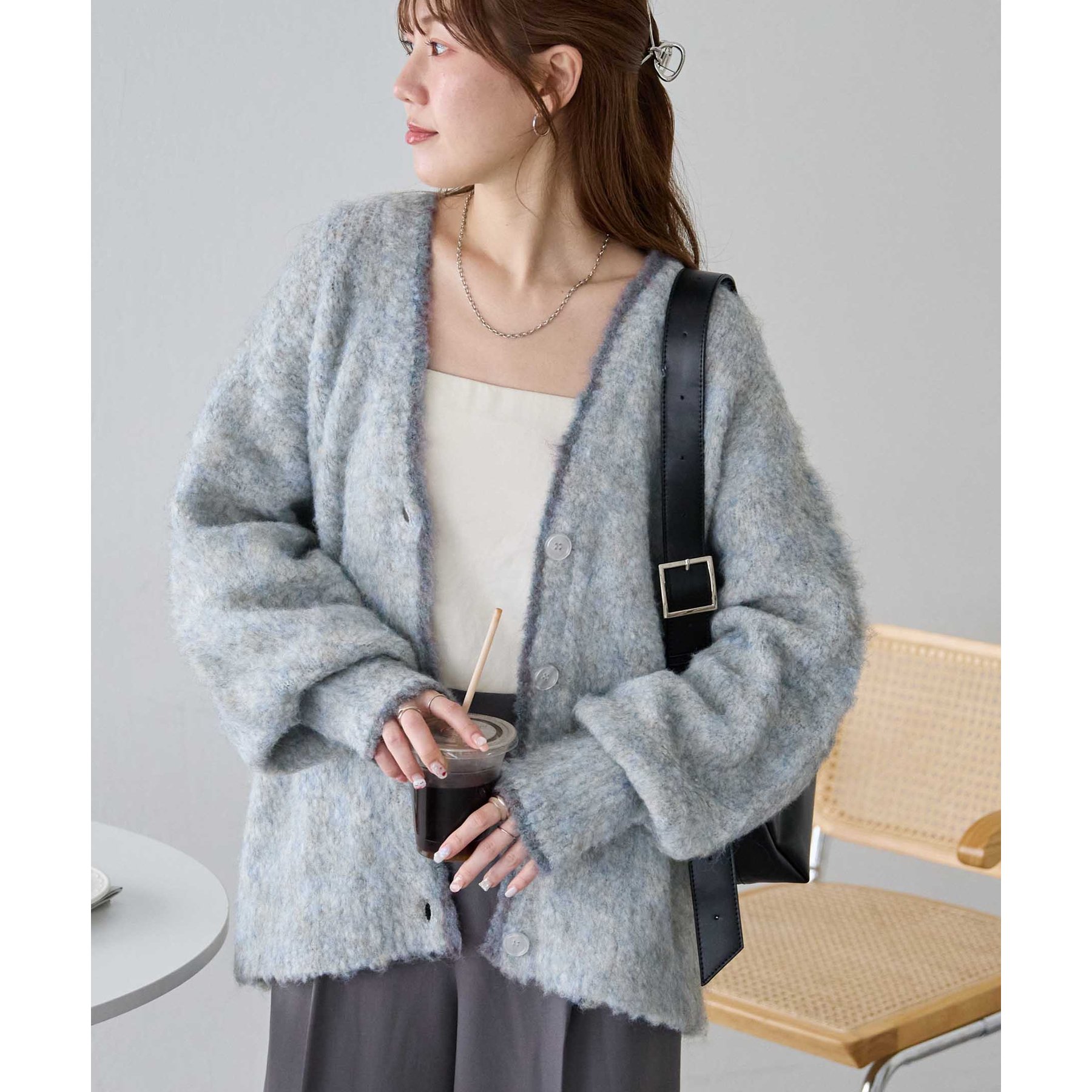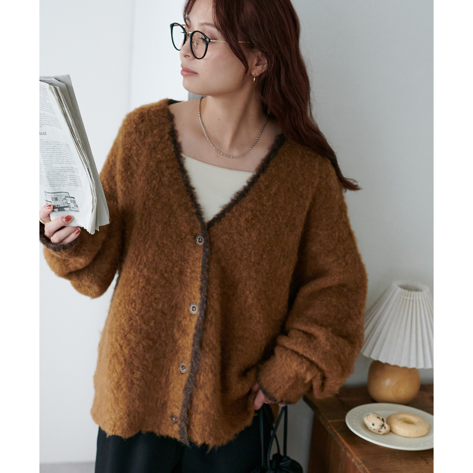 【新色追加!/WEB限定】MIXブークレシャギー配色Vネックカーディガン