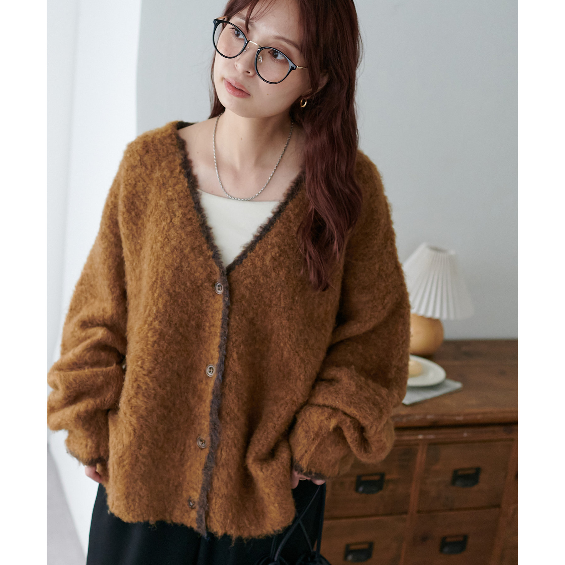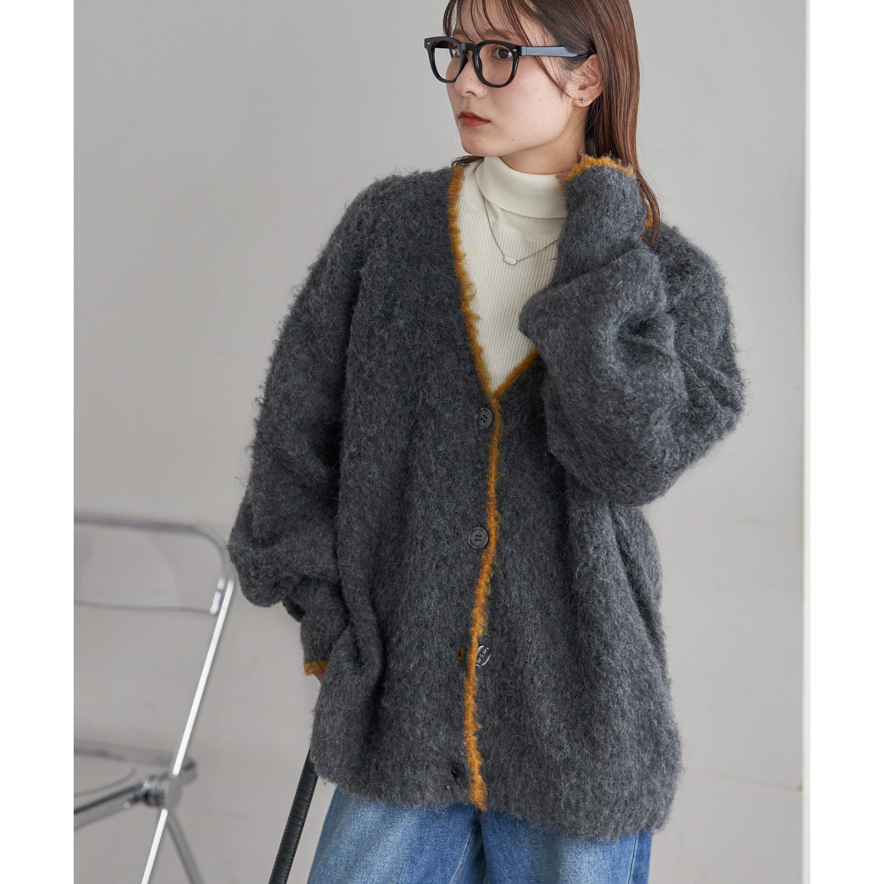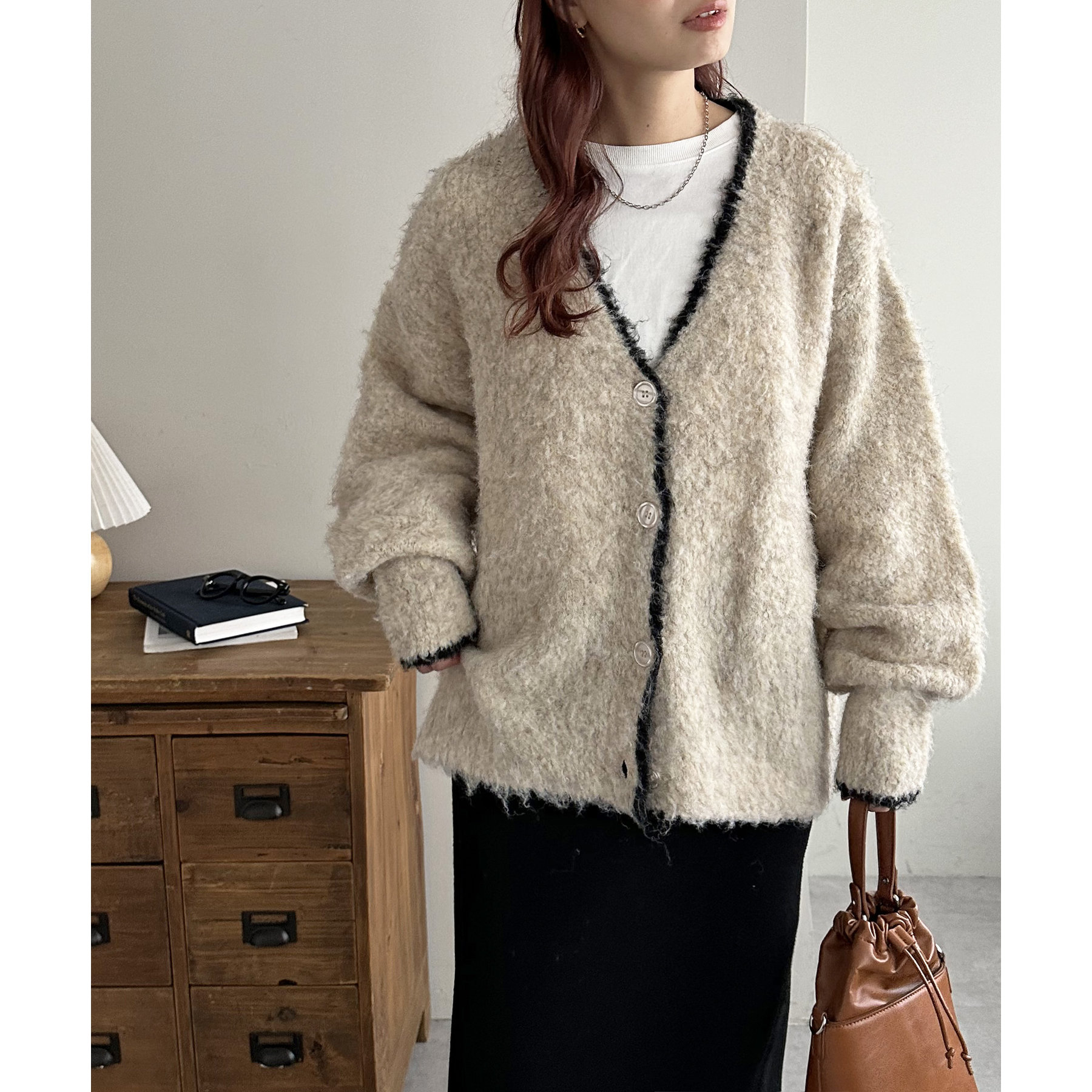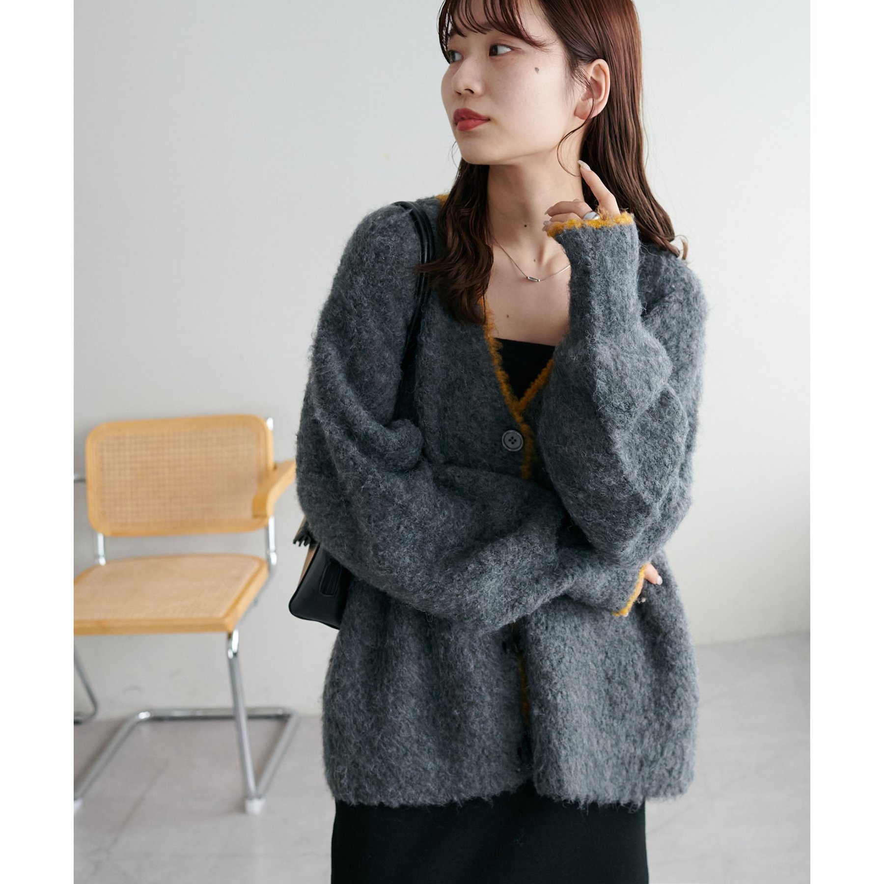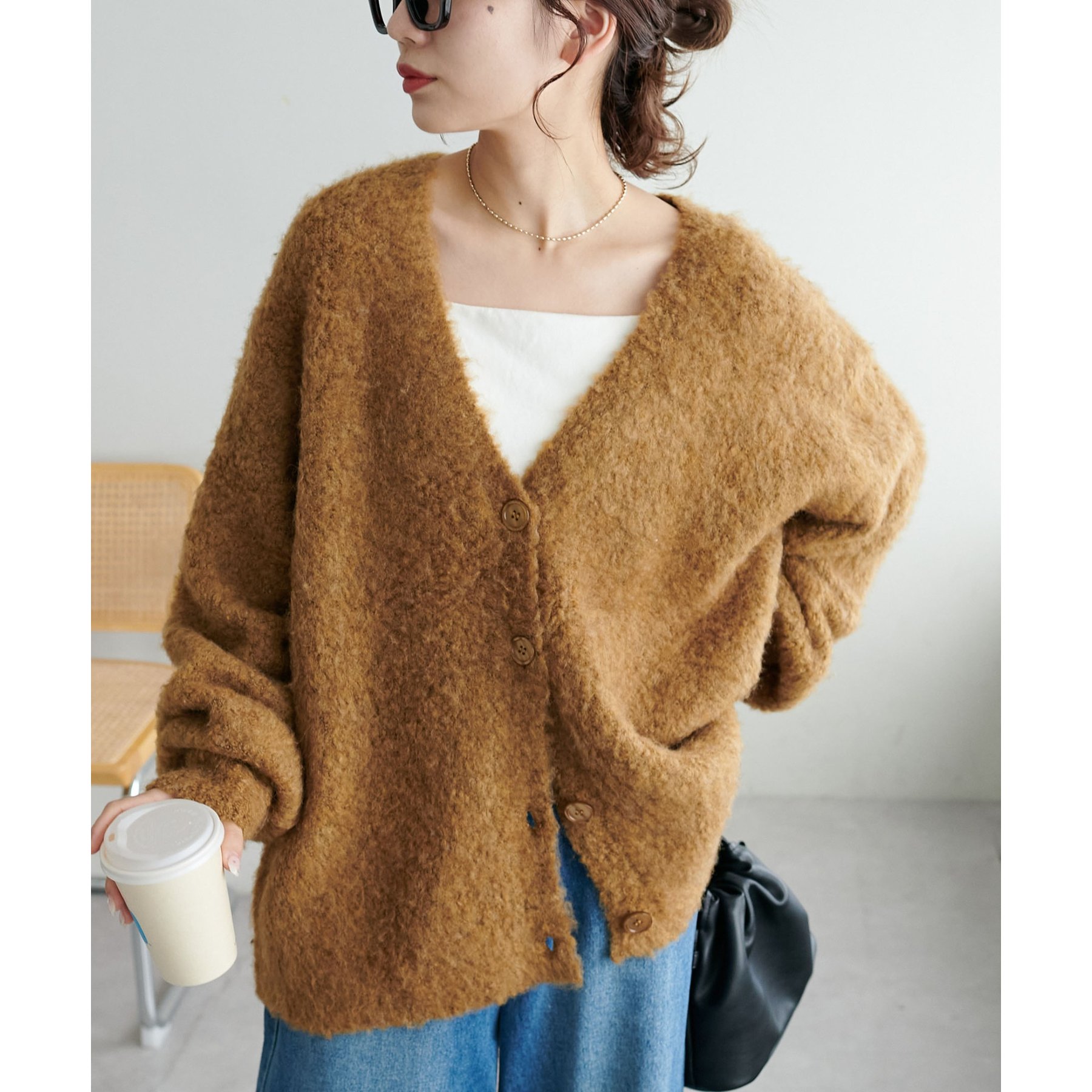 【新色追加!/WEB限定】MIXブークレシャギー配色Vネックカーディガン