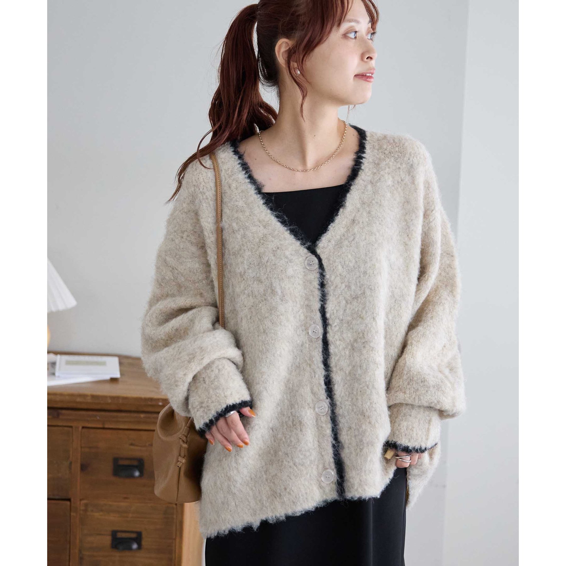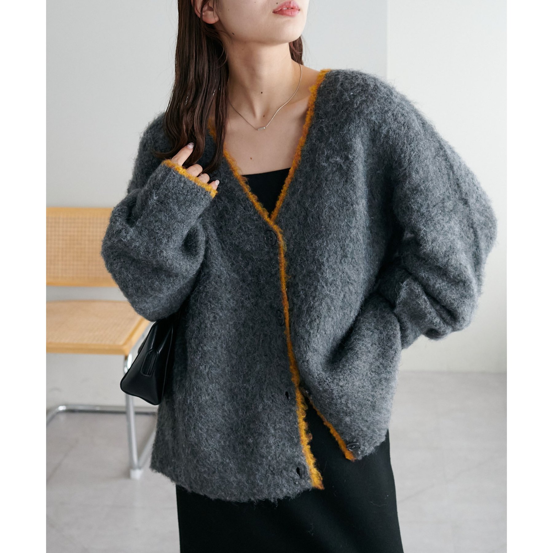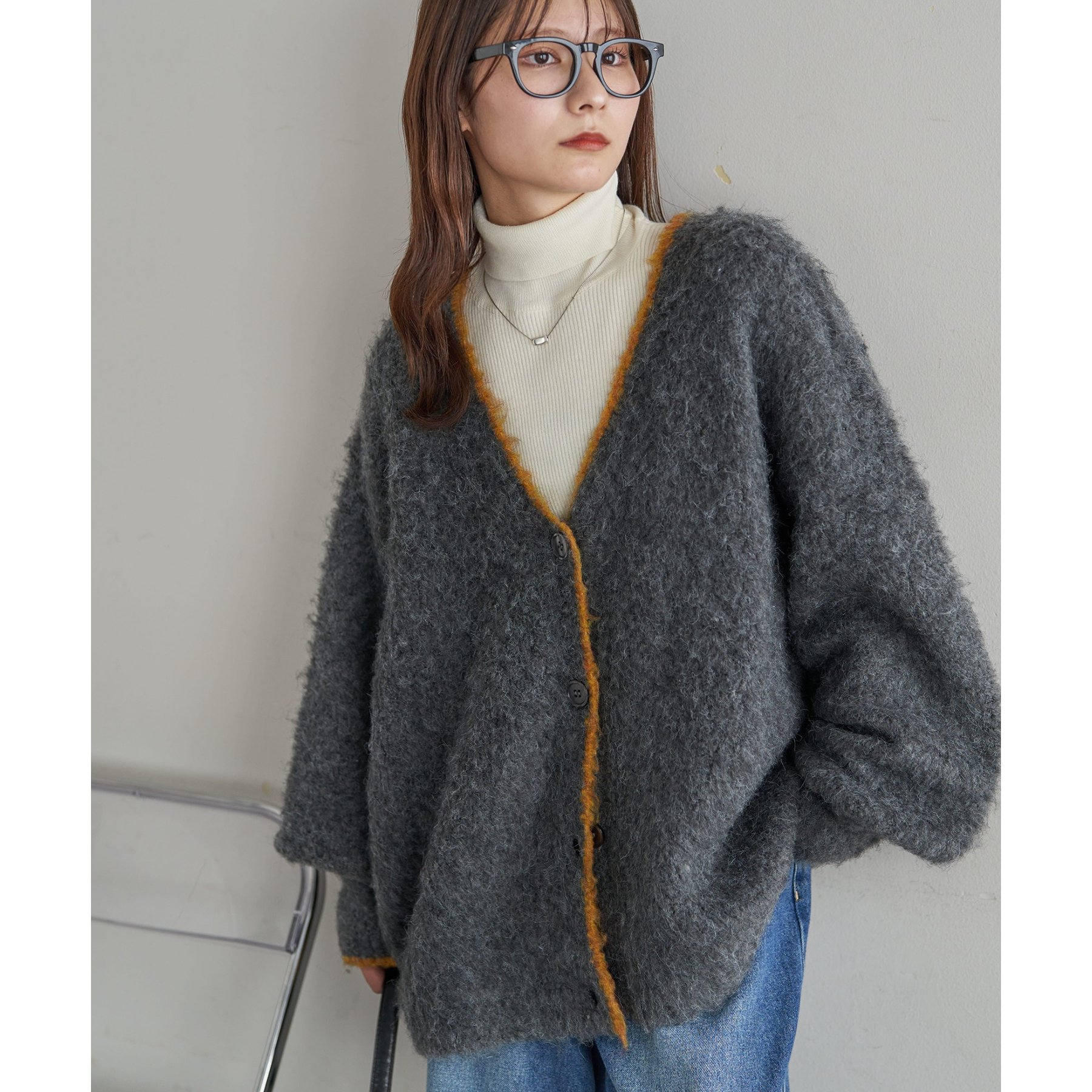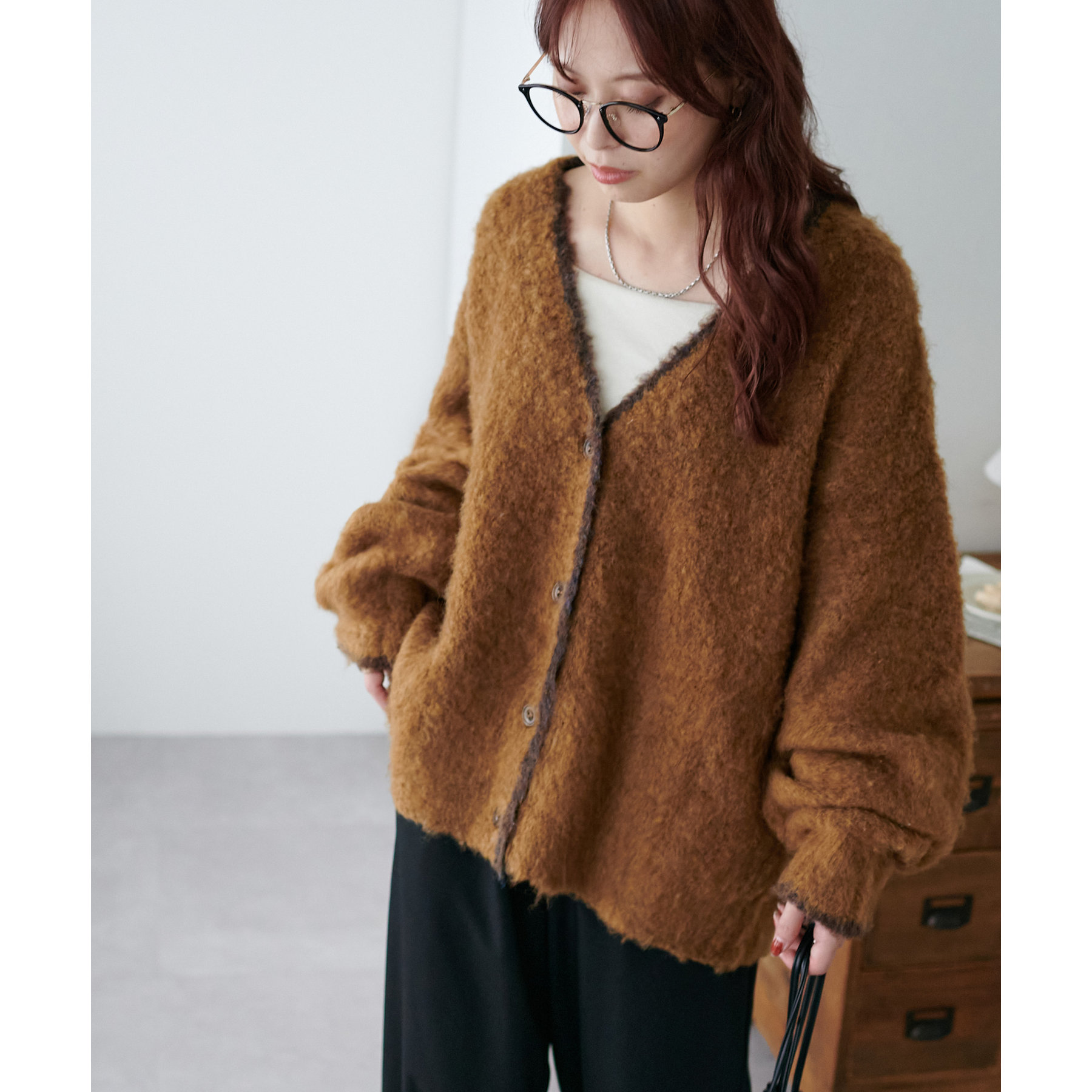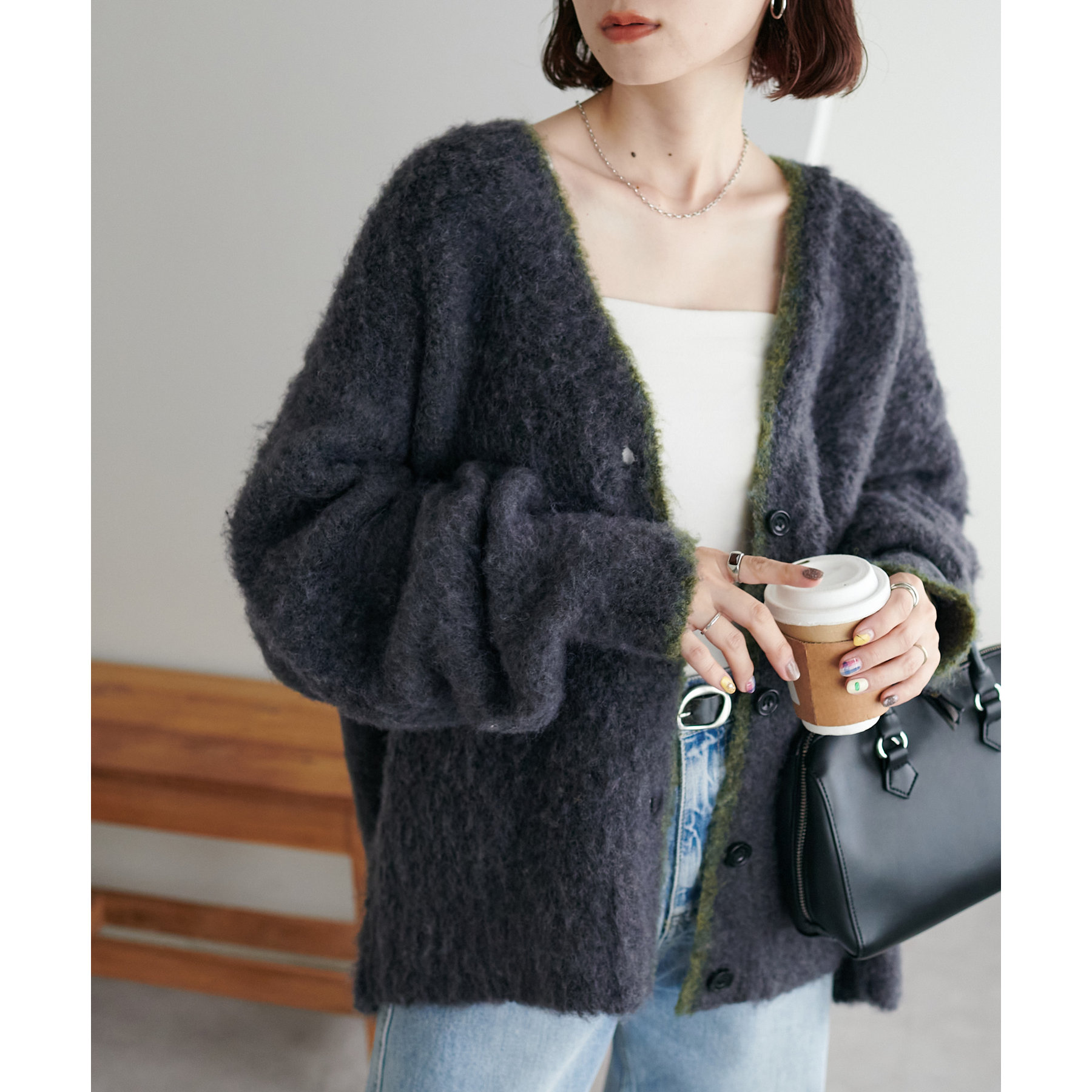 【新色追加!/WEB限定】MIXブークレシャギー配色Vネックカーディガン