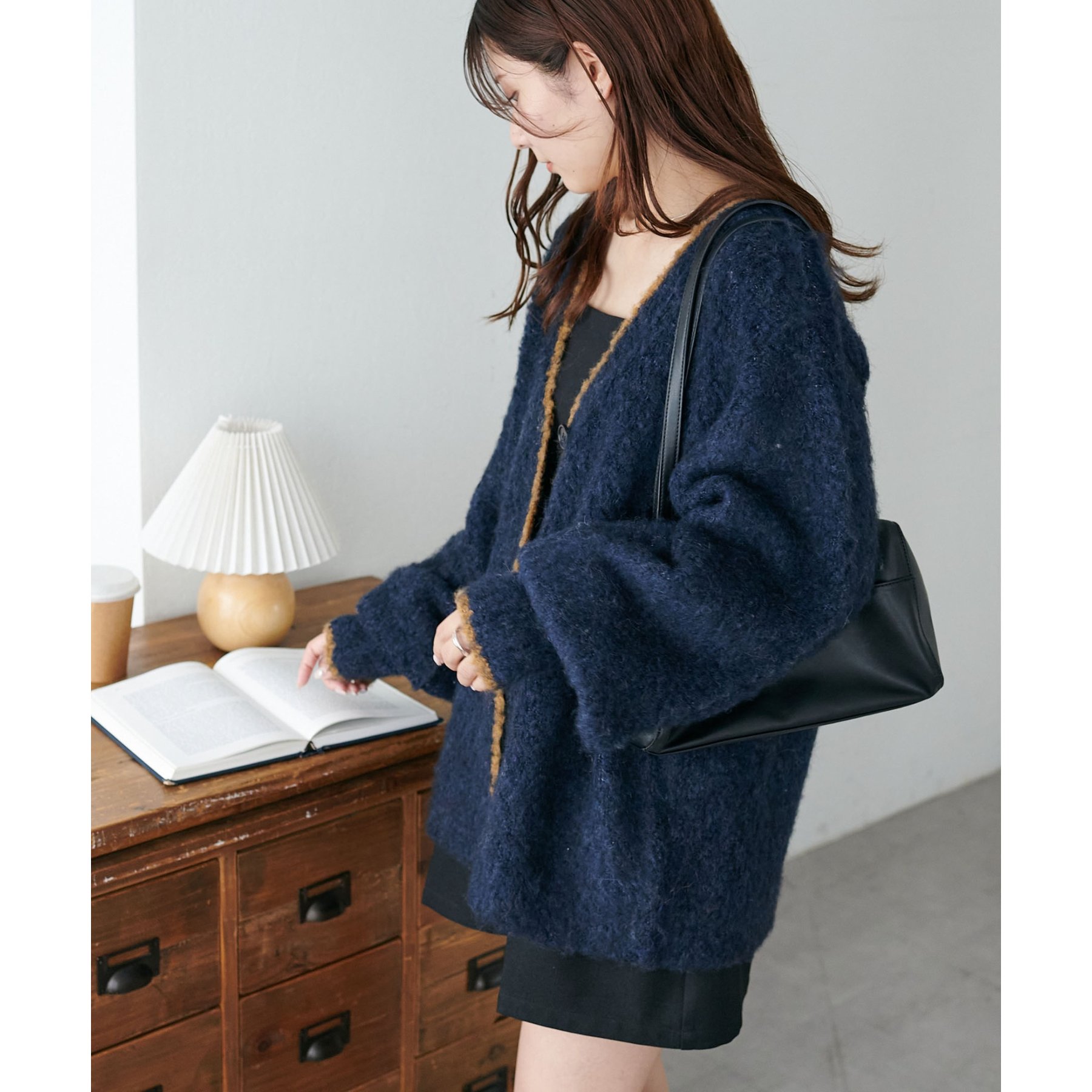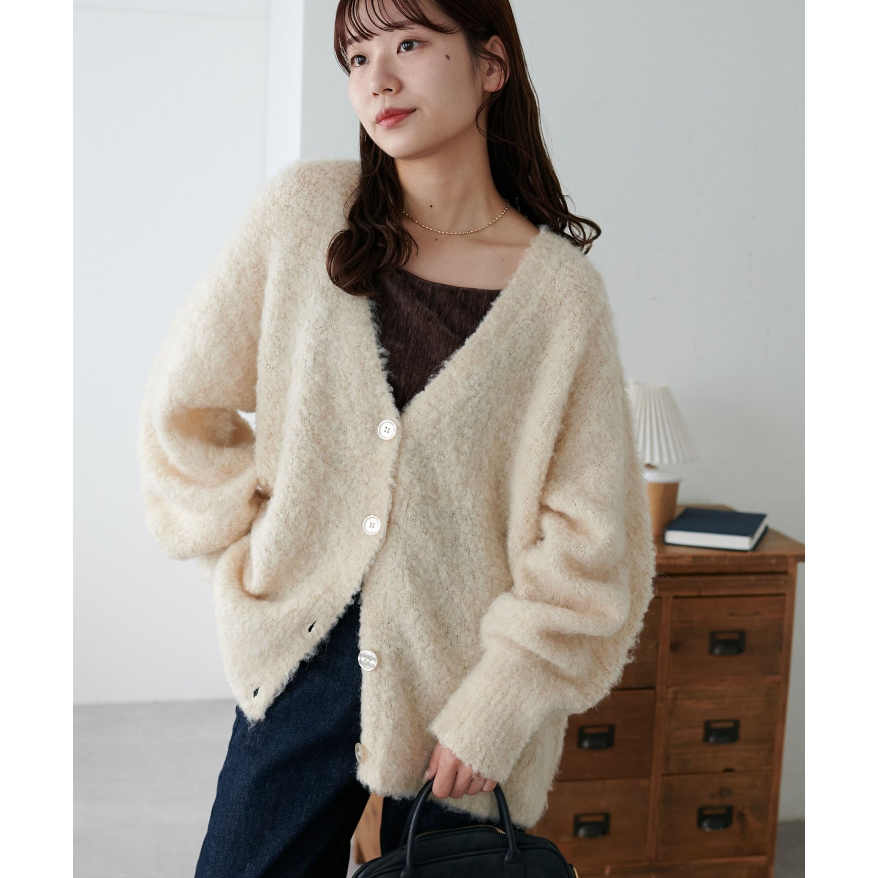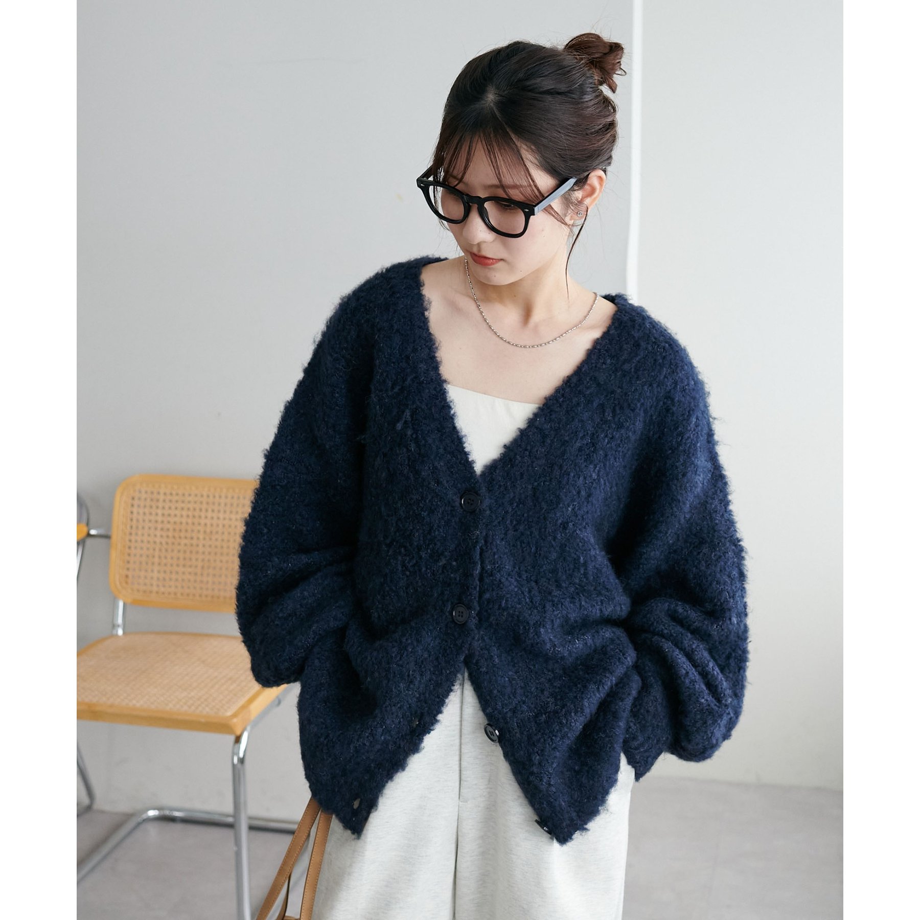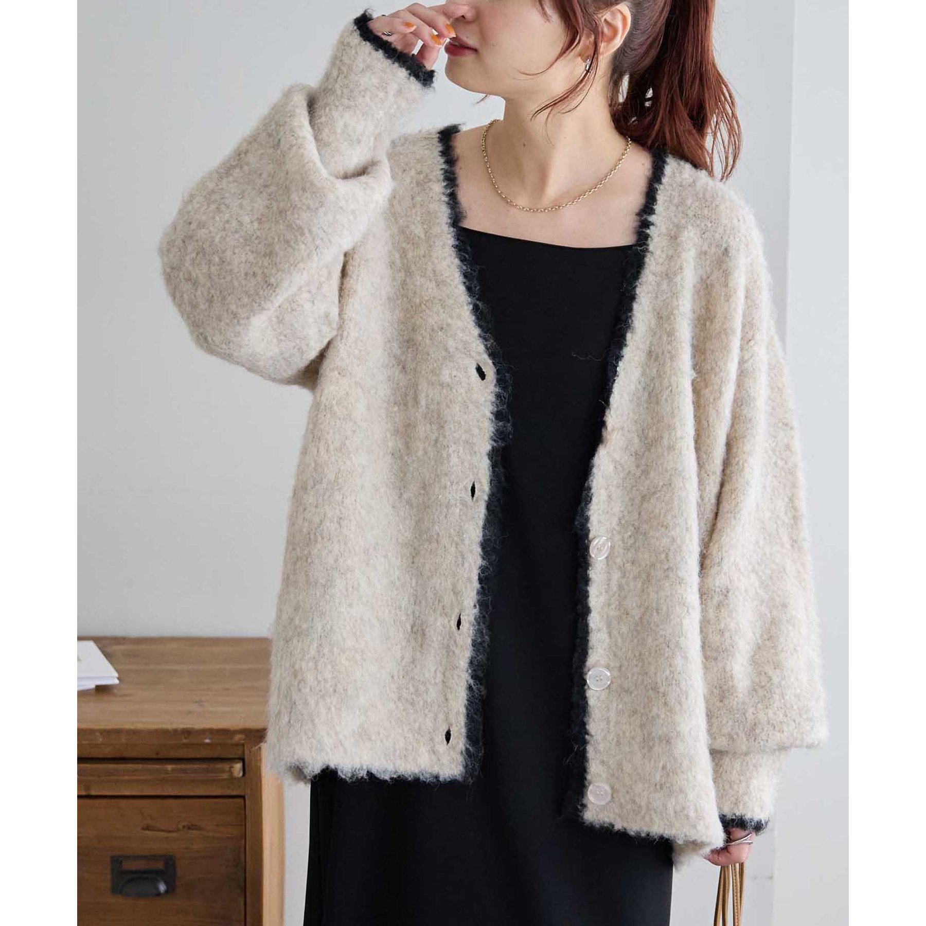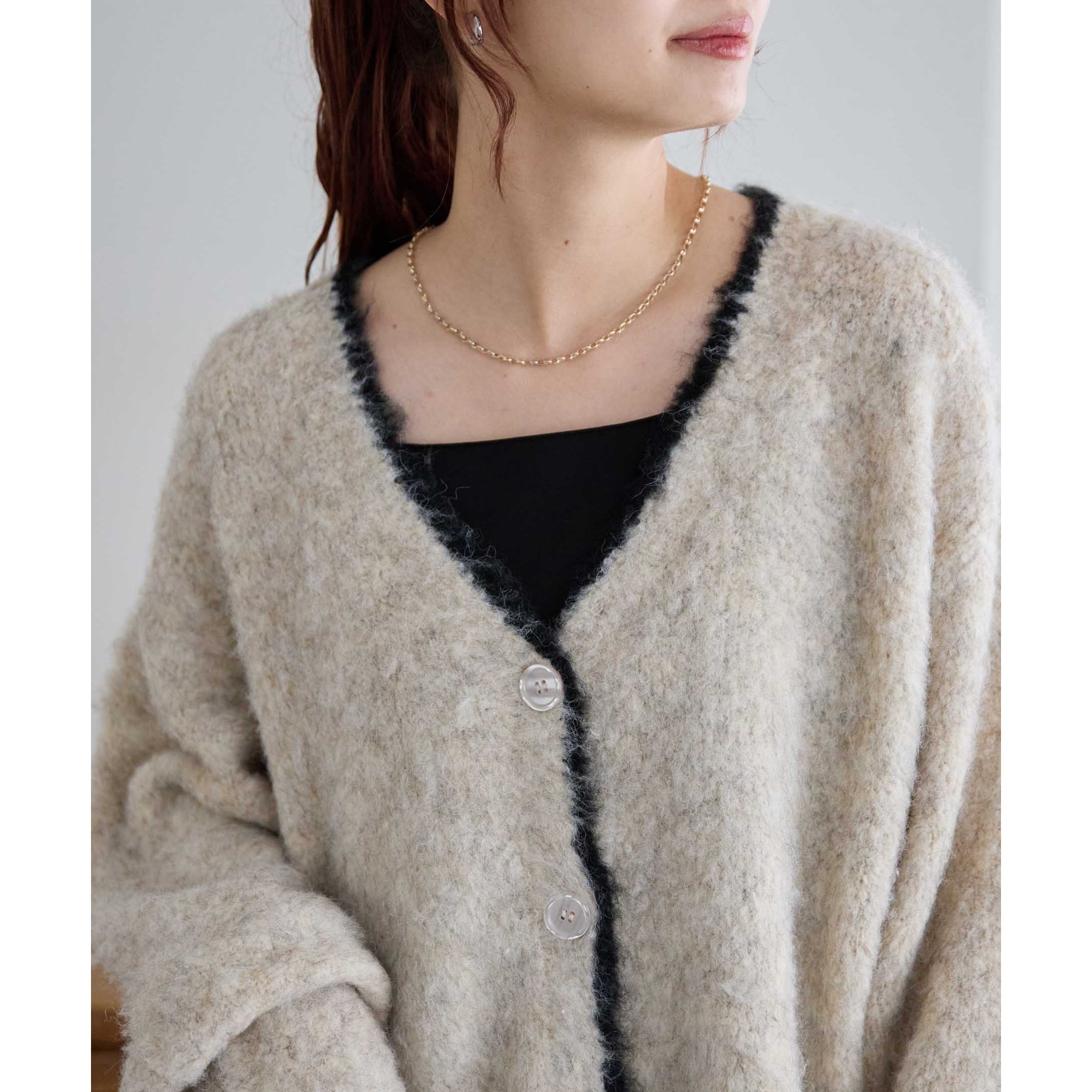 【新色追加!/WEB限定】MIXブークレシャギー配色Vネックカーディガン