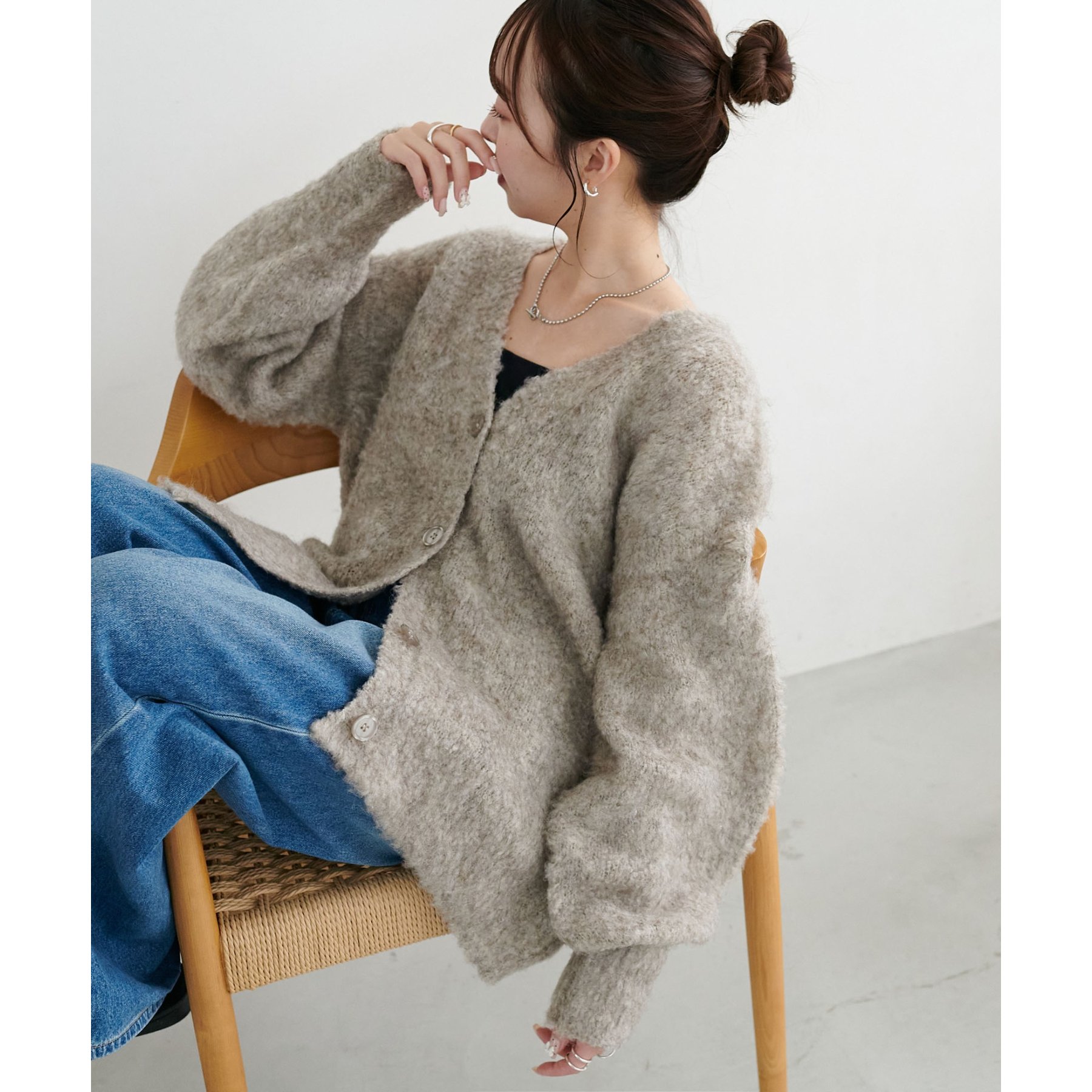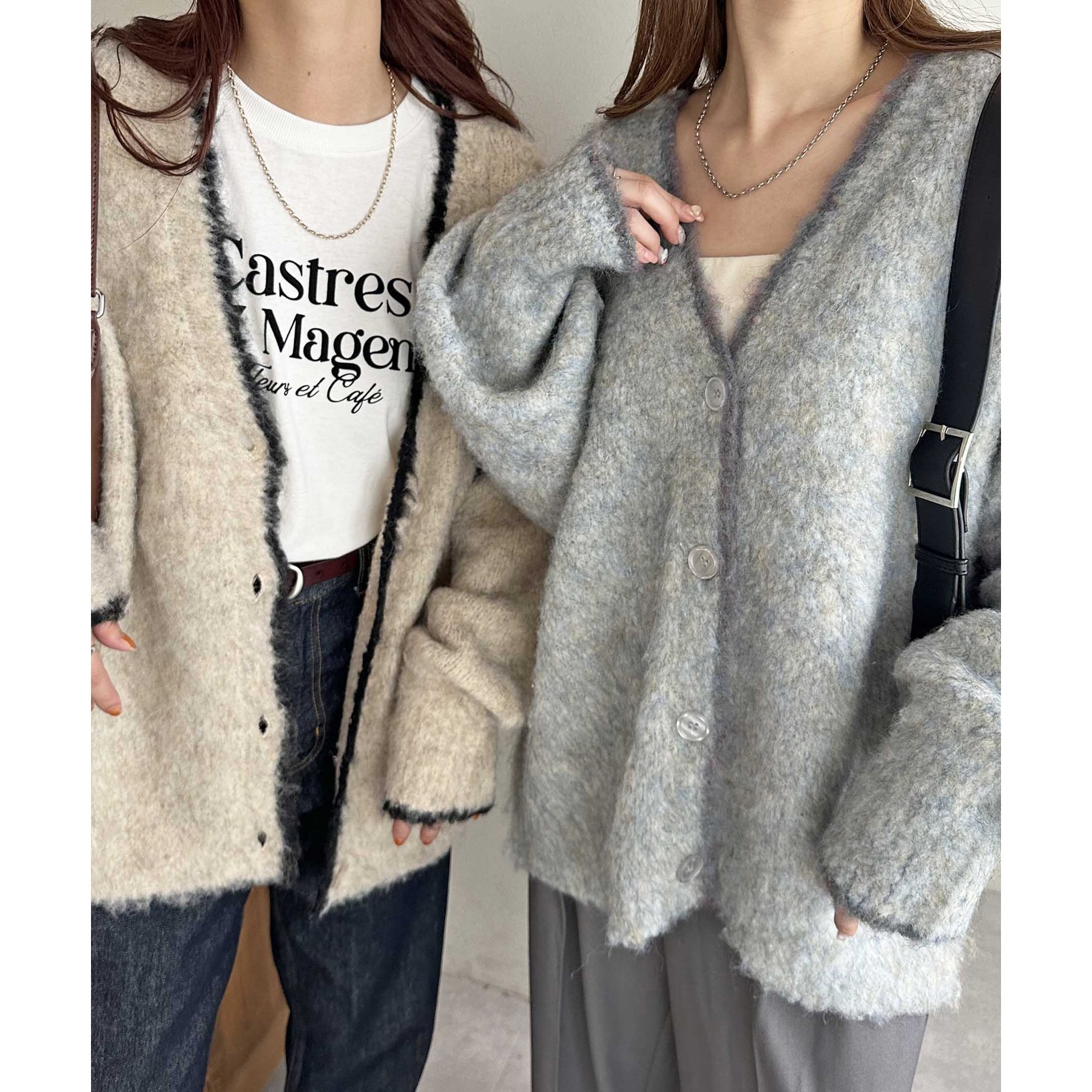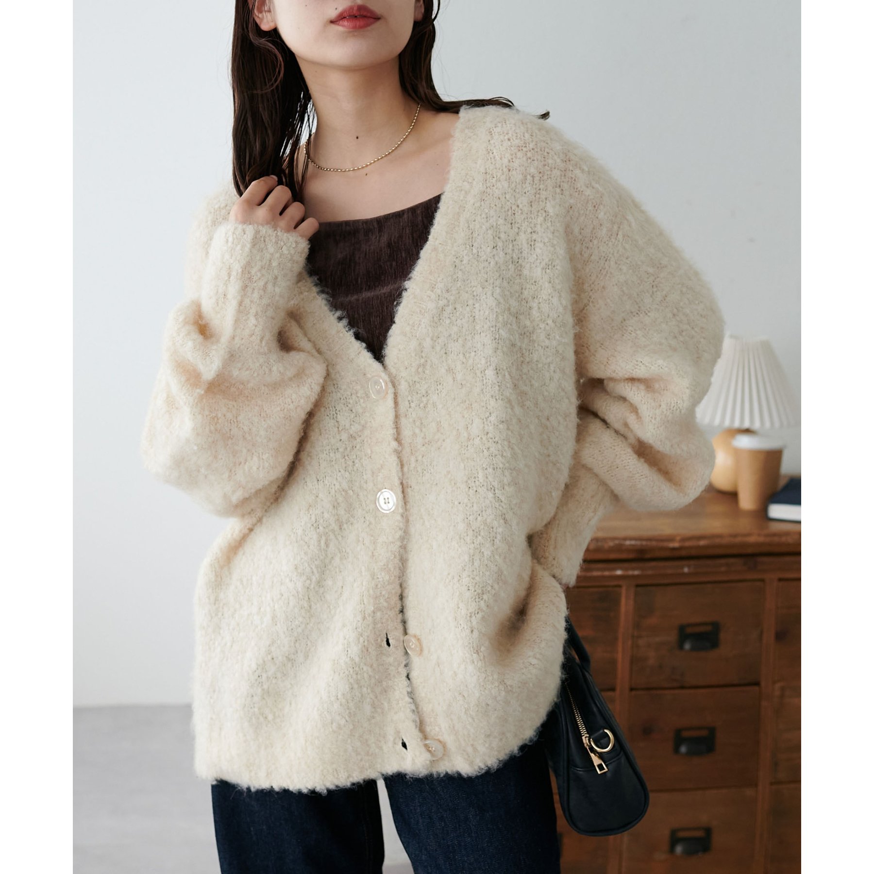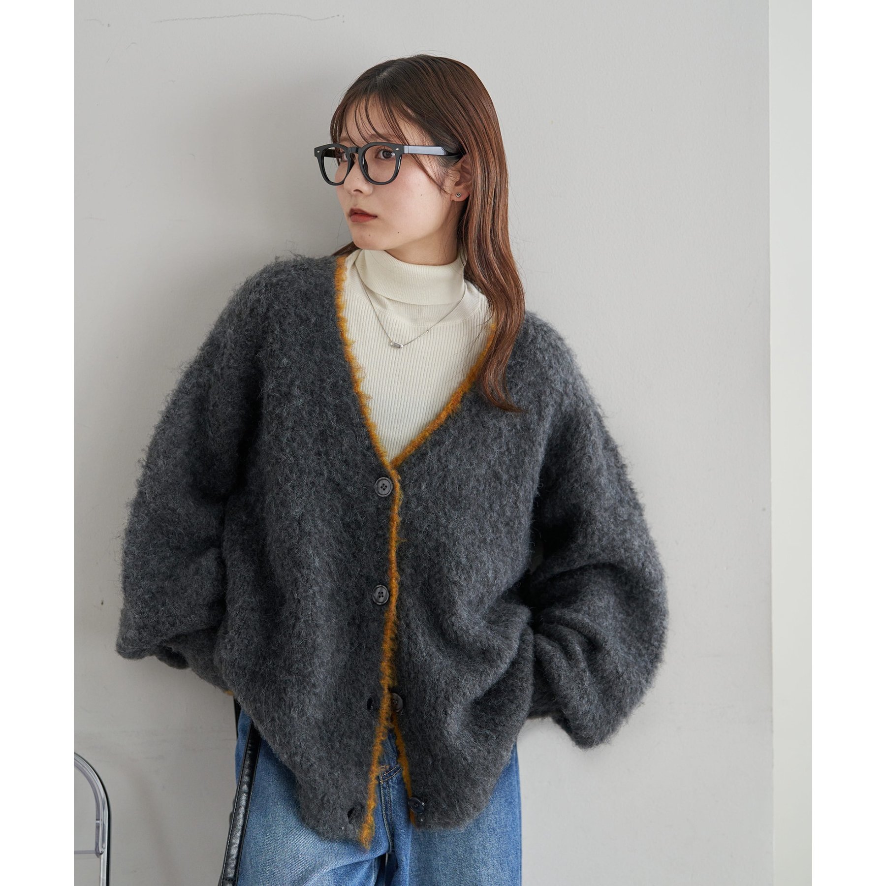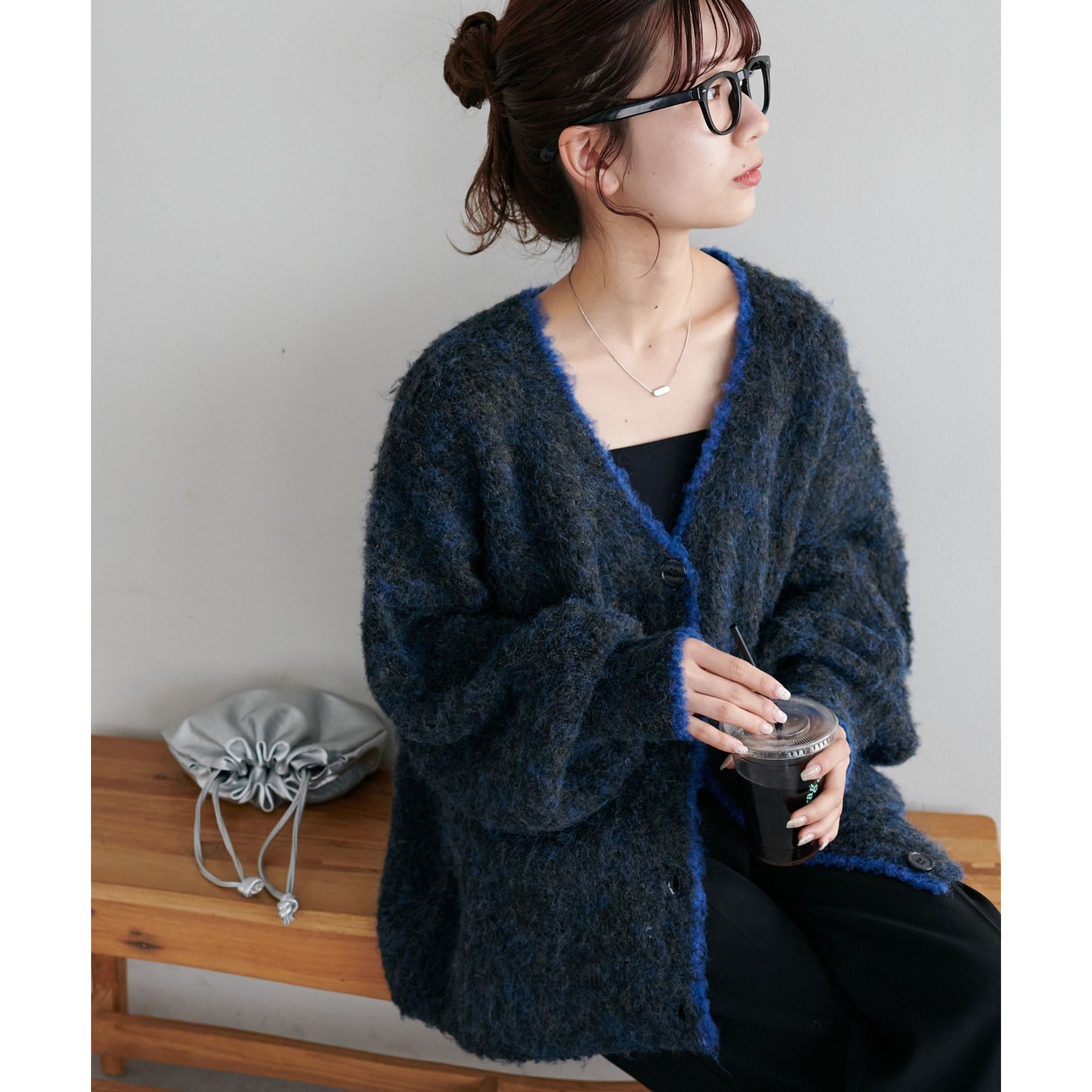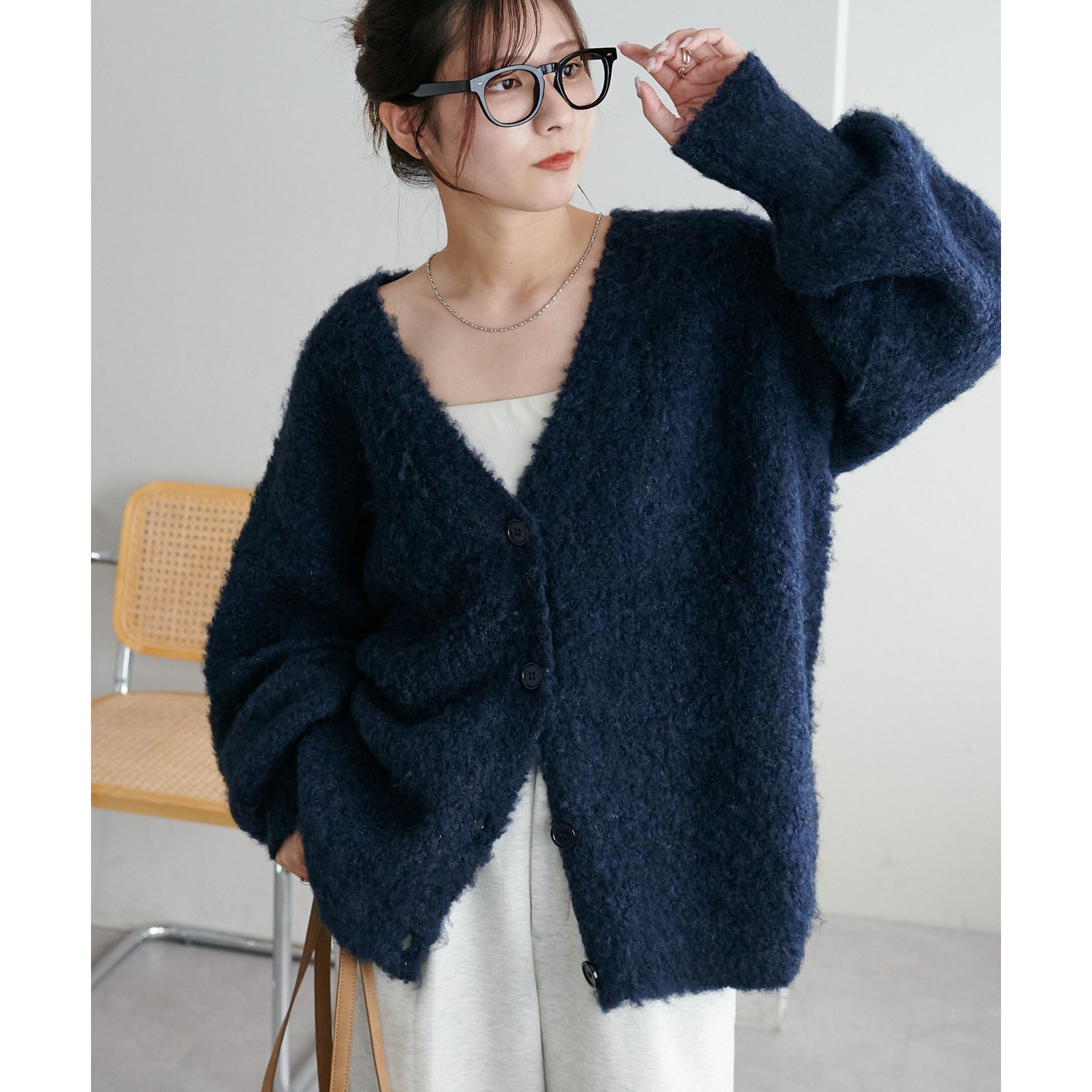 【新色追加!/WEB限定】MIXブークレシャギー配色Vネックカーディガン