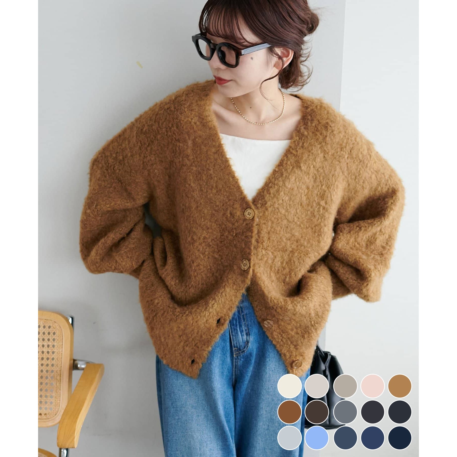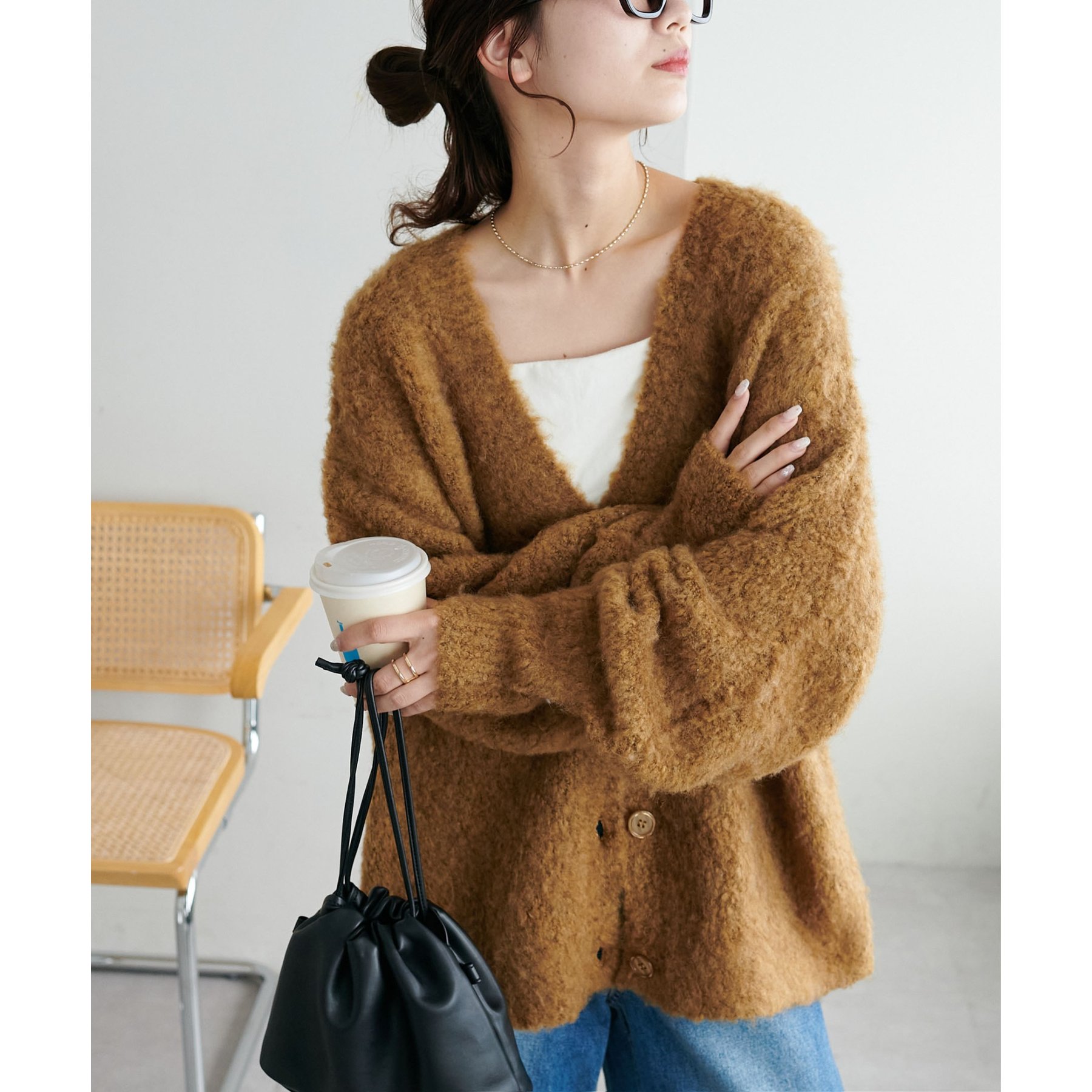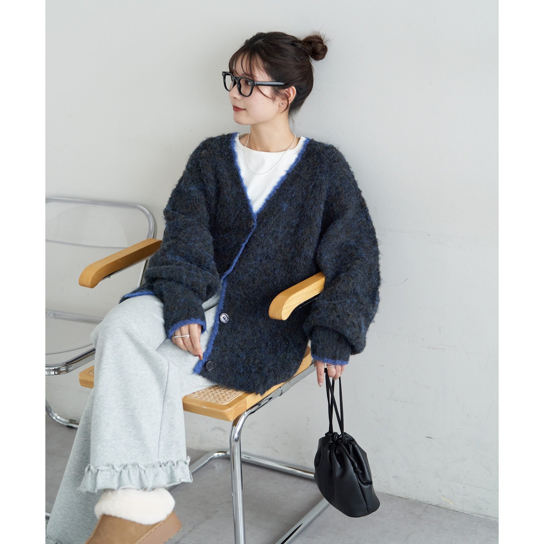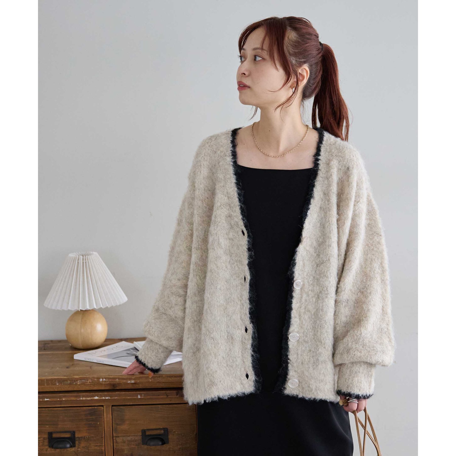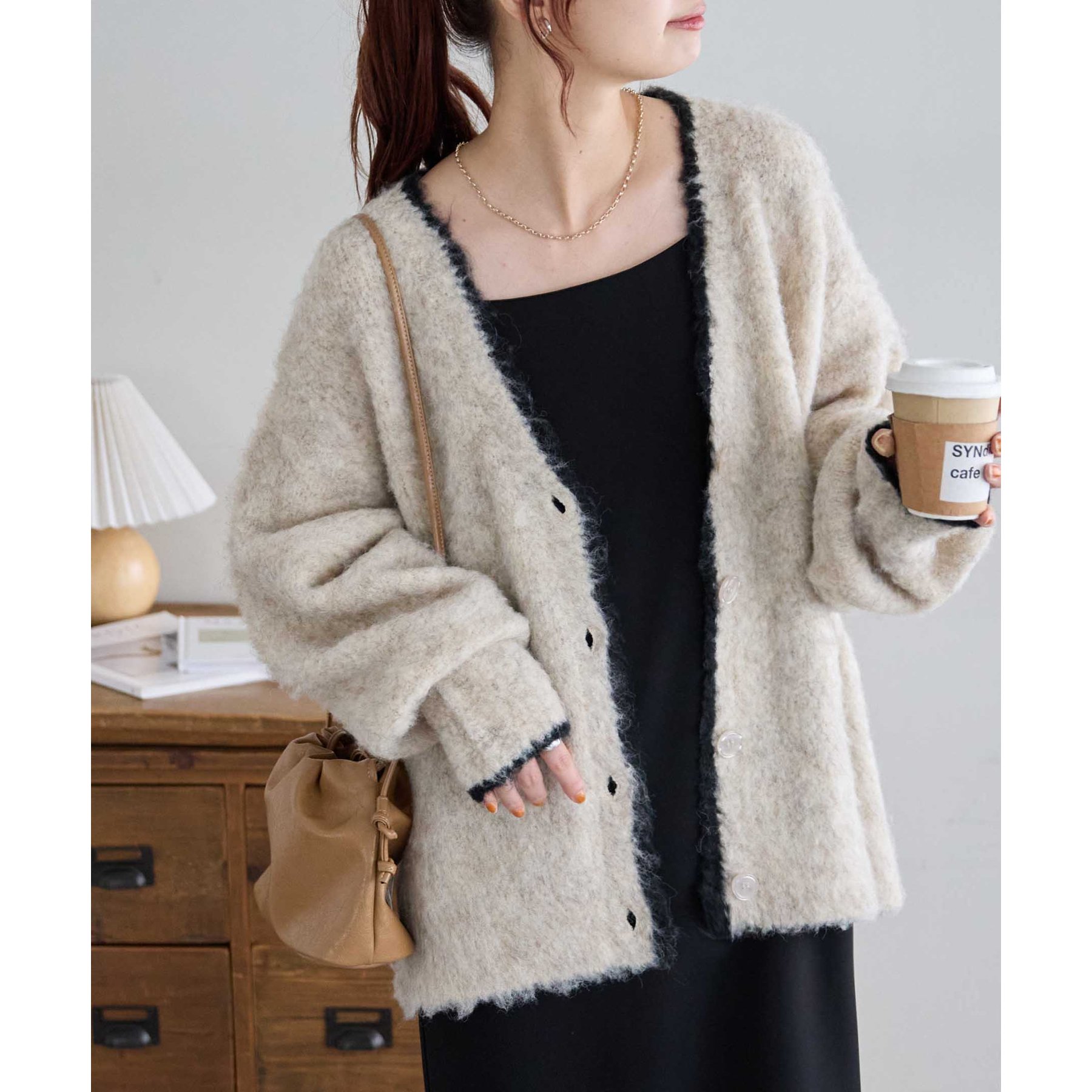 【新色追加!/WEB限定】MIXブークレシャギー配色Vネックカーディガン
