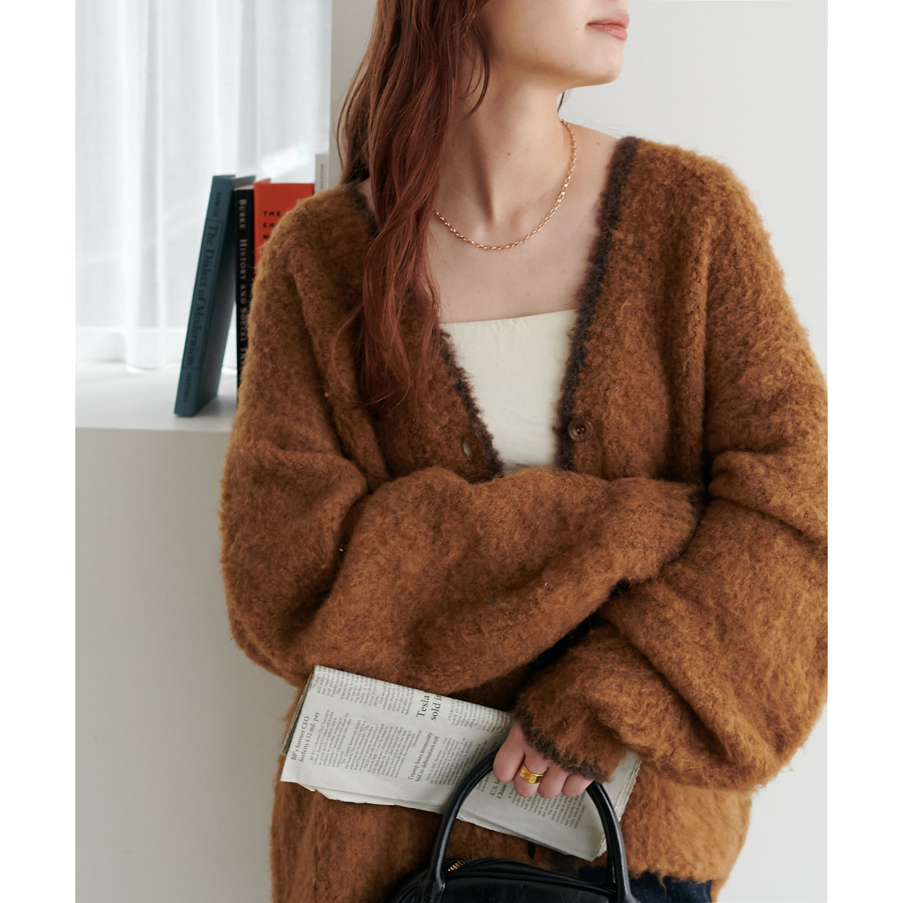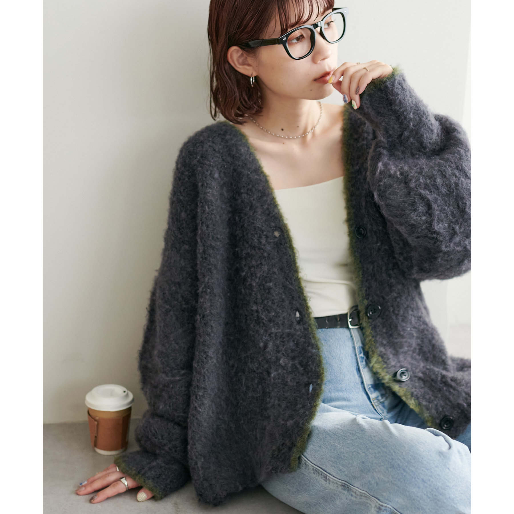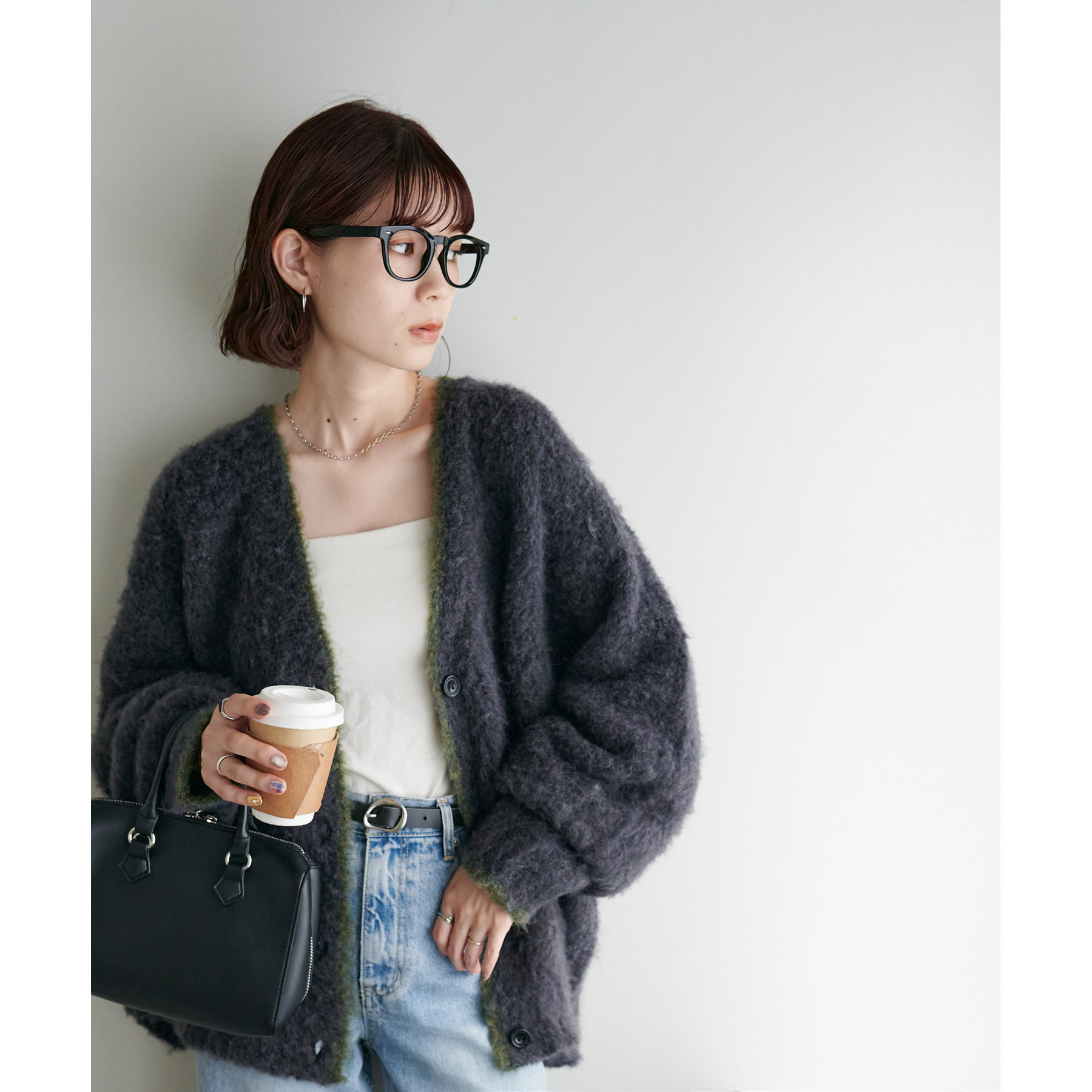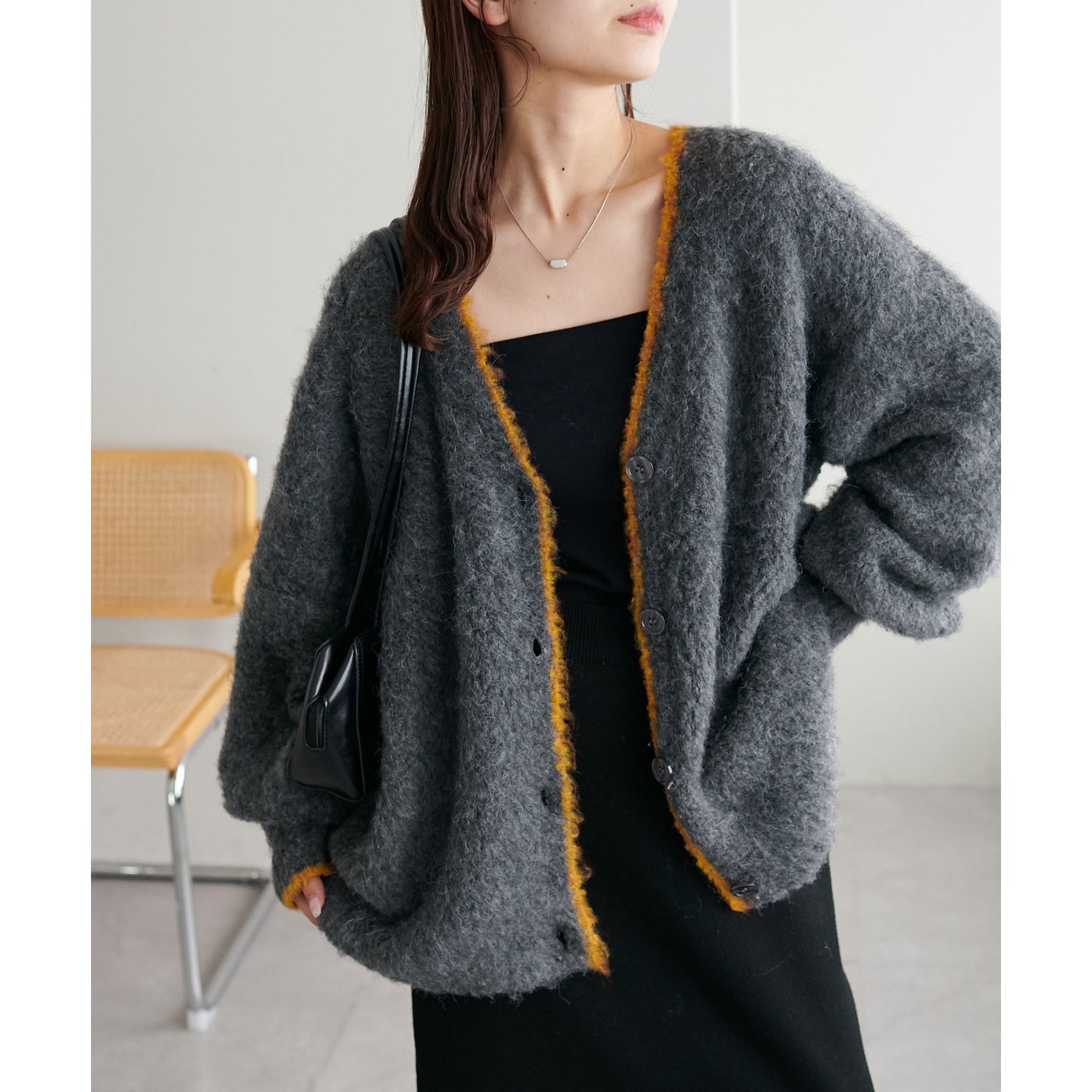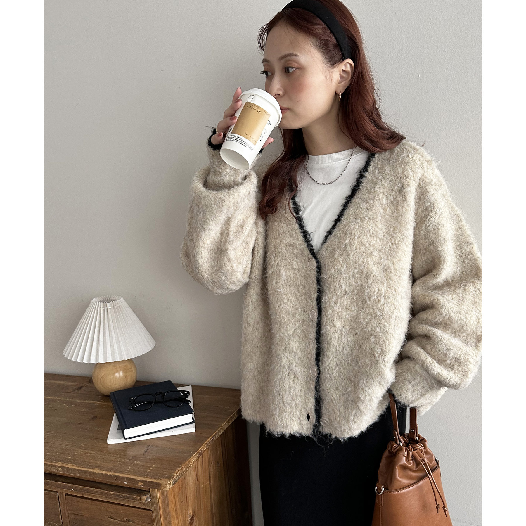 【新色追加!/WEB限定】MIXブークレシャギー配色Vネックカーディガン