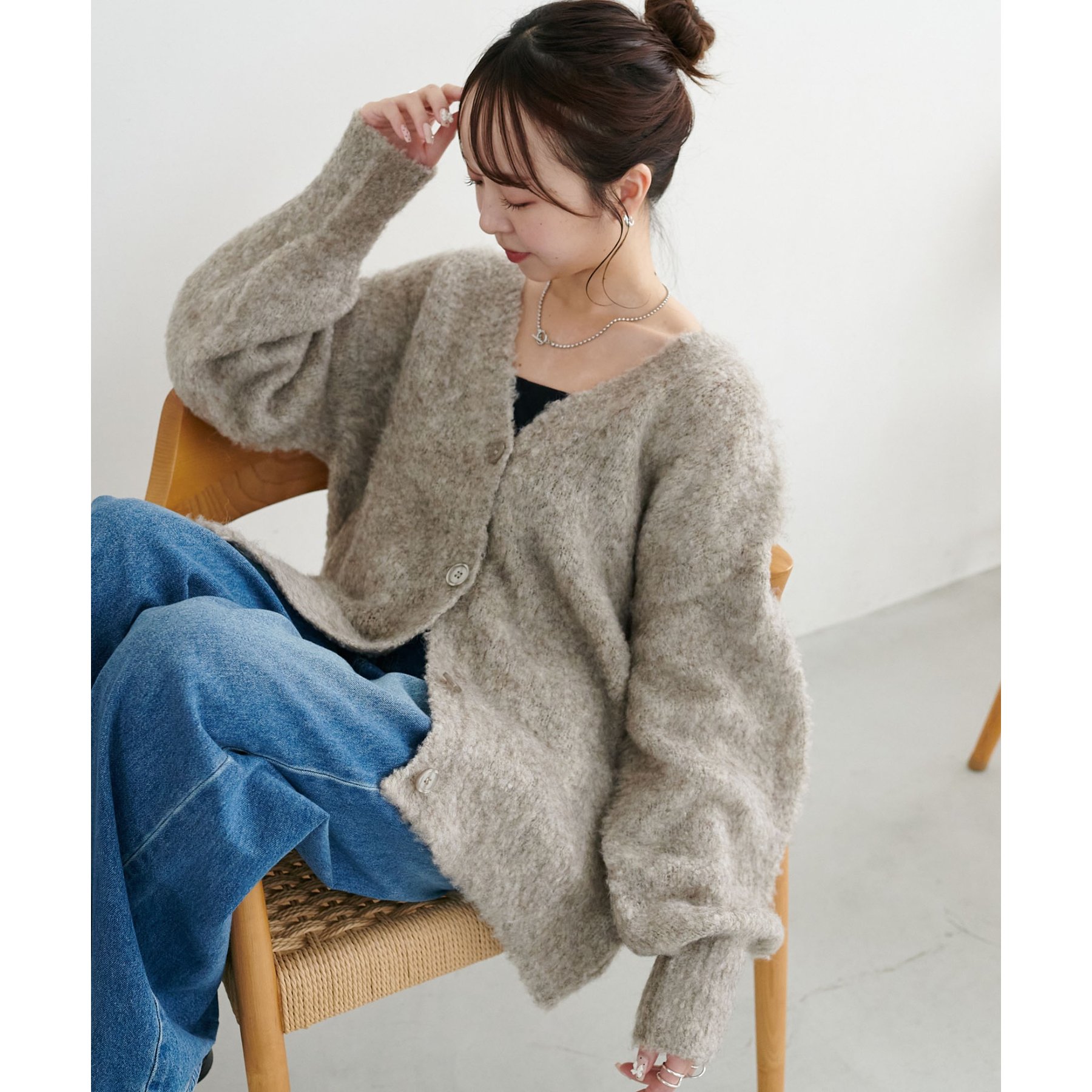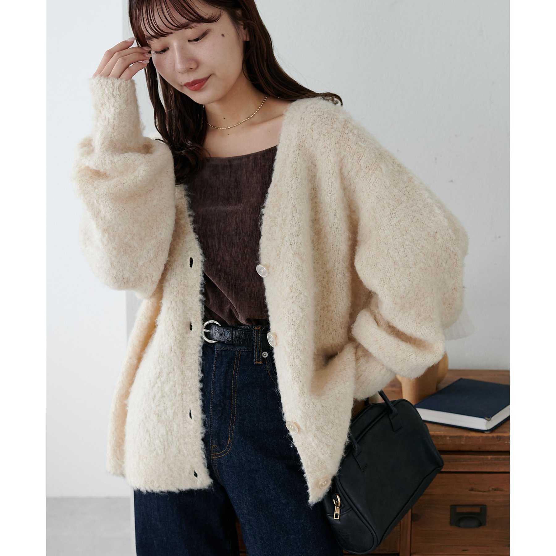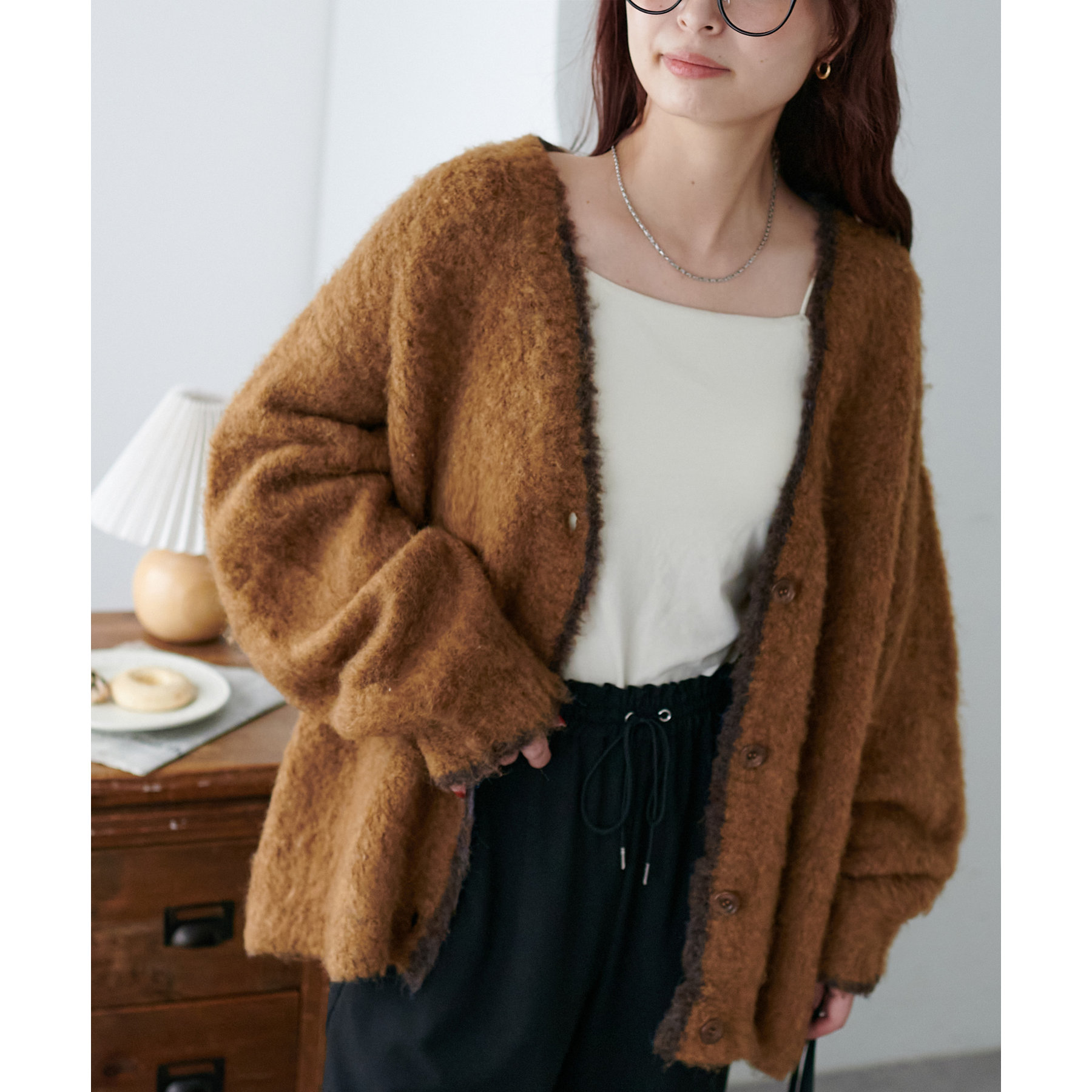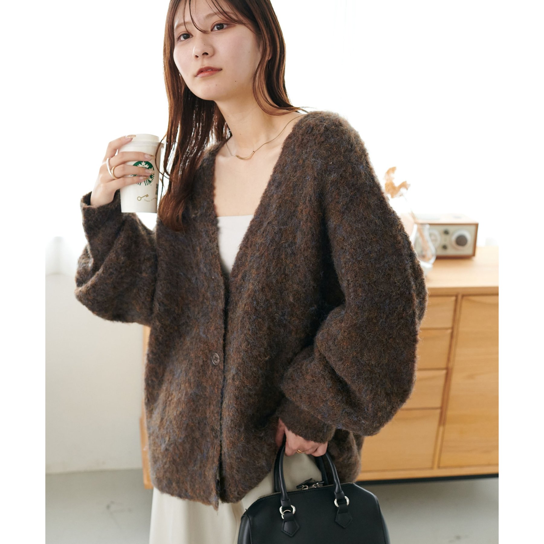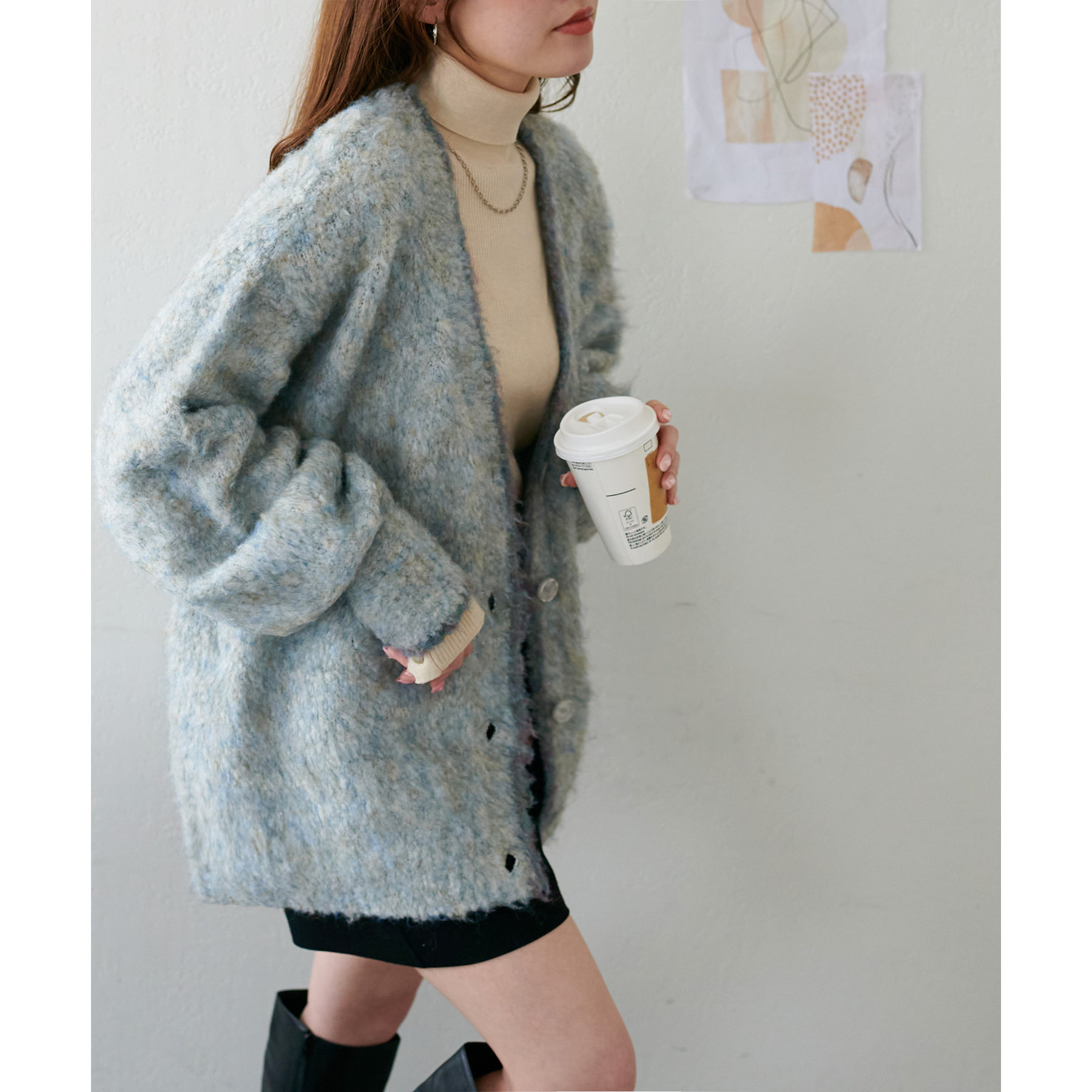 【新色追加!/WEB限定】MIXブークレシャギー配色Vネックカーディガン