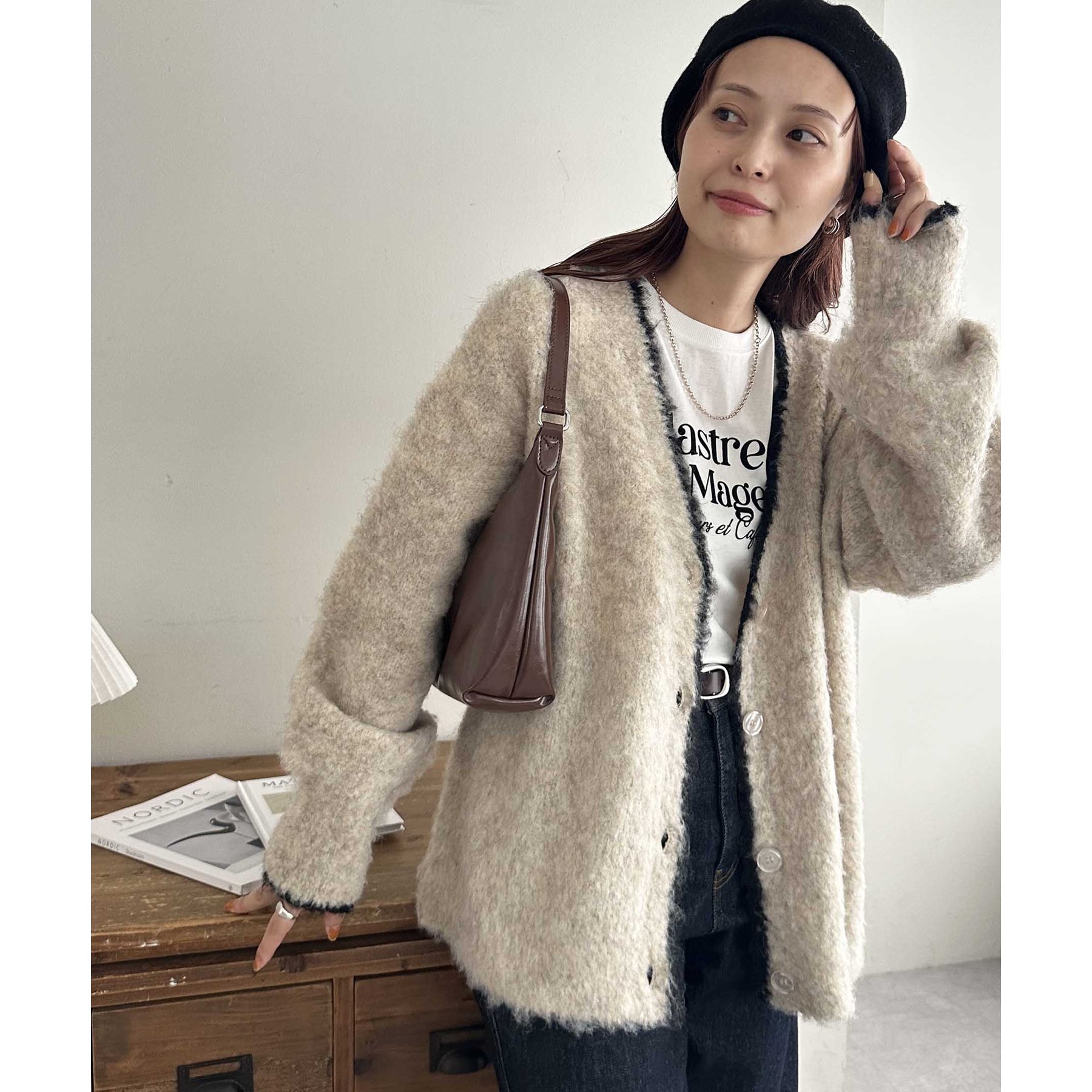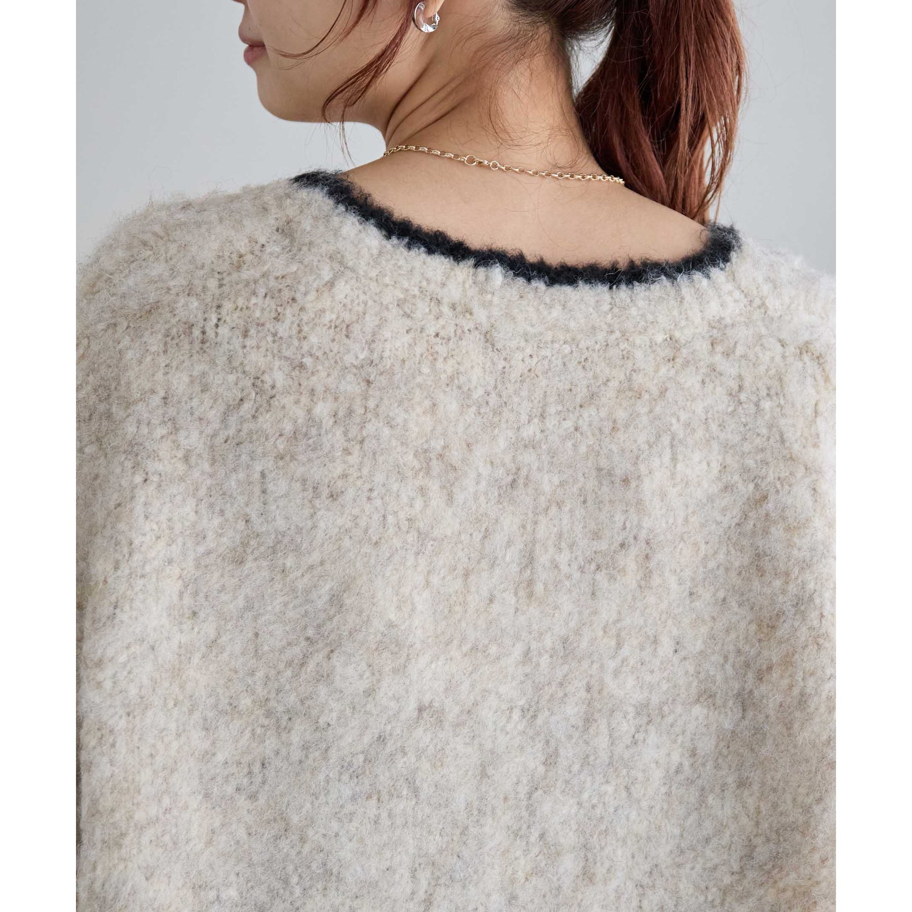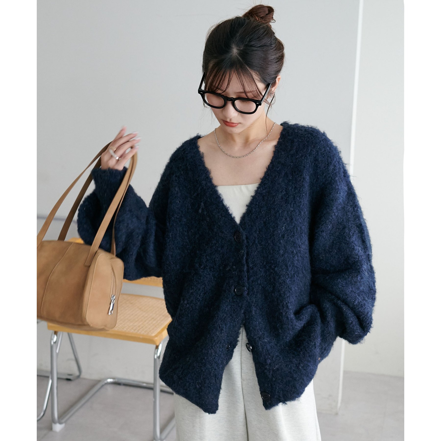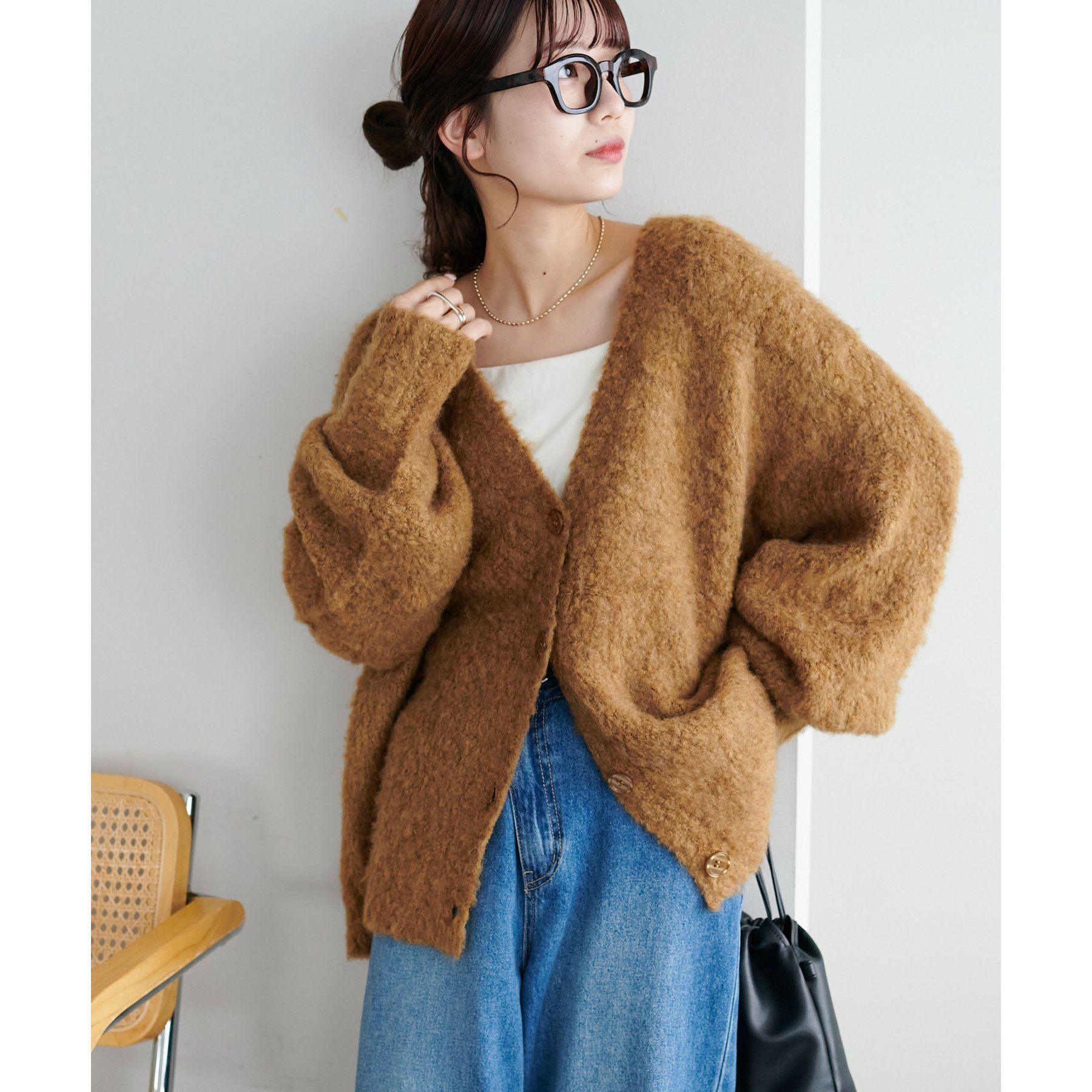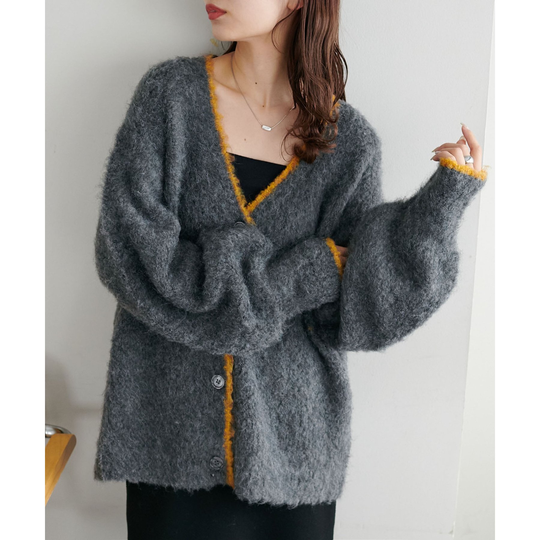 【新色追加!/WEB限定】MIXブークレシャギー配色Vネックカーディガン