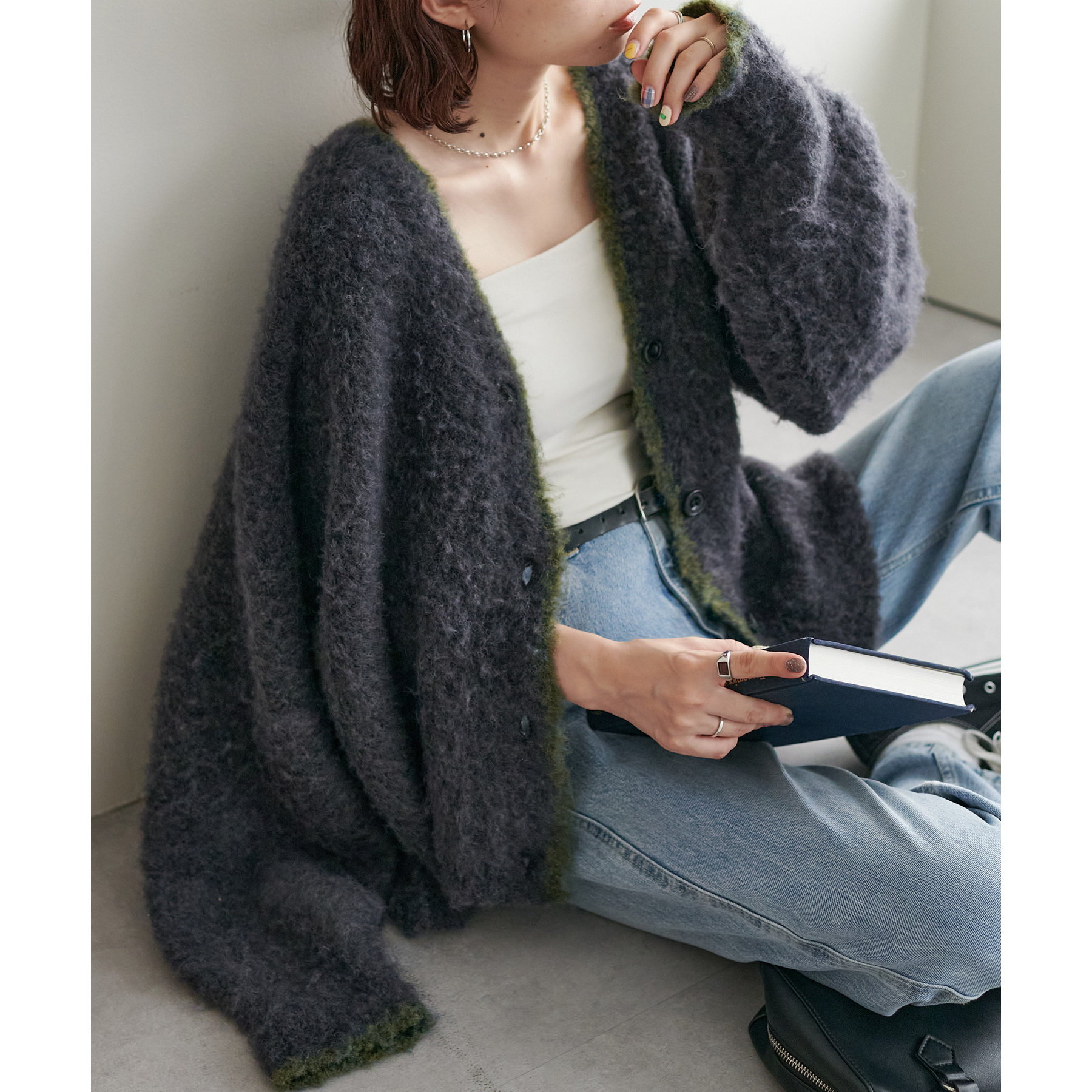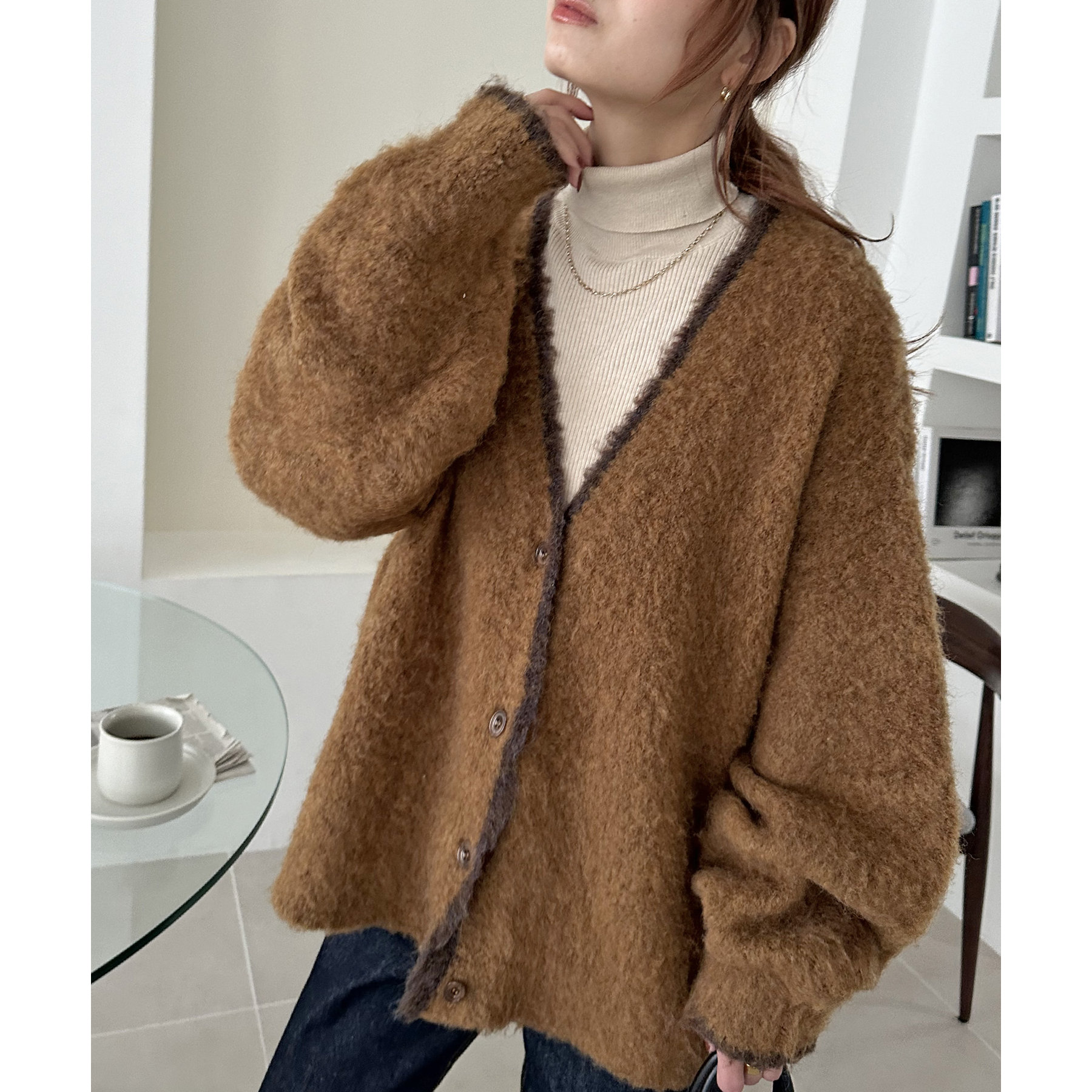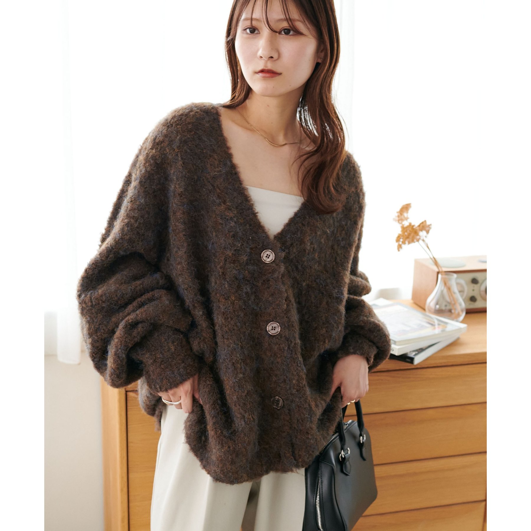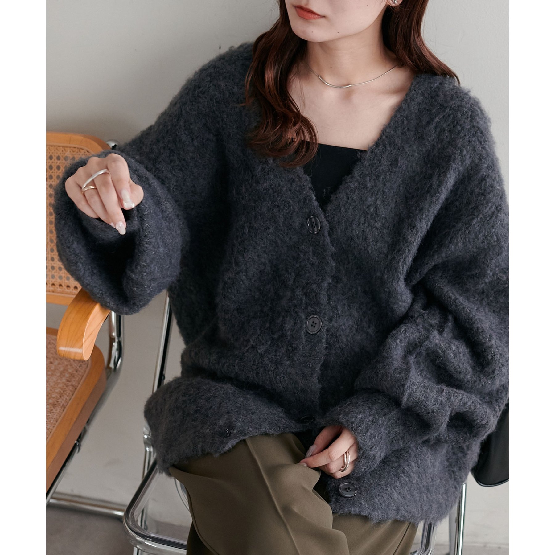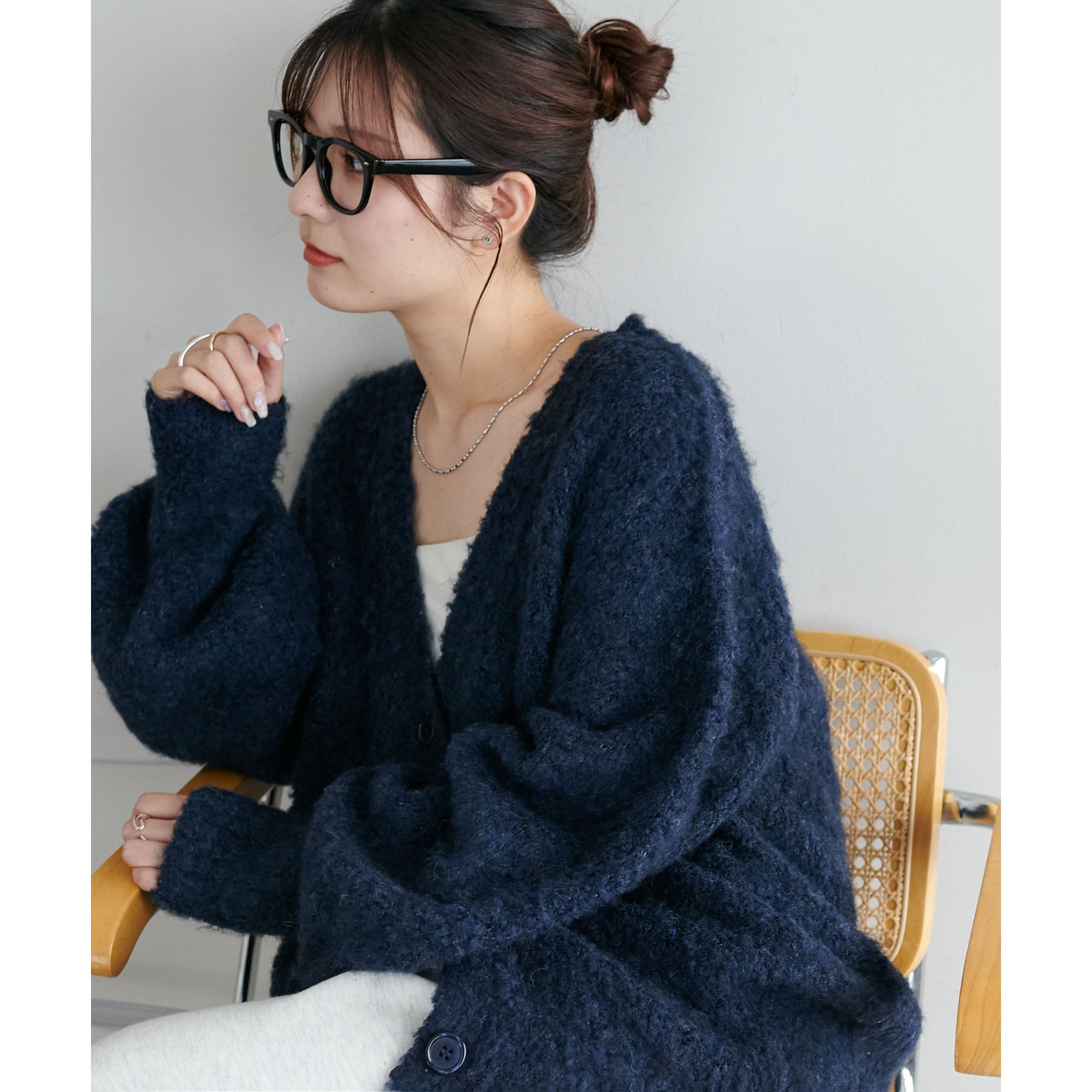【新色追加!/WEB限定】MIXブークレシャギー配色Vネックカーディガン