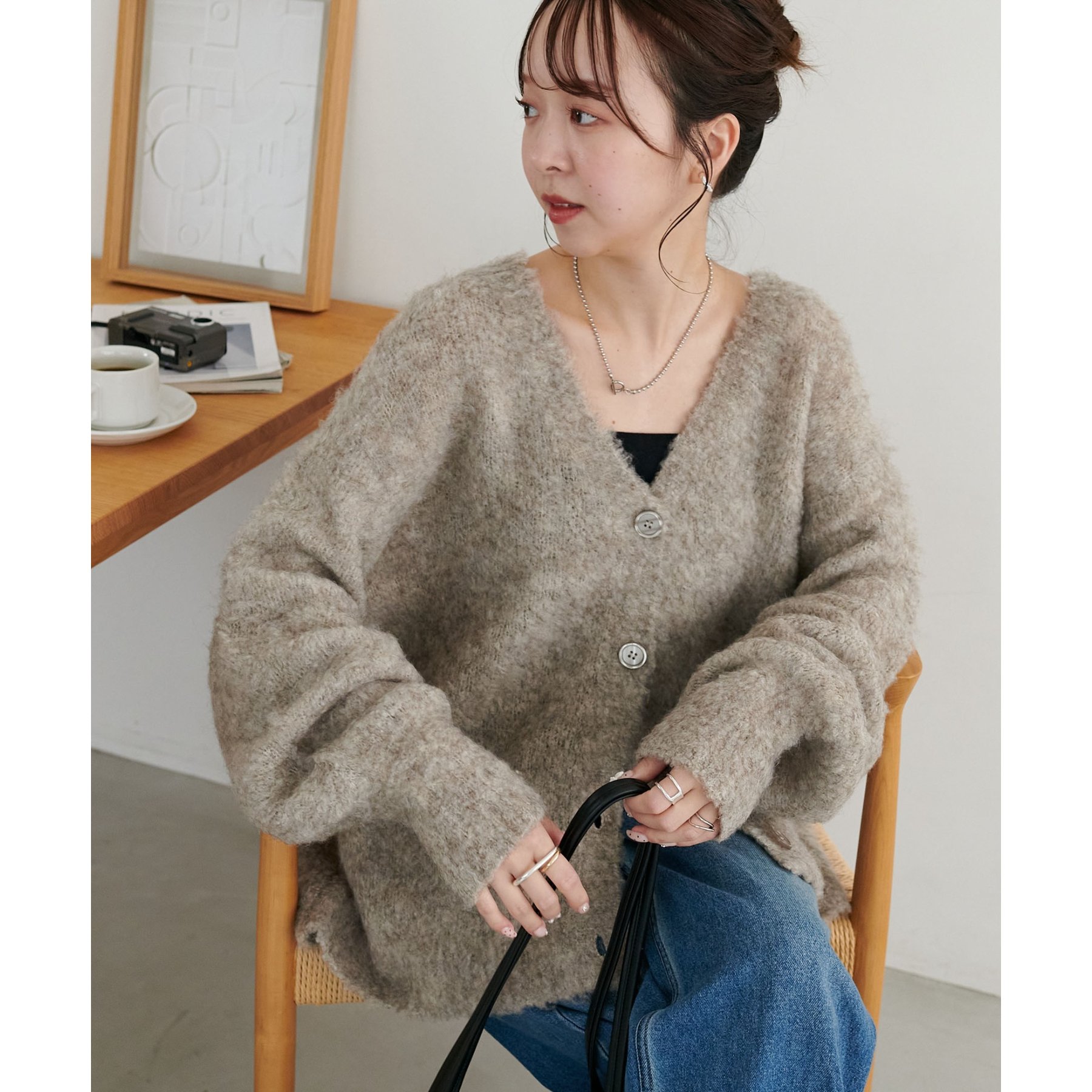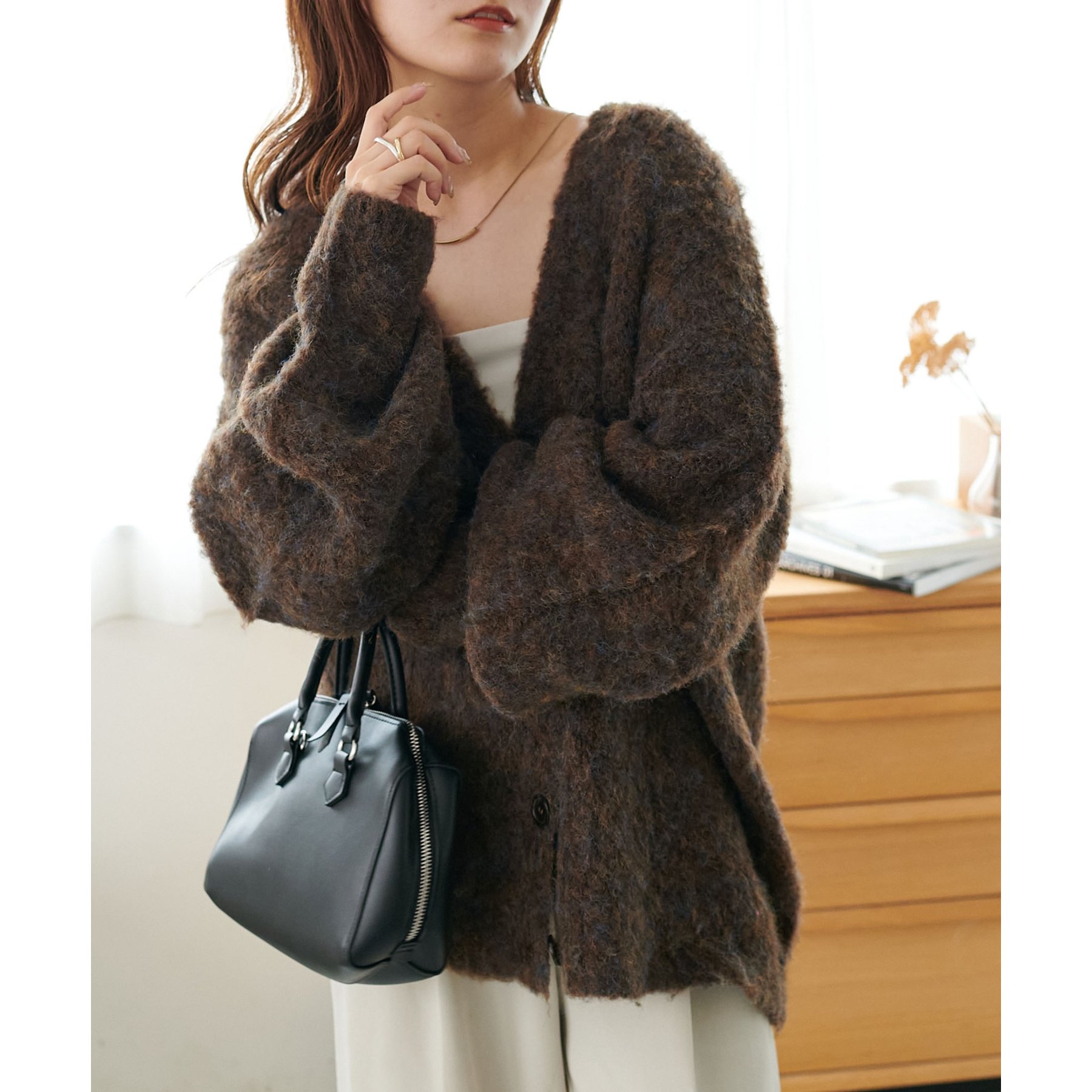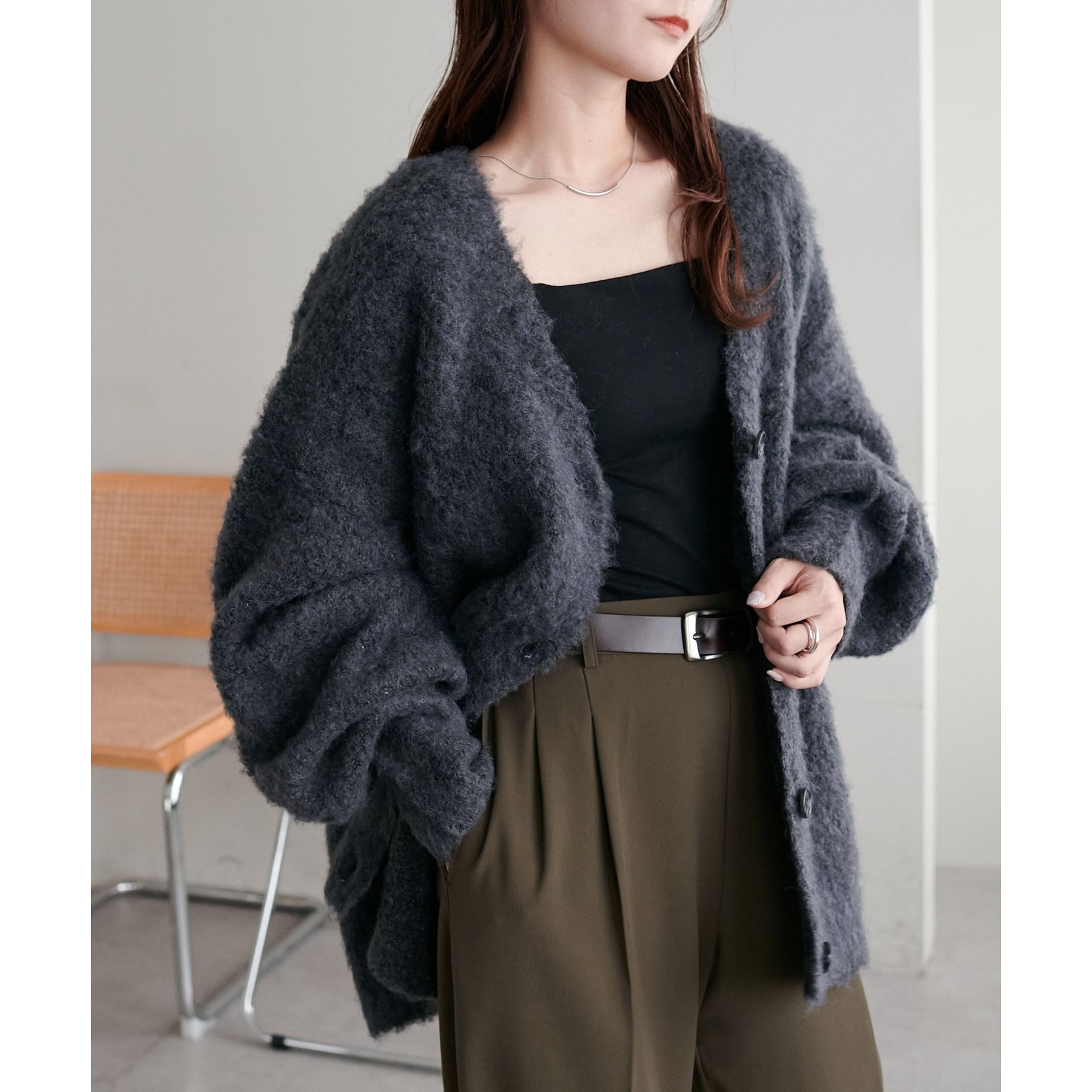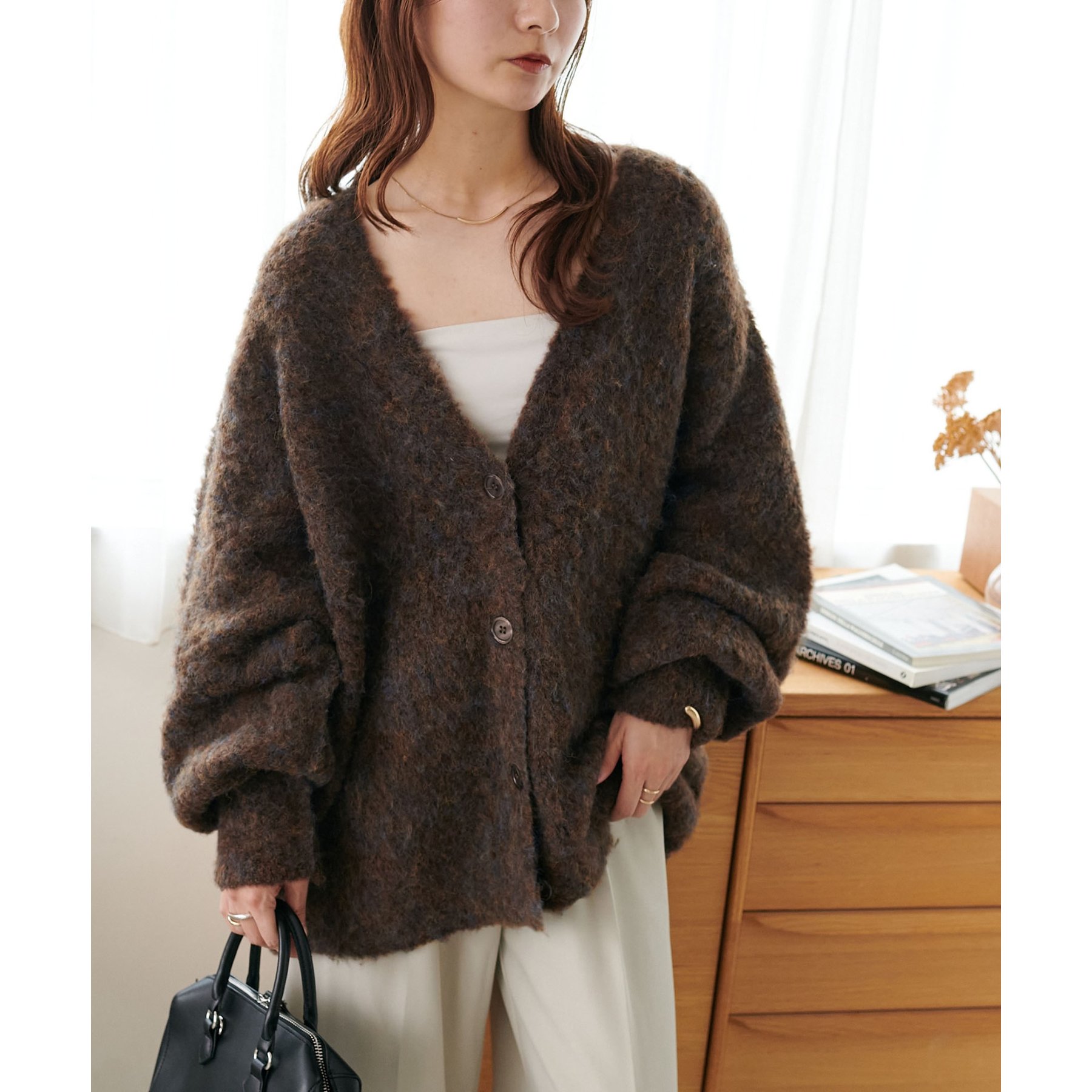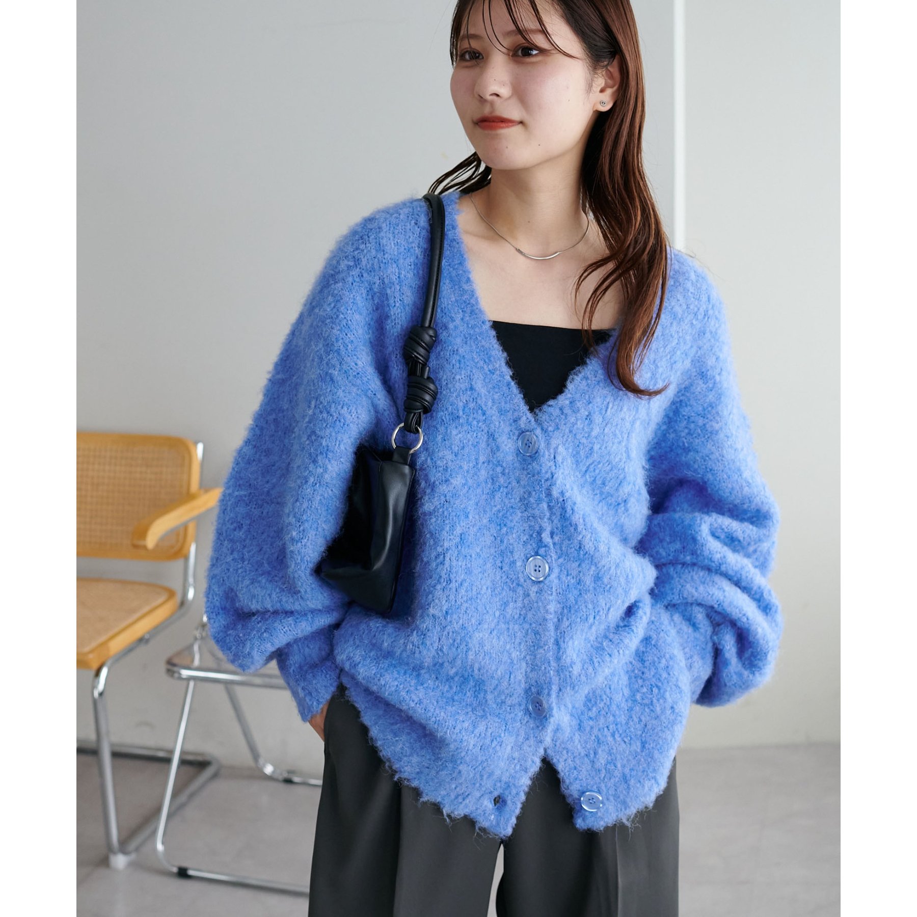【新色追加!/WEB限定】MIXブークレシャギー配色Vネックカーディガン