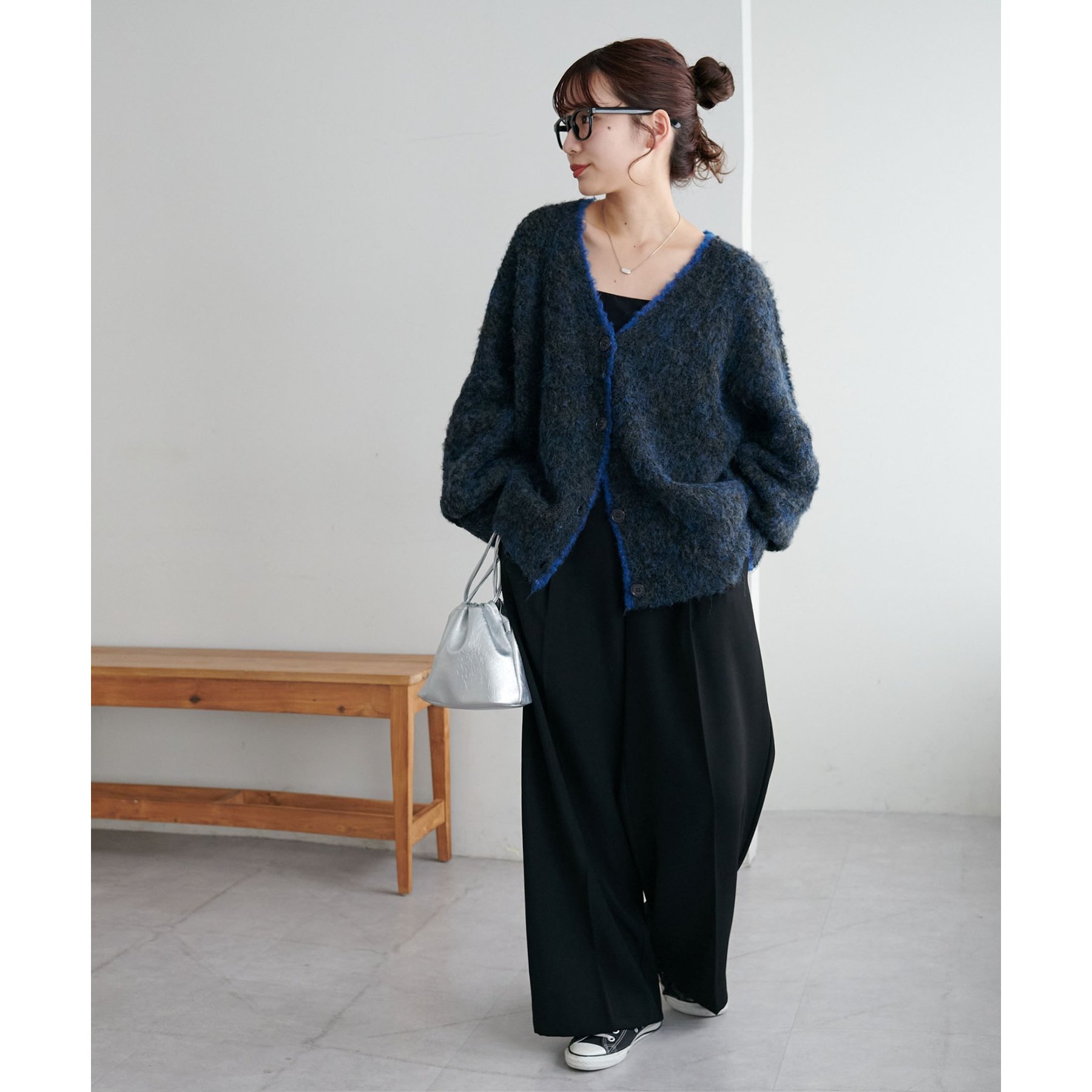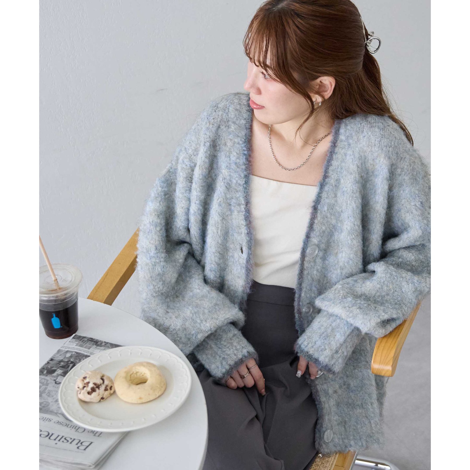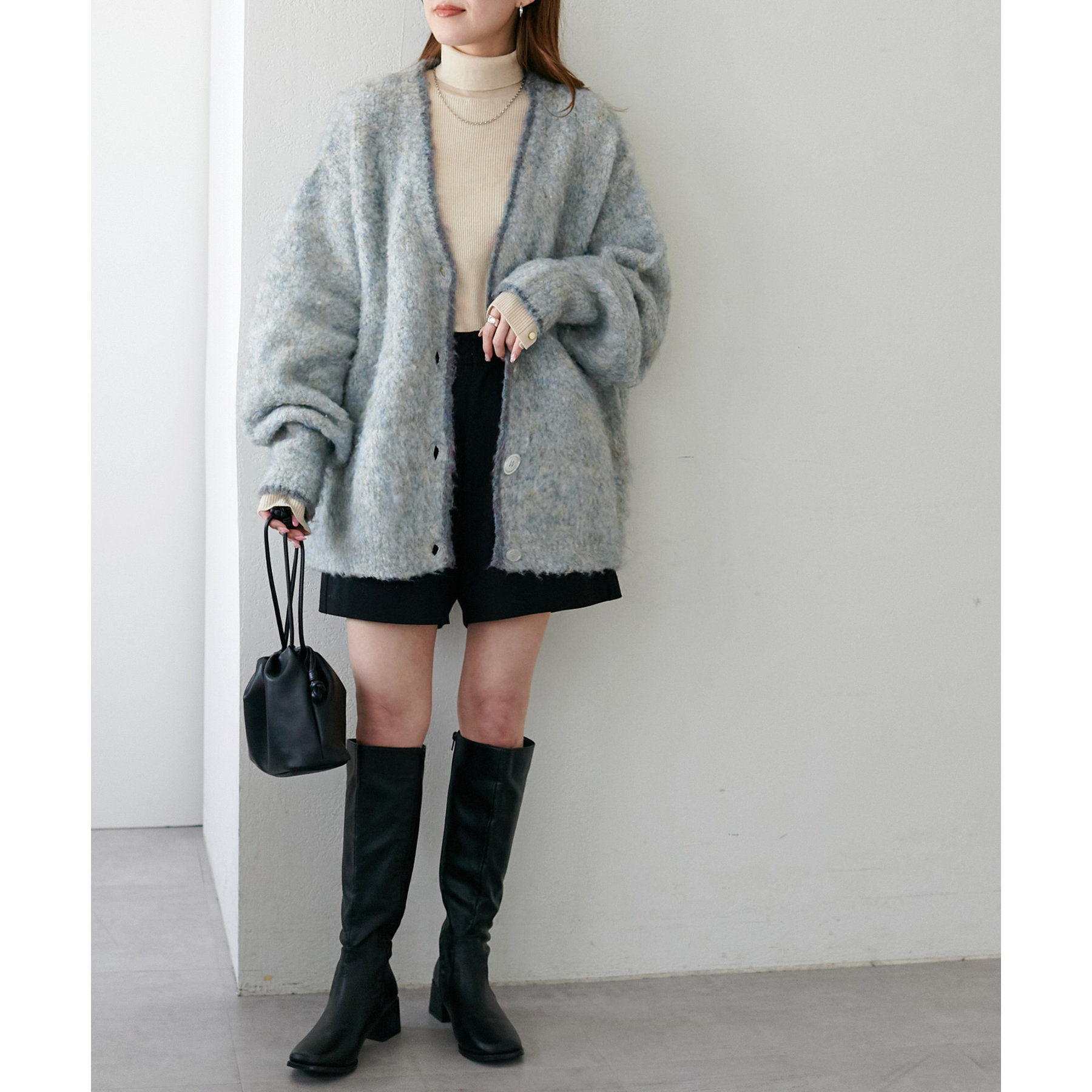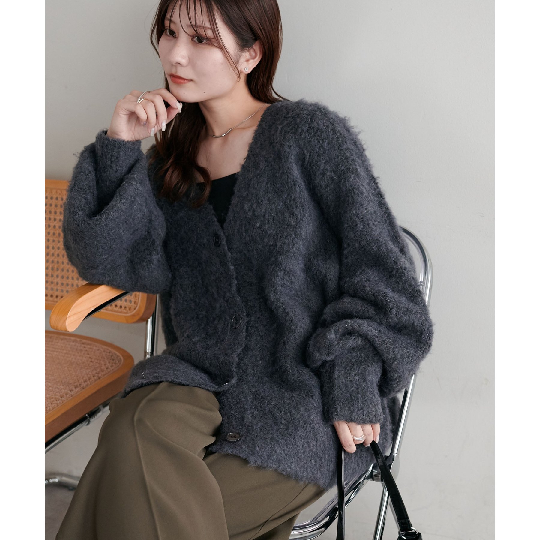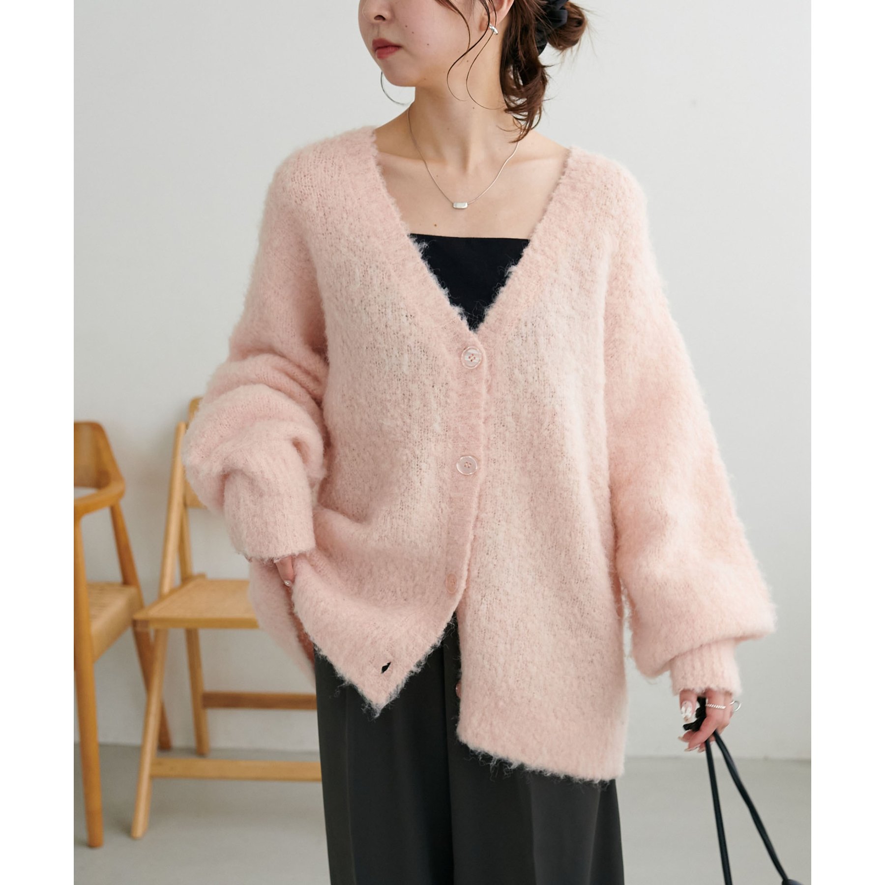 【新色追加!/WEB限定】MIXブークレシャギー配色Vネックカーディガン