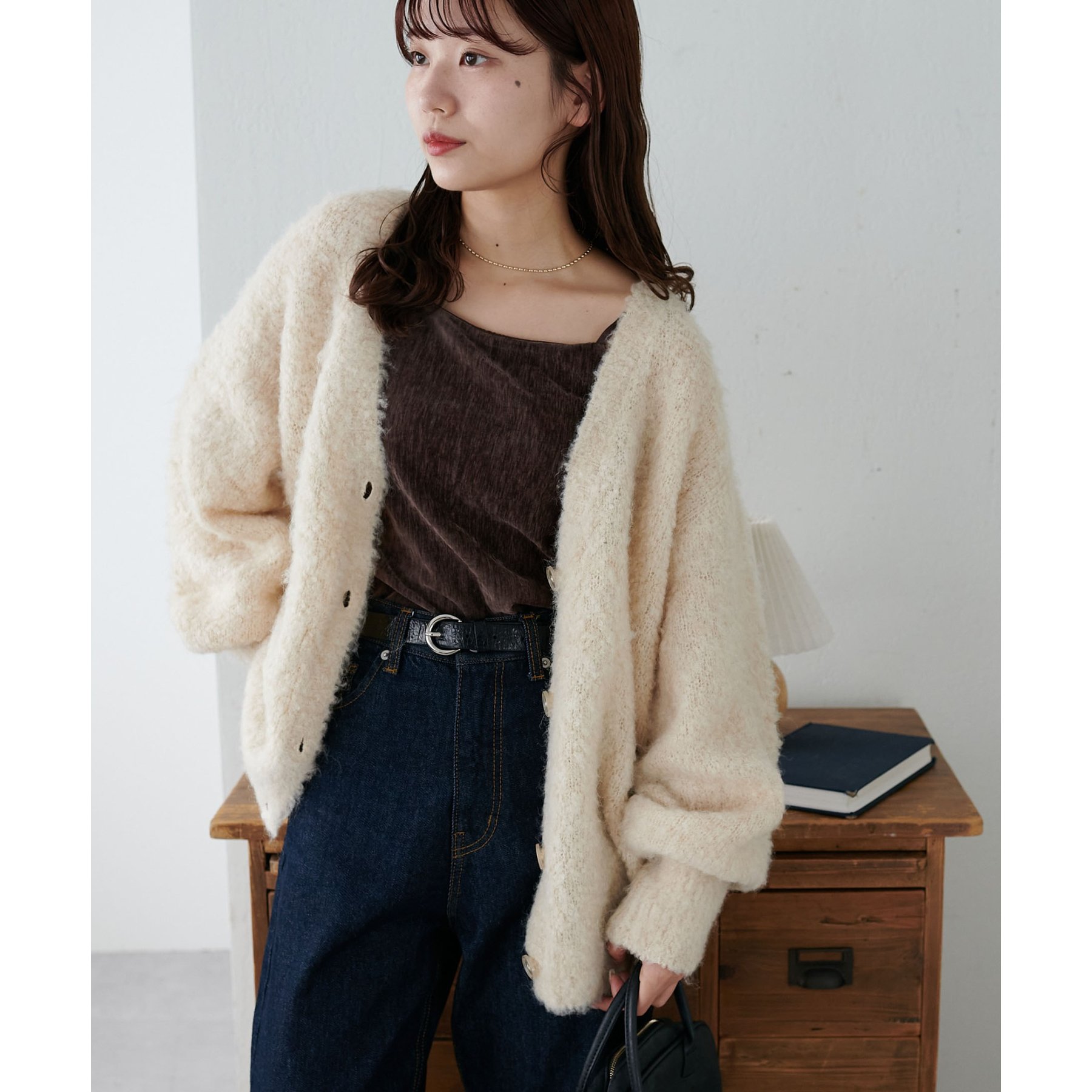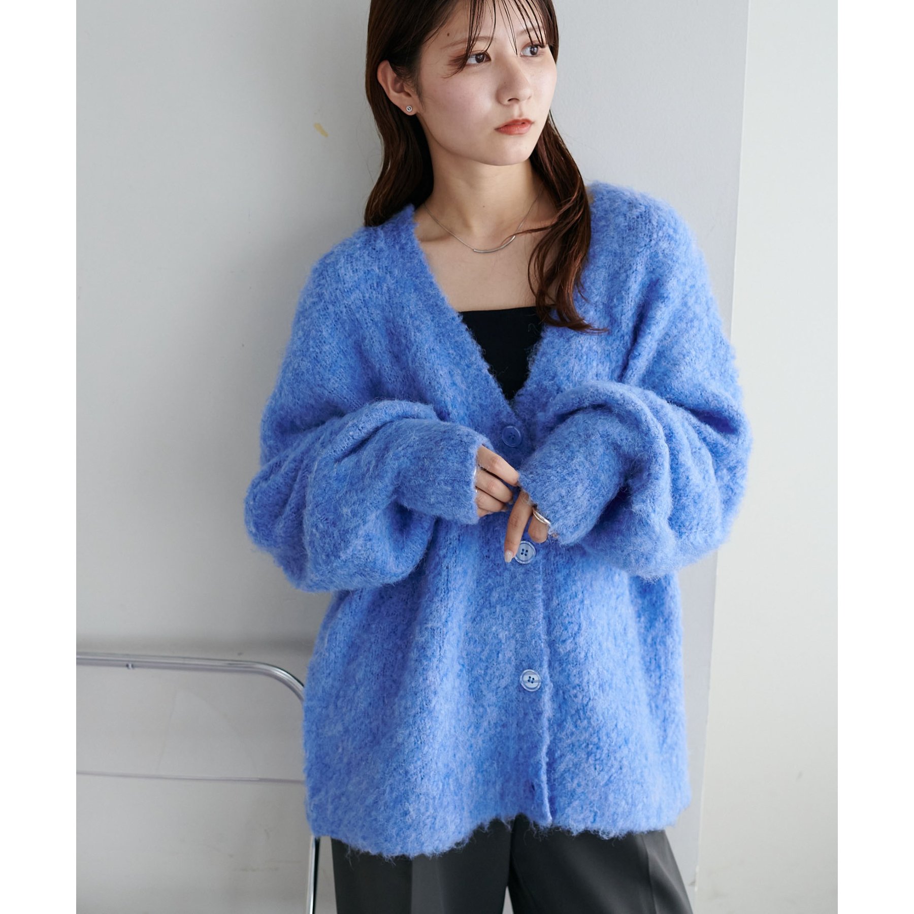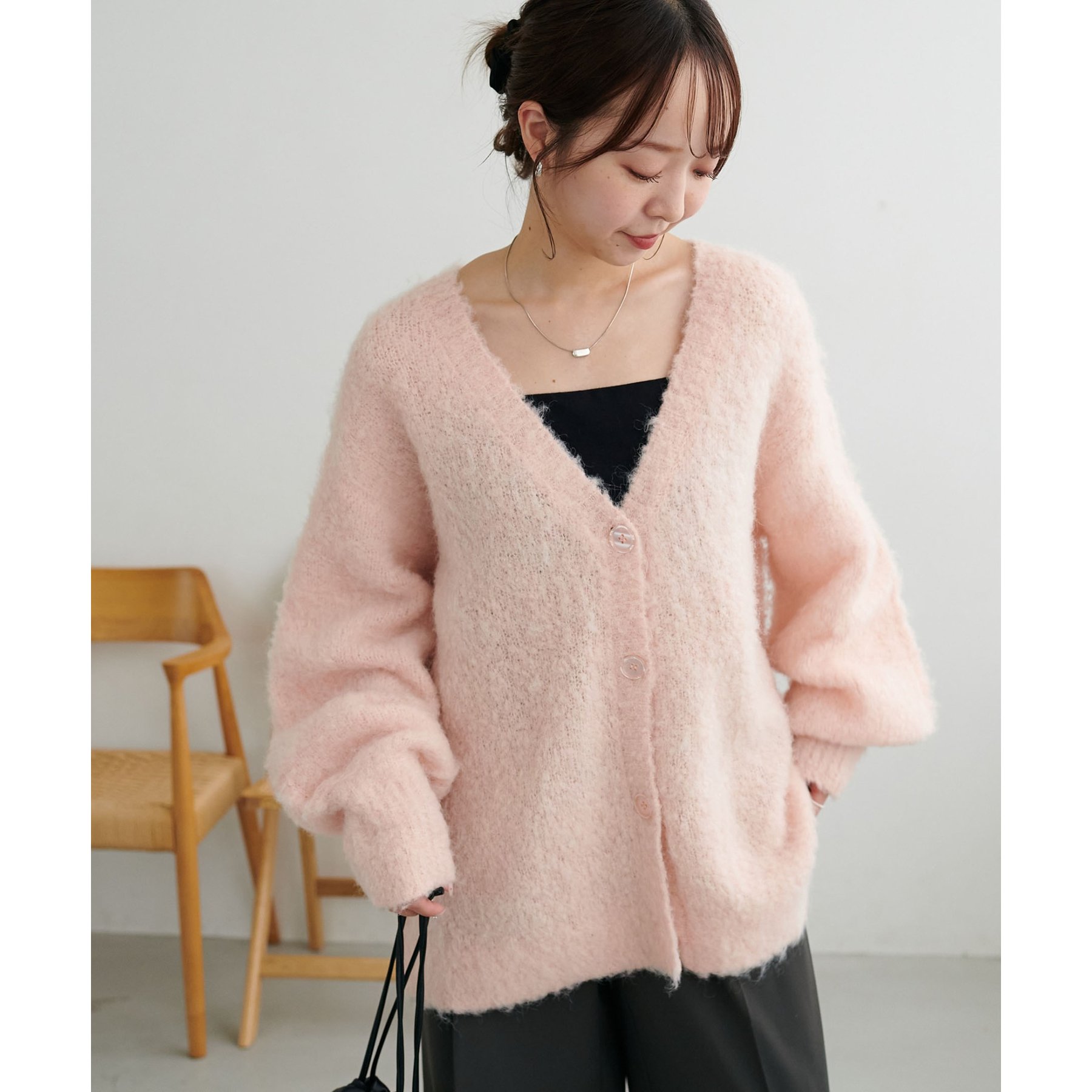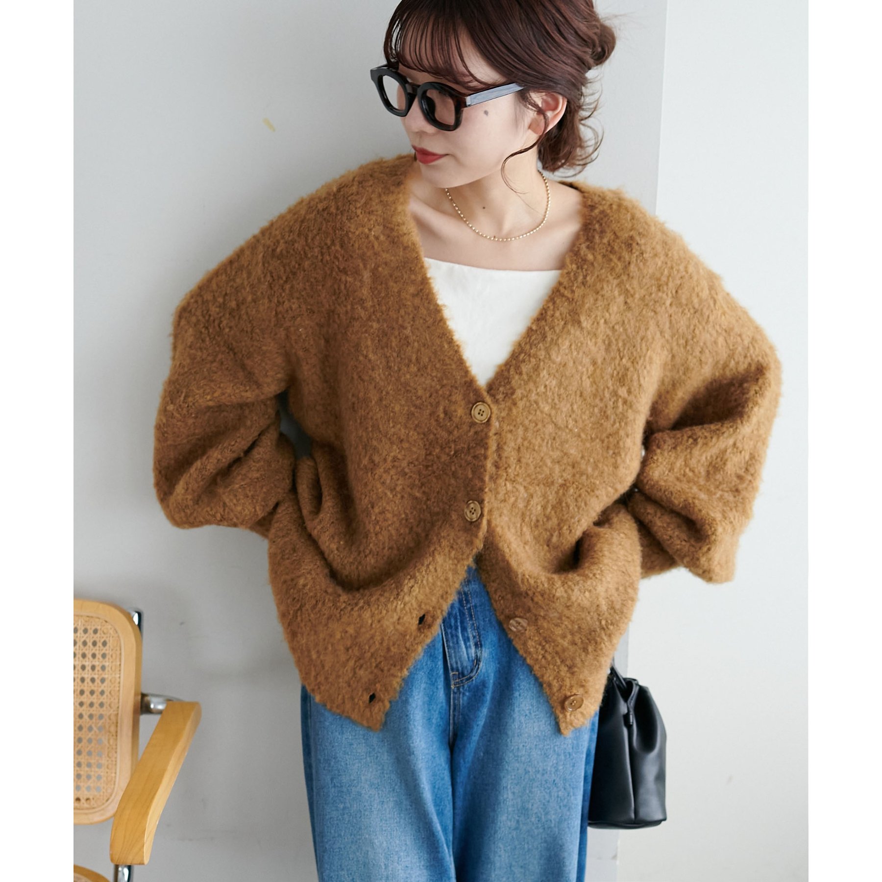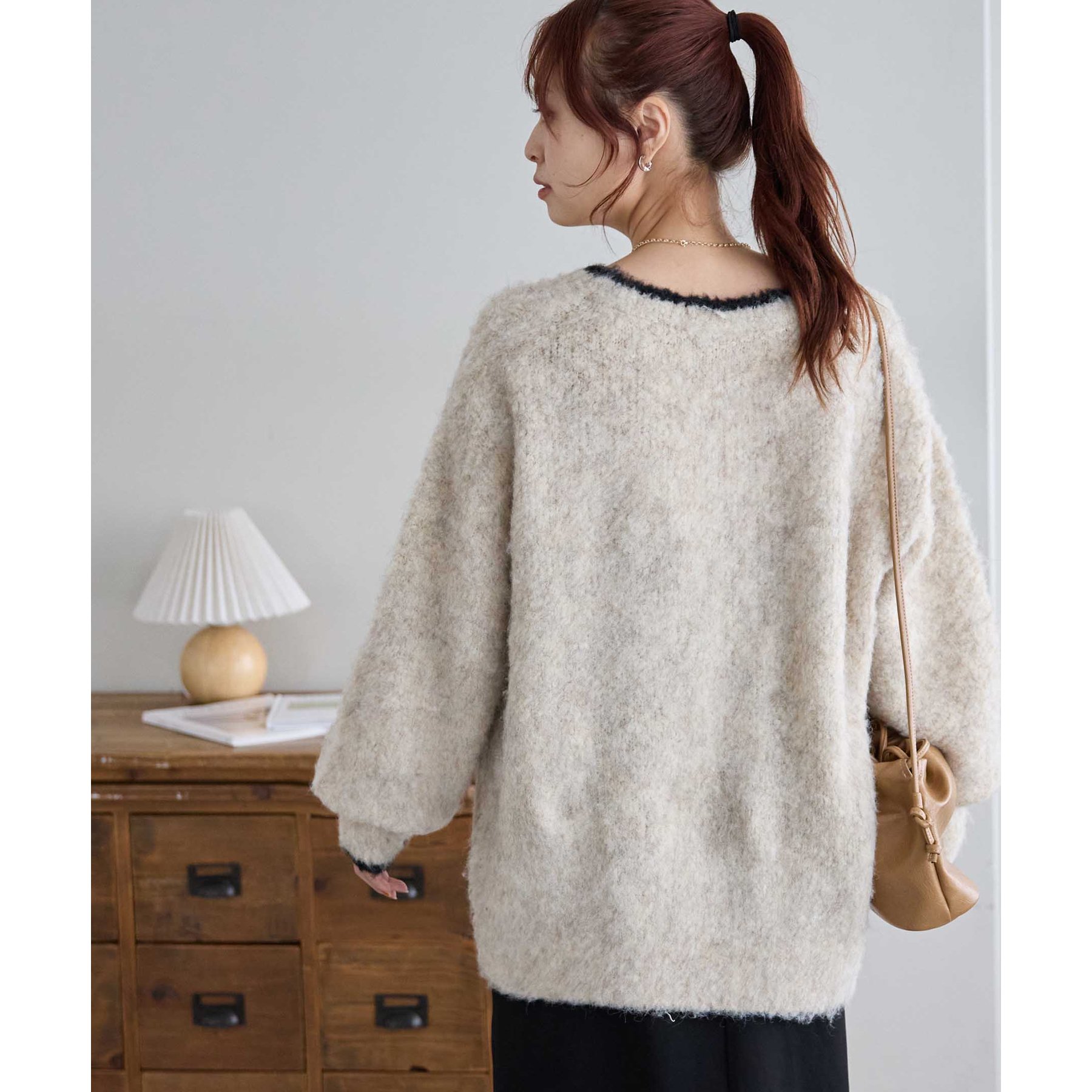 【新色追加!/WEB限定】MIXブークレシャギー配色Vネックカーディガン