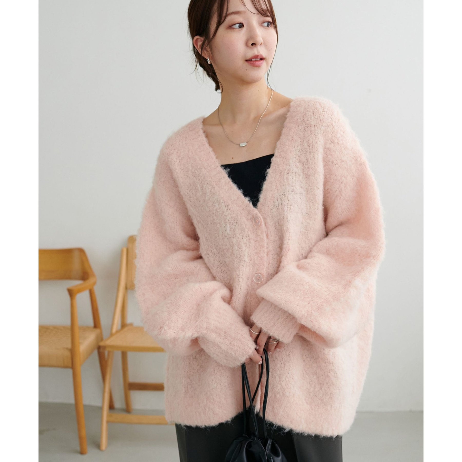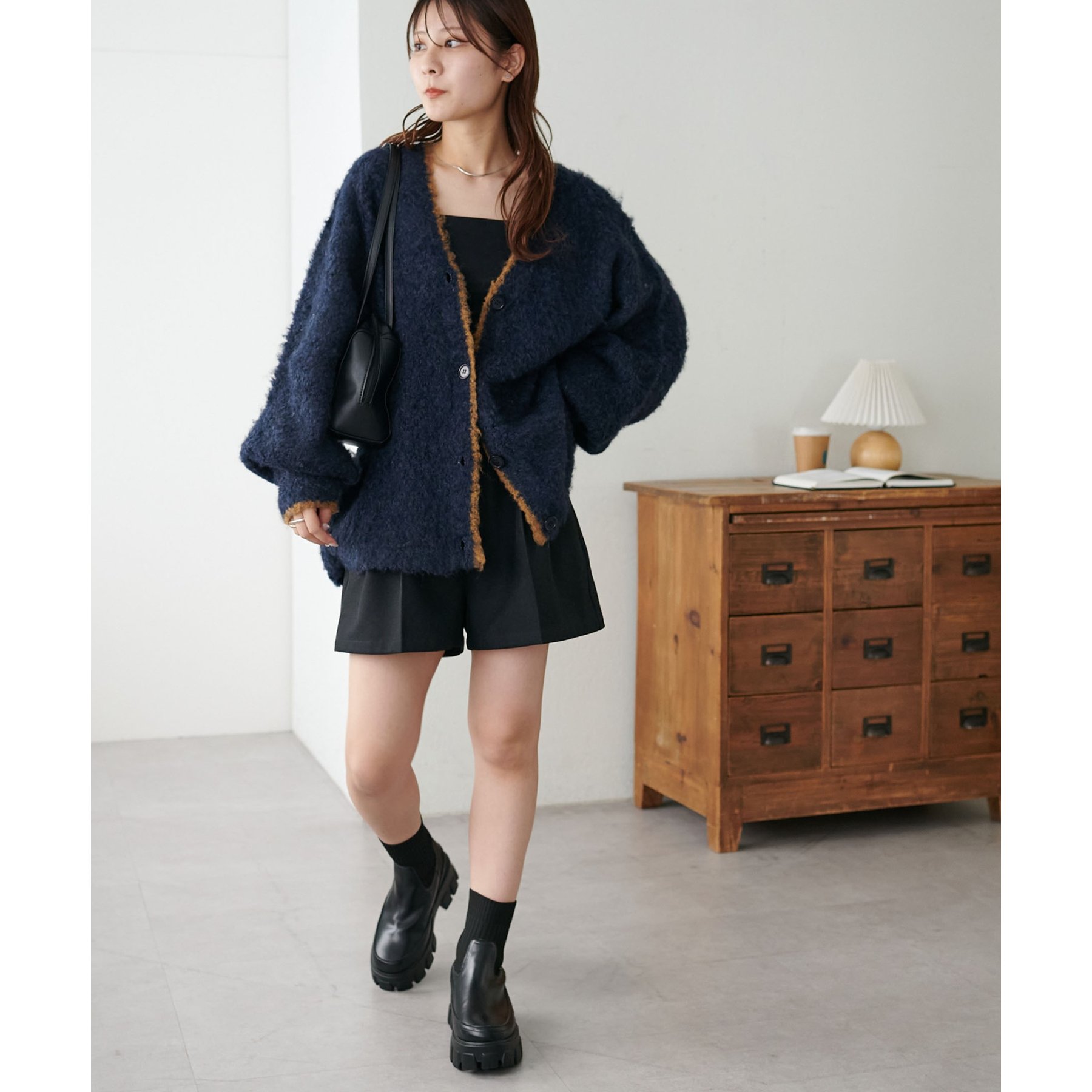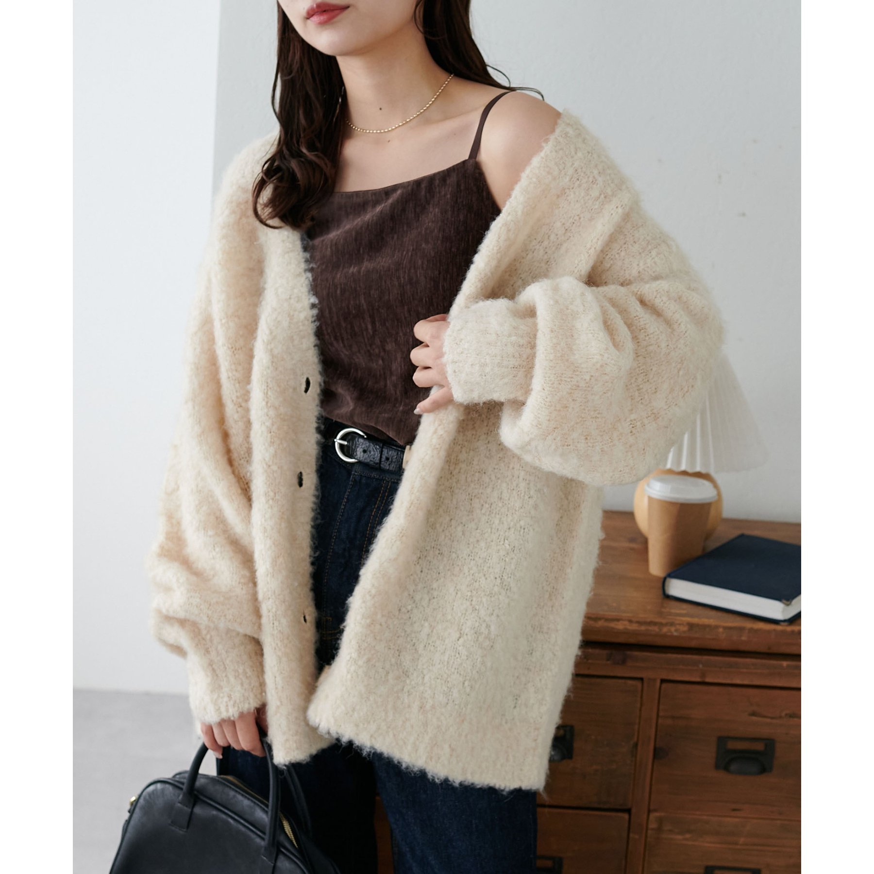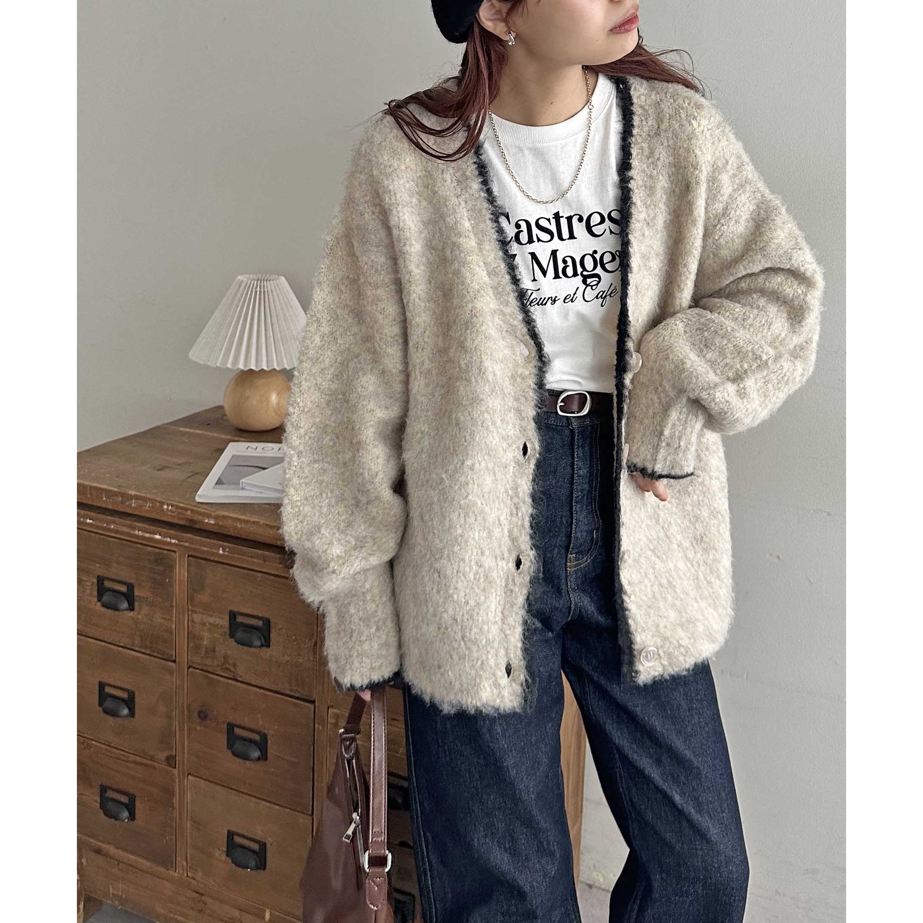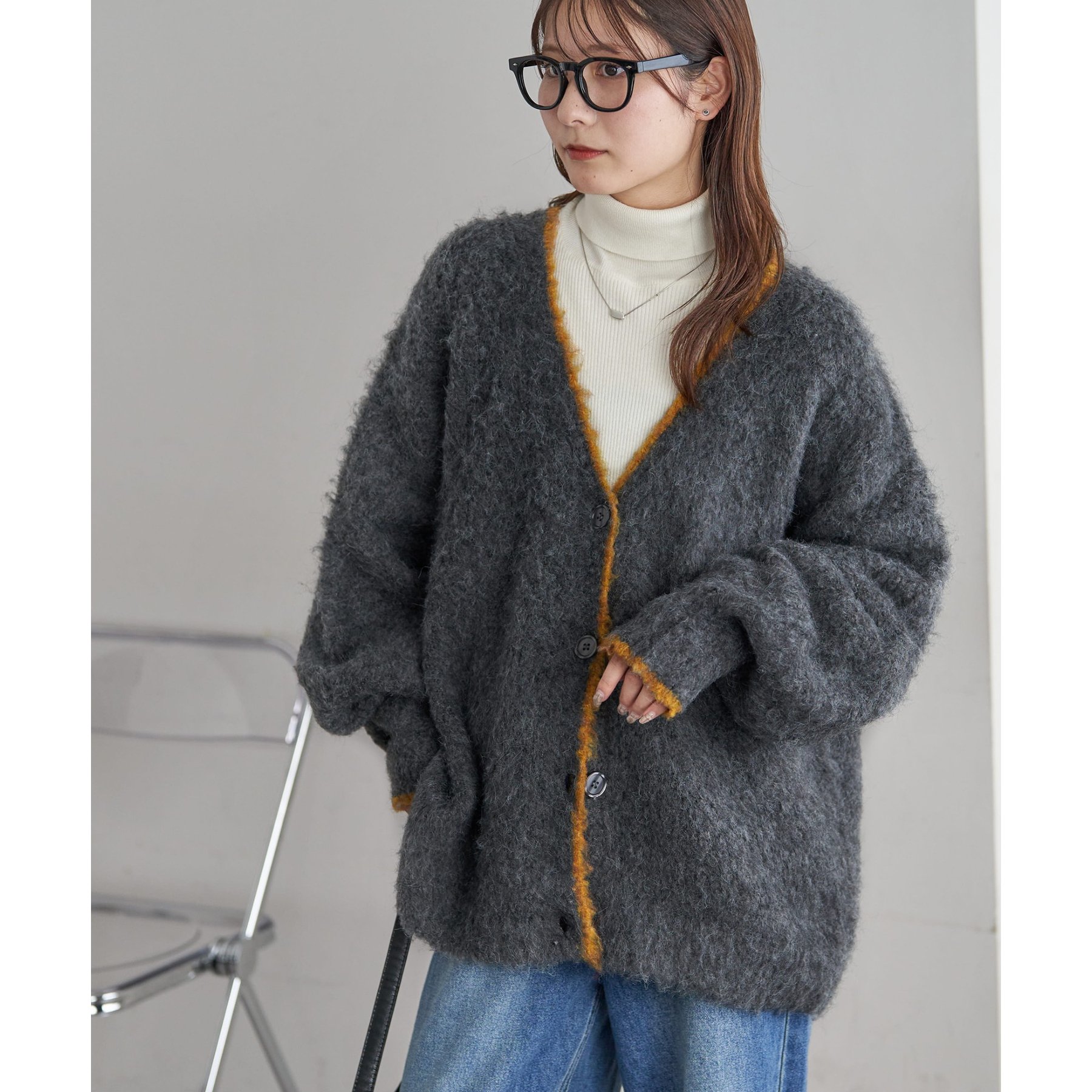 【新色追加!/WEB限定】MIXブークレシャギー配色Vネックカーディガン