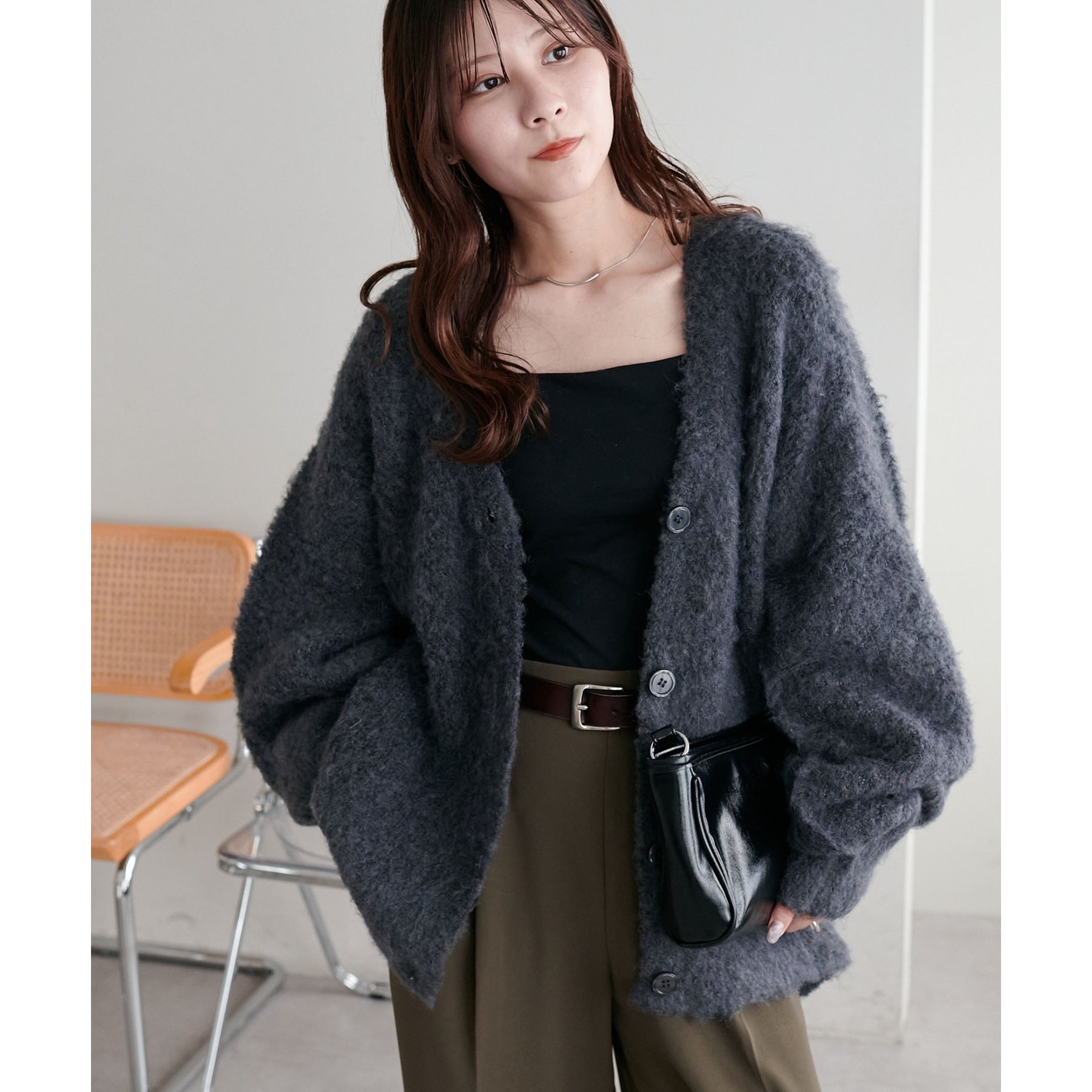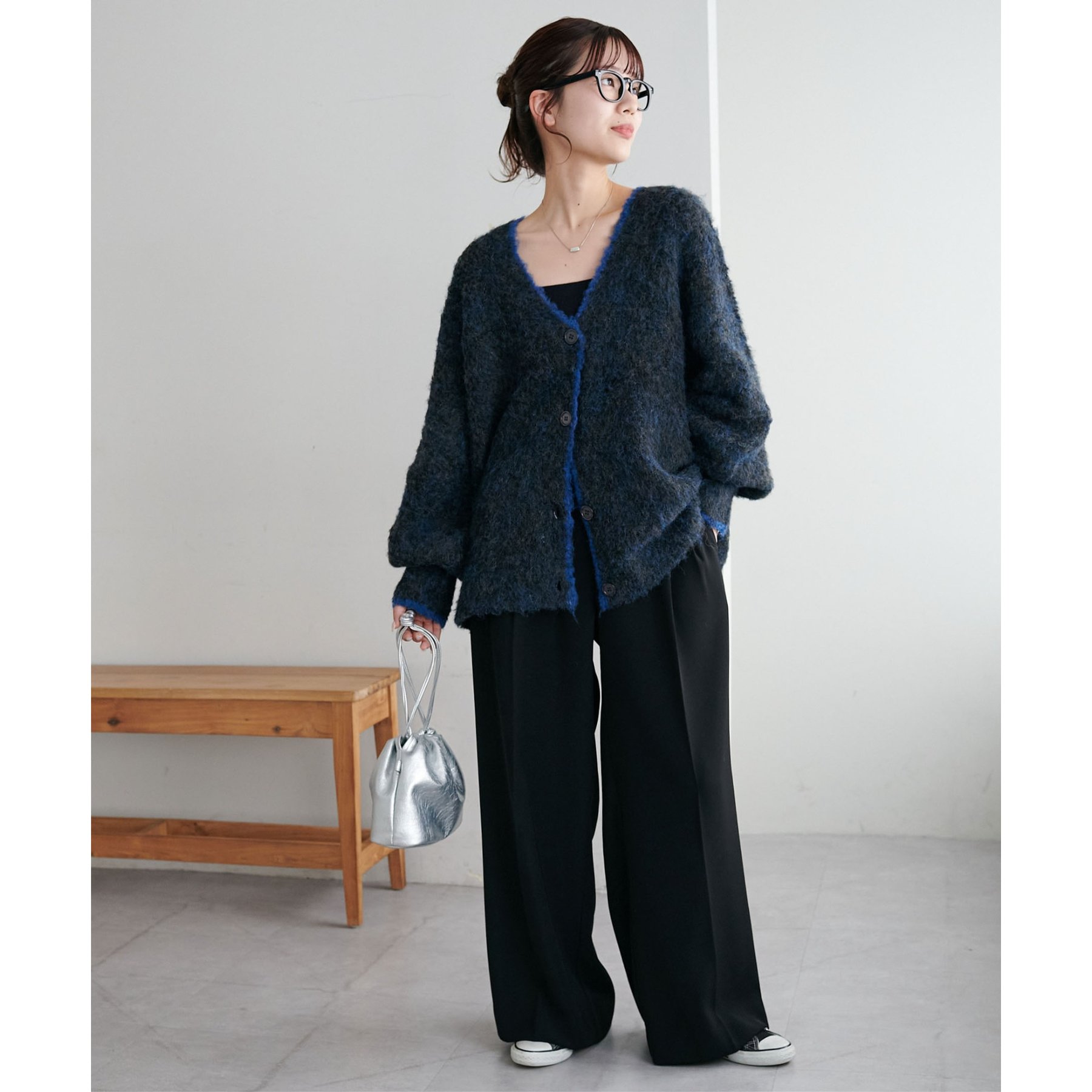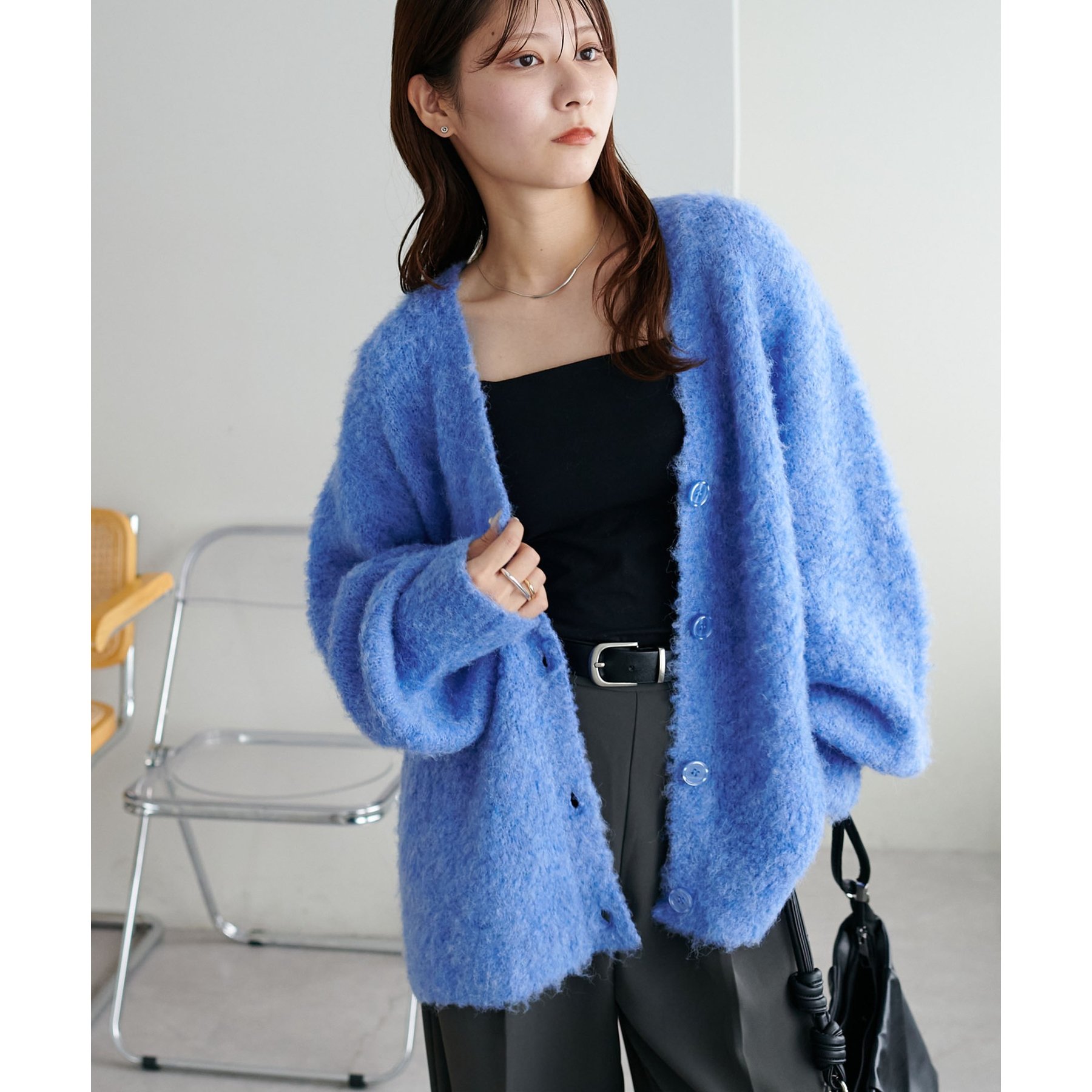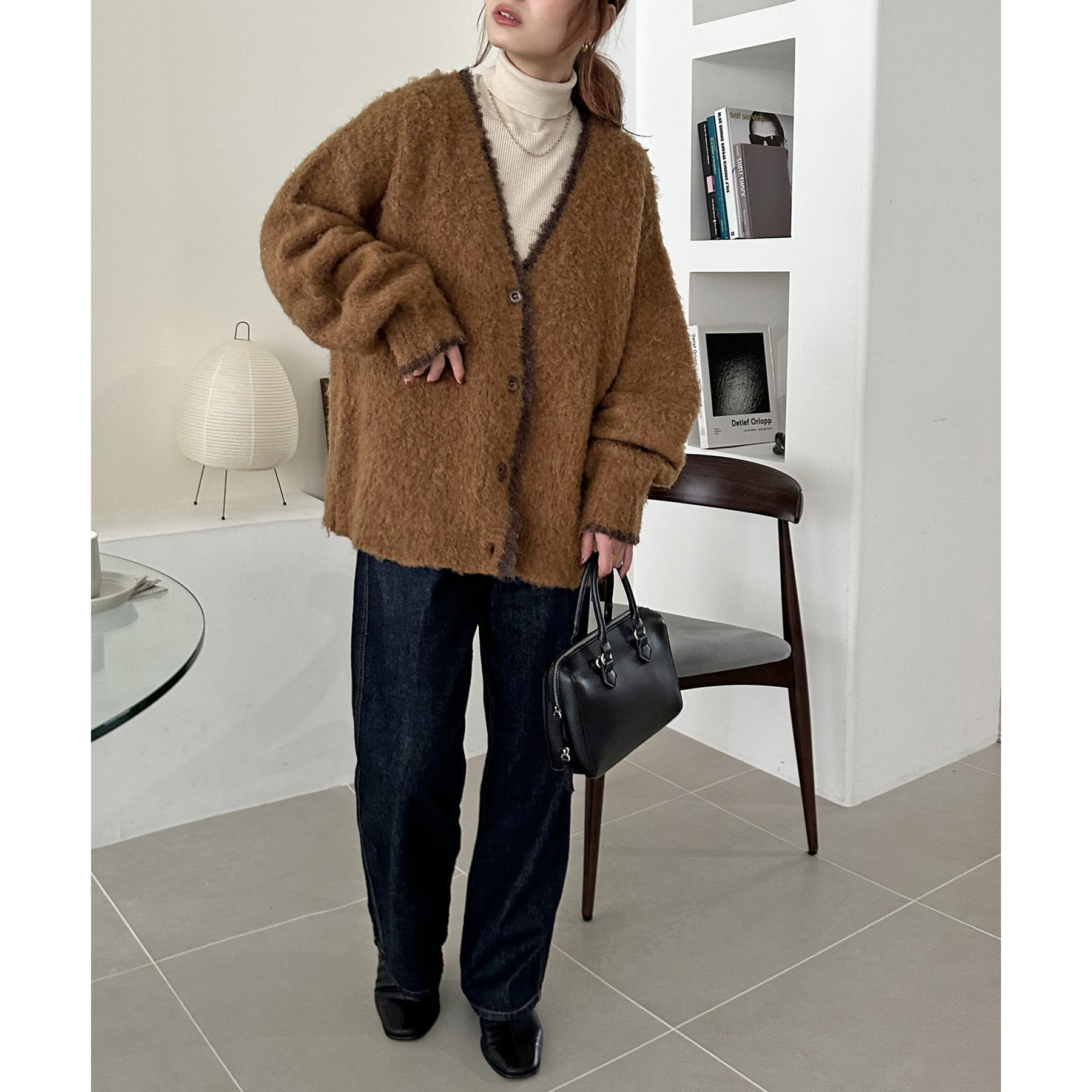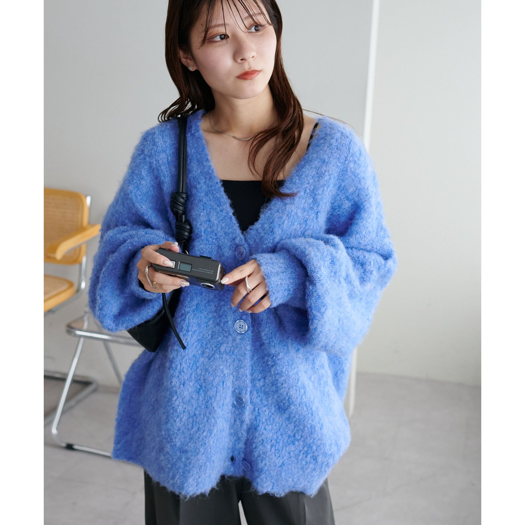 【新色追加!/WEB限定】MIXブークレシャギー配色Vネックカーディガン