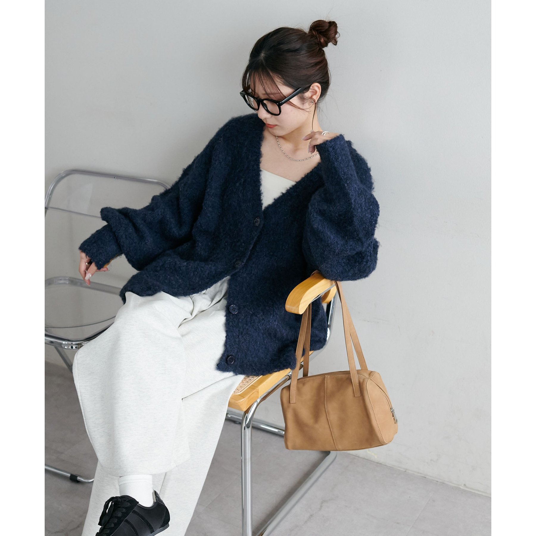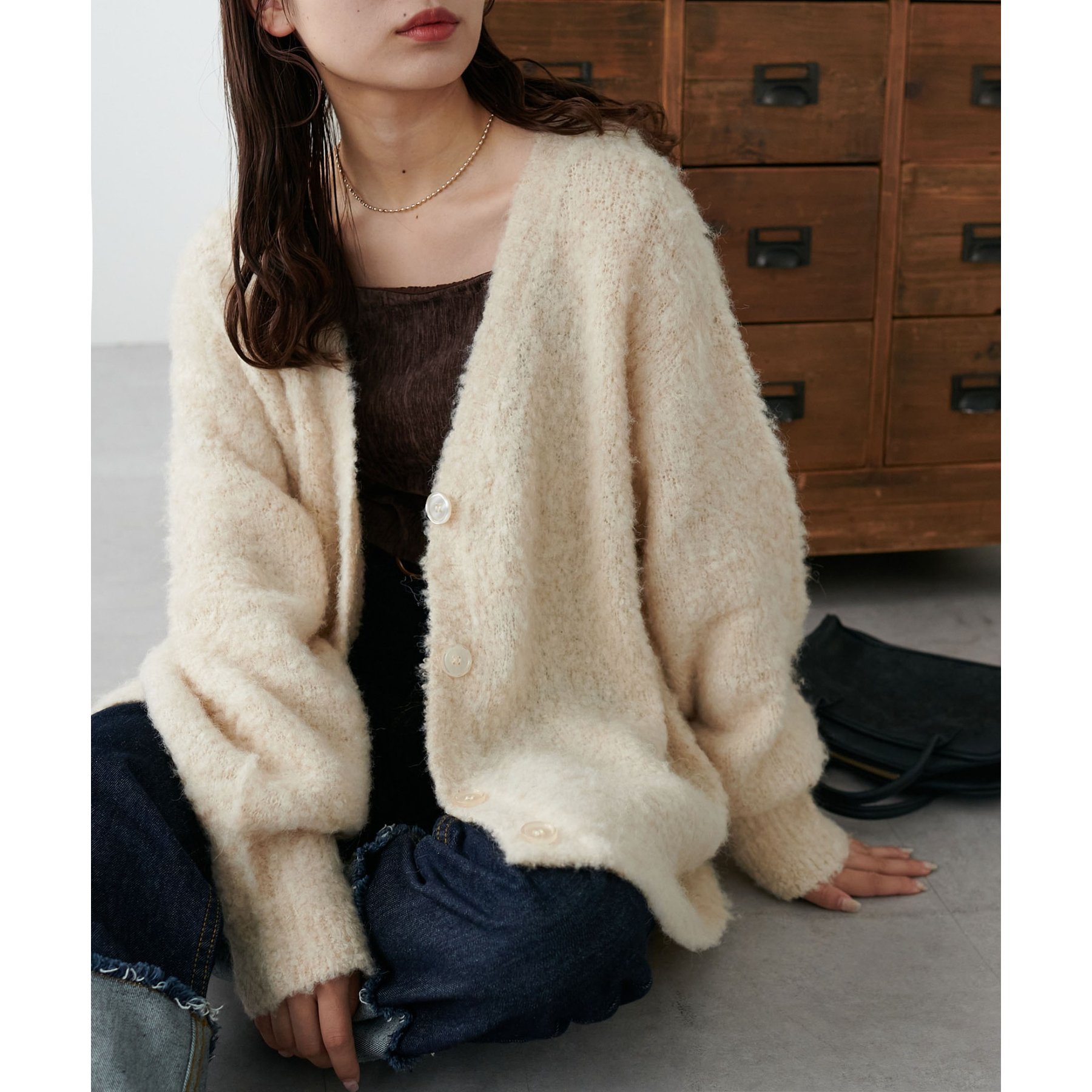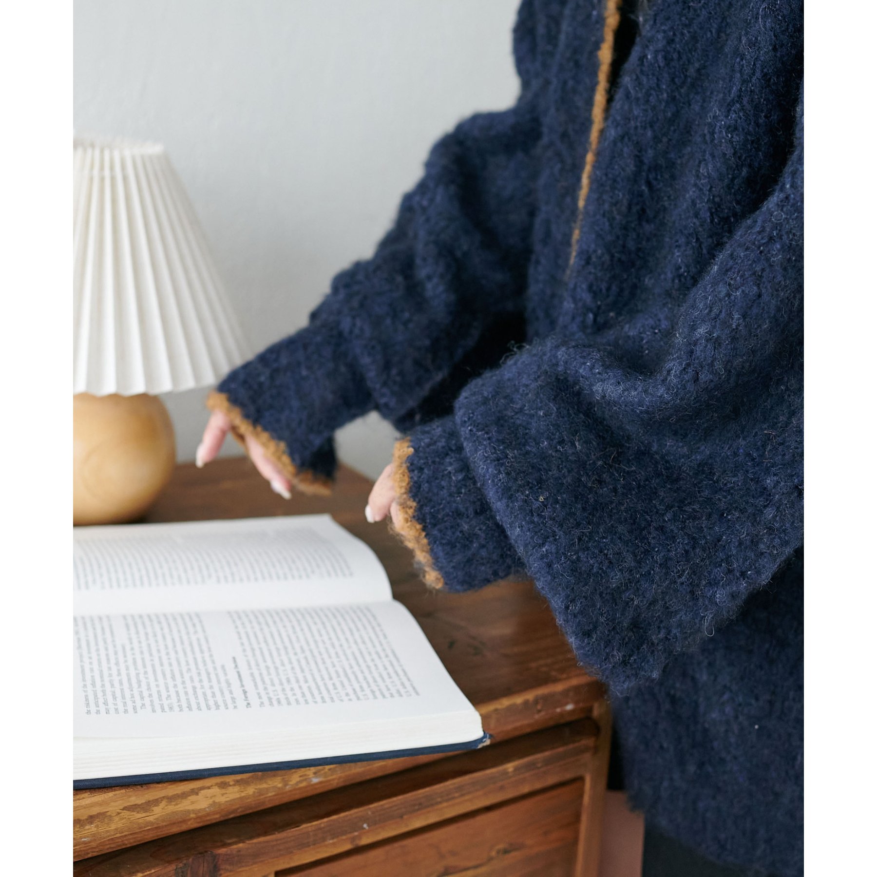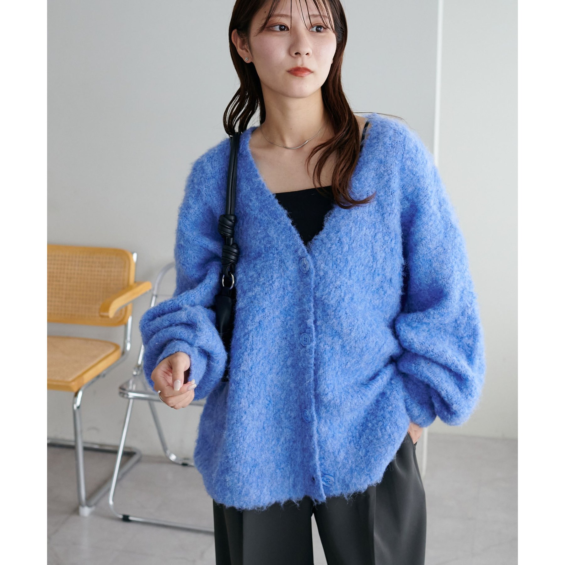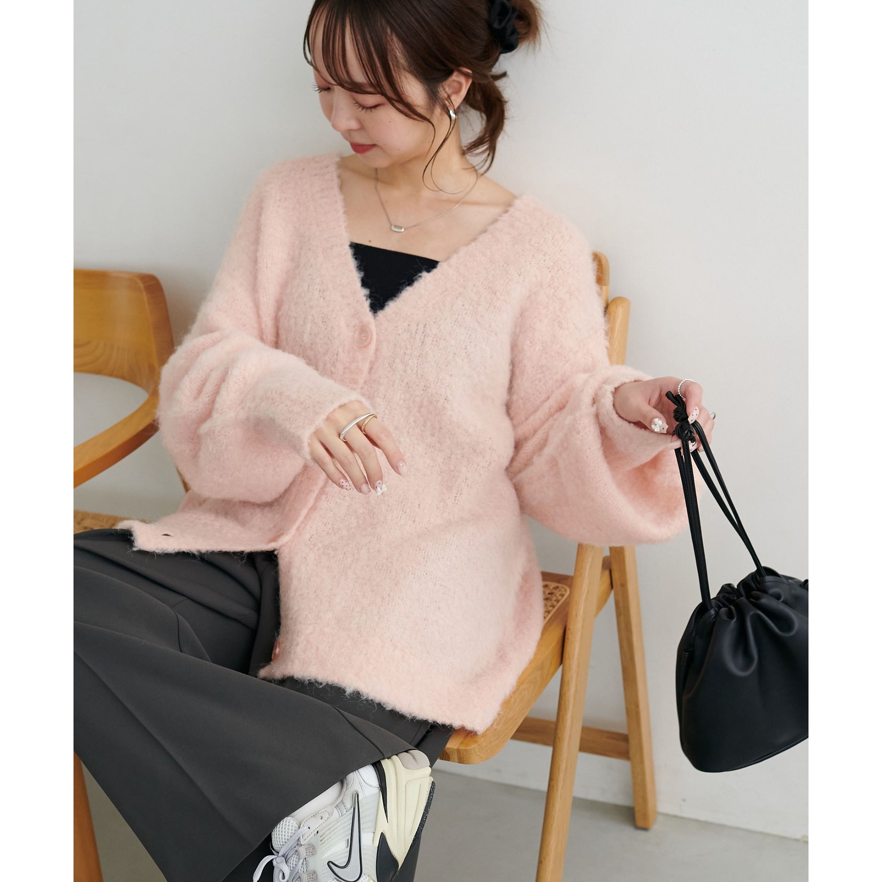 【新色追加!/WEB限定】MIXブークレシャギー配色Vネックカーディガン