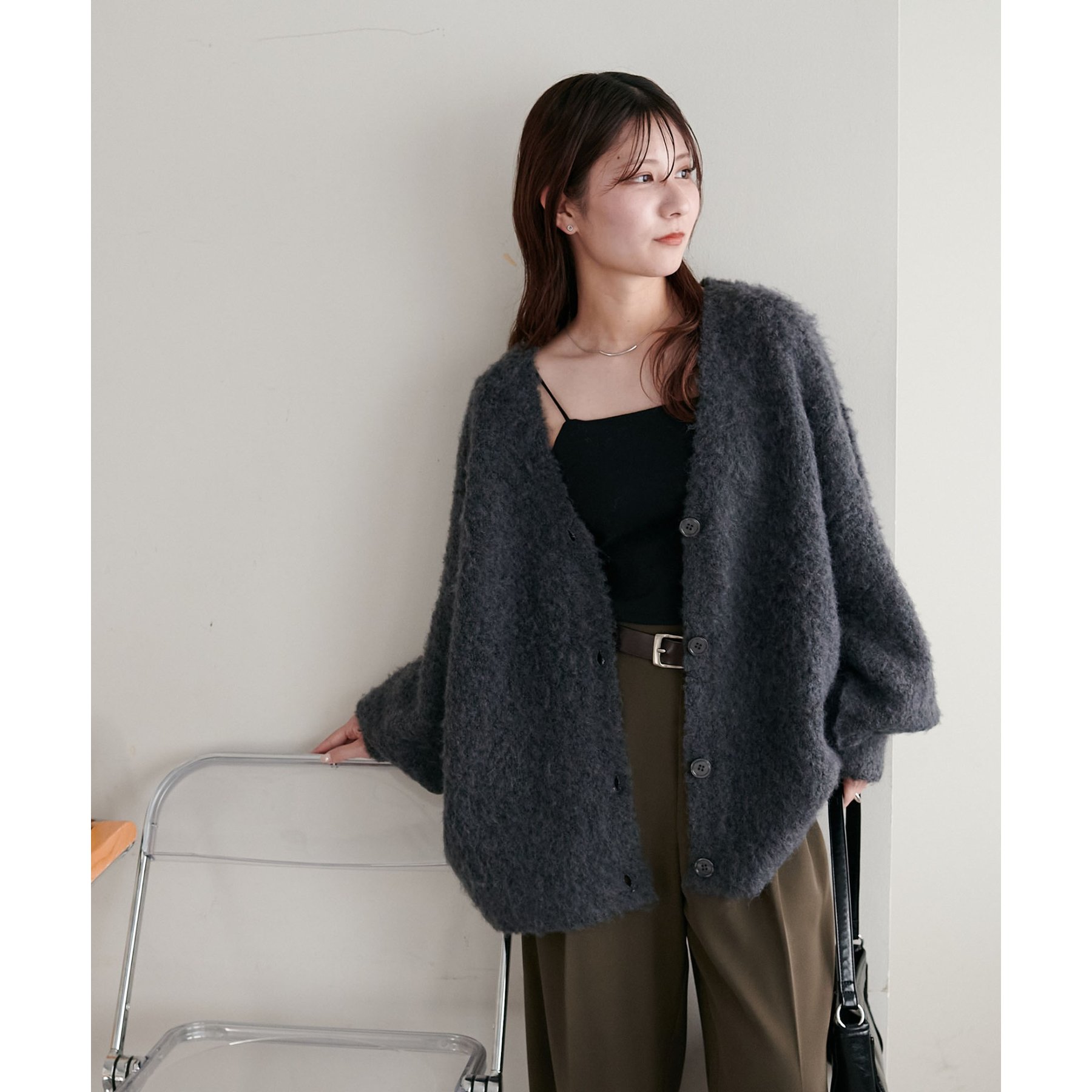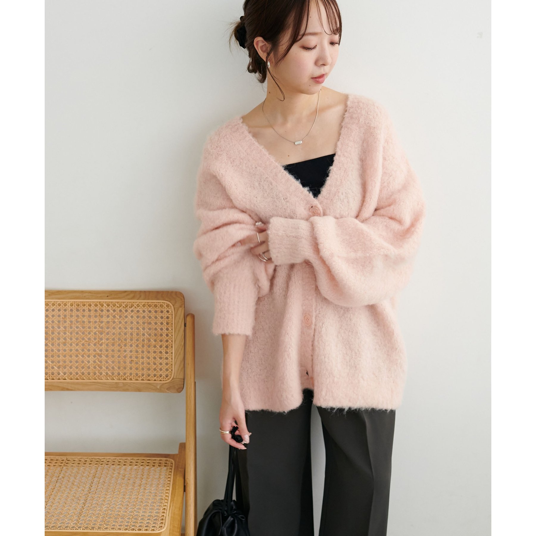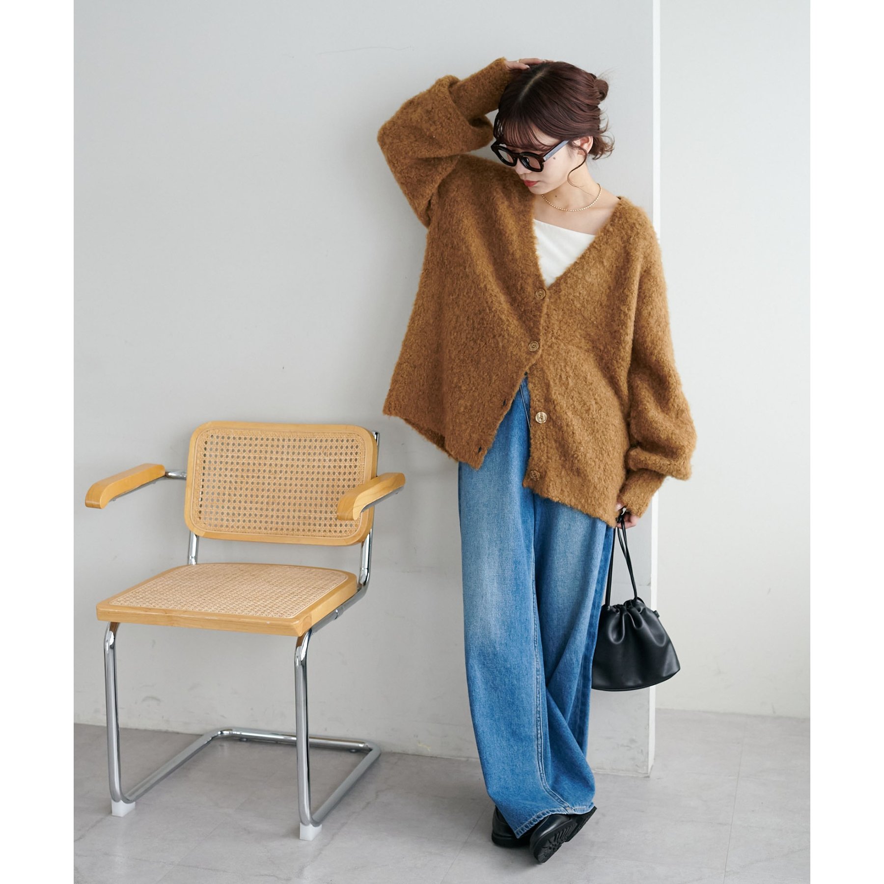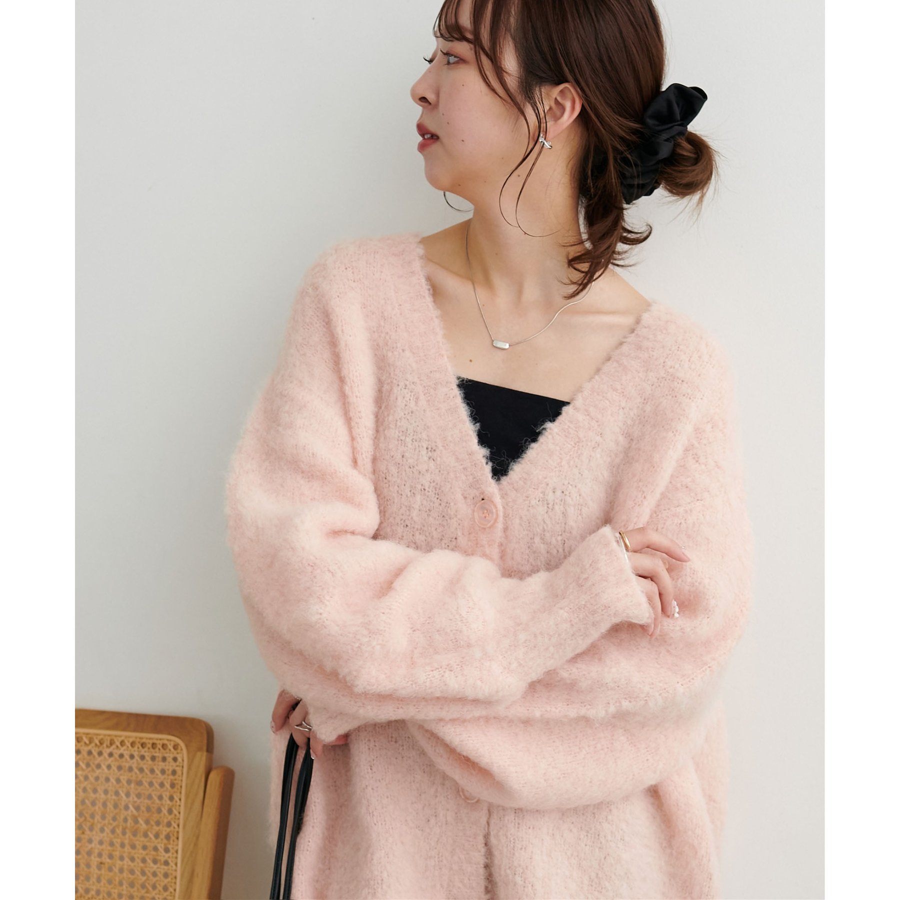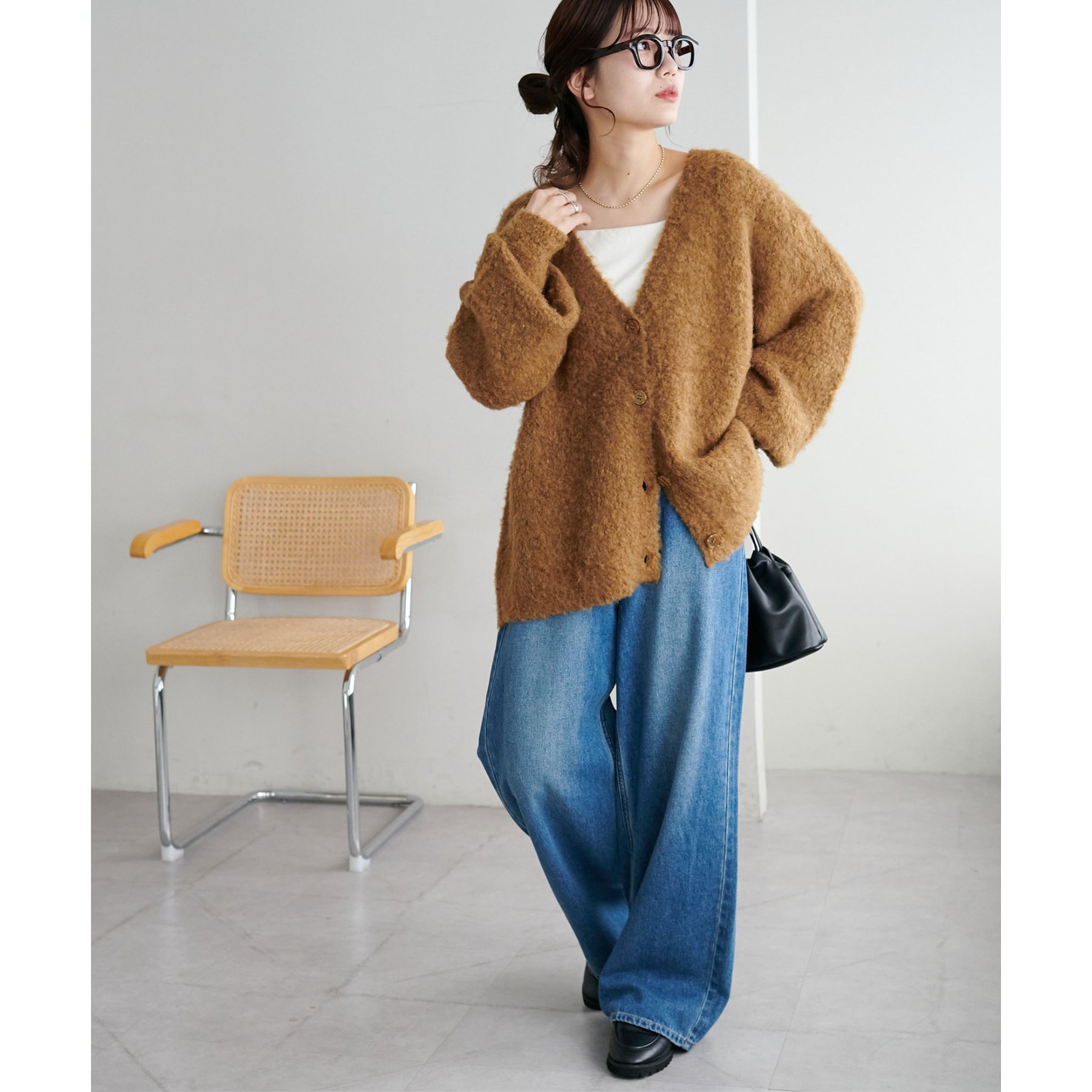 【新色追加!/WEB限定】MIXブークレシャギー配色Vネックカーディガン
