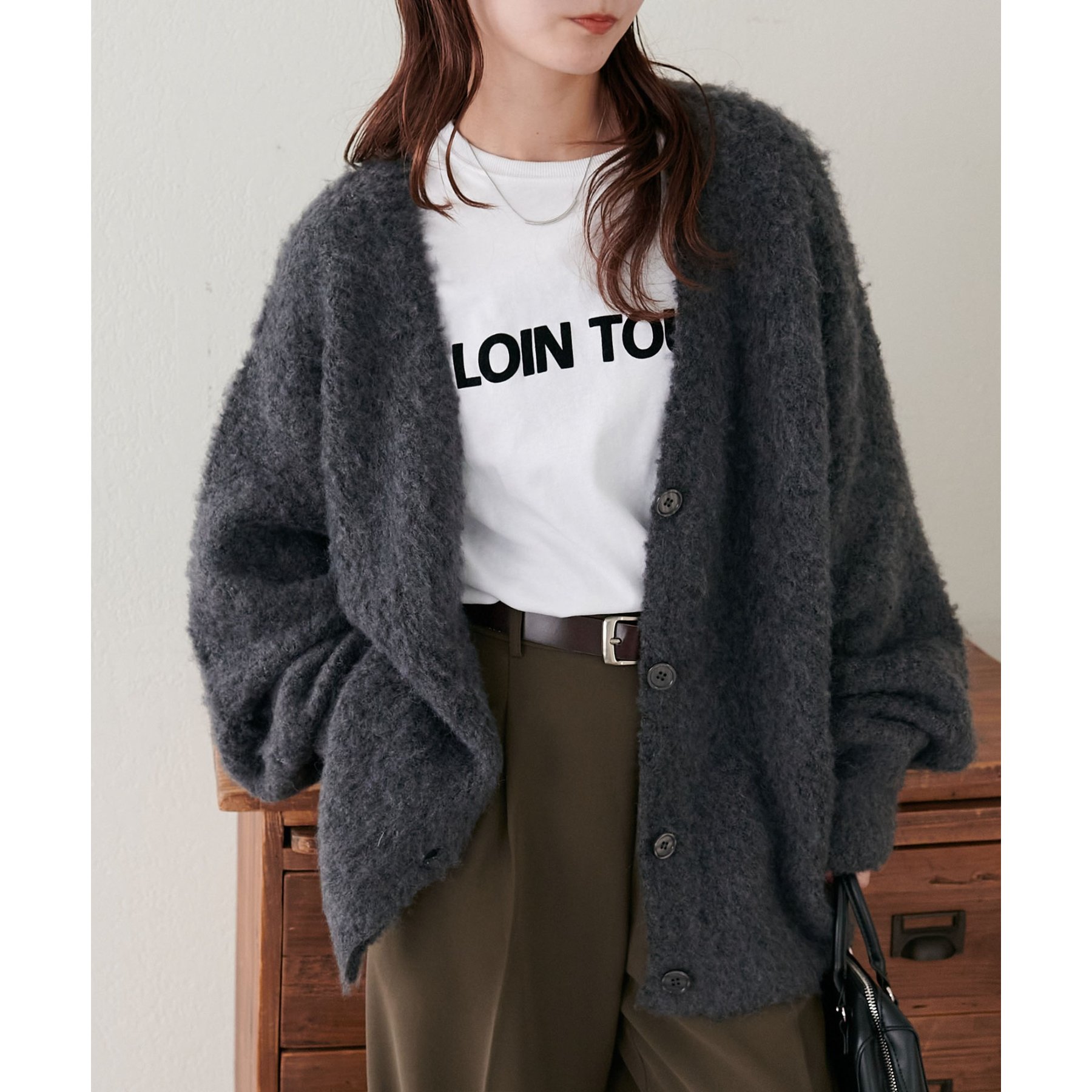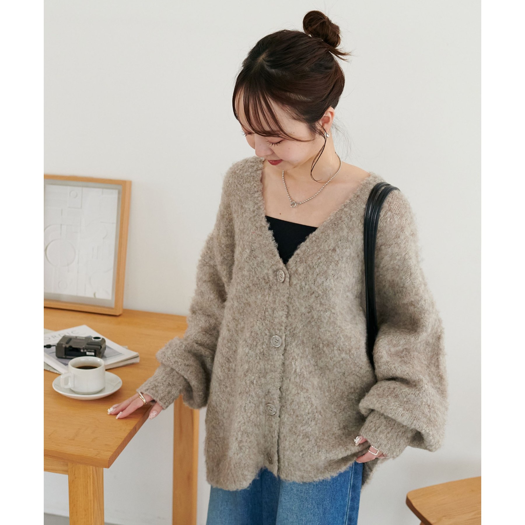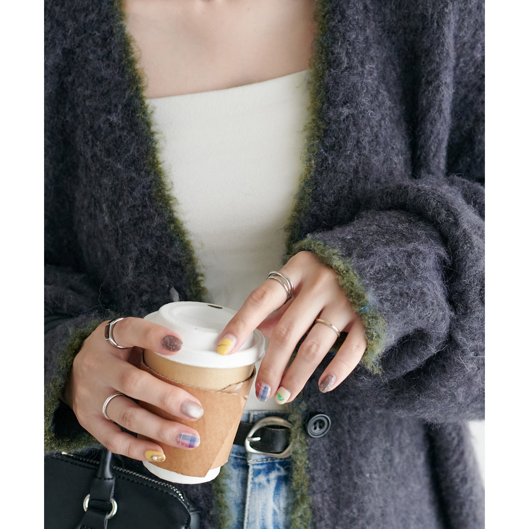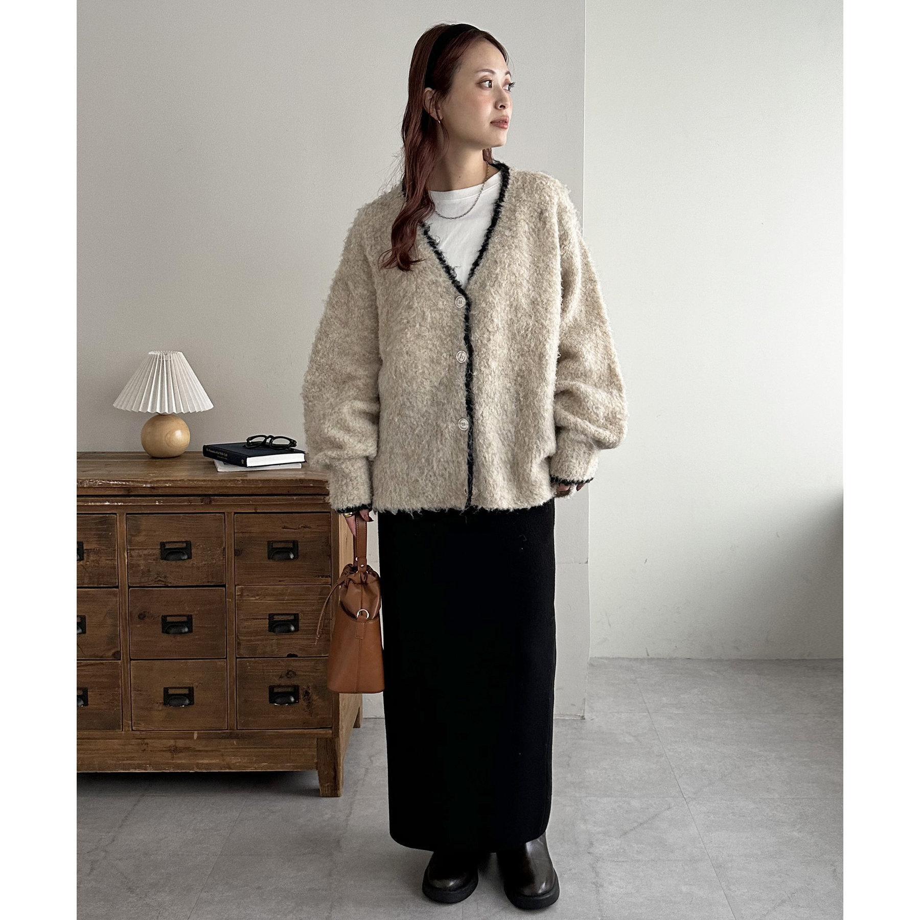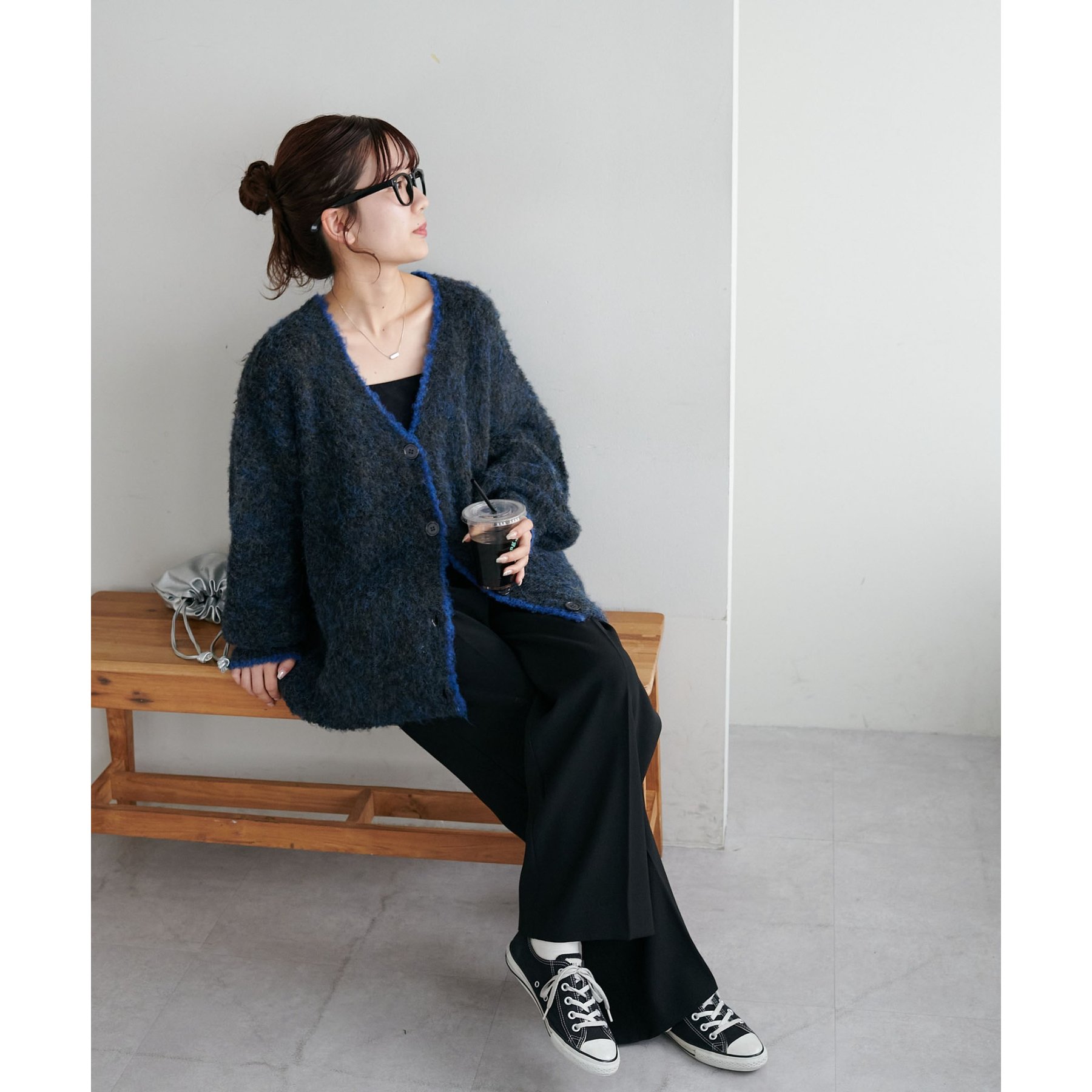 【新色追加!/WEB限定】MIXブークレシャギー配色Vネックカーディガン