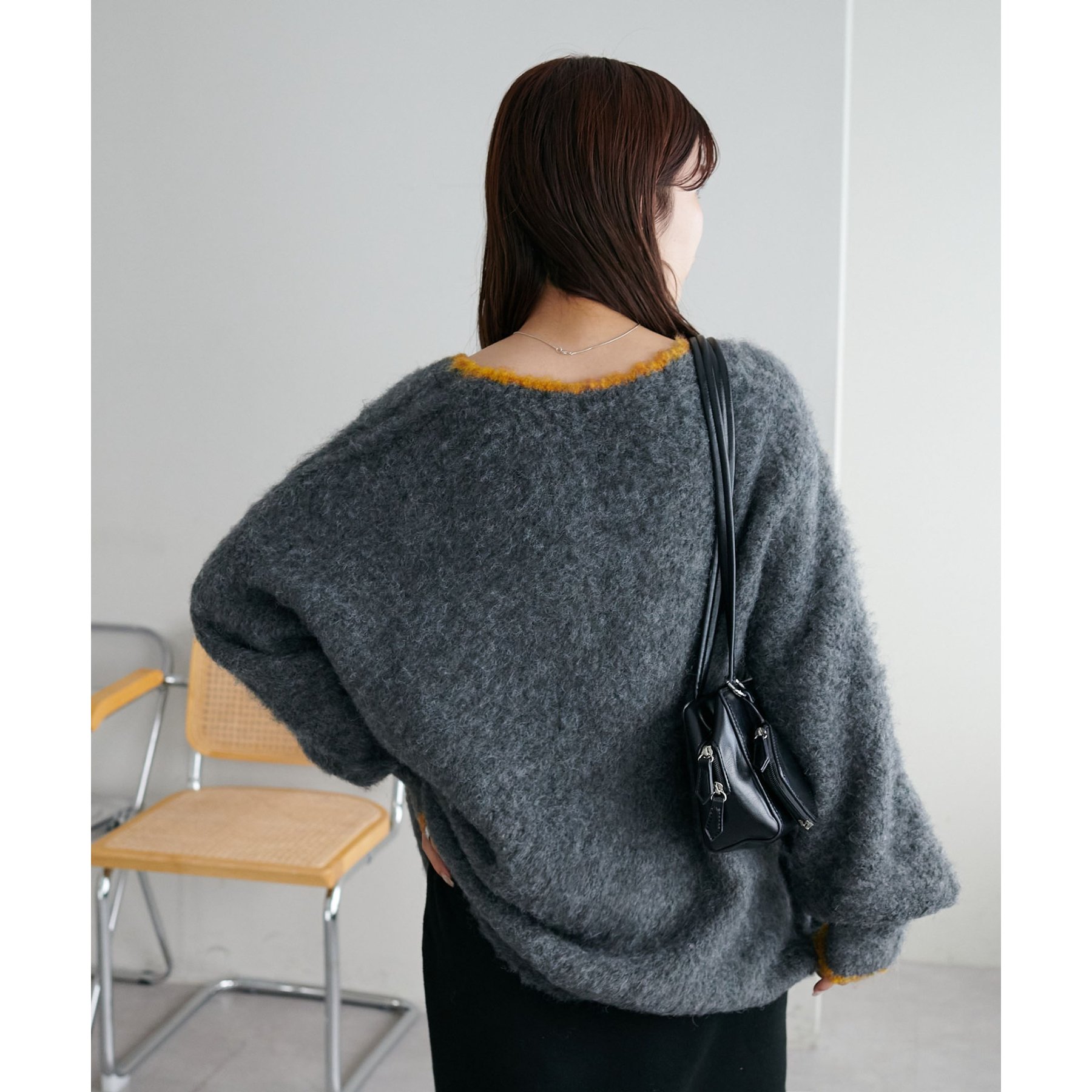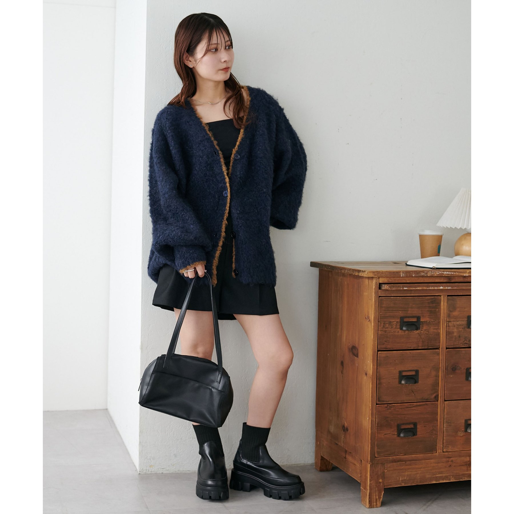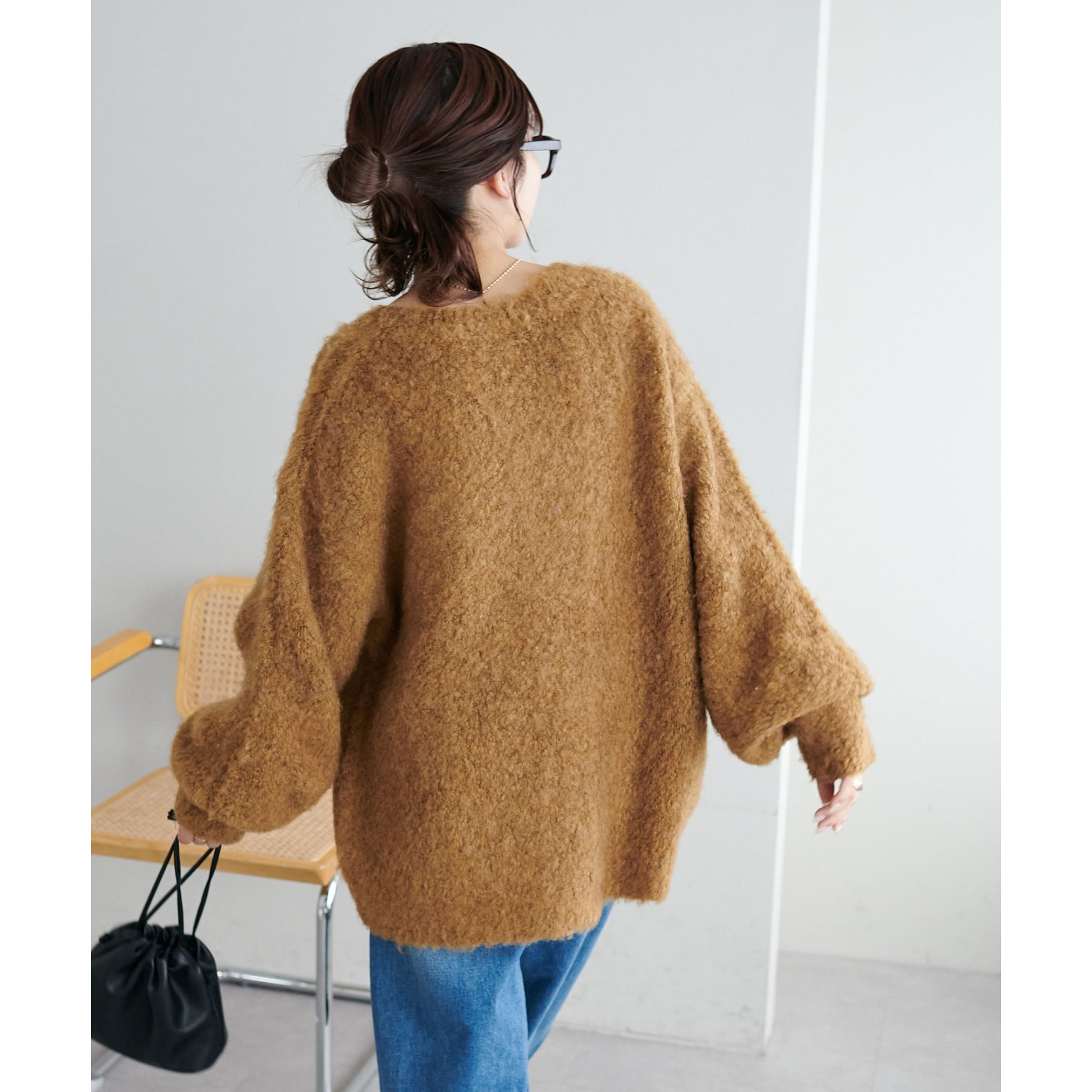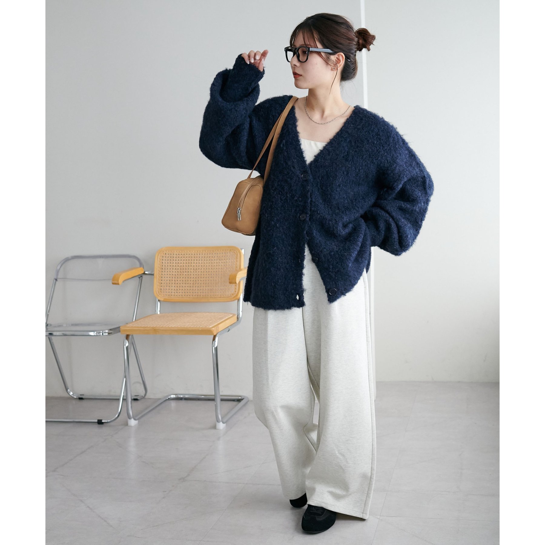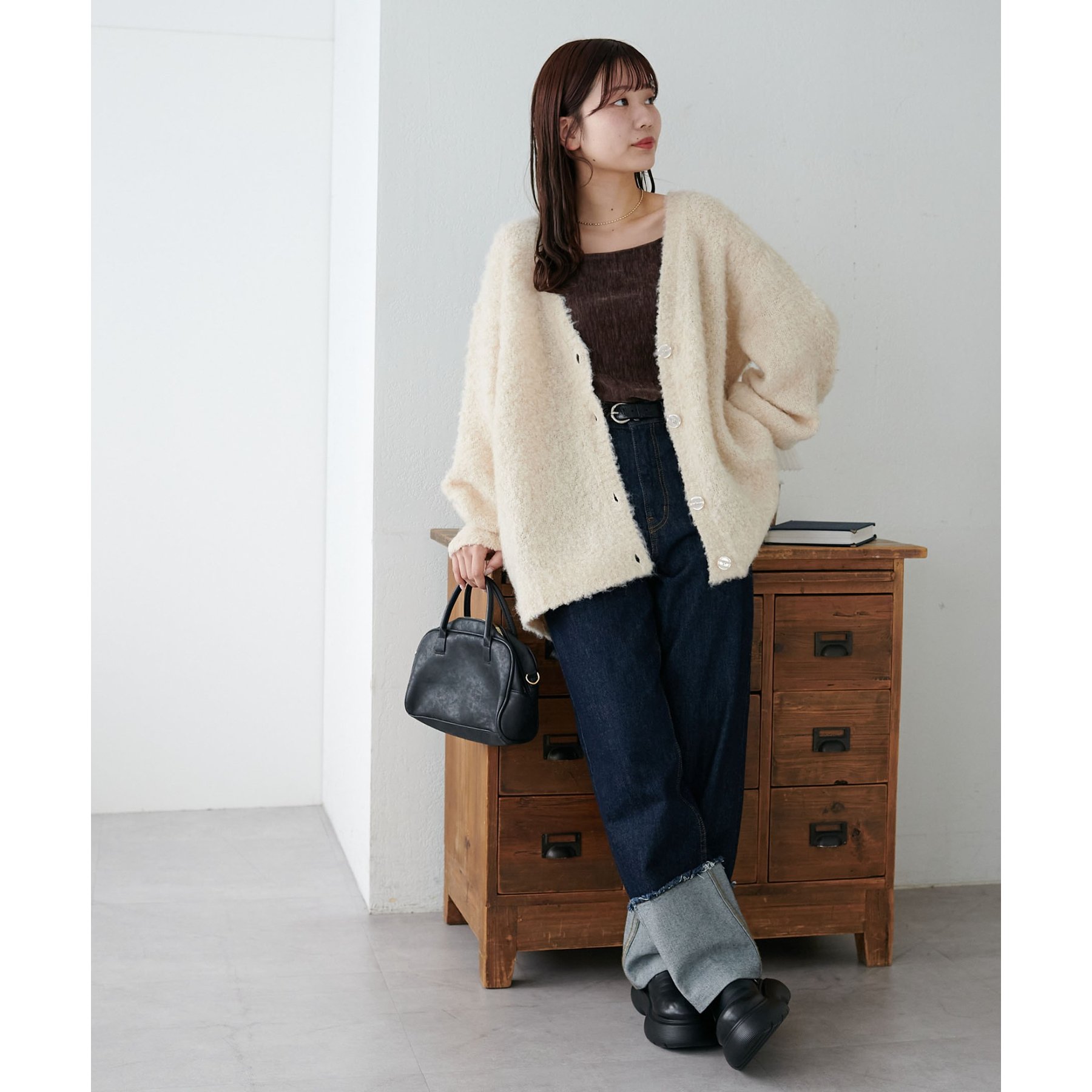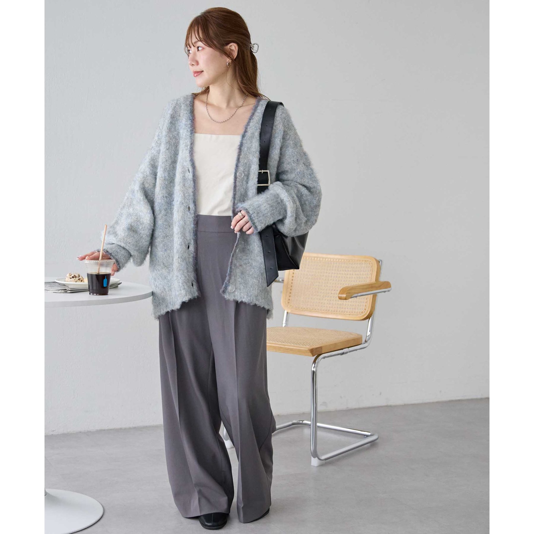 【新色追加!/WEB限定】MIXブークレシャギー配色Vネックカーディガン