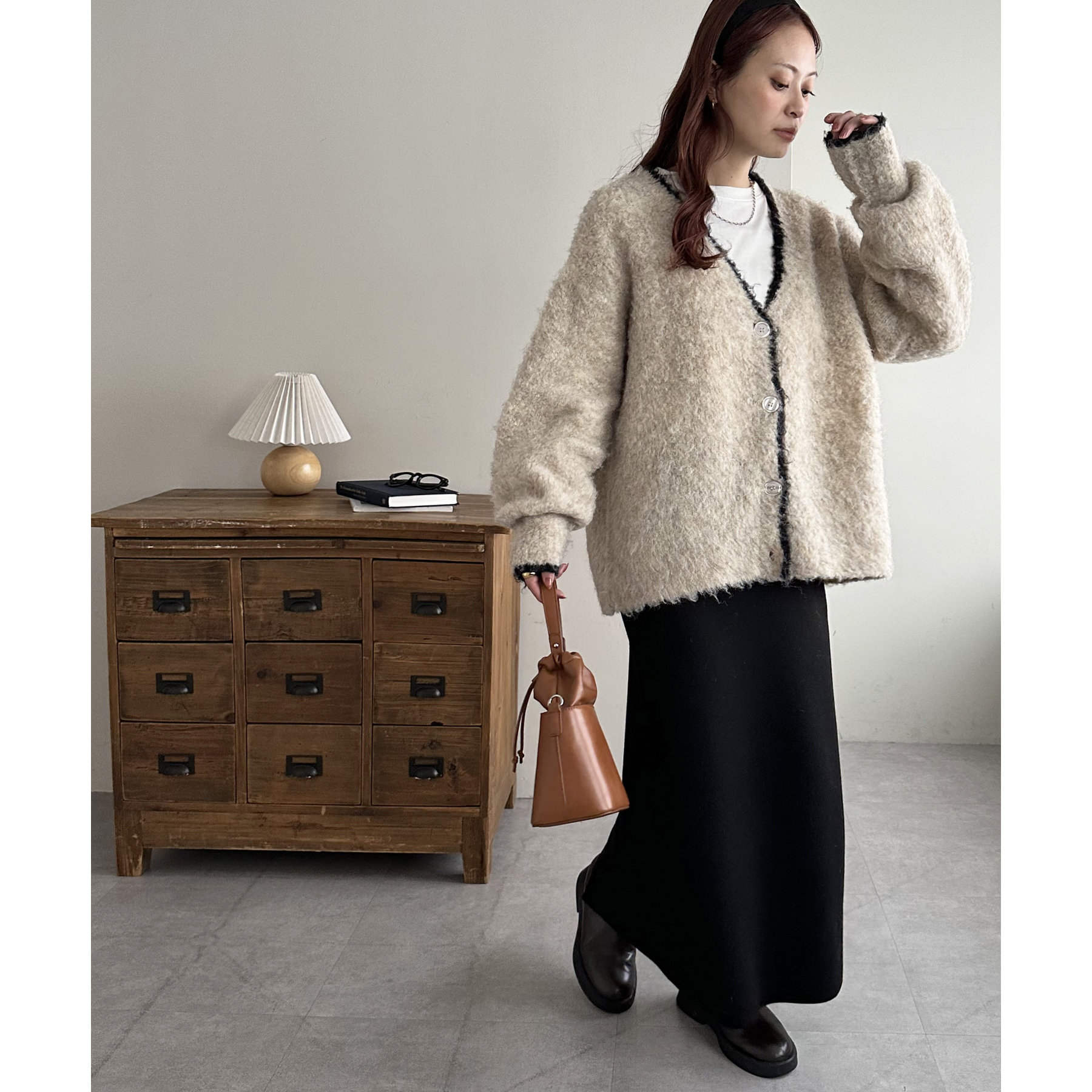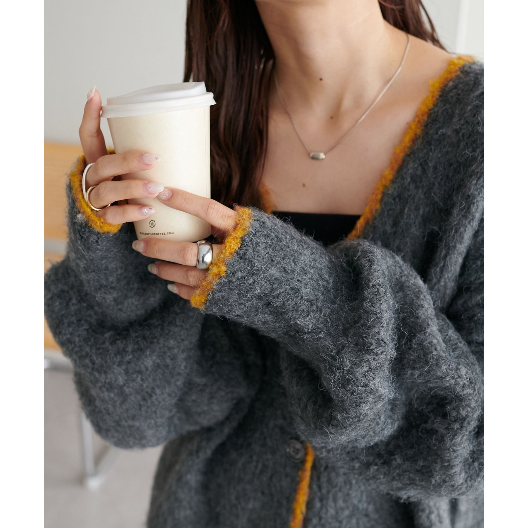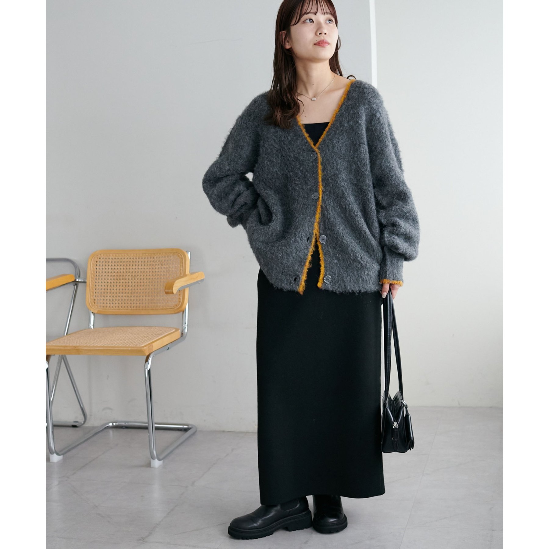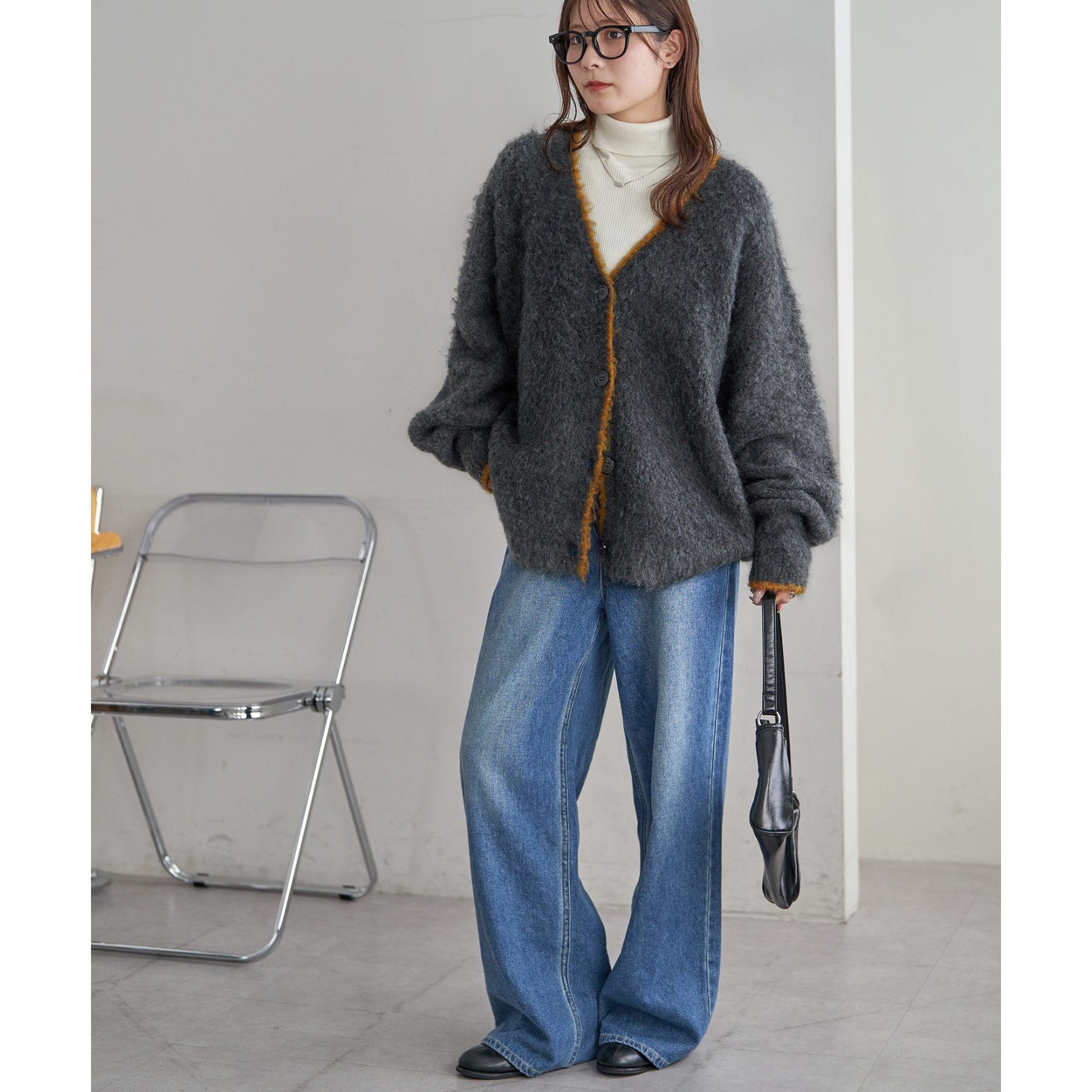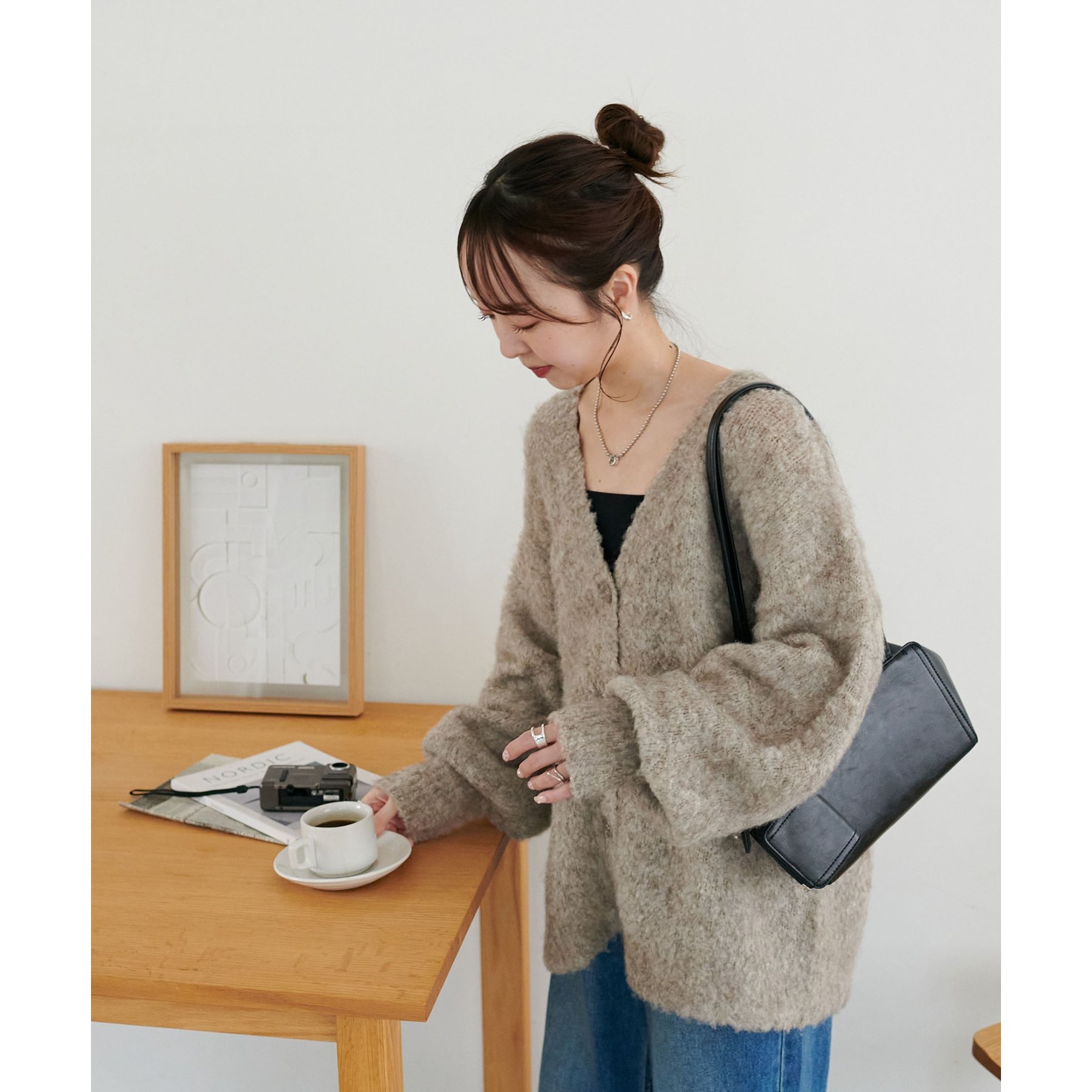 【新色追加!/WEB限定】MIXブークレシャギー配色Vネックカーディガン