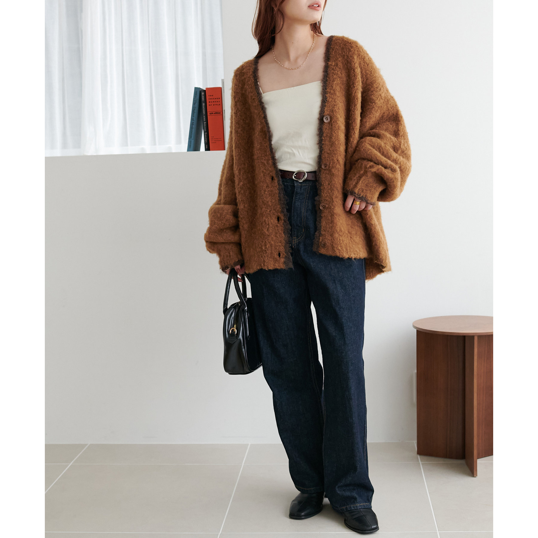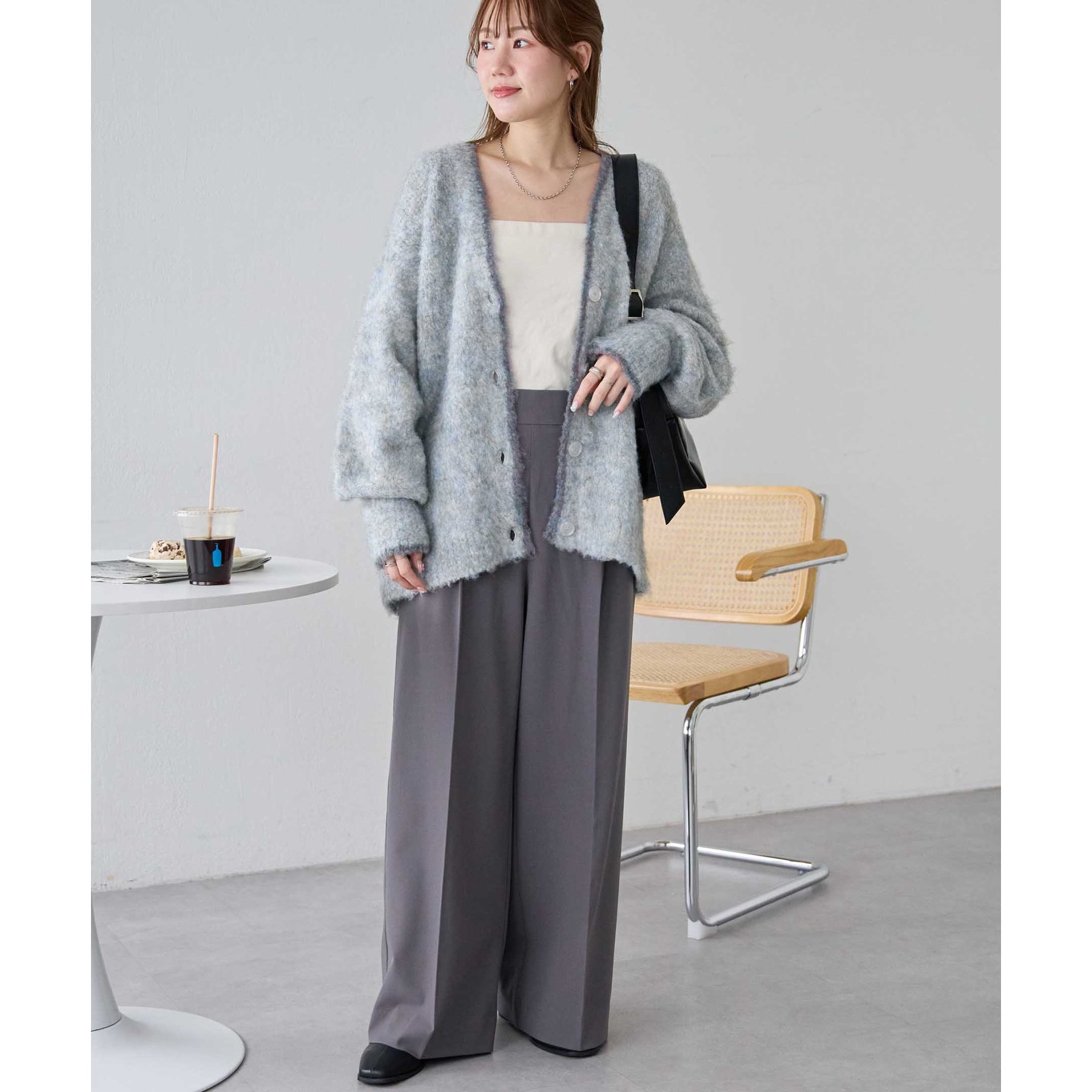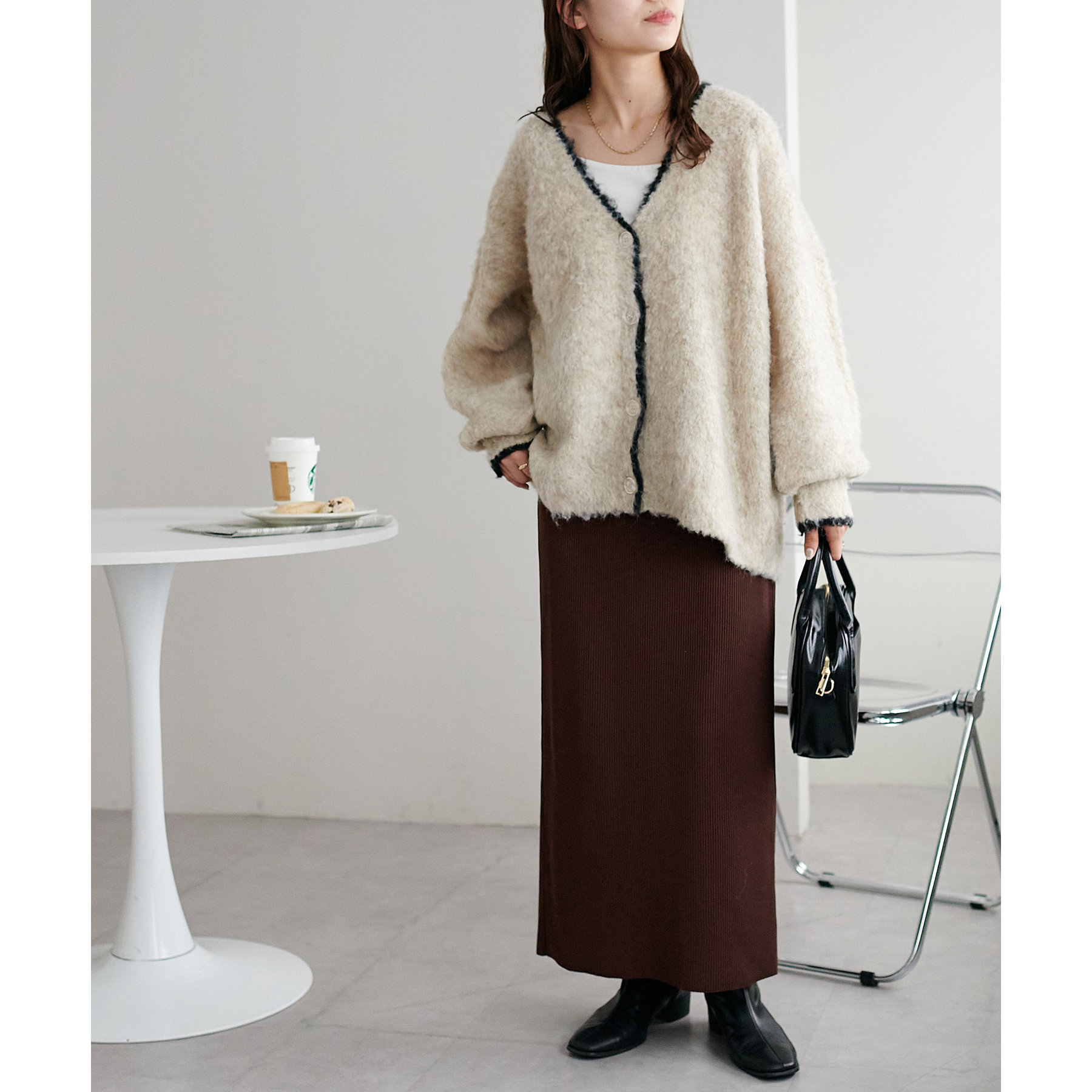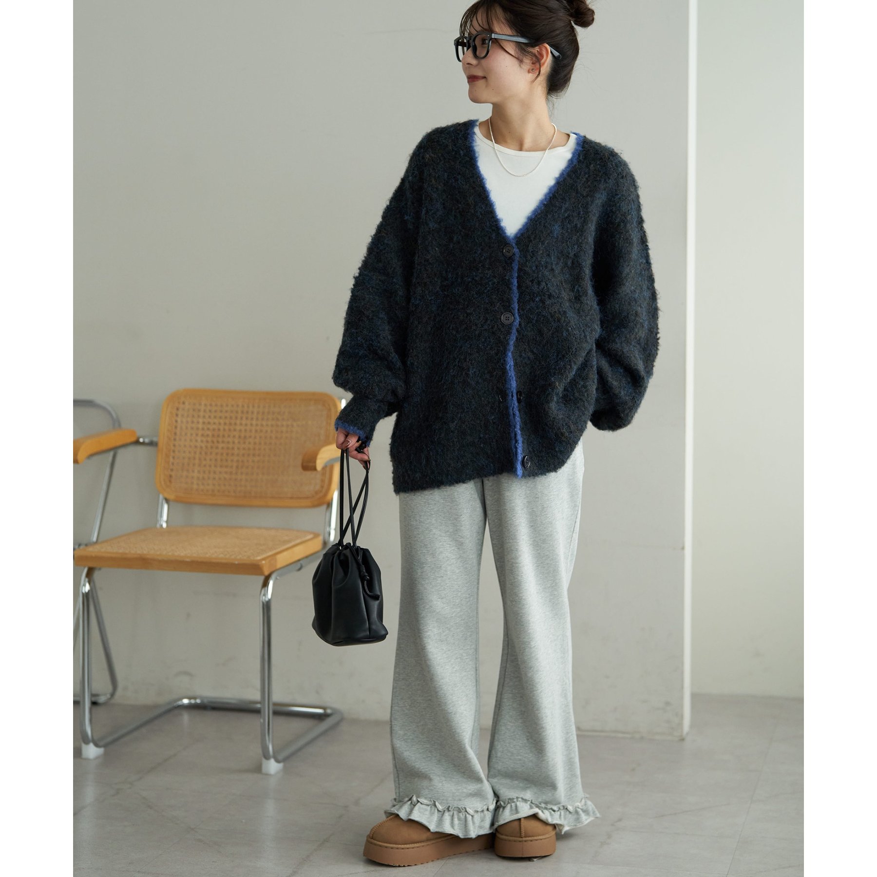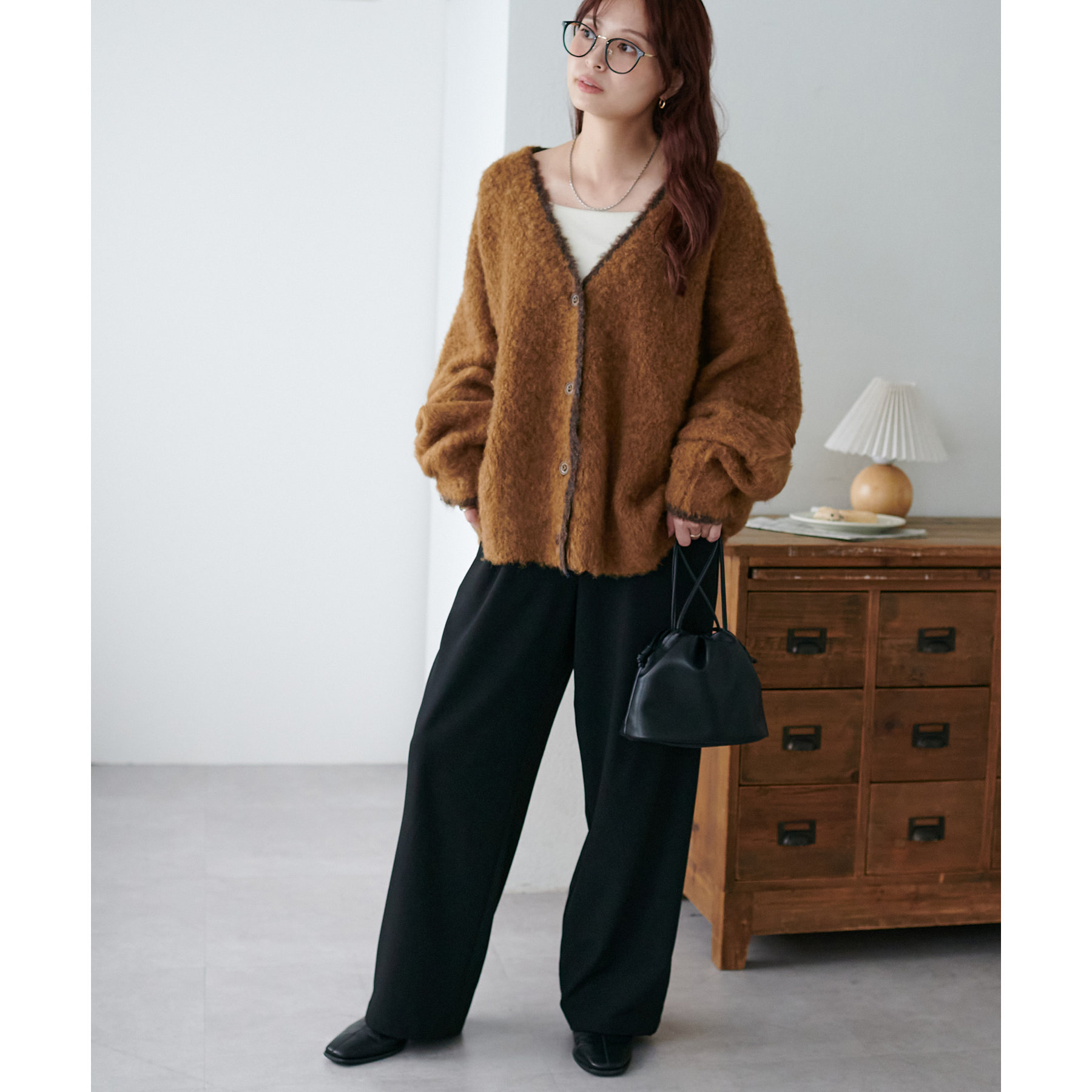 【新色追加!/WEB限定】MIXブークレシャギー配色Vネックカーディガン
