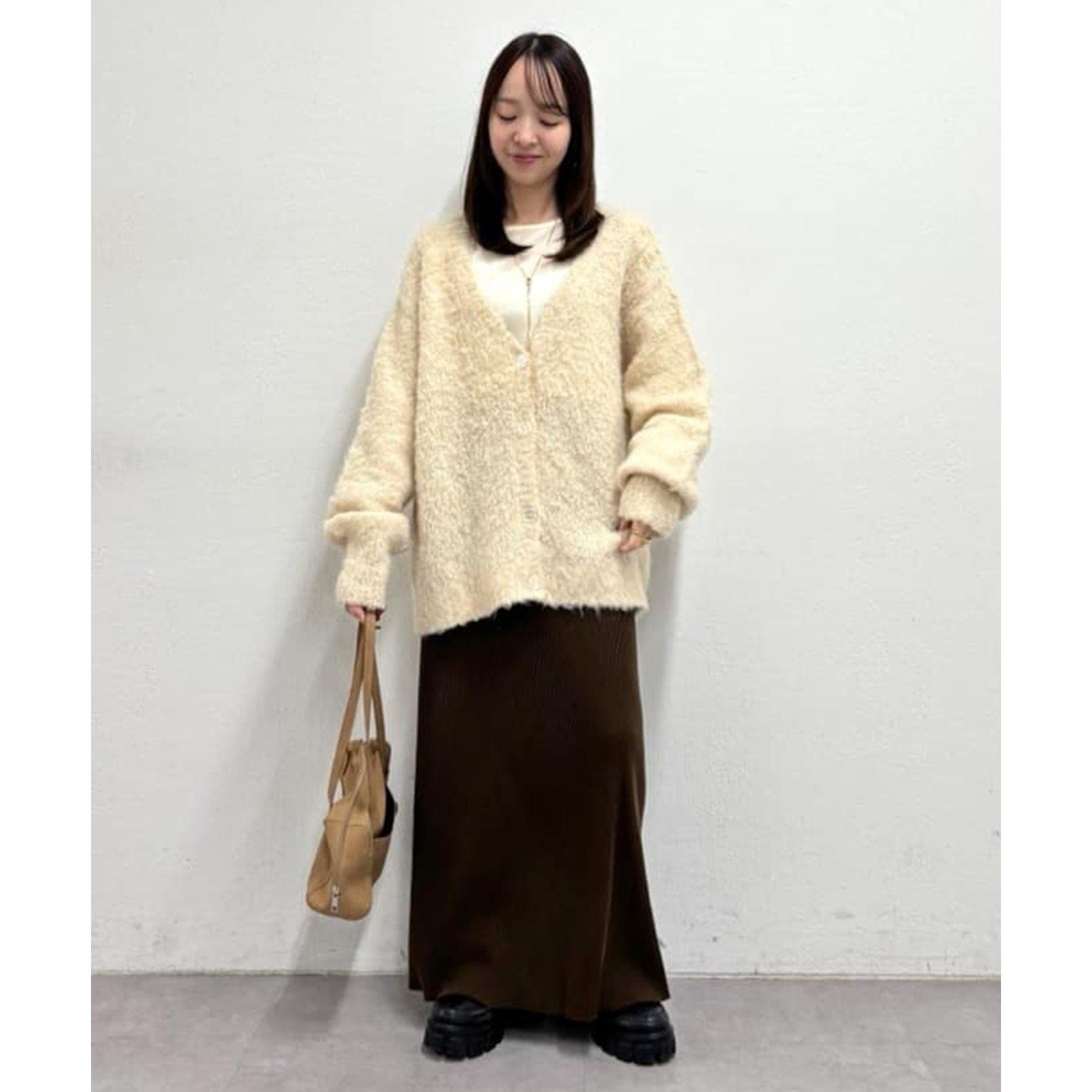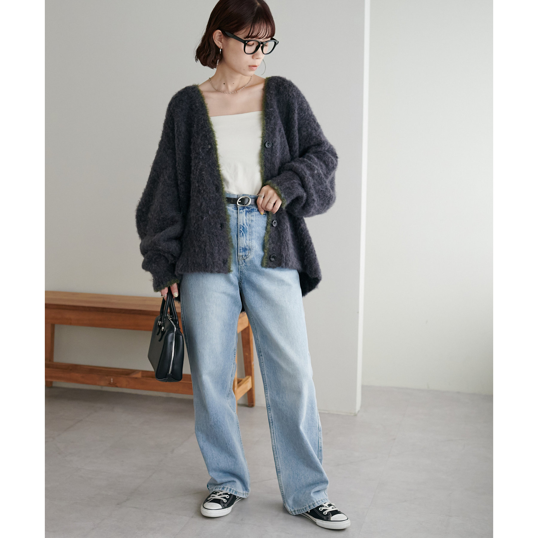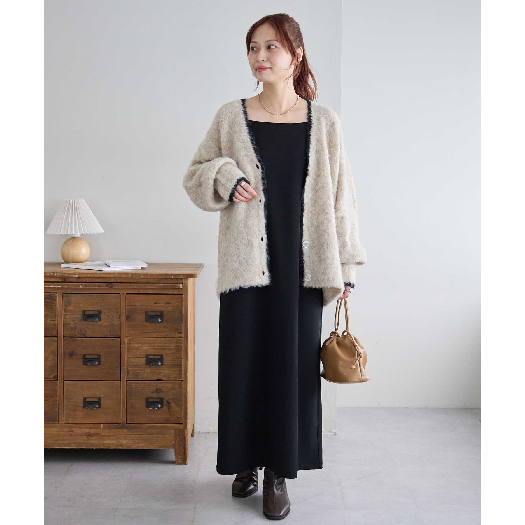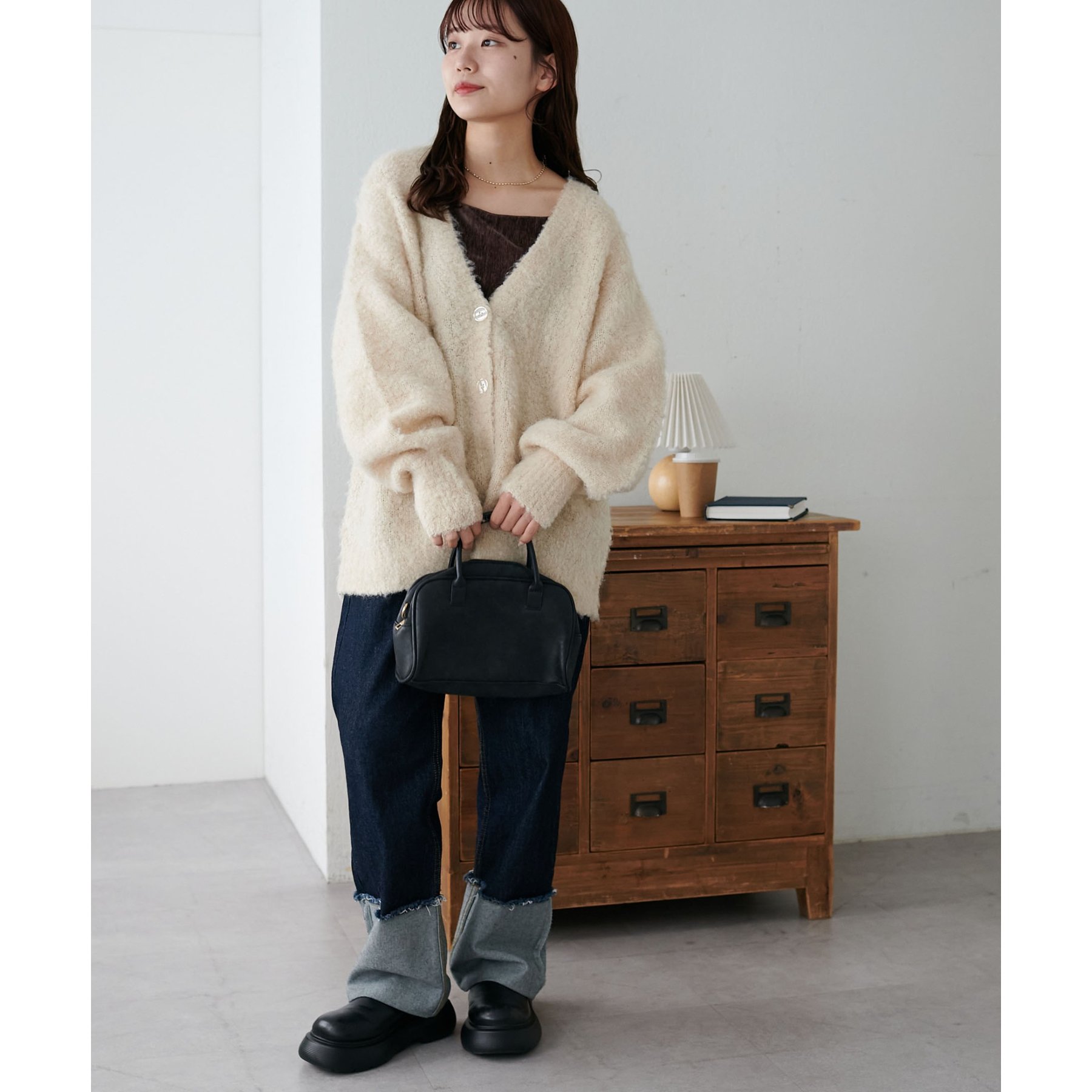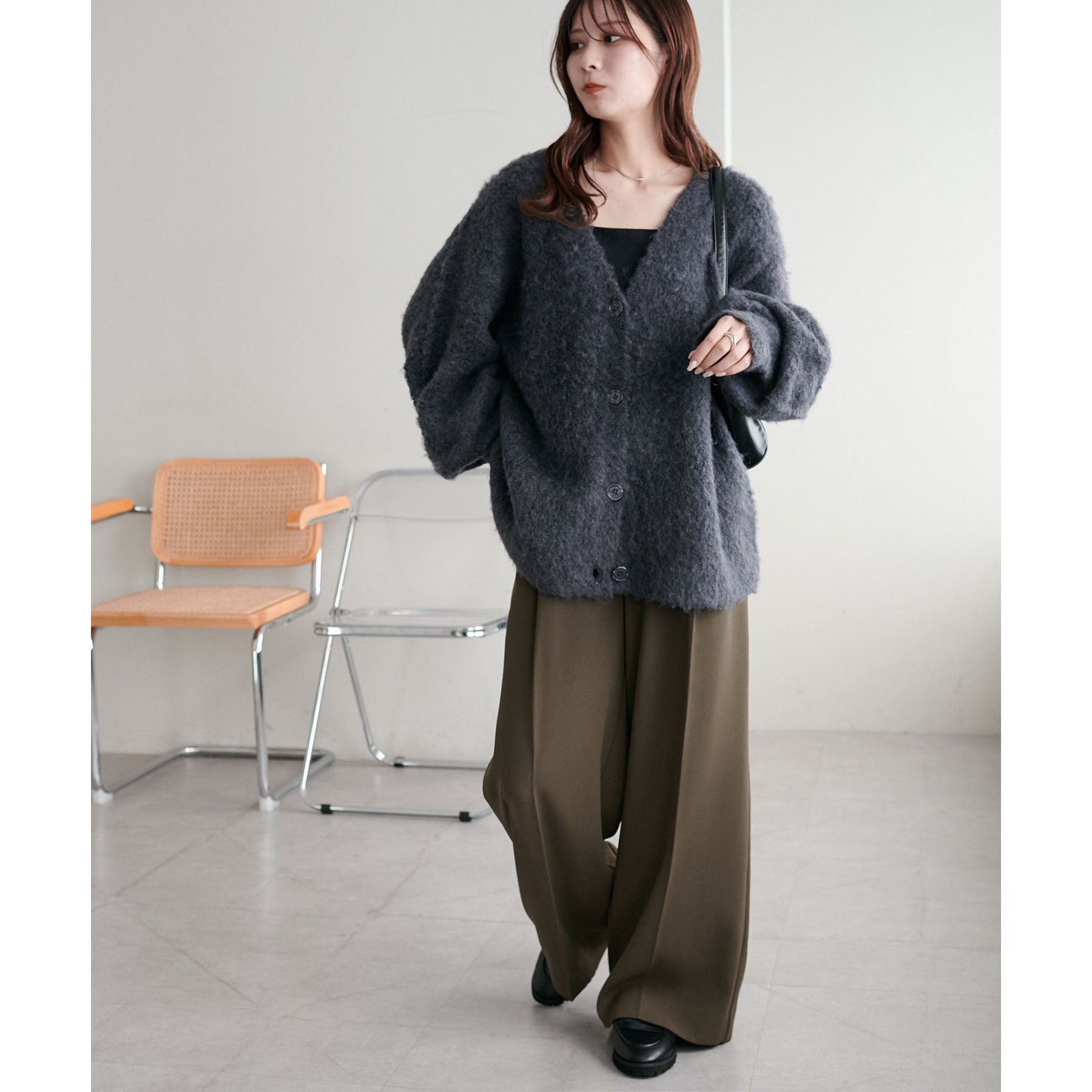 【新色追加!/WEB限定】MIXブークレシャギー配色Vネックカーディガン