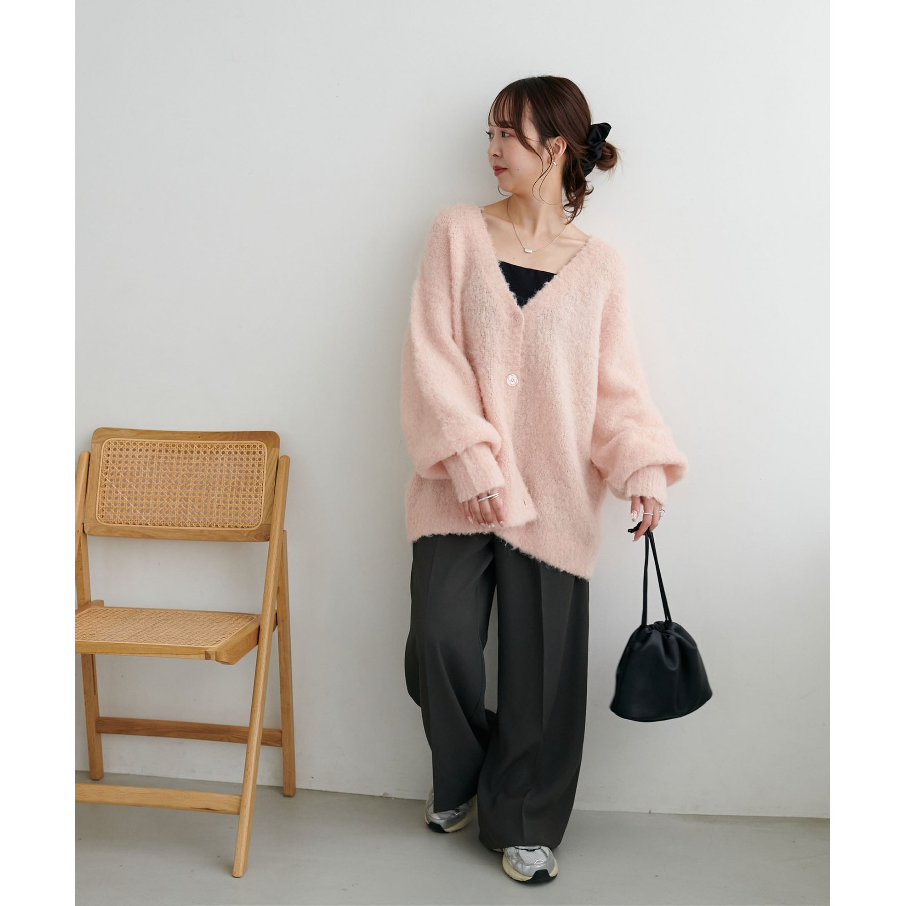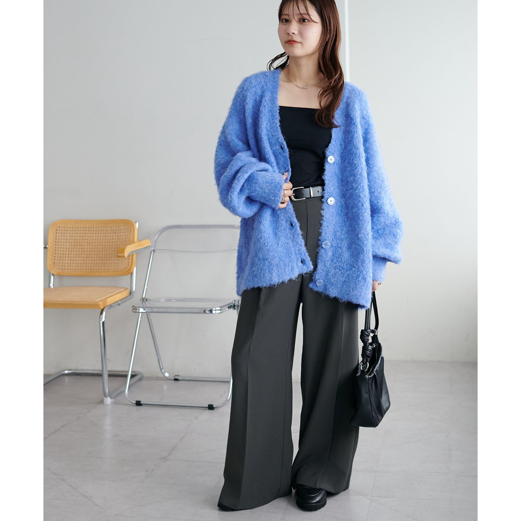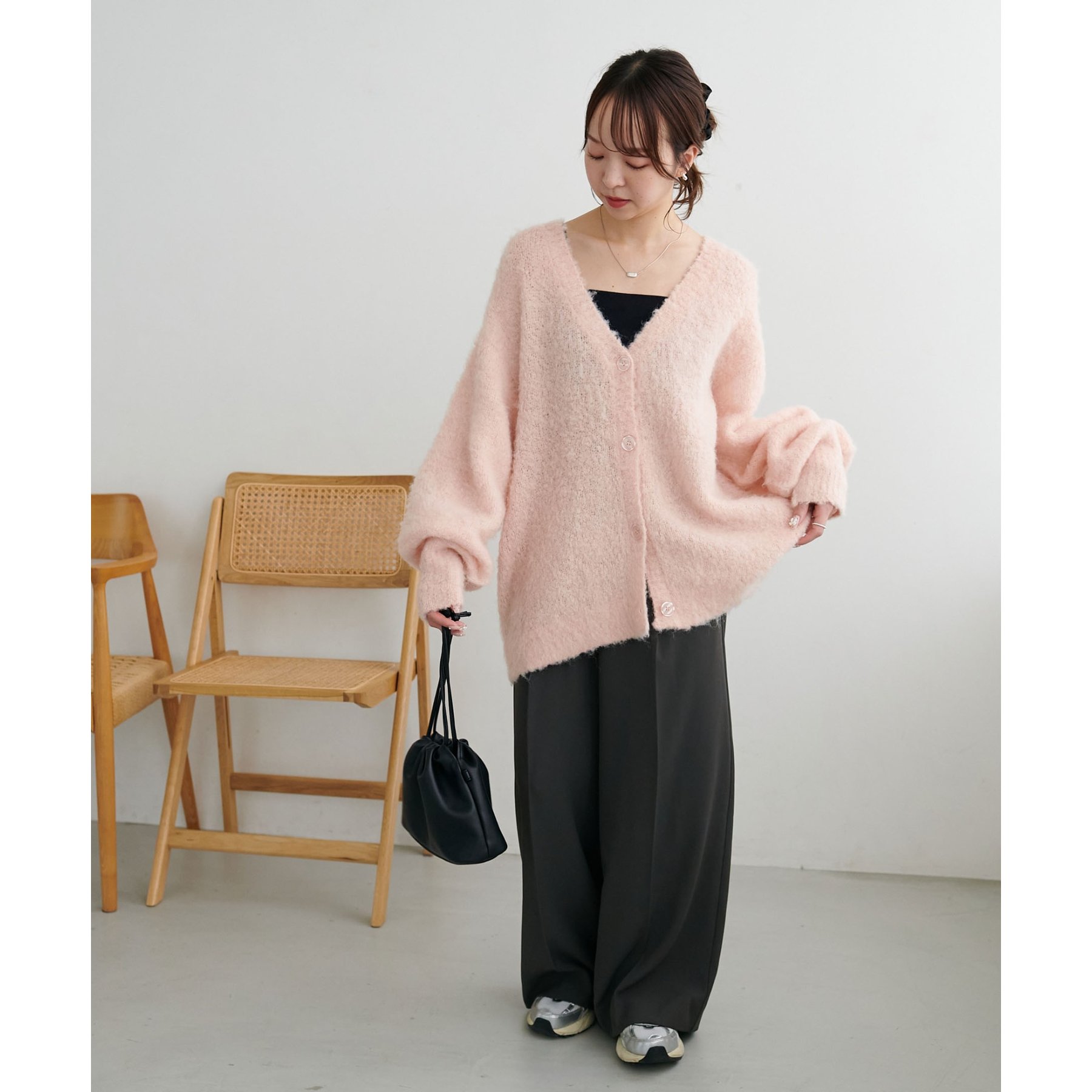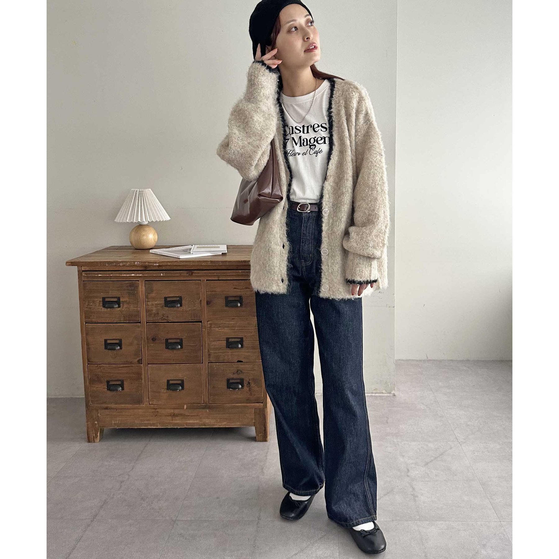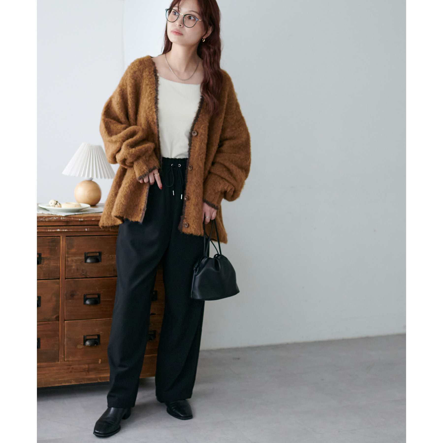 【新色追加!/WEB限定】MIXブークレシャギー配色Vネックカーディガン
