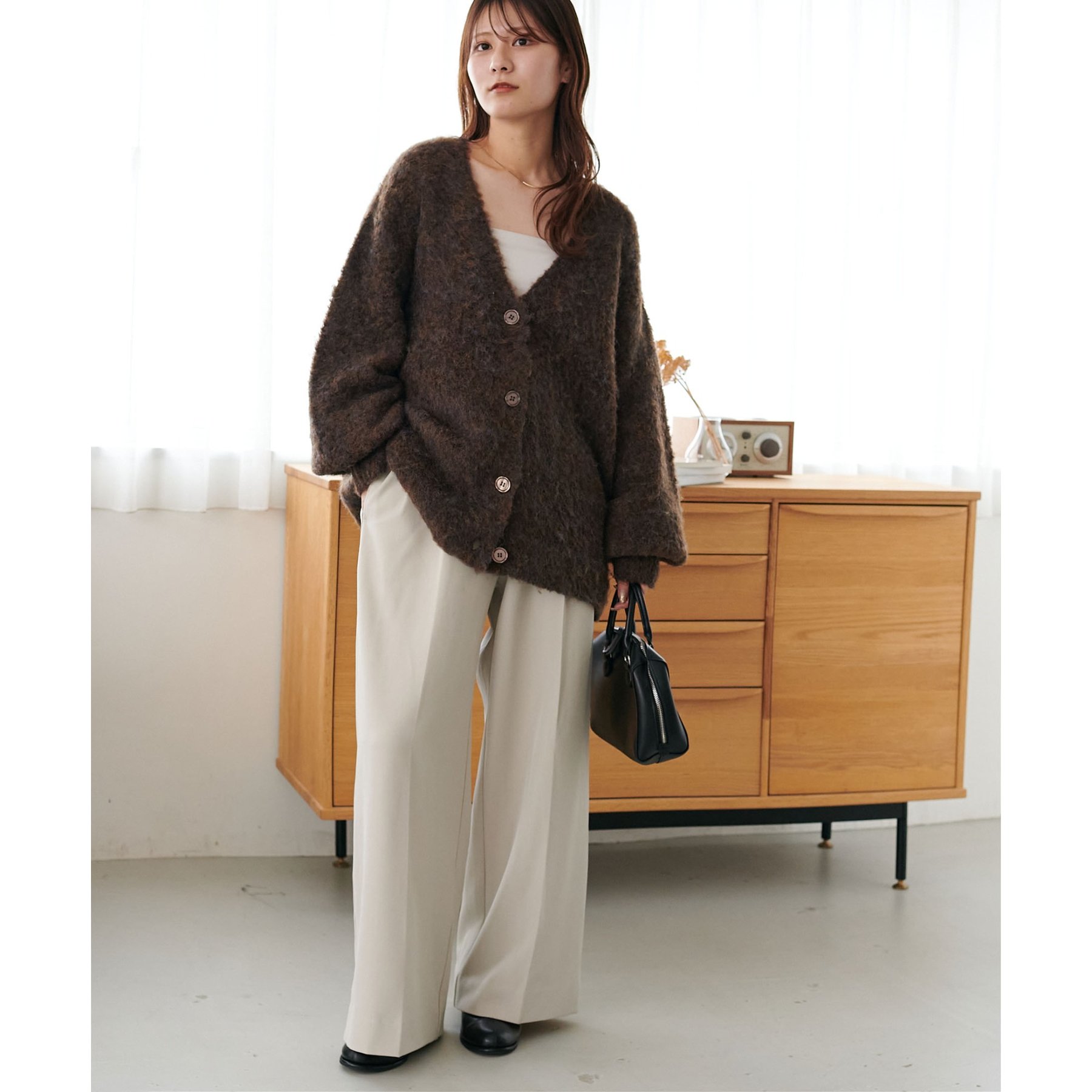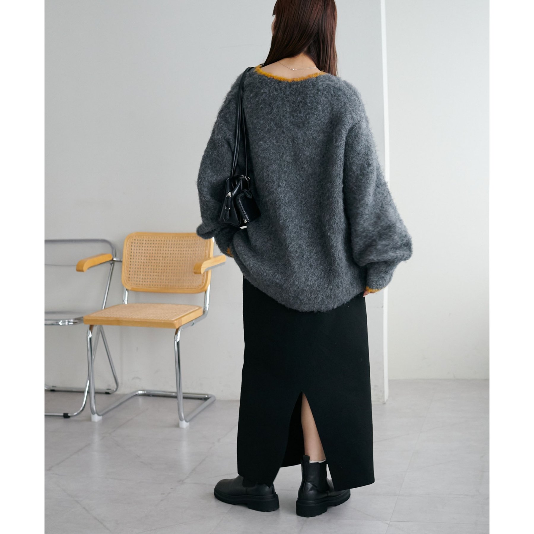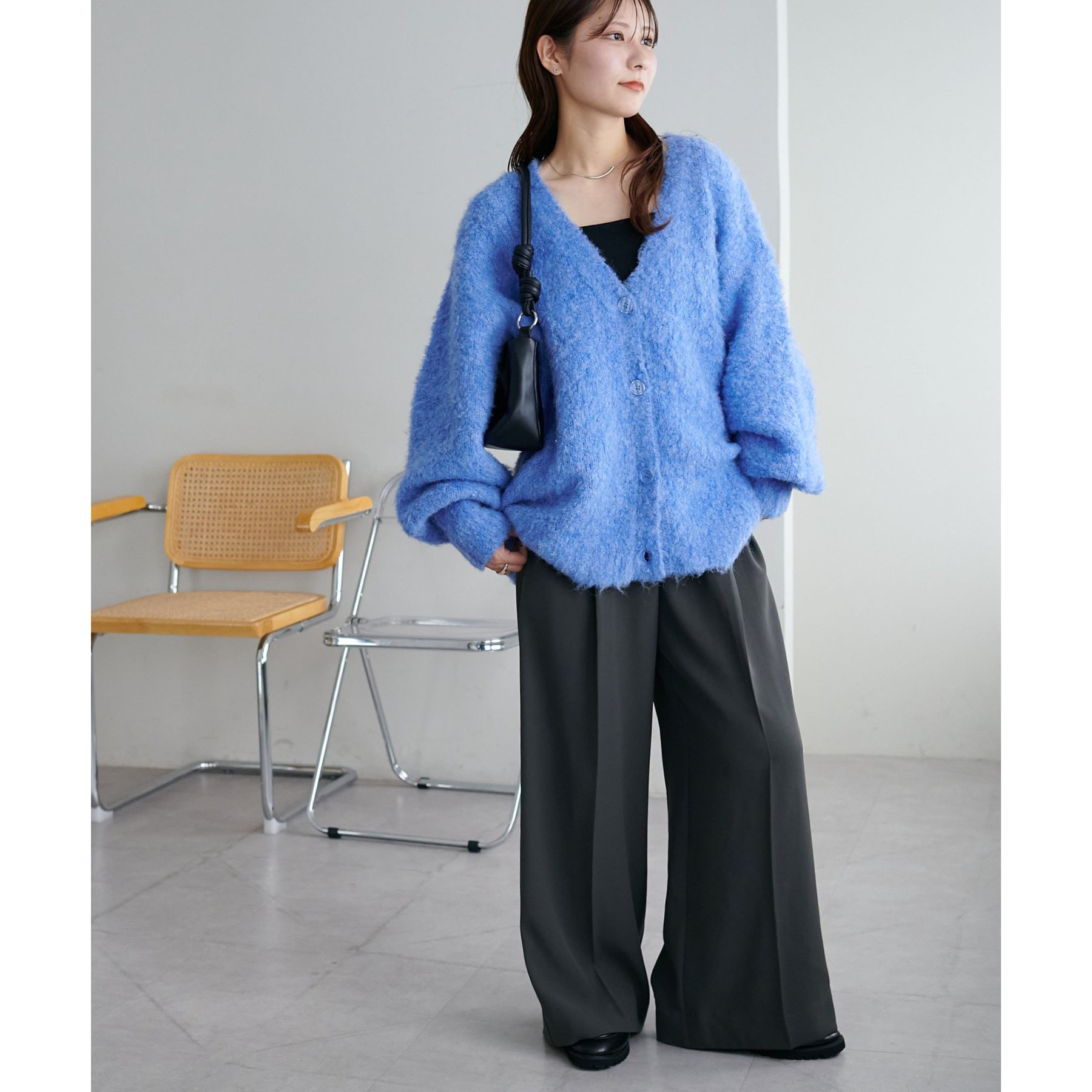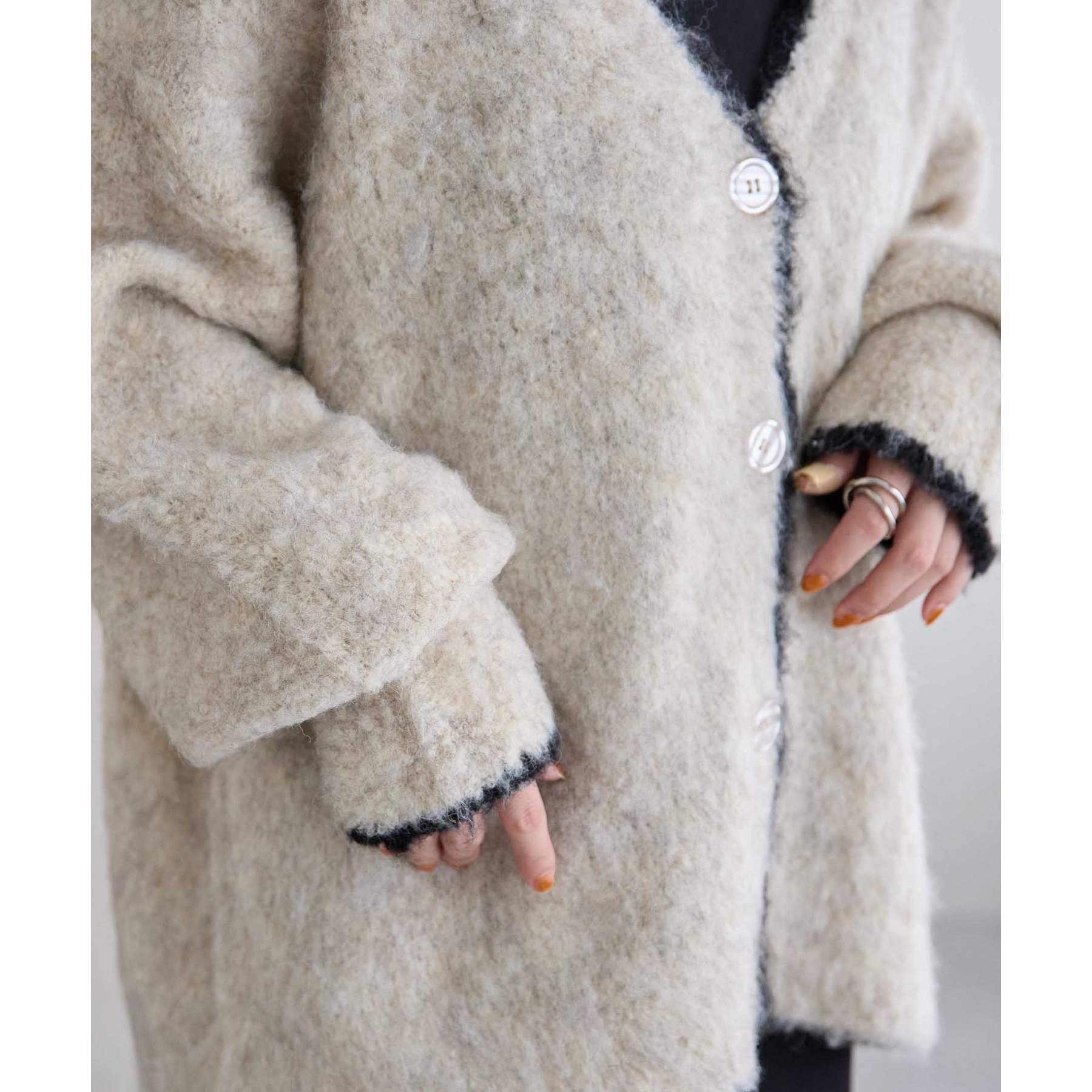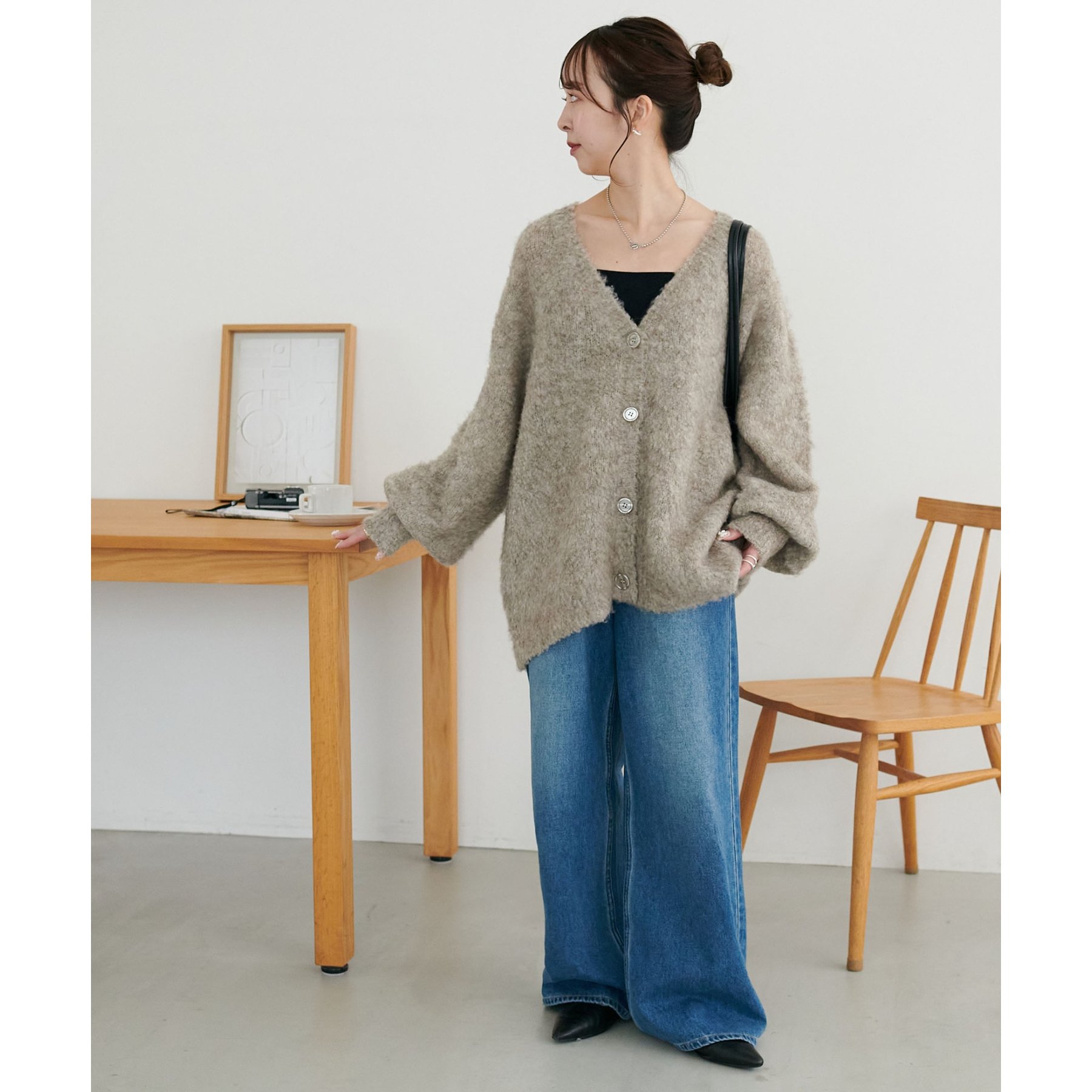 【新色追加!/WEB限定】MIXブークレシャギー配色Vネックカーディガン