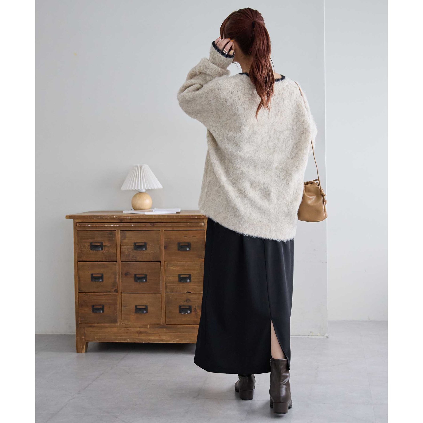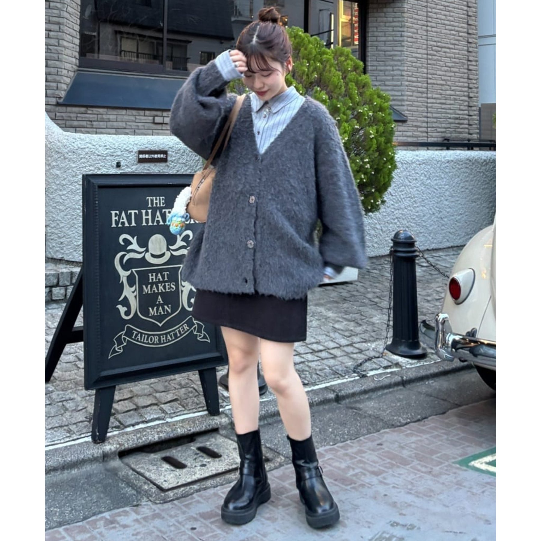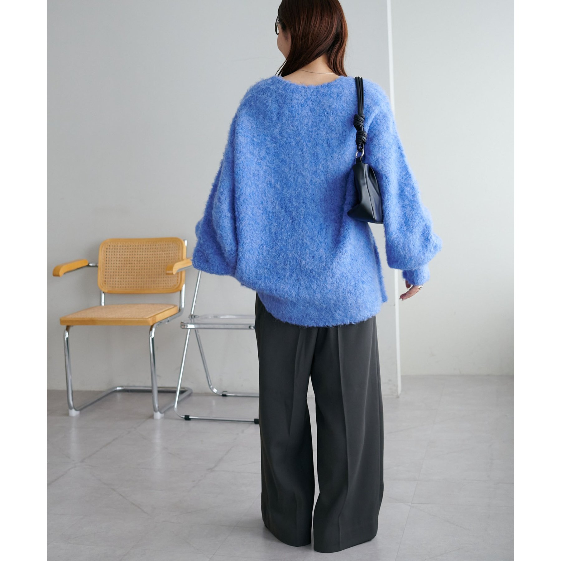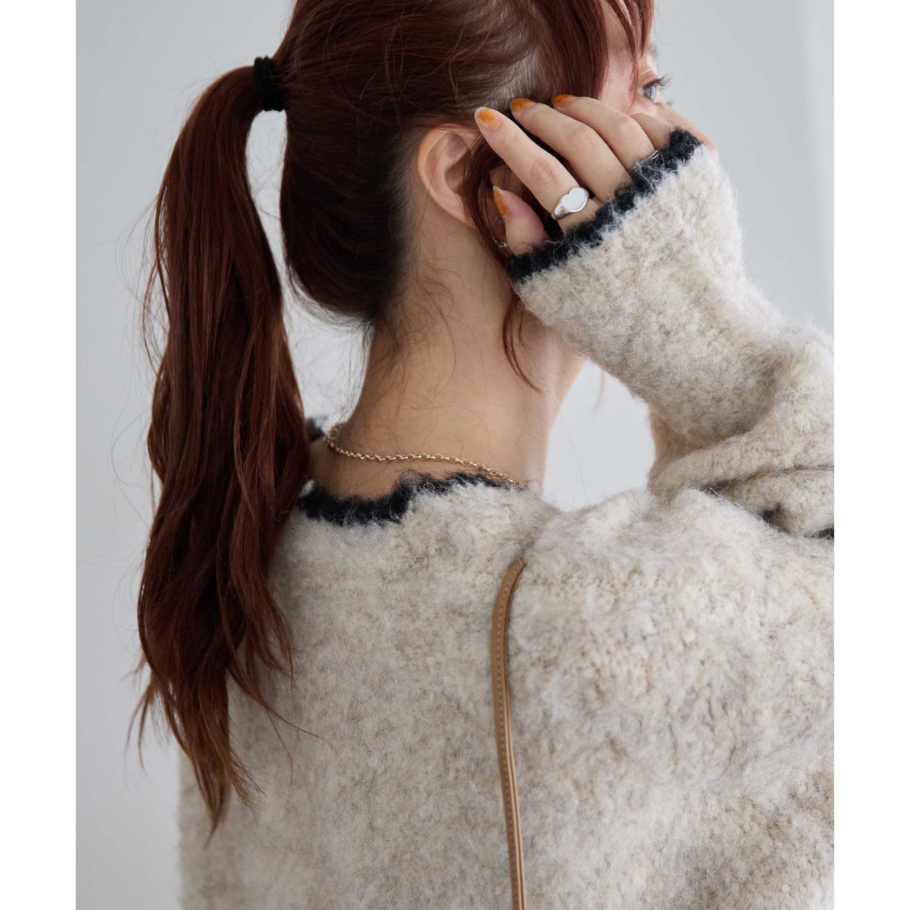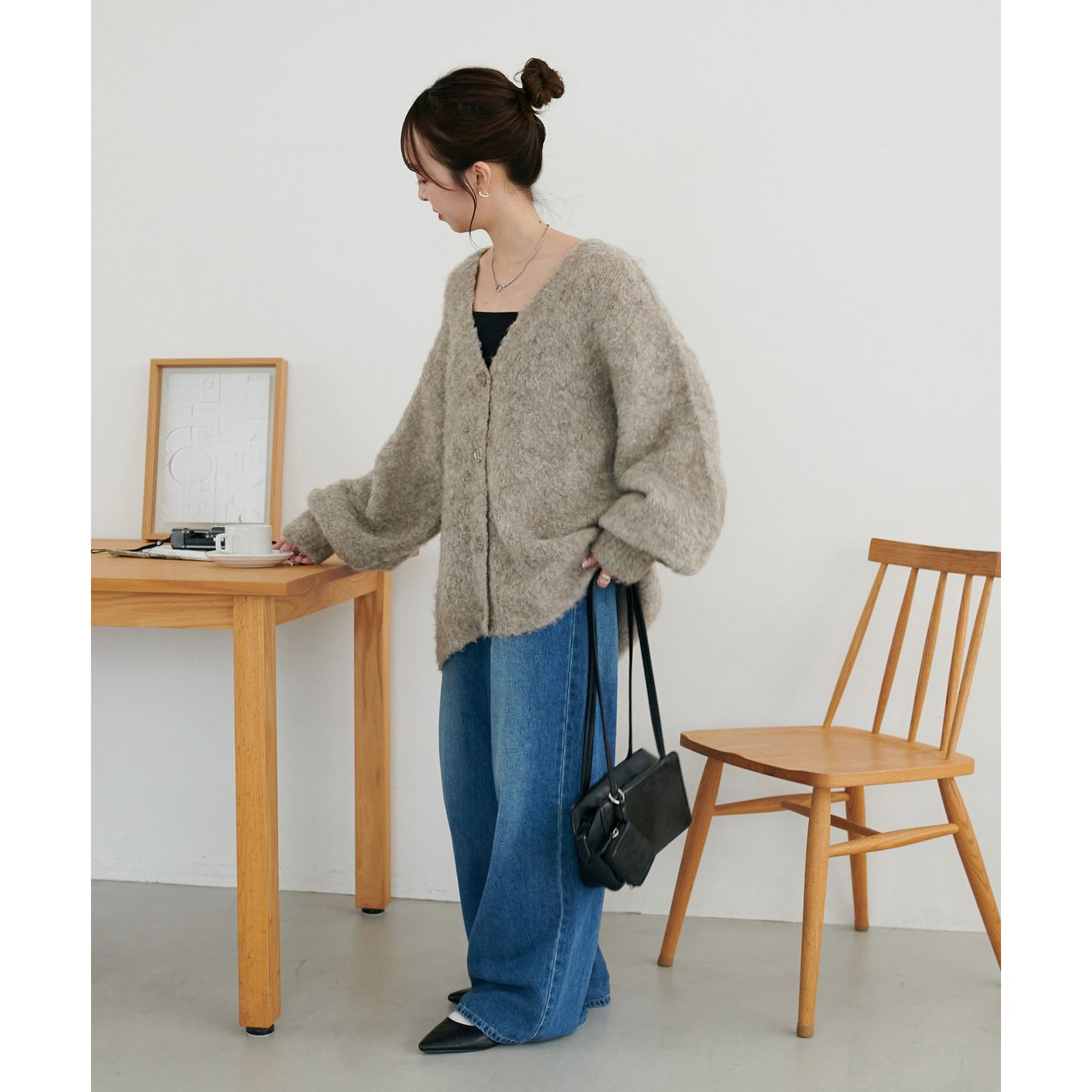 【新色追加!/WEB限定】MIXブークレシャギー配色Vネックカーディガン
