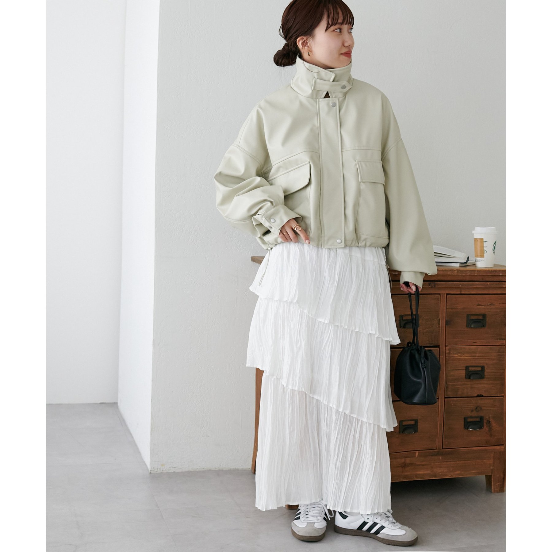 ・プリーツスカート・フレアスカートを合わせれば、レザー×女性らしさのミックススタイルが完成