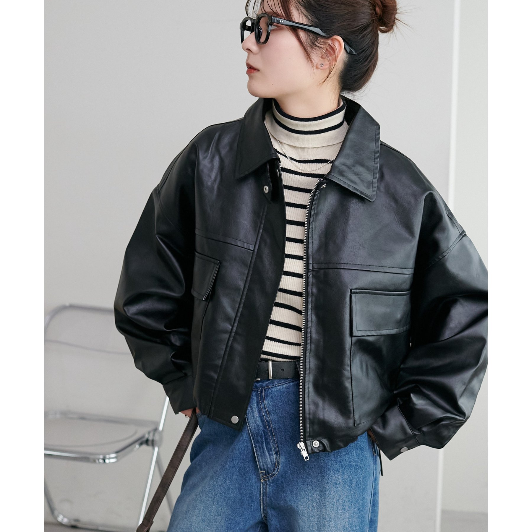 【新色追加!/WEB限定】2WAYフェイクレザーブルゾン