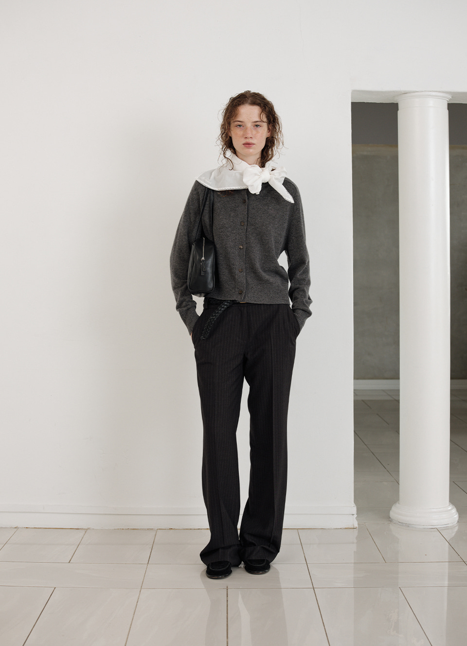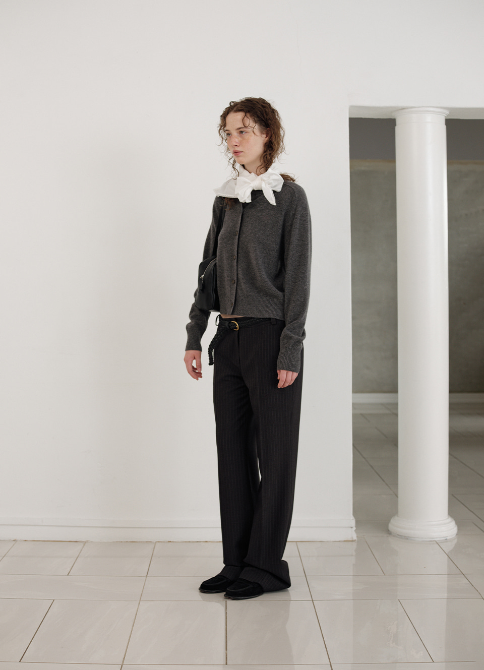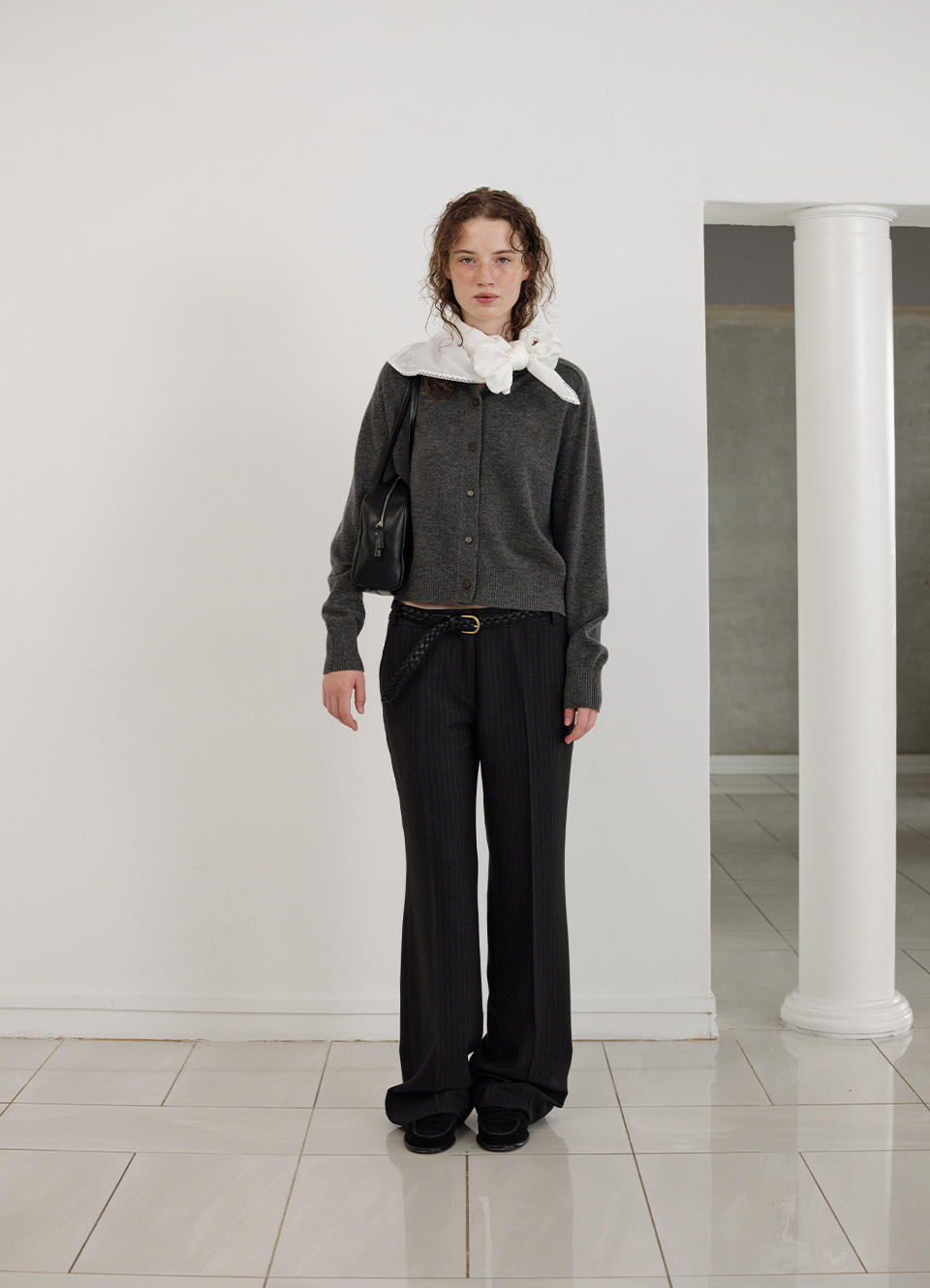チャコールカラーの高級感と柔らかな質感が際立つカシミヤ混紡ファブリック