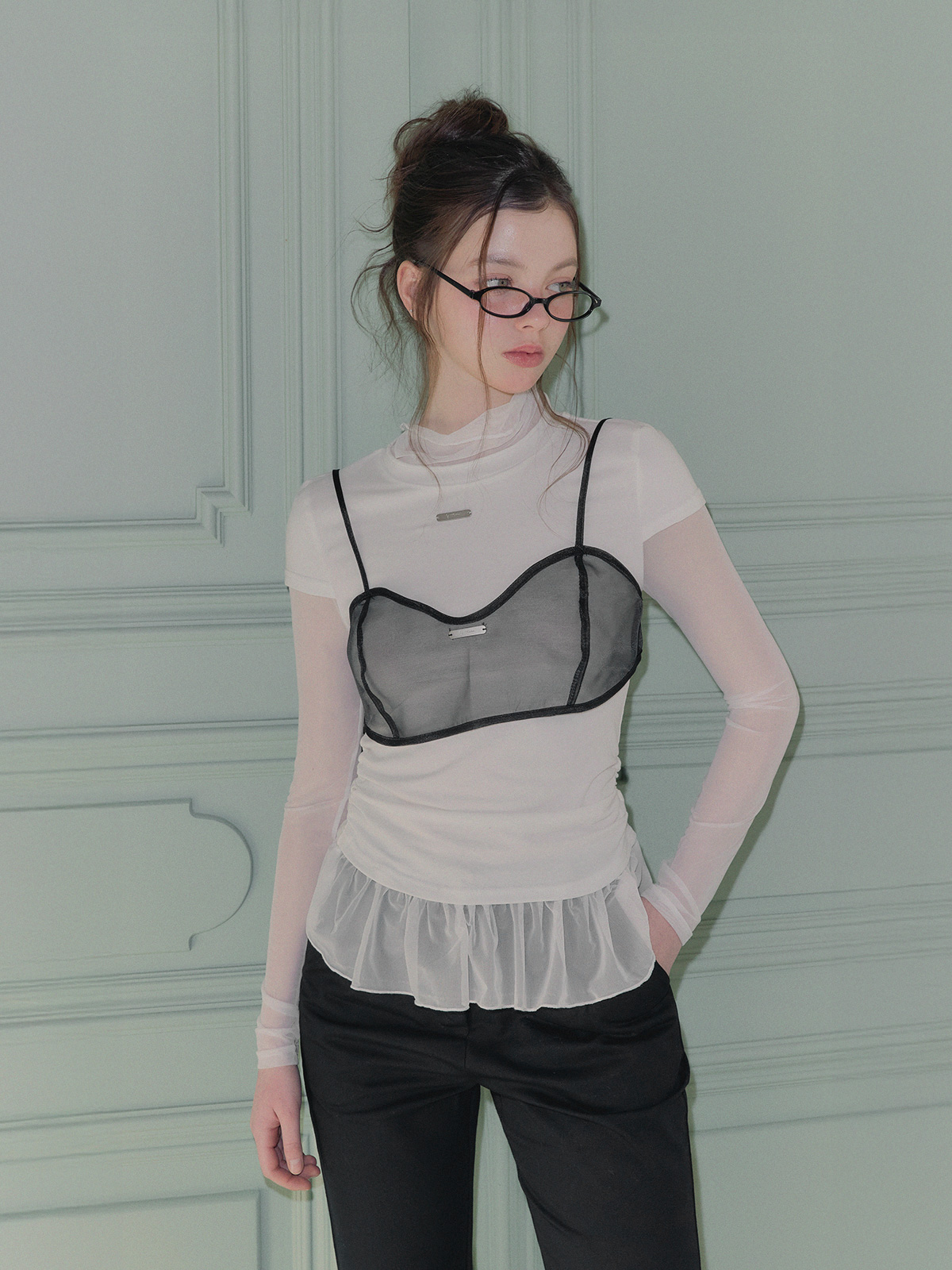 Perrin Sheer Layered Long-Sleeve Blouse