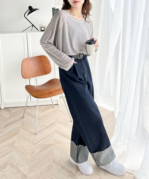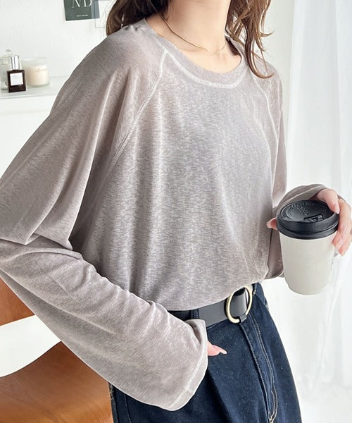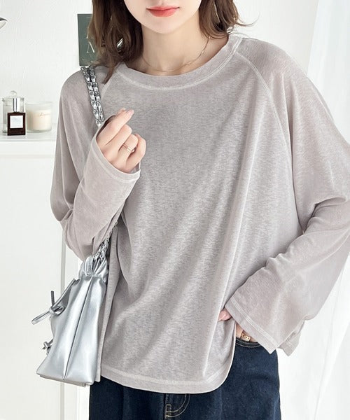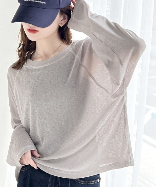 程よい透け感があり、合わせるアイテム次第で違った雰囲気を楽しめてコーデの幅が広がる一枚。