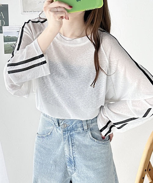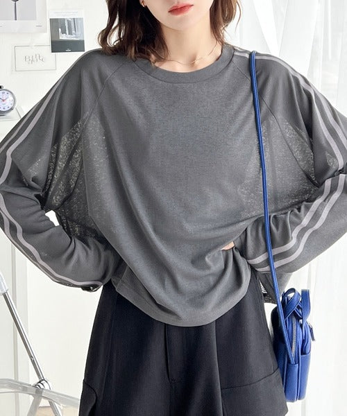 ゆるっとこなれトップス。袖ライン×無地アソートシアートップス ce1010283