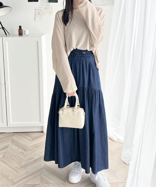 ウエストインでもアウトでもきまる丈感で、パンツともスカートとも相性の良いアイテムです。