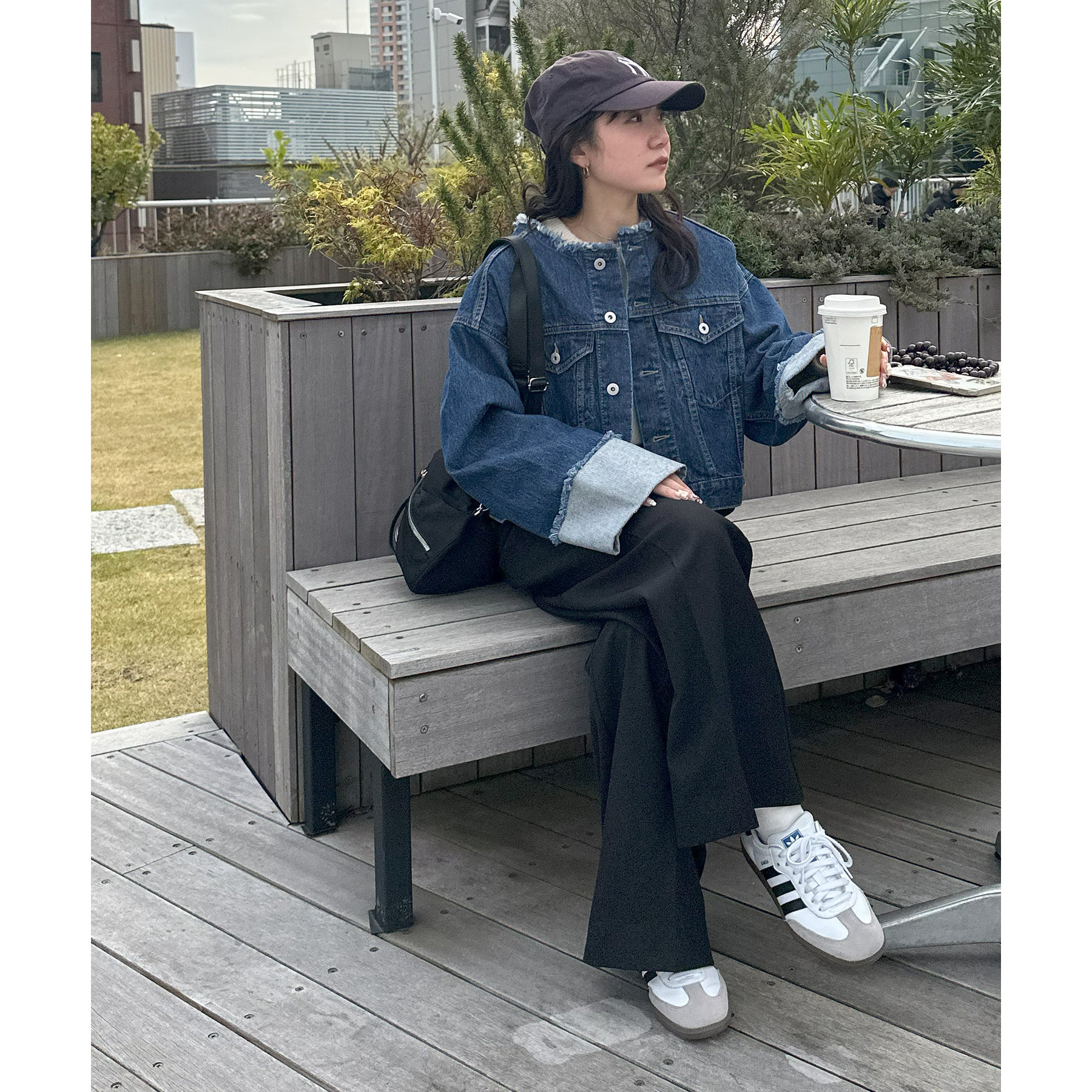 デニムやチノパンを合わせたカジュアルスタイルから、フリルスカートやワンピースを合わせた甘めカジュアルスタイルまで様々な着こなしができます。クロップド丈でコーデのバランスが取りやすく、着回しやすいアイテムです。