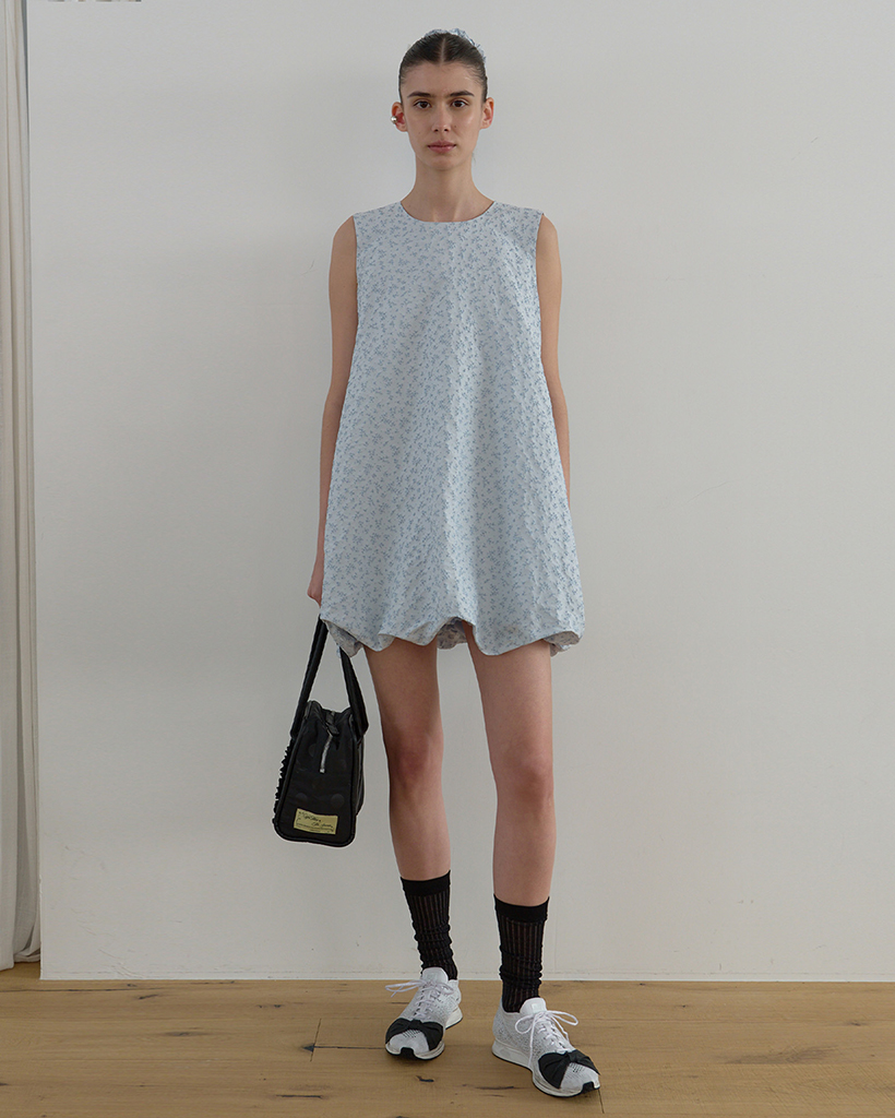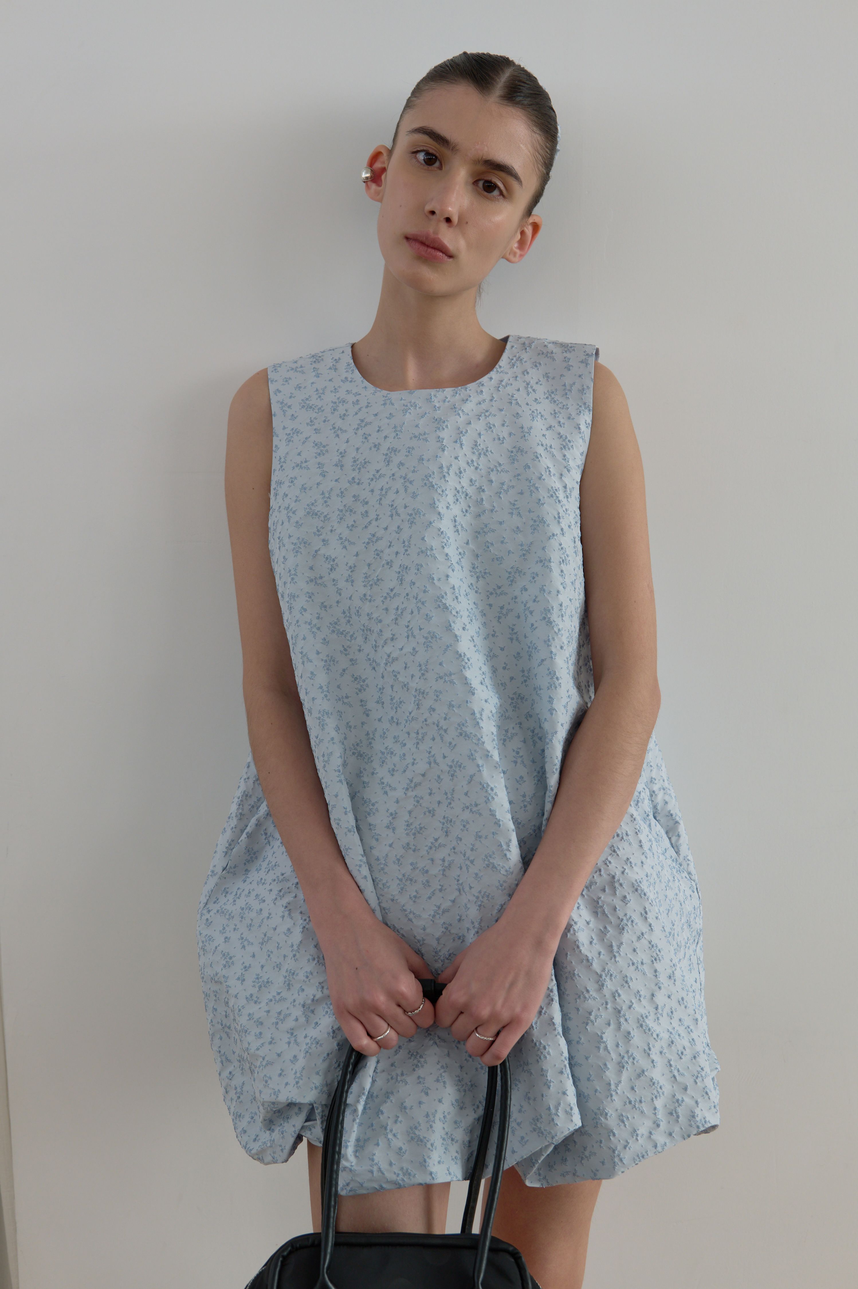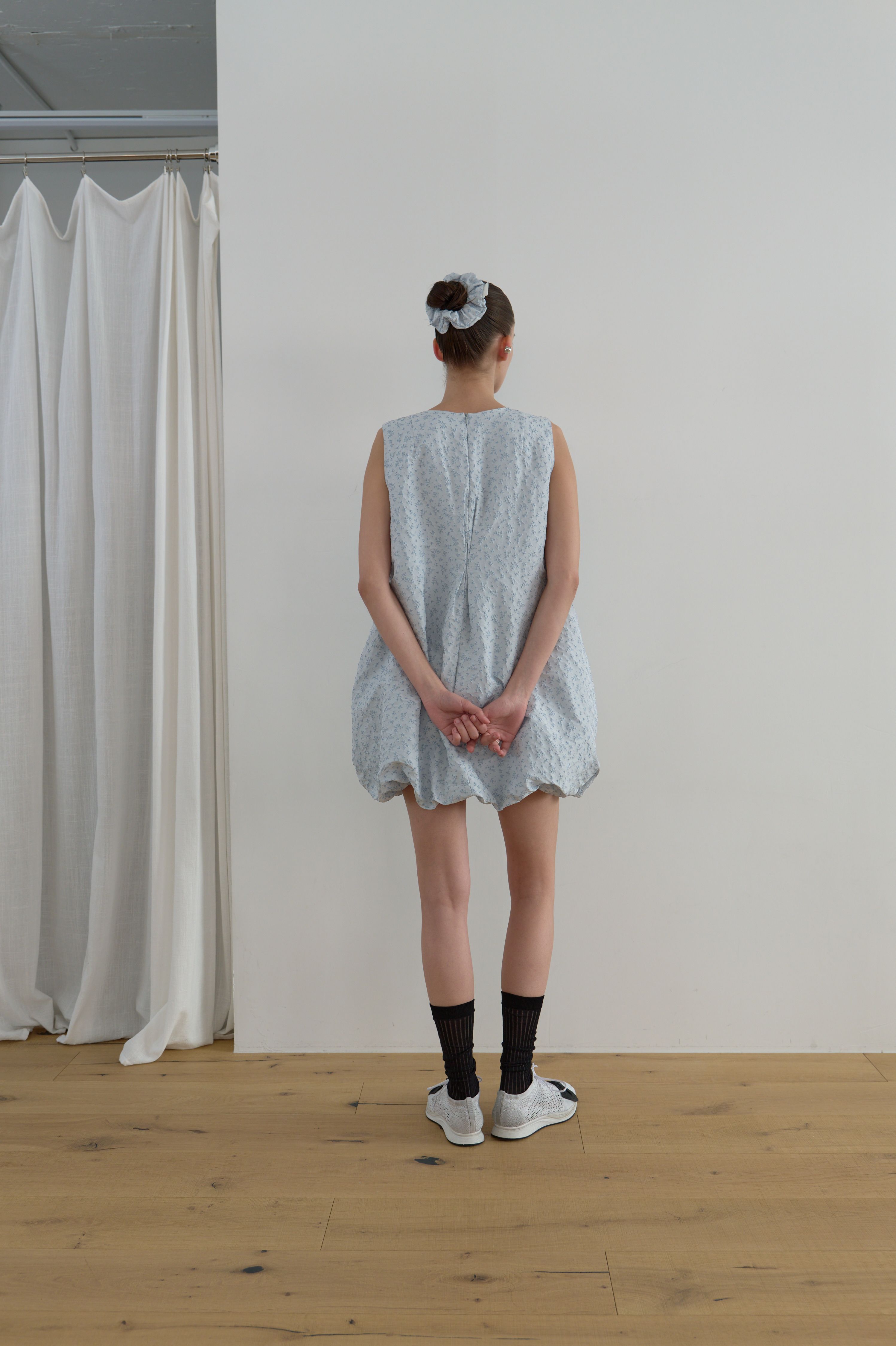 JACQUARD SCRUNCHIE SET BALLOON DRESS_SKY