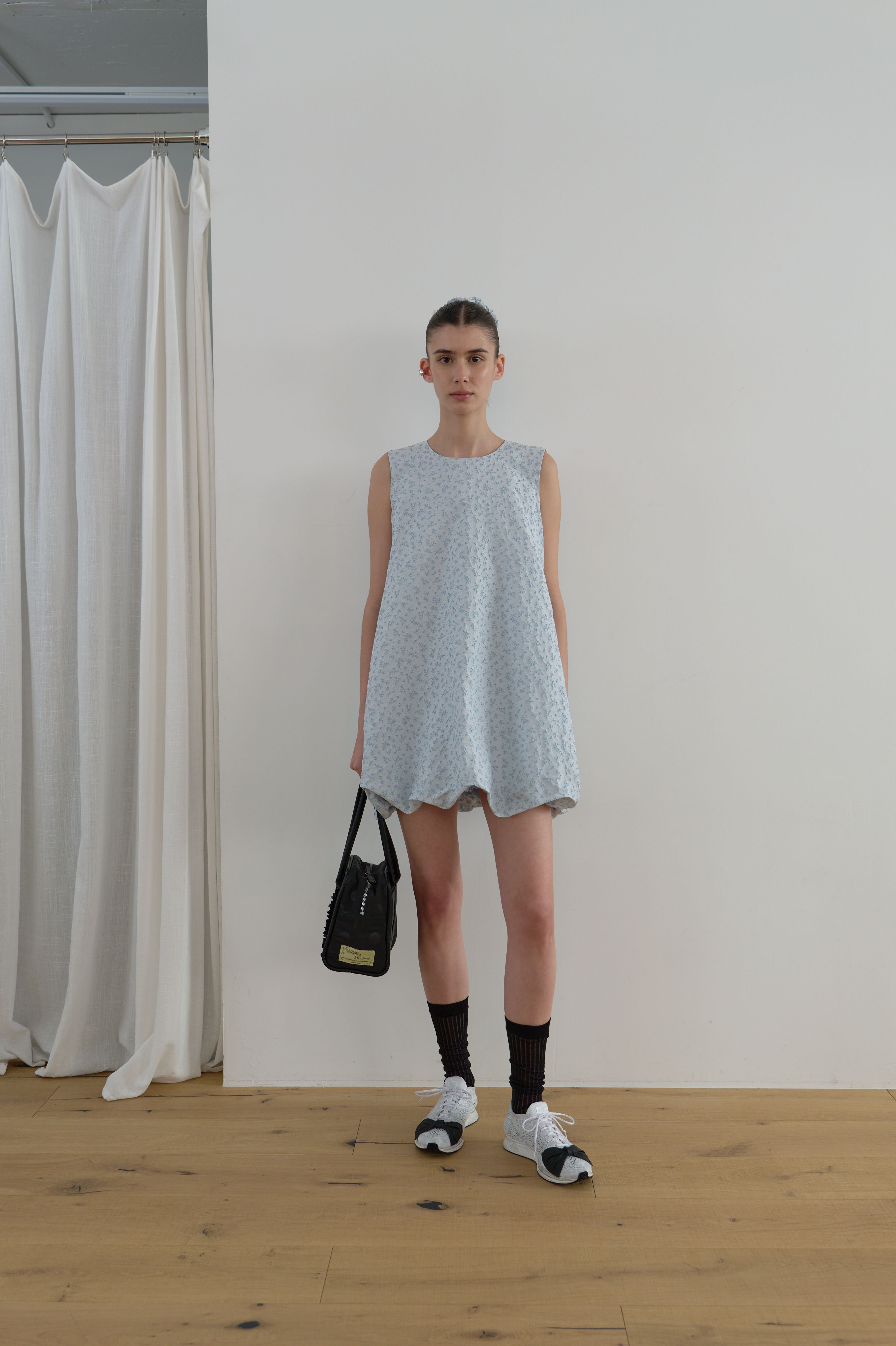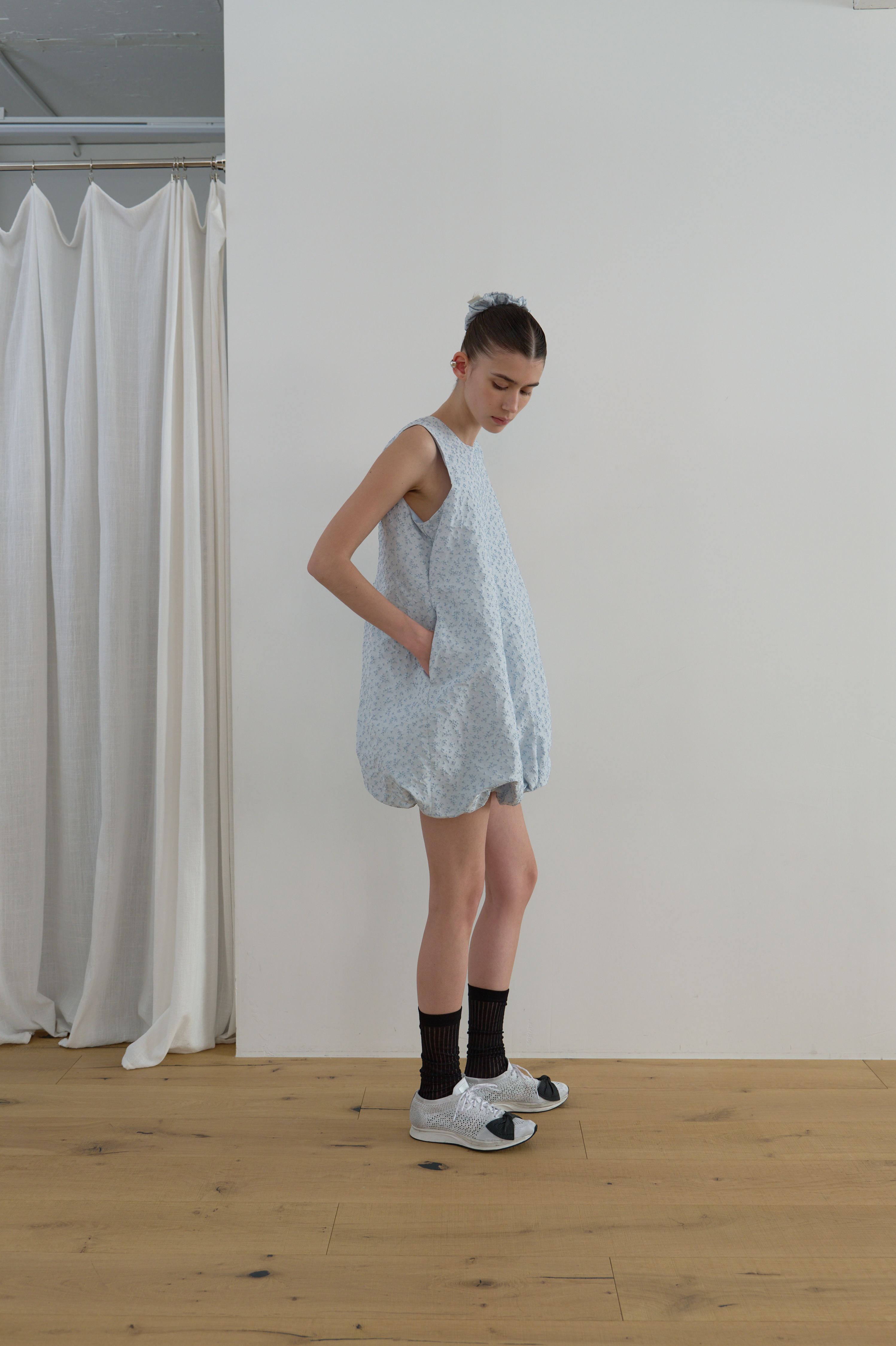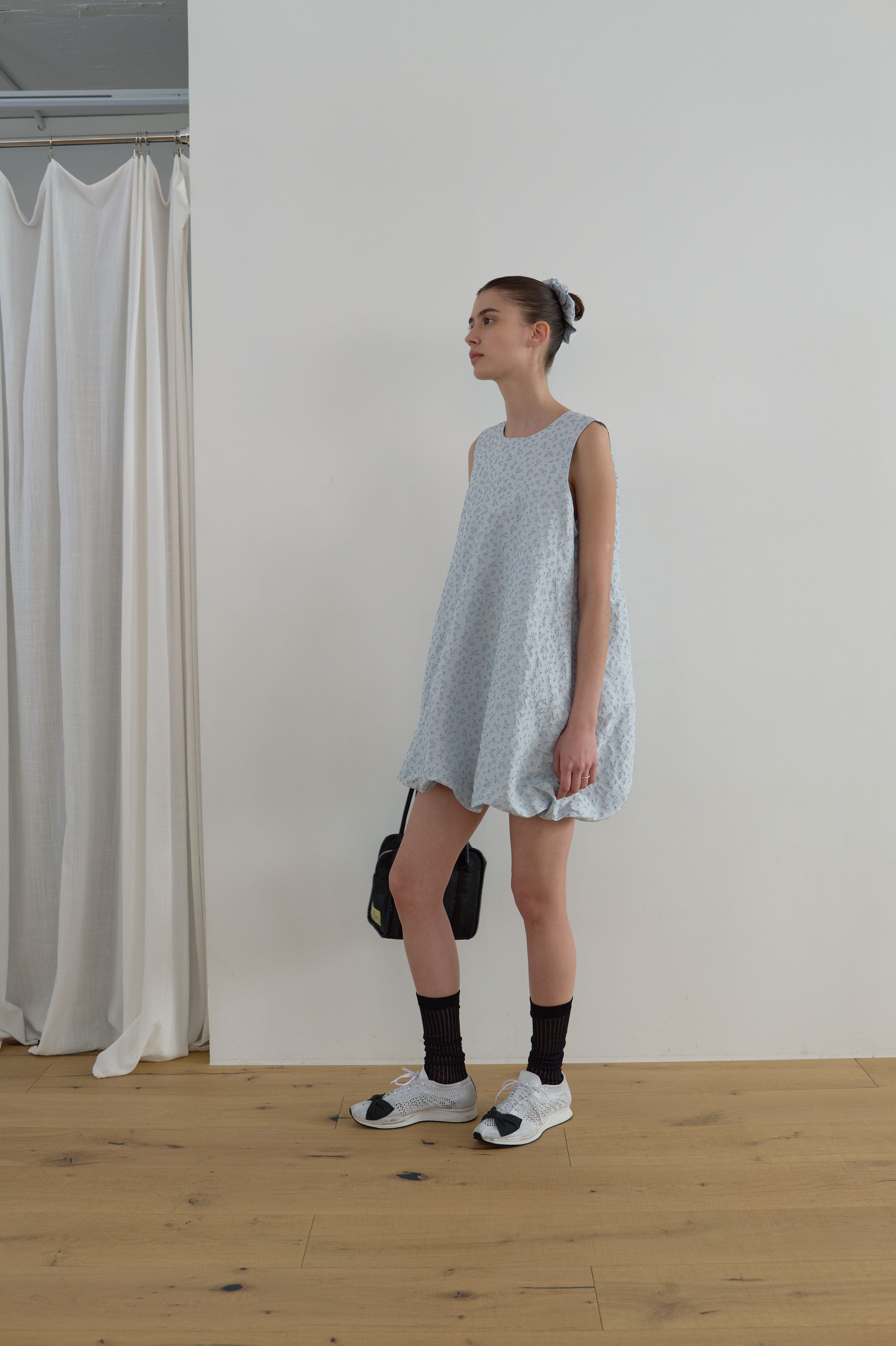 JACQUARD SCRUNCHIE SET BALLOON DRESS_SKY