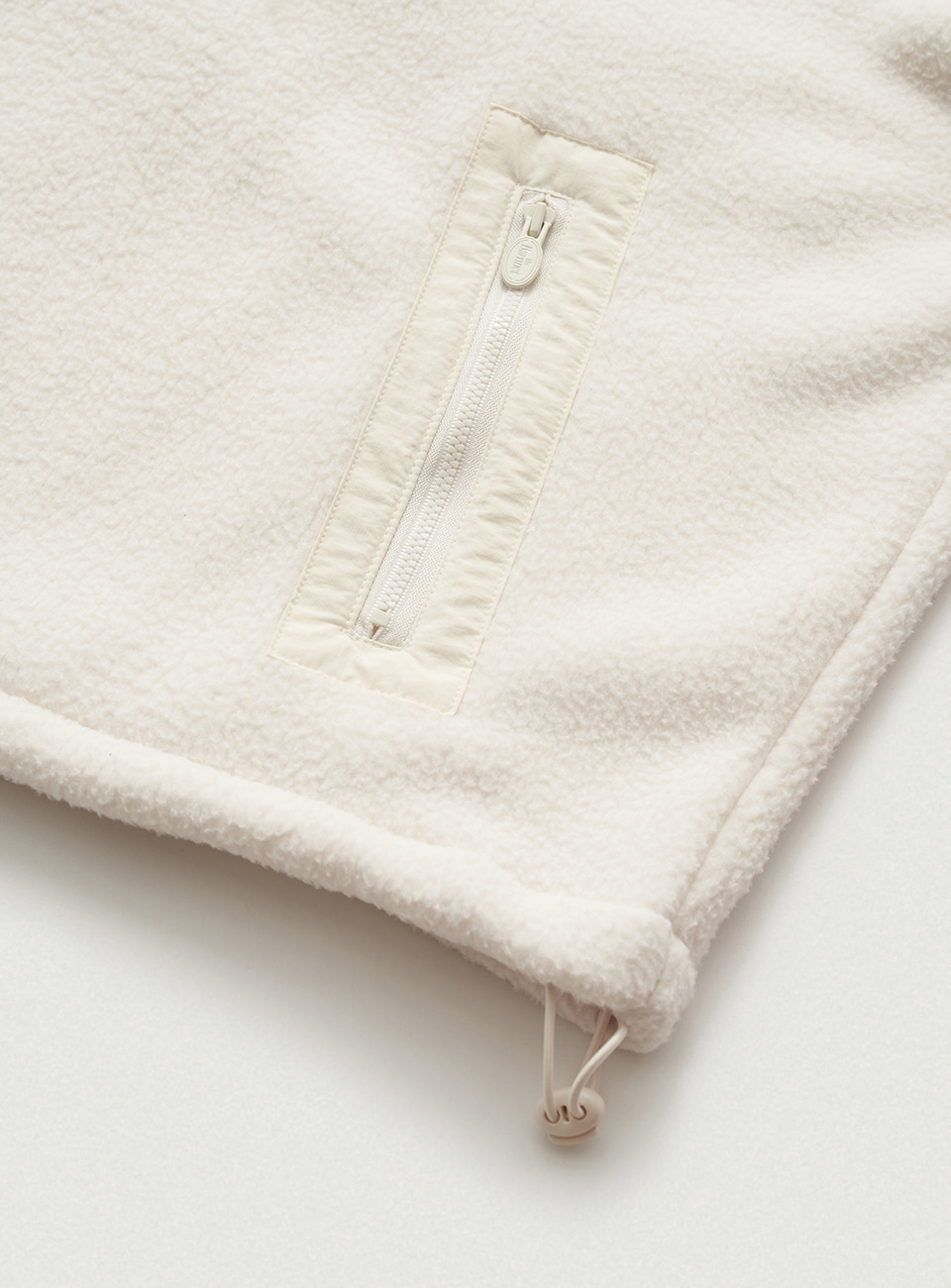 アイボリーカラーの、柔らかなテクスチャーが特徴のポリエステルフリースファブリックを使用。
