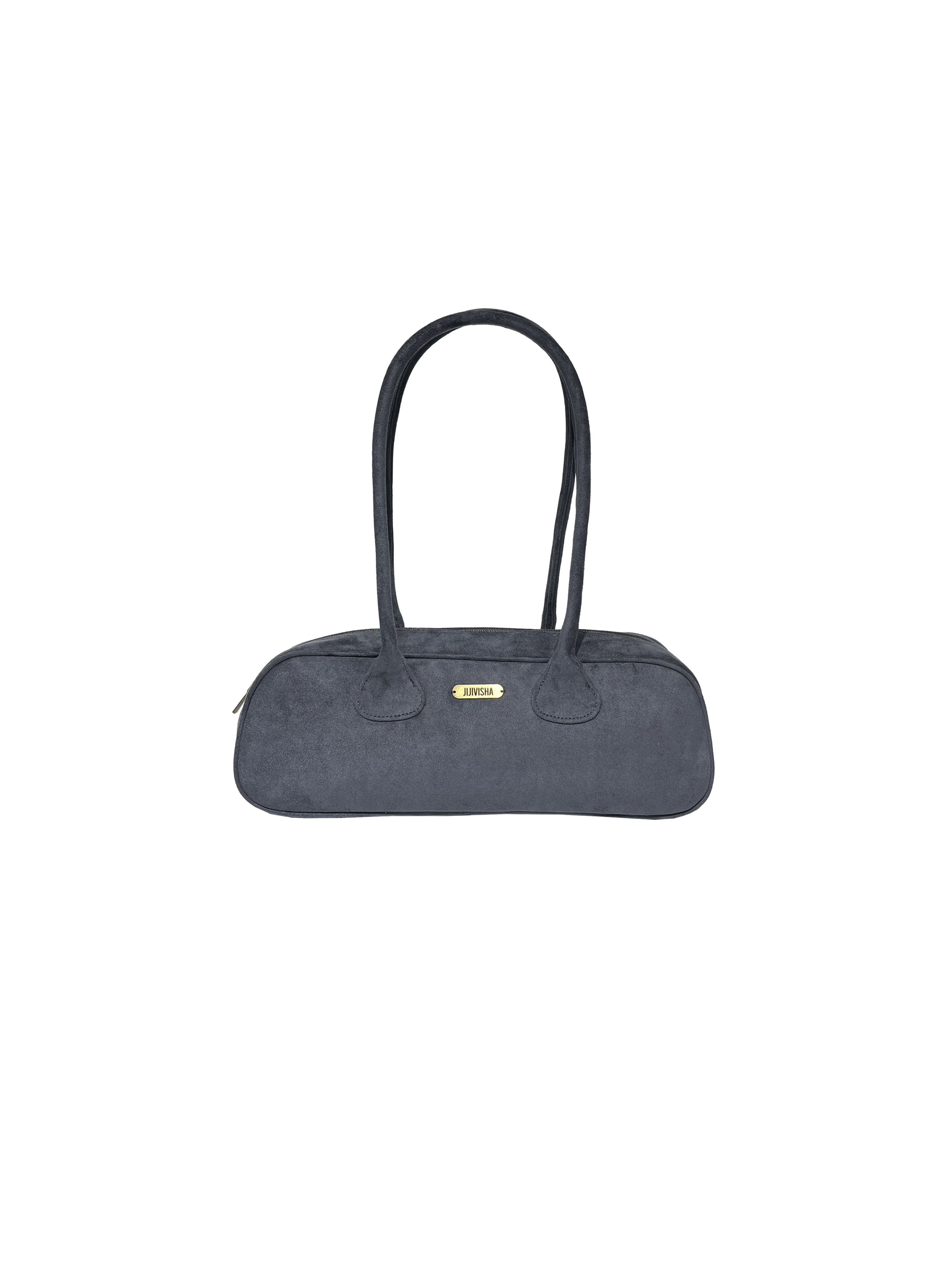 サポートビシャアンティークラベルポイントのスエードショルダーバッグ。