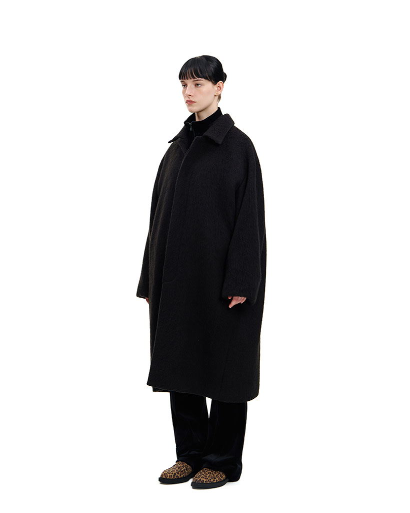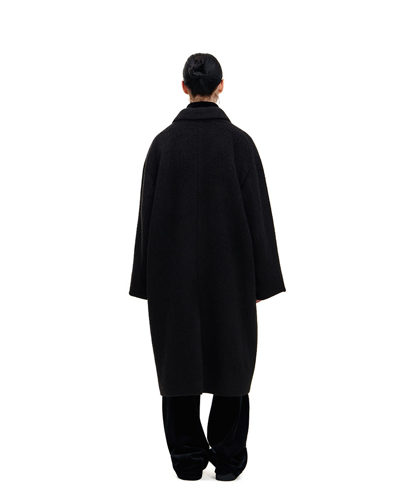 BLACK SINGLE-BREASTED COAT WITH INTERIOR CARD SLOTS