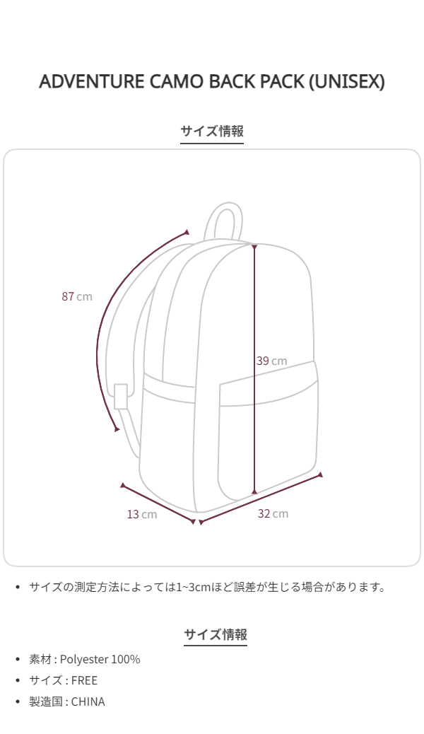 ADVENTURE CAMO BACK PACK (UNISEX)