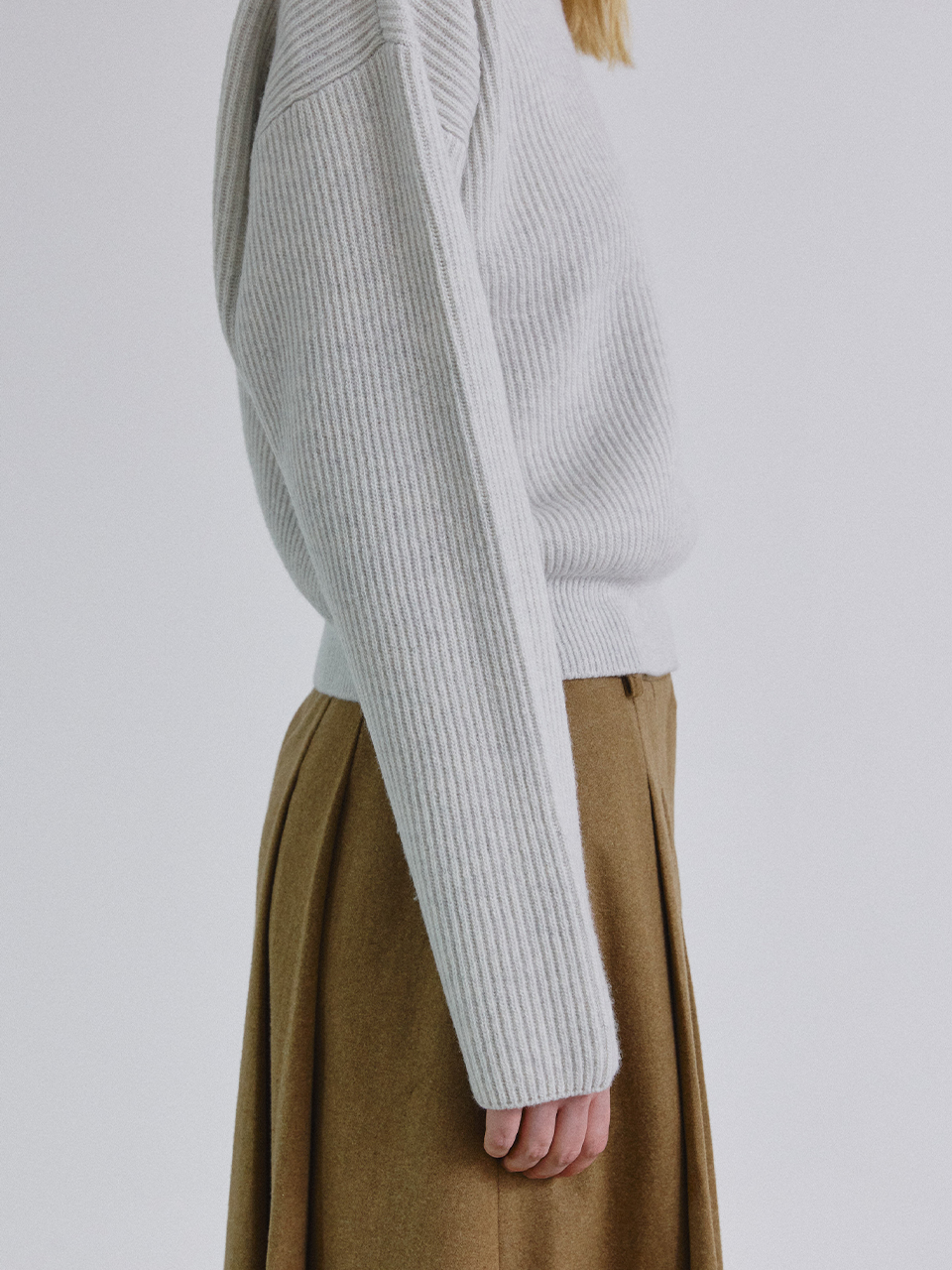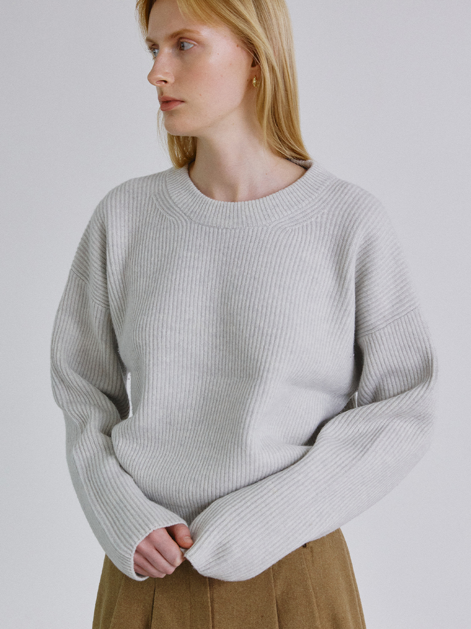 Series line - Cashmere drop round knit_LIGHT GREY