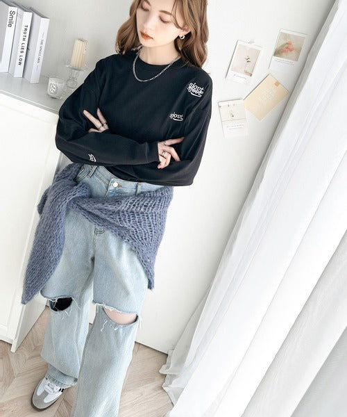 《Javaジャバコラボ》散りばめられたロゴ刺繍がトレンド感満載。コットン100%長袖プルオーバー jv1050219