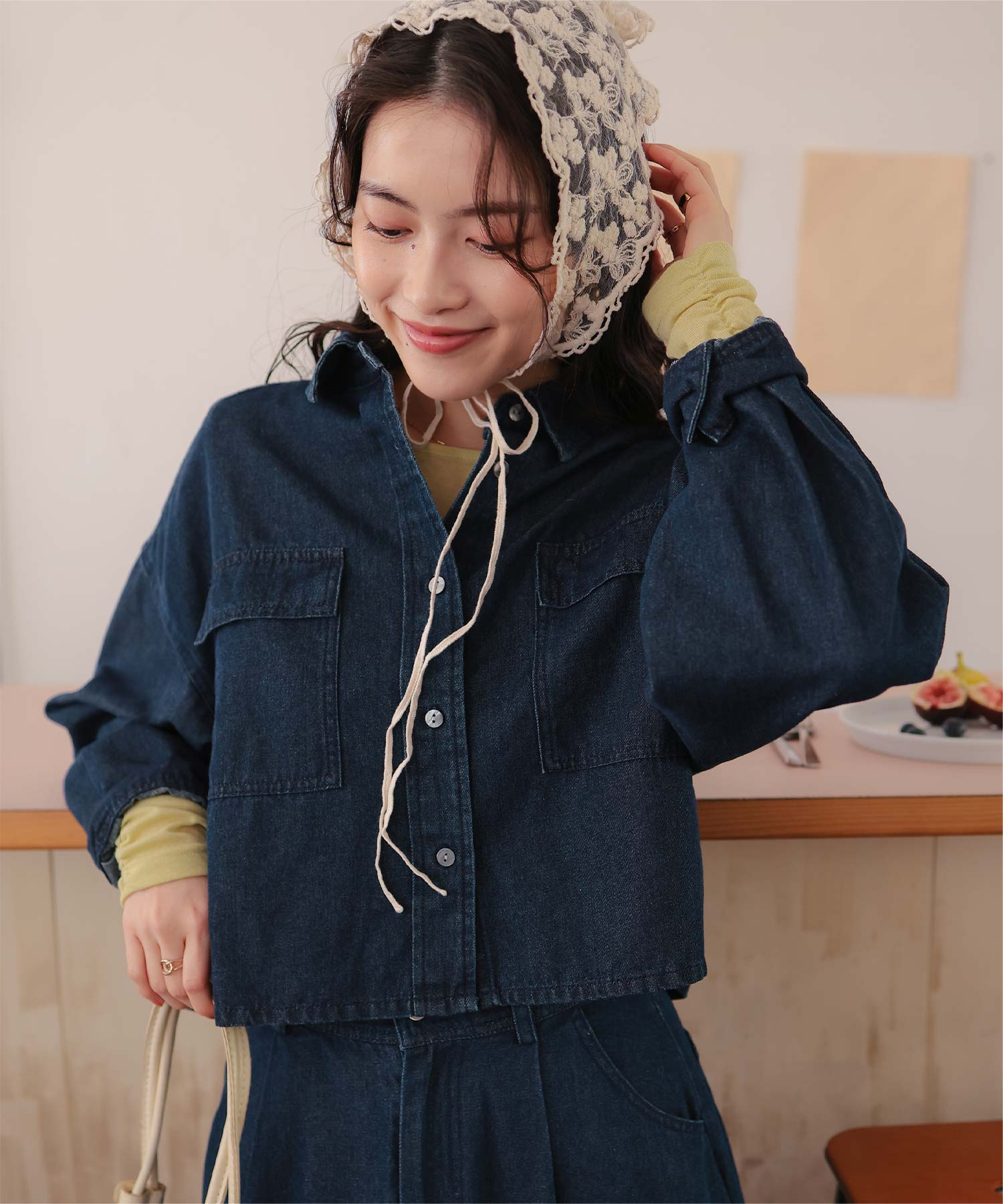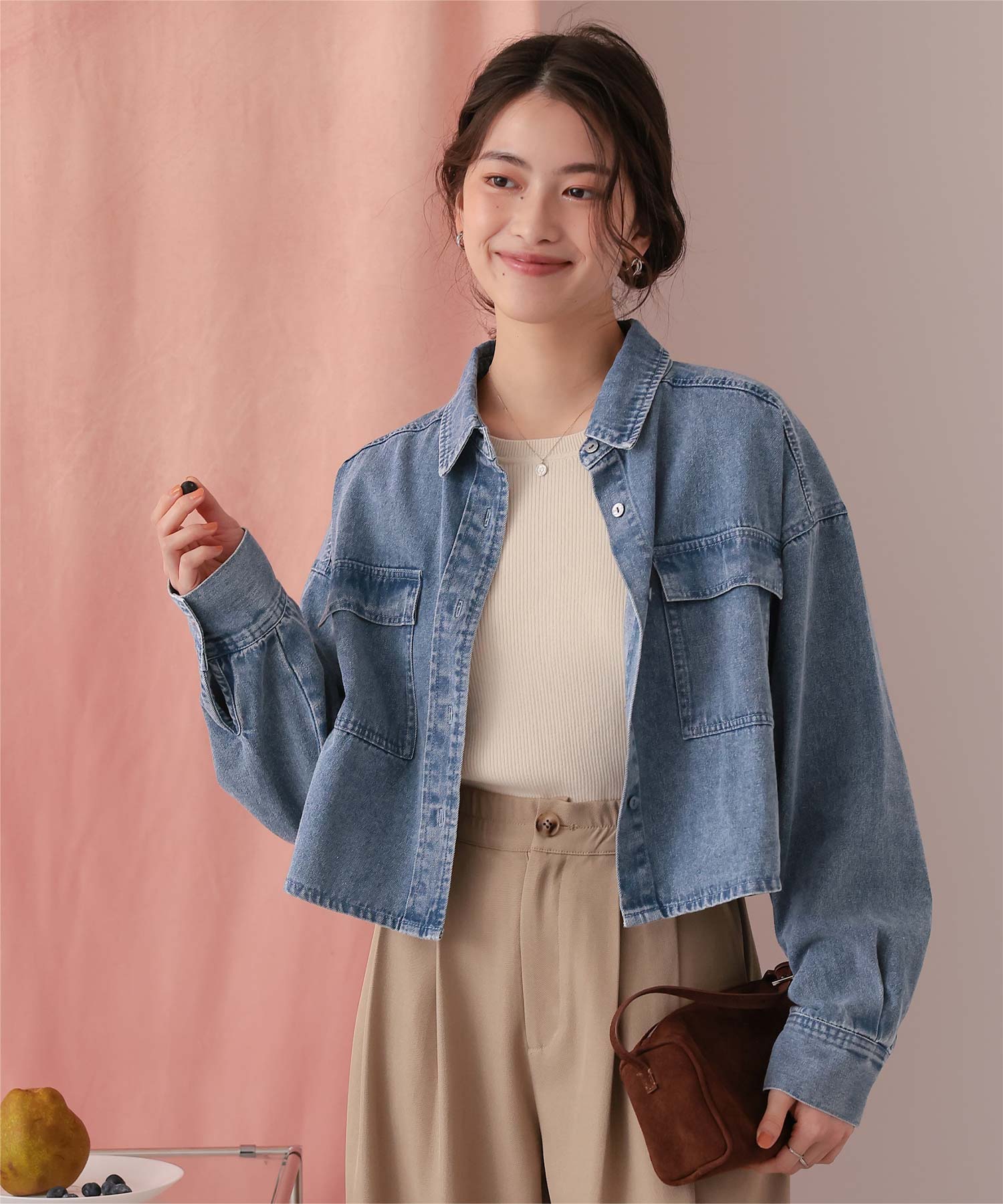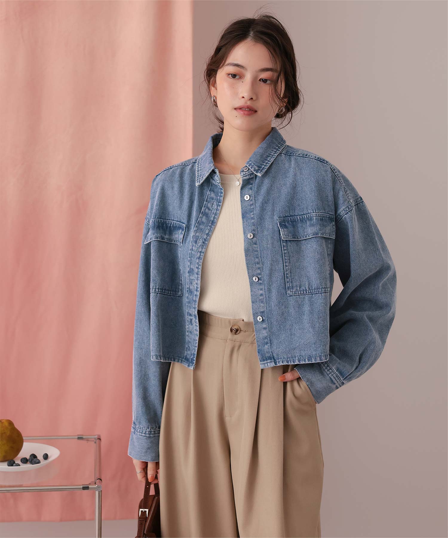 ・柔らかく軽やかなデニム素材で、ジャケット感覚でもブラウス感覚でも着られる万能アイテム