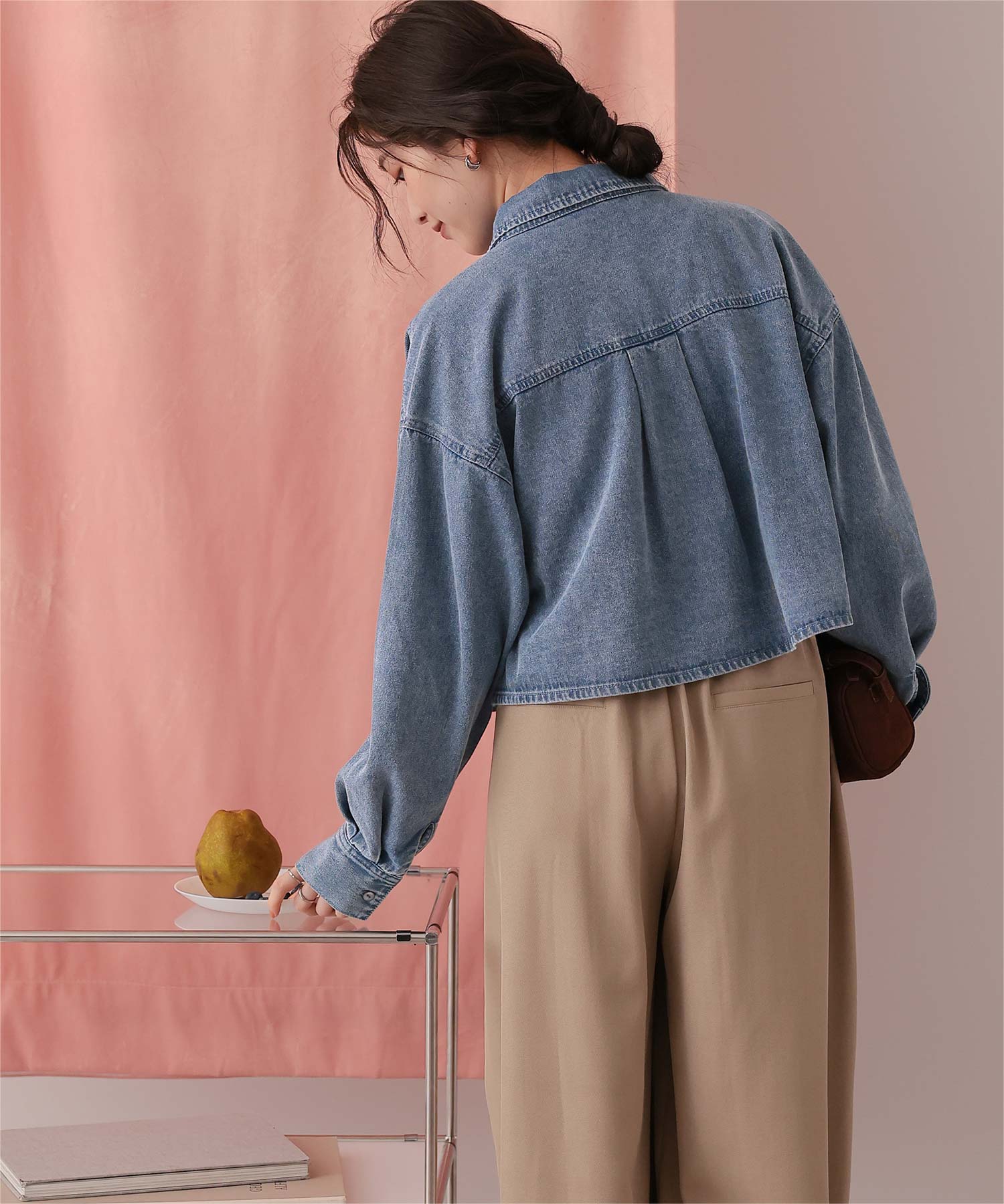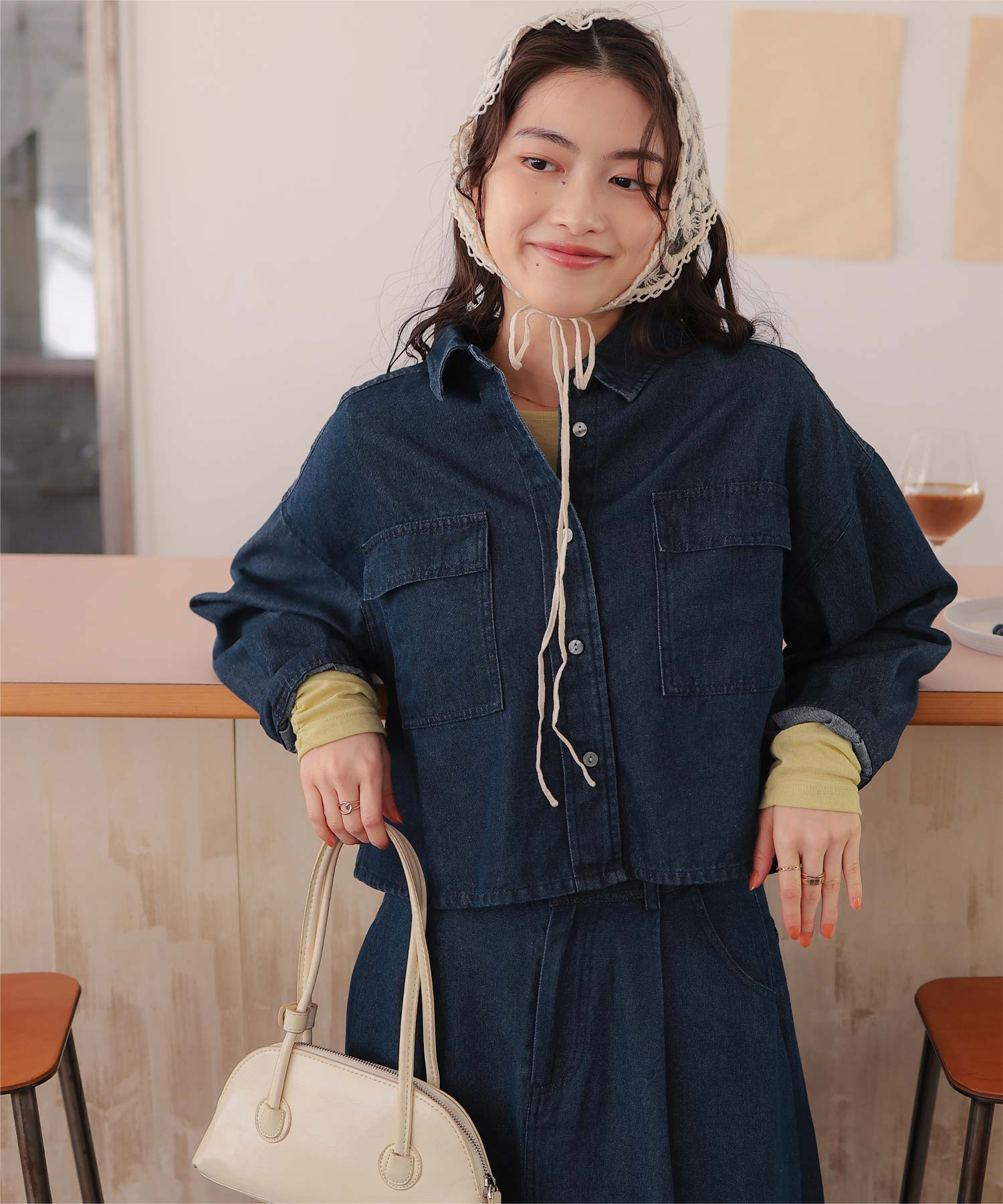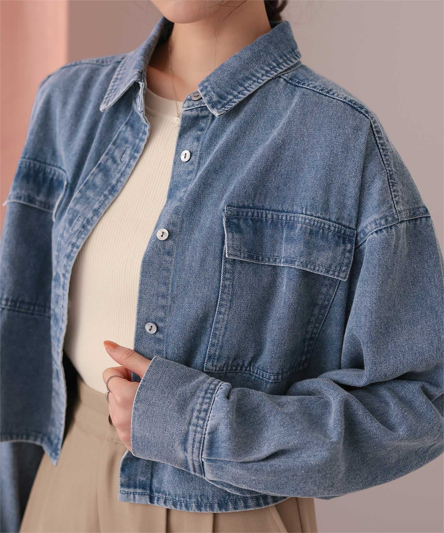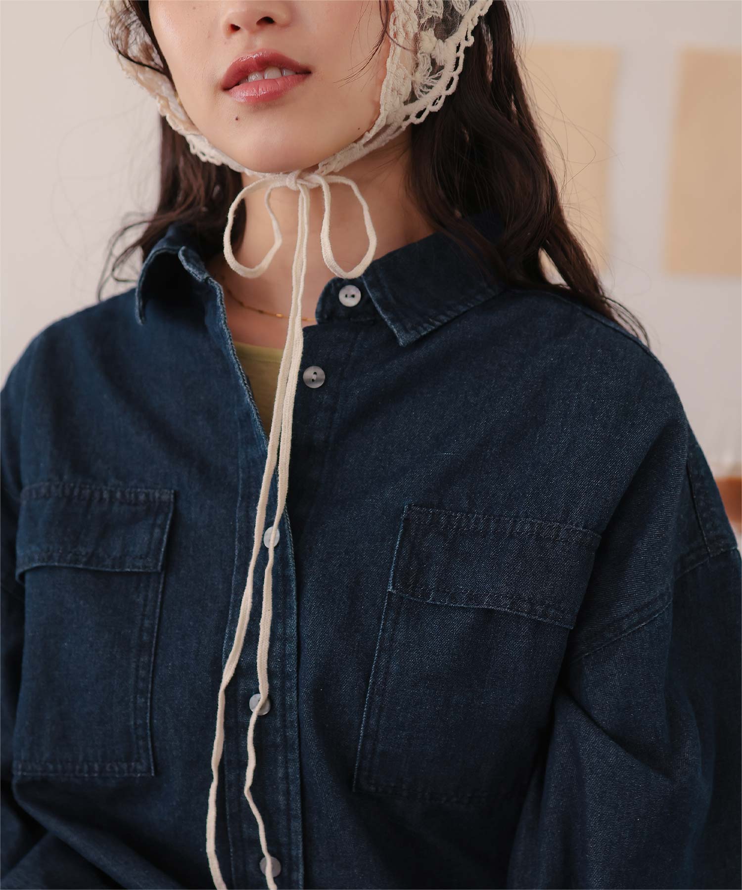 ・柔らかく軽やかなデニム素材で、ジャケット感覚でもブラウス感覚でも着られる万能アイテム