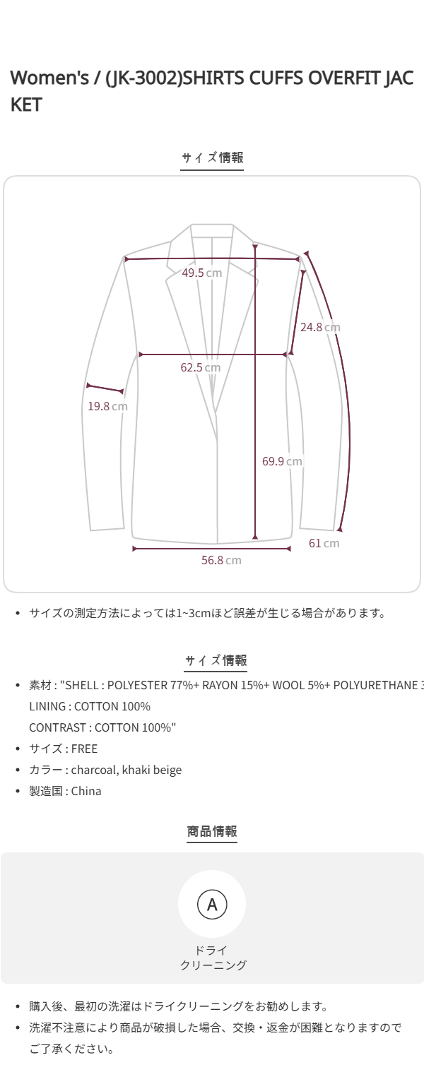 (JK-3002)SHIRTS CUFFS OVERFIT JACKET