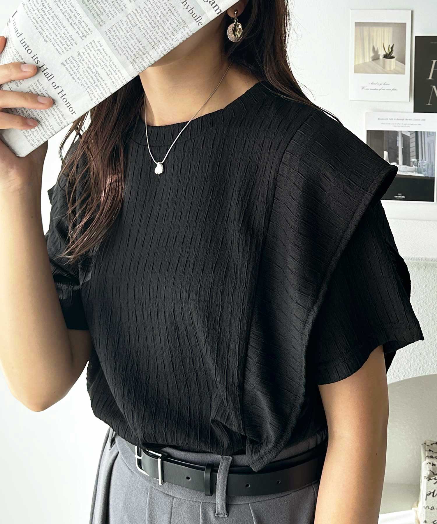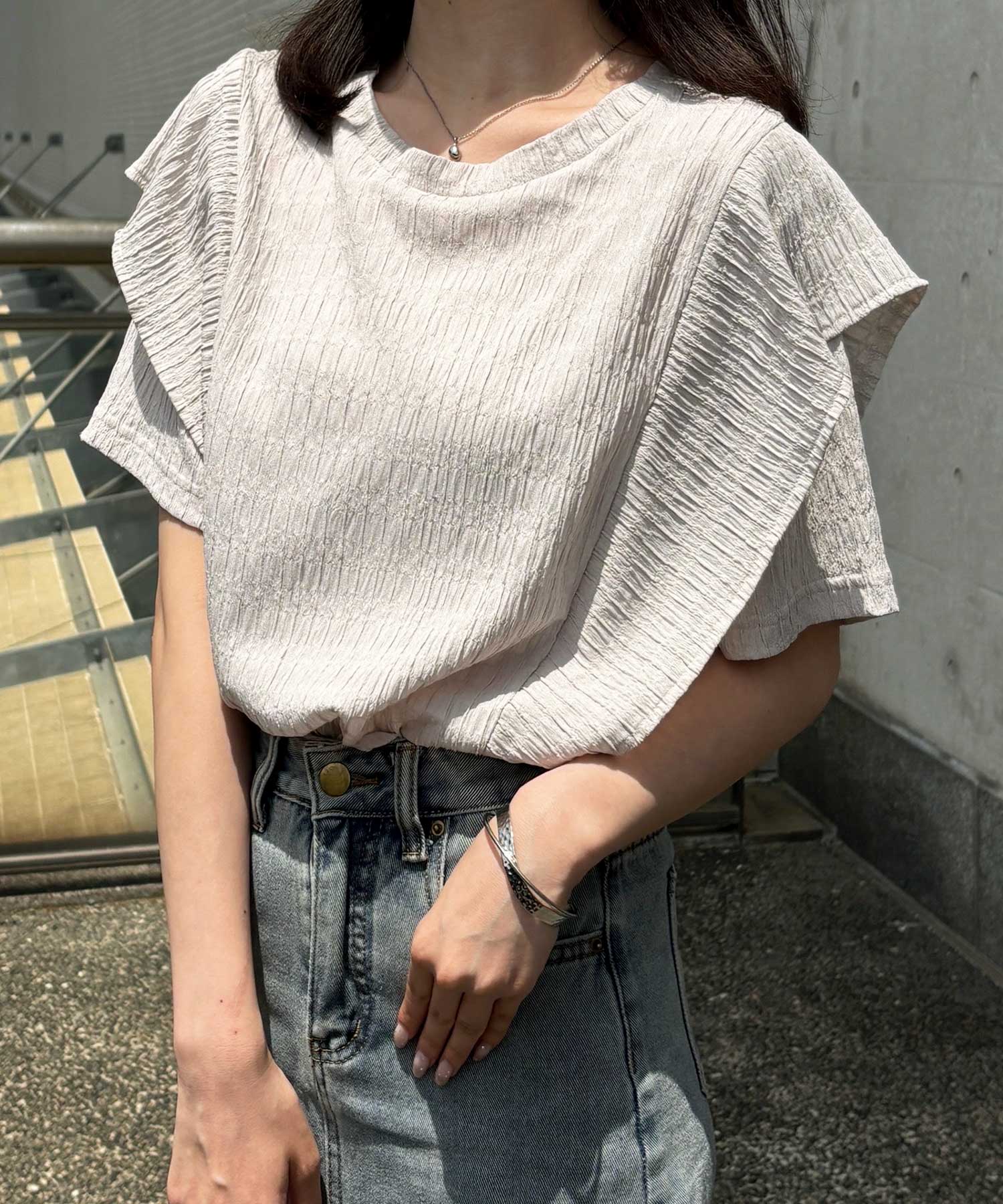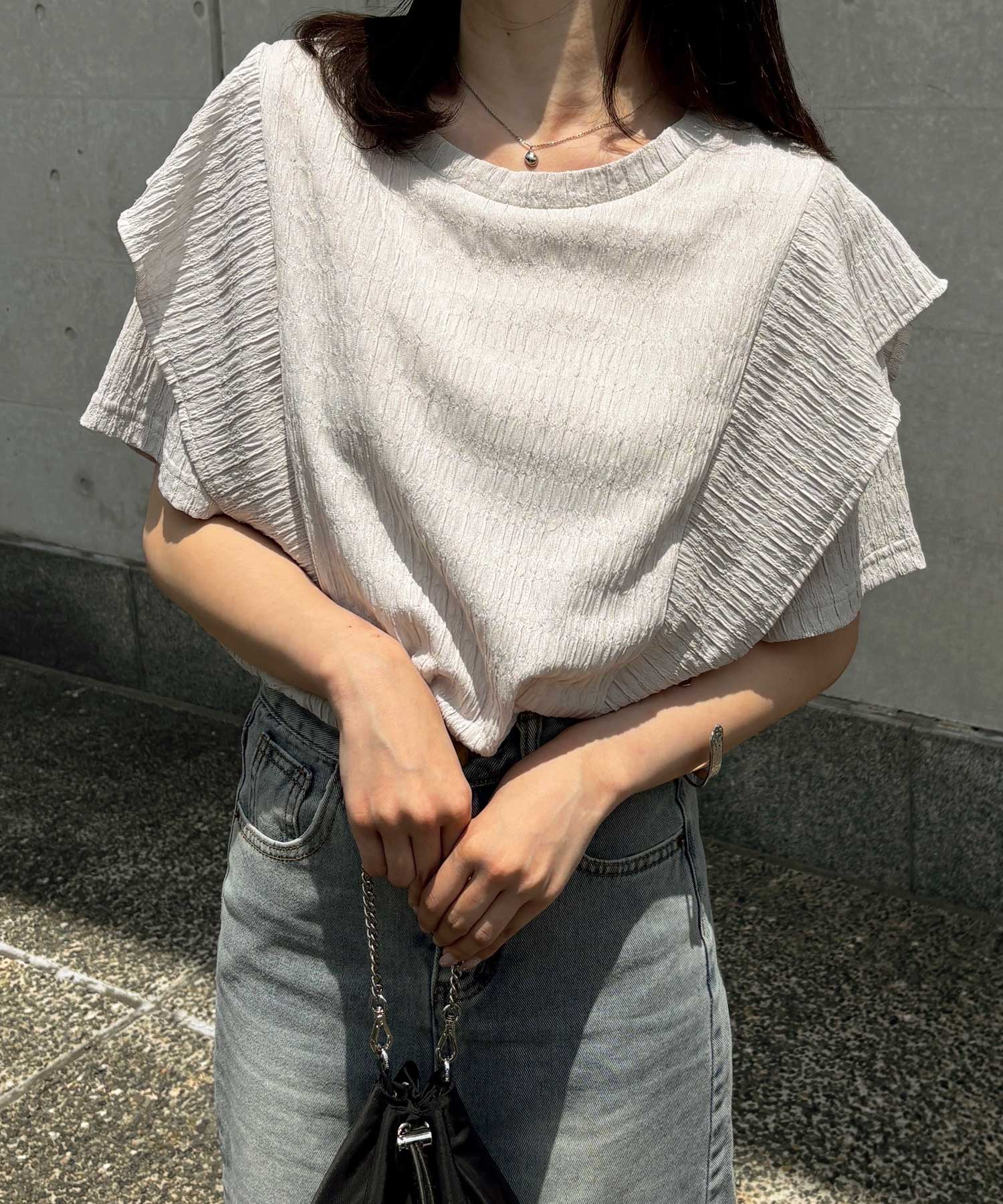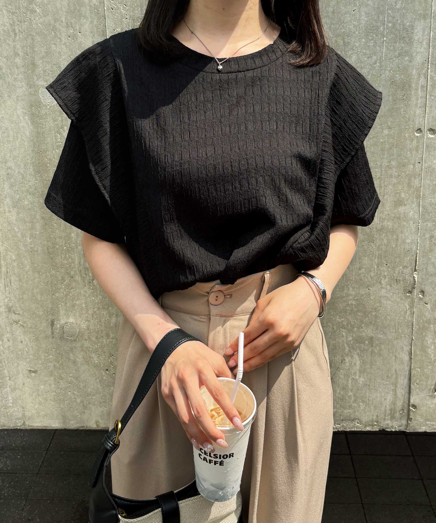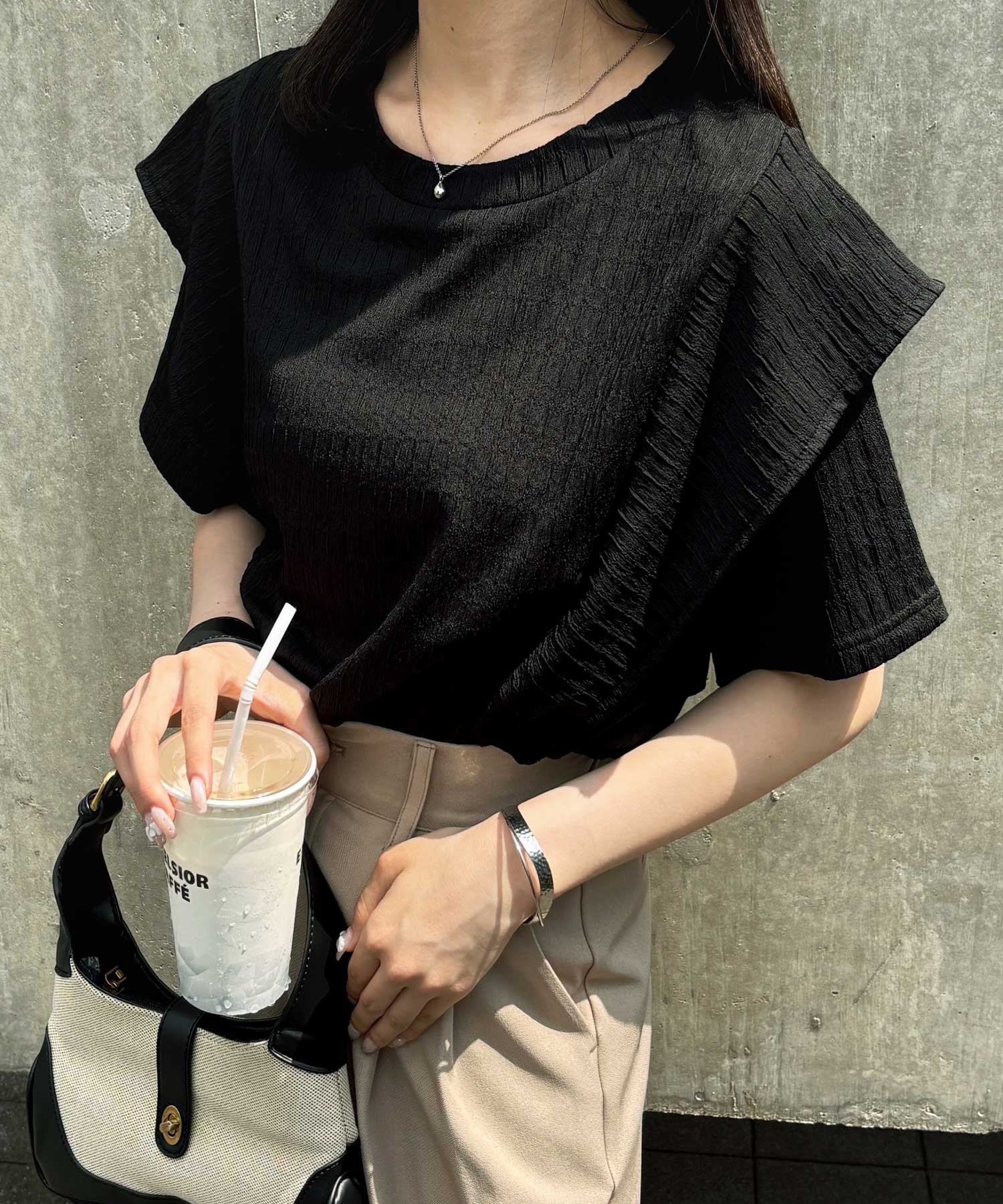 夏にぴったり!ラッフルショルダー表面感Tシャツ