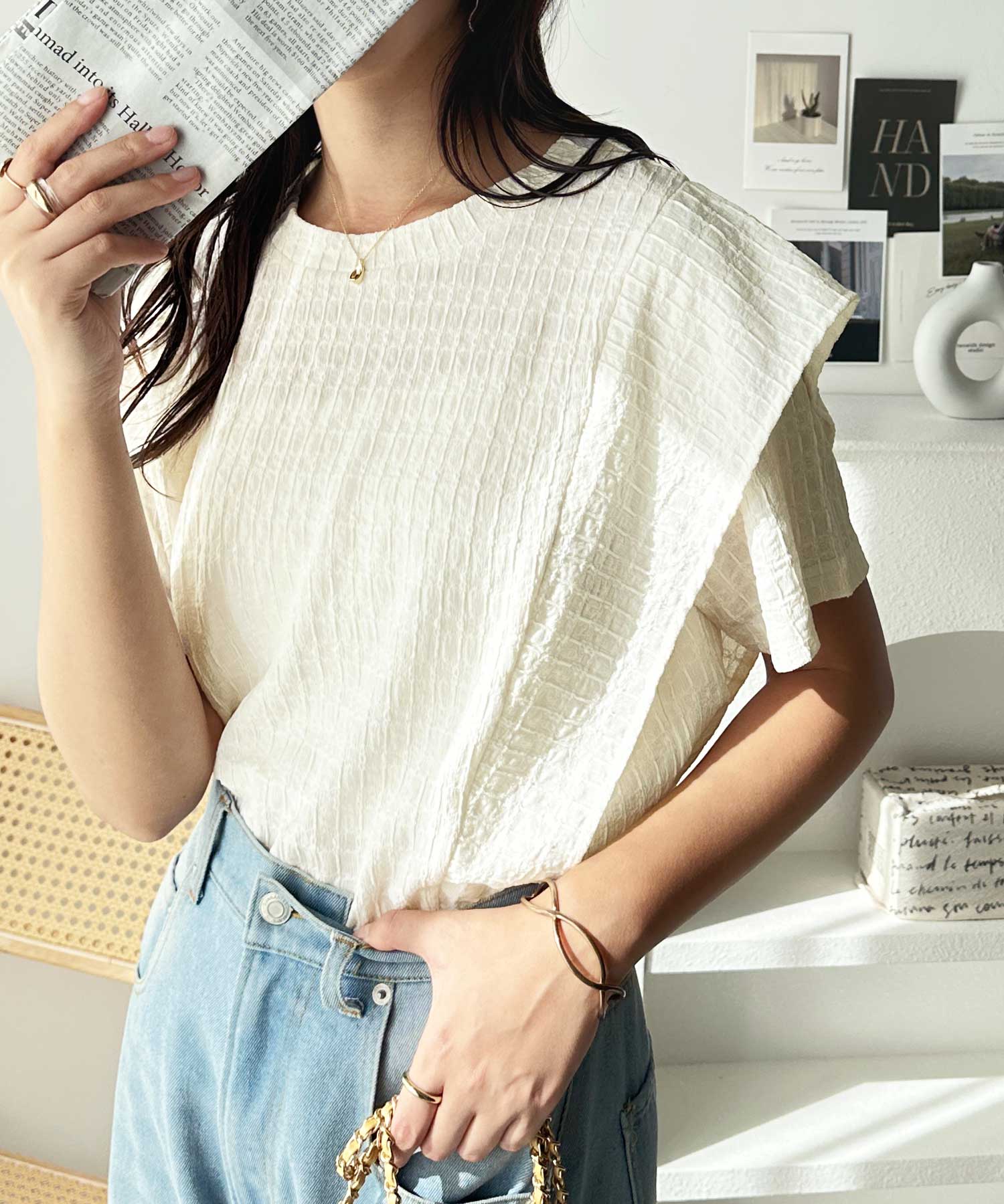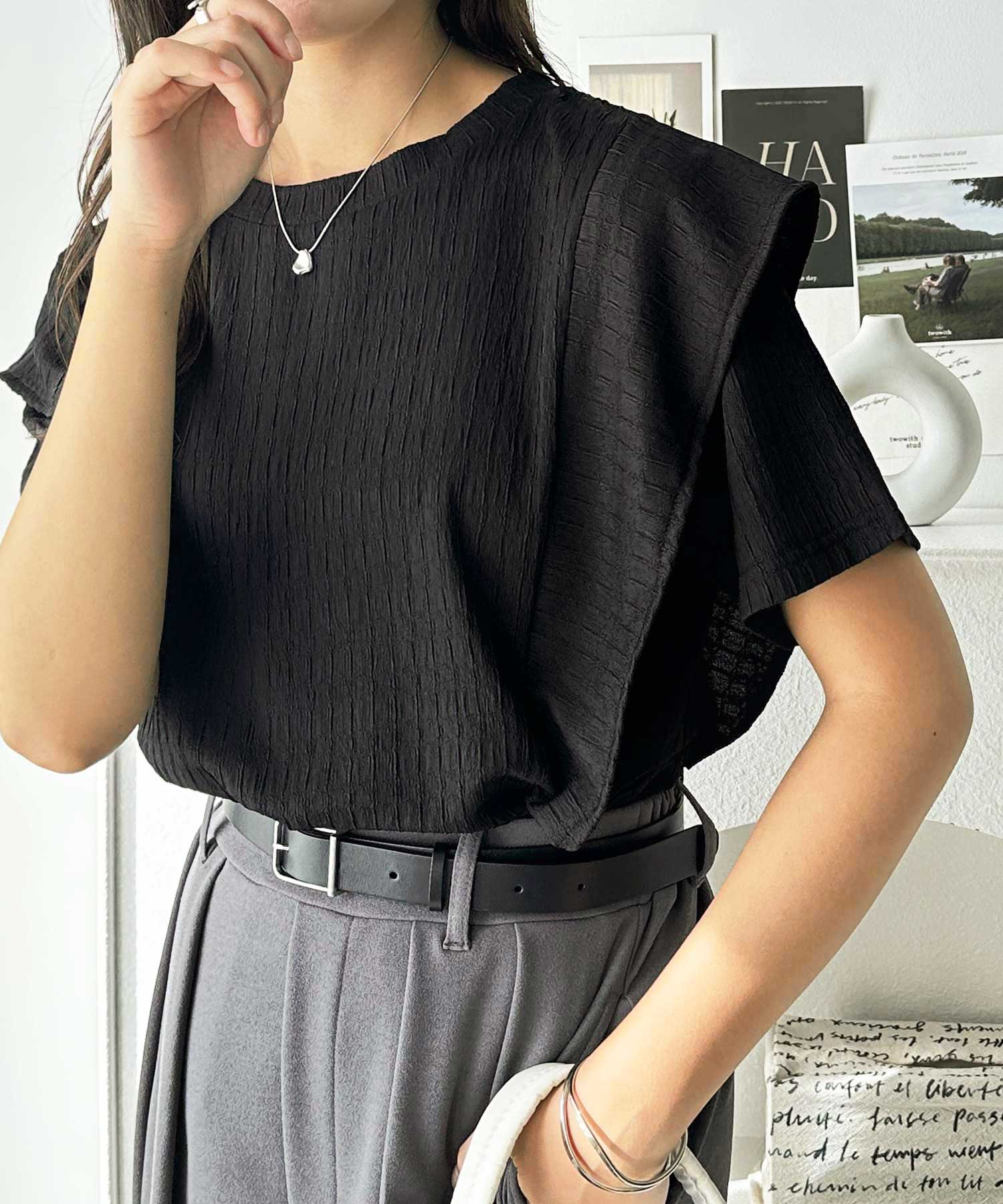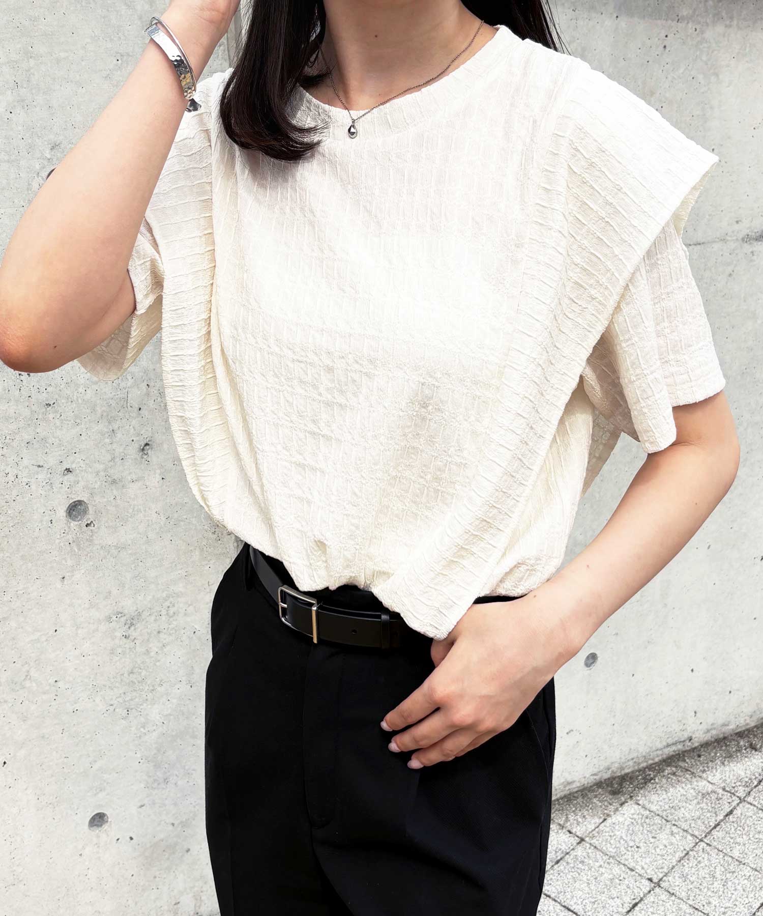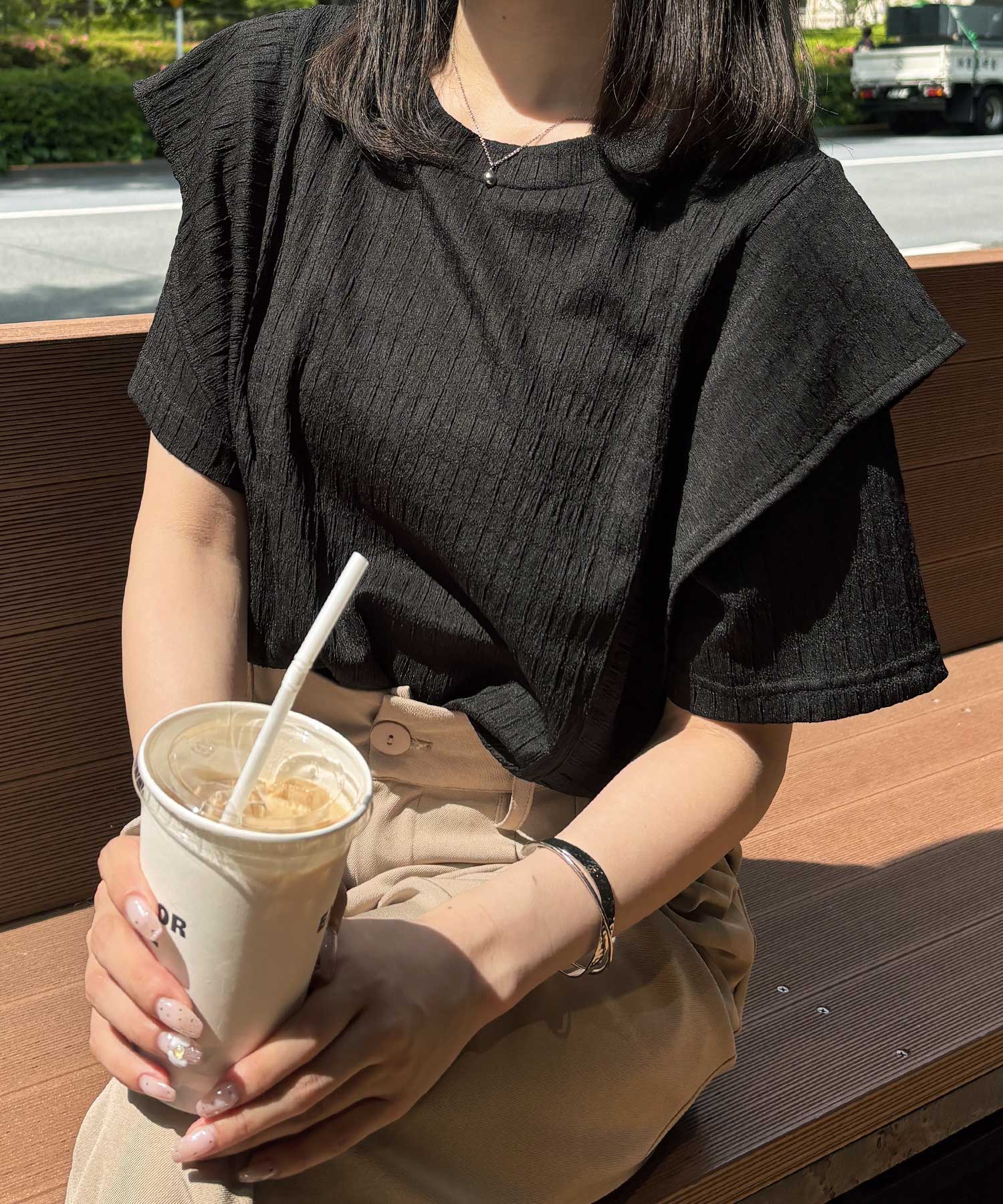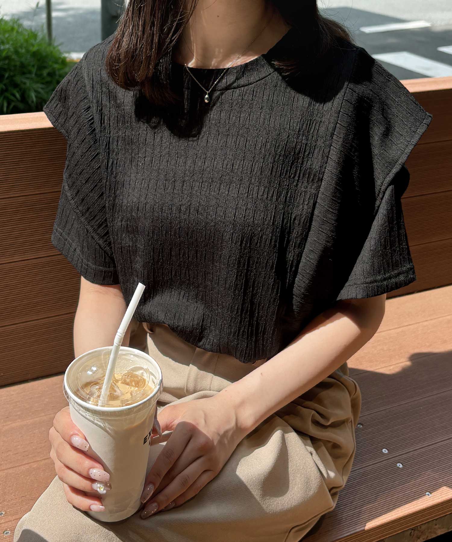 夏にぴったり!ラッフルショルダー表面感Tシャツ