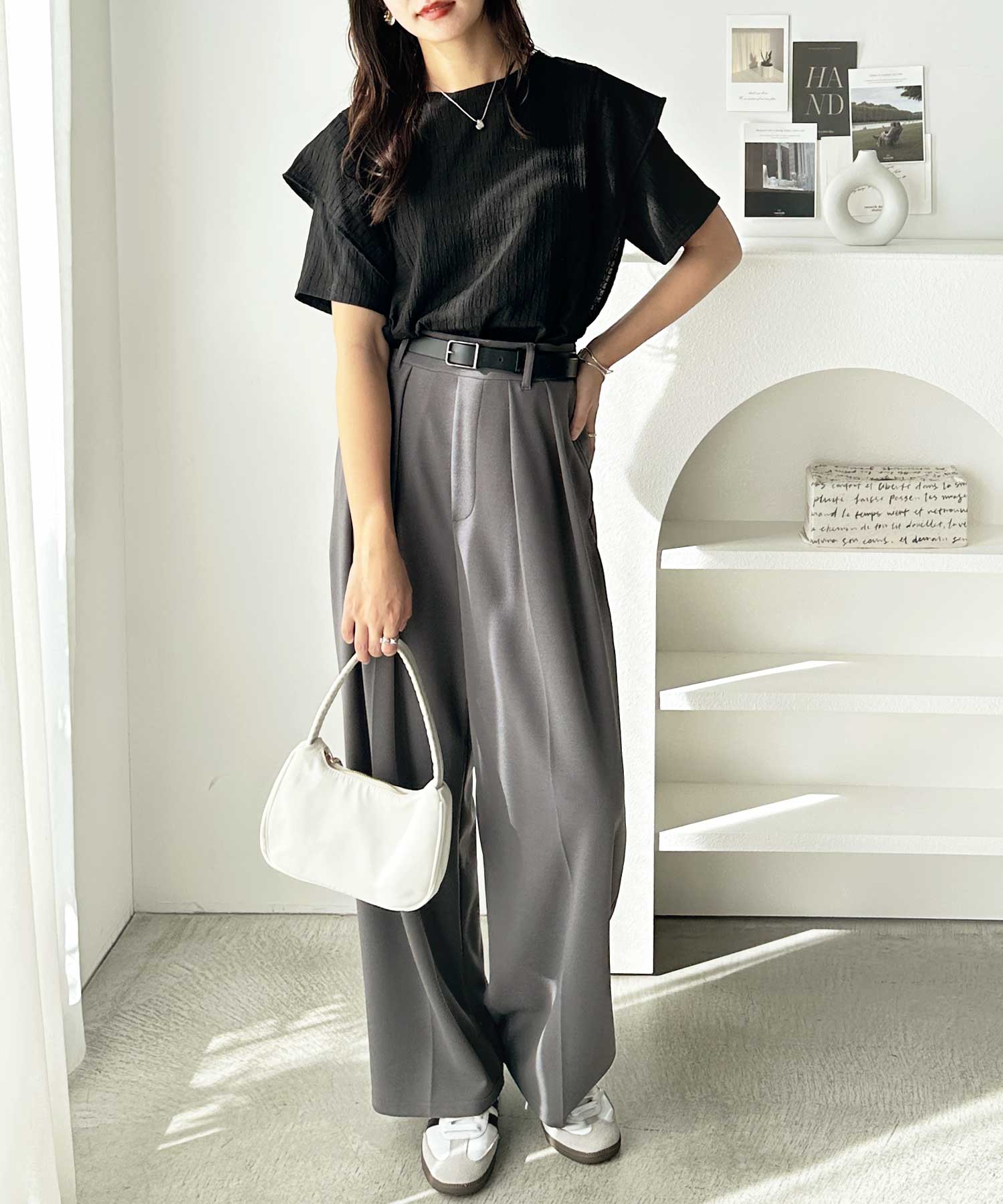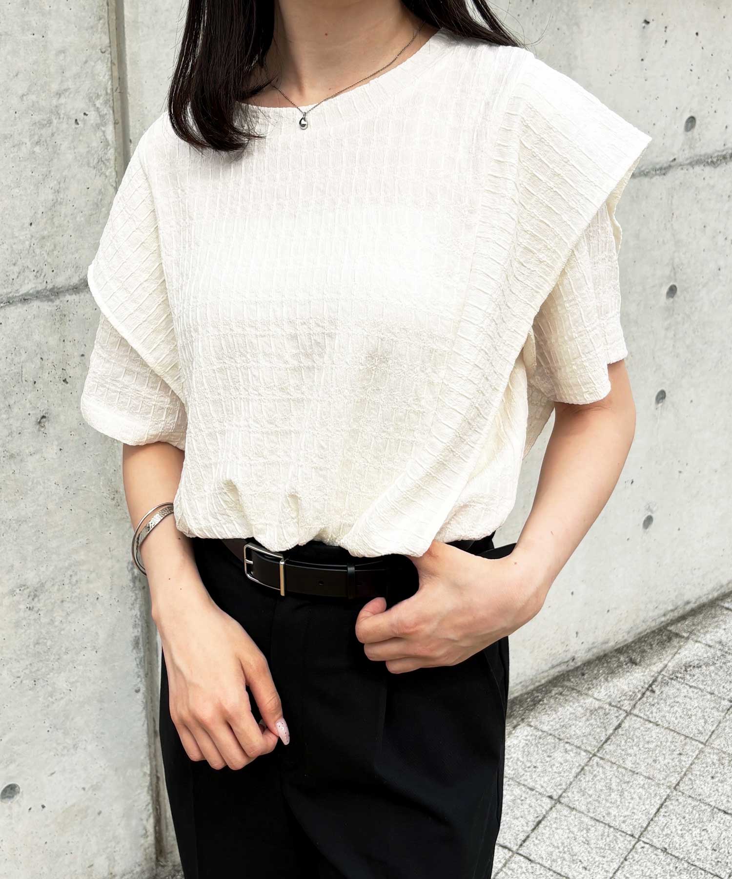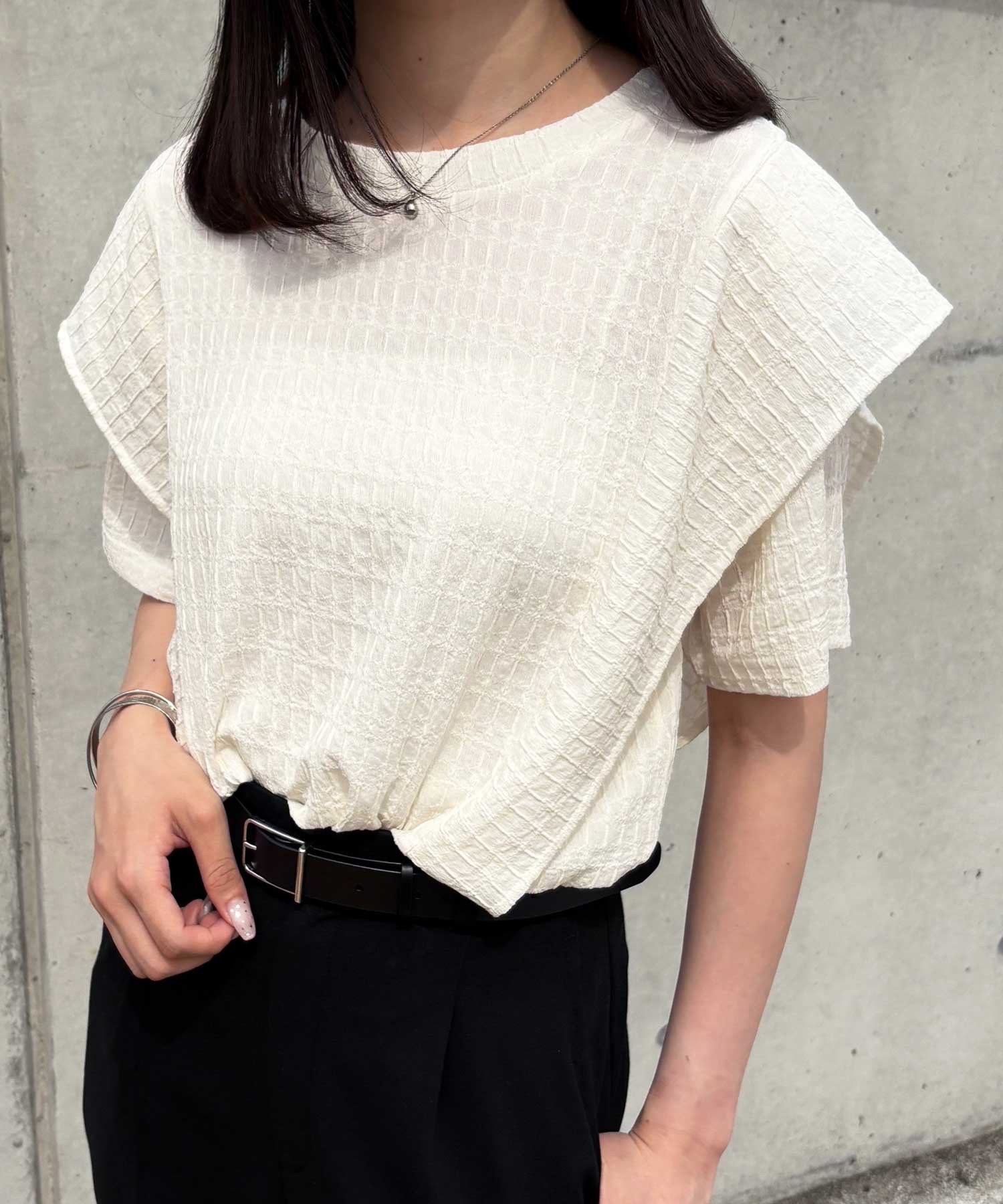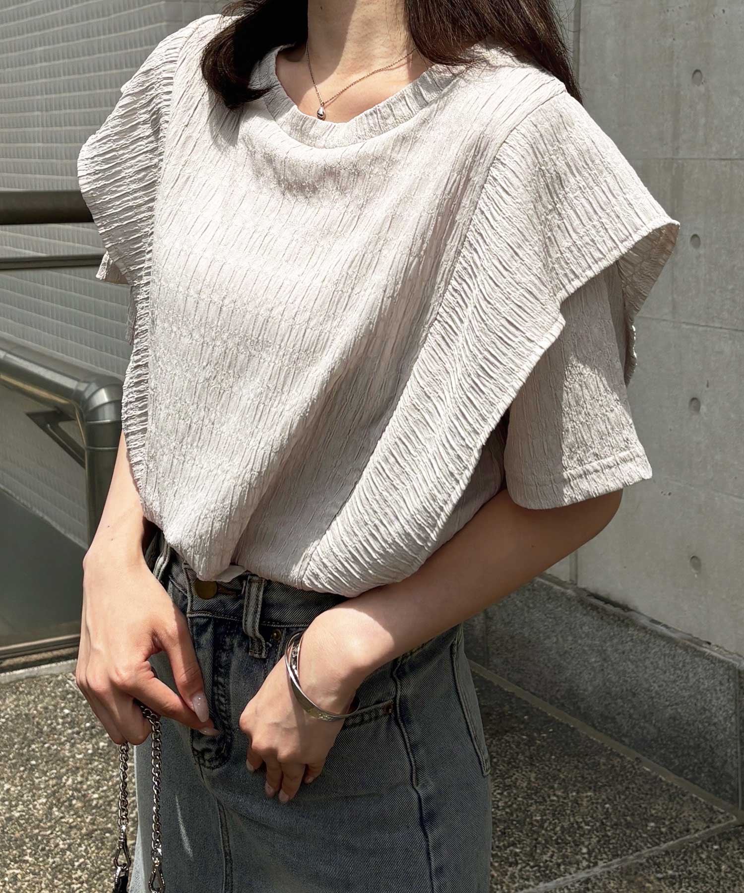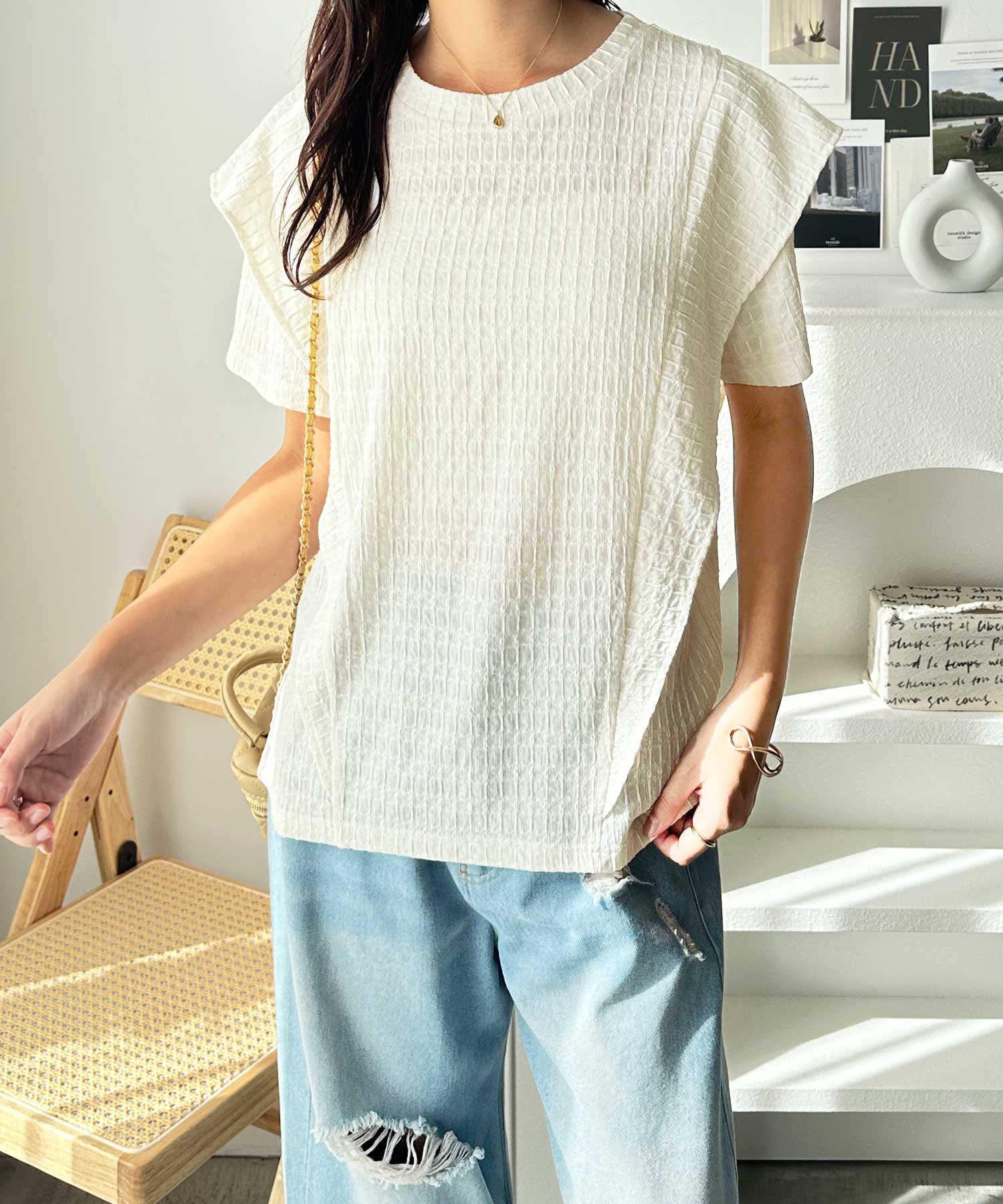 夏にぴったり!ラッフルショルダー表面感Tシャツ