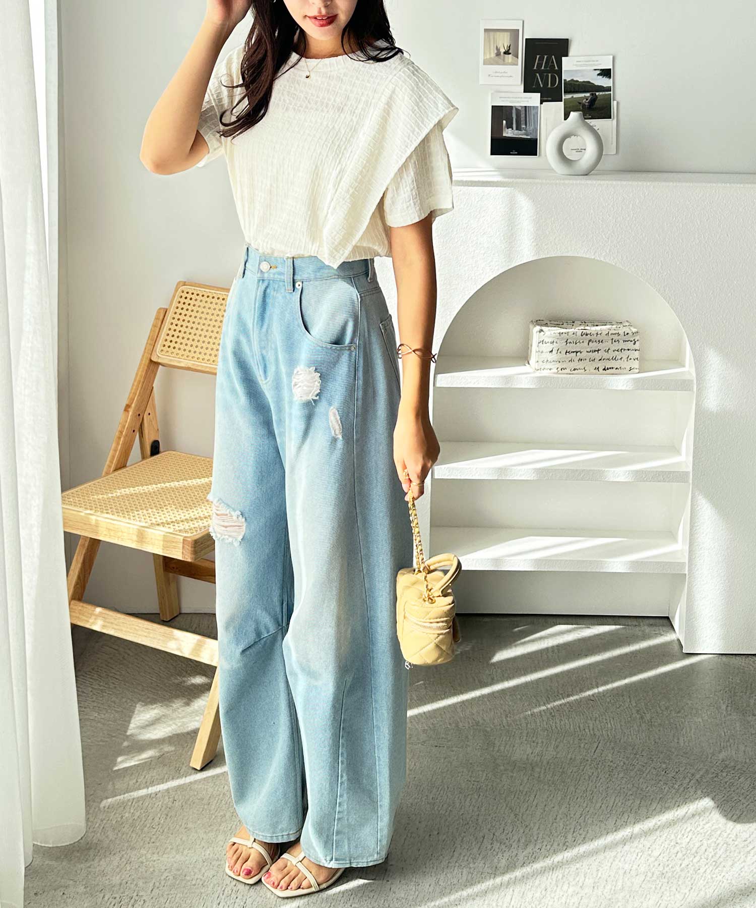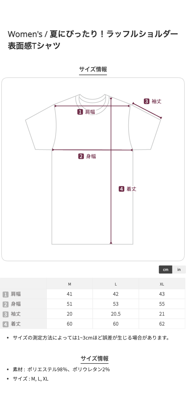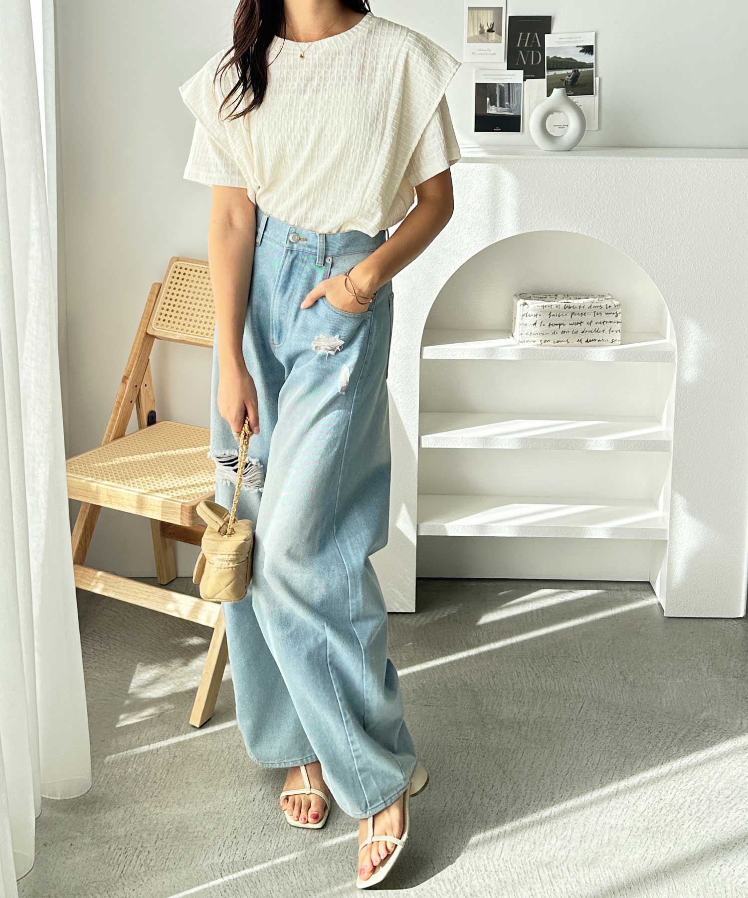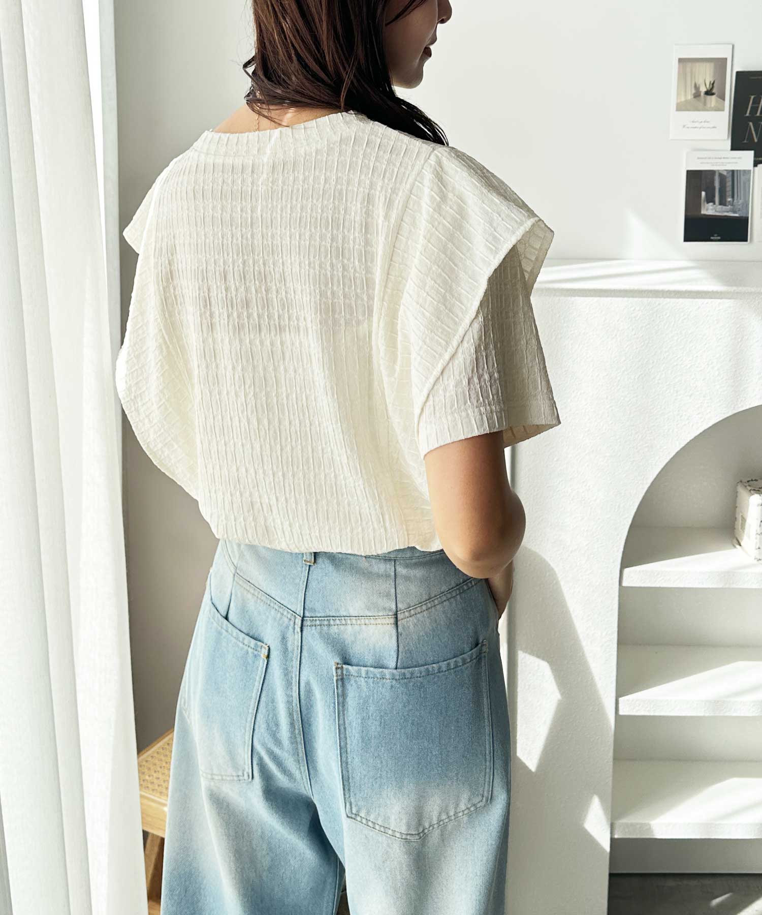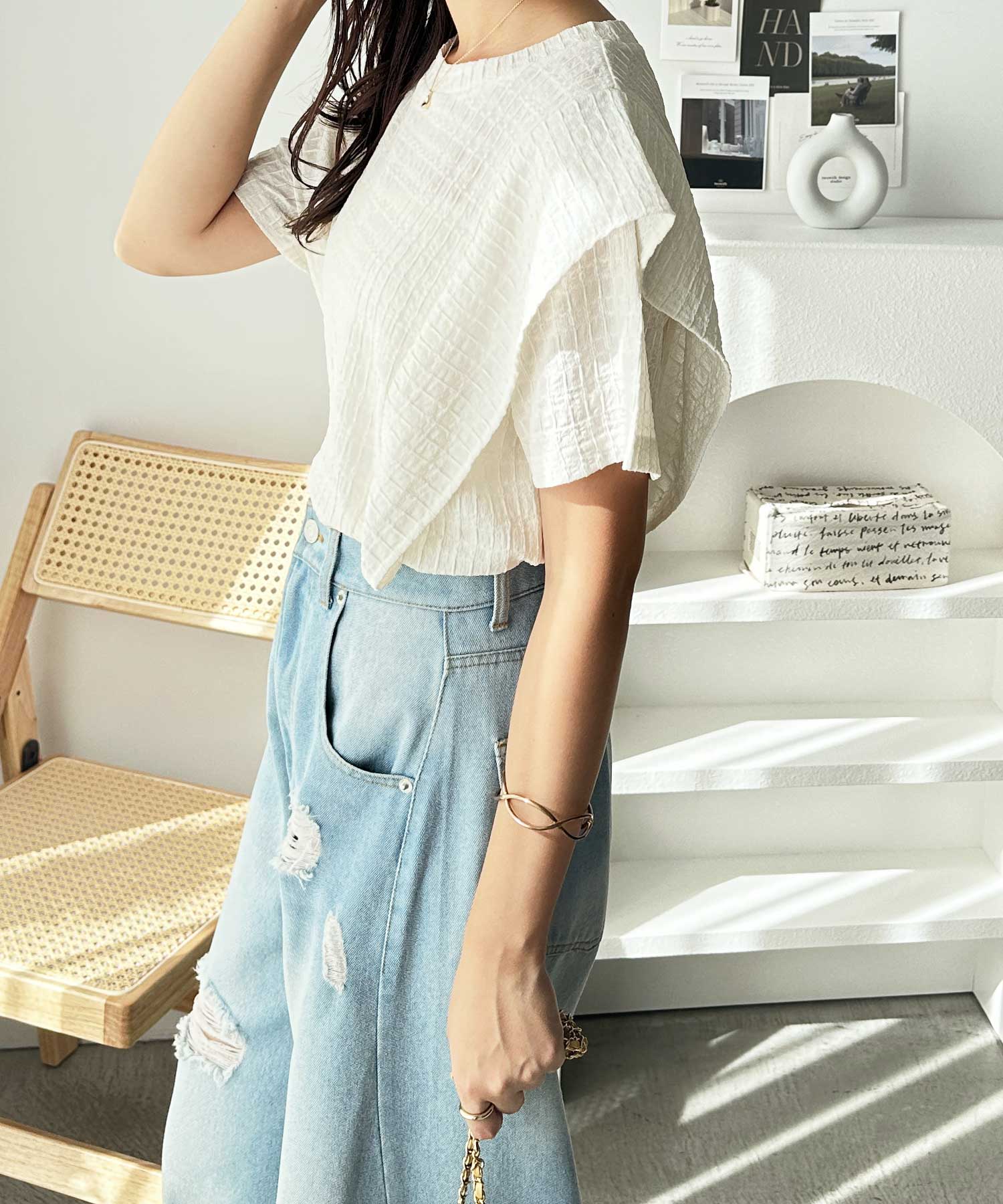 夏にぴったり!ラッフルショルダー表面感Tシャツ