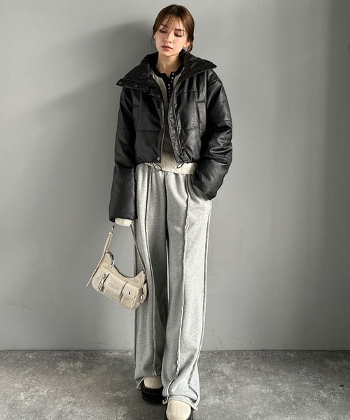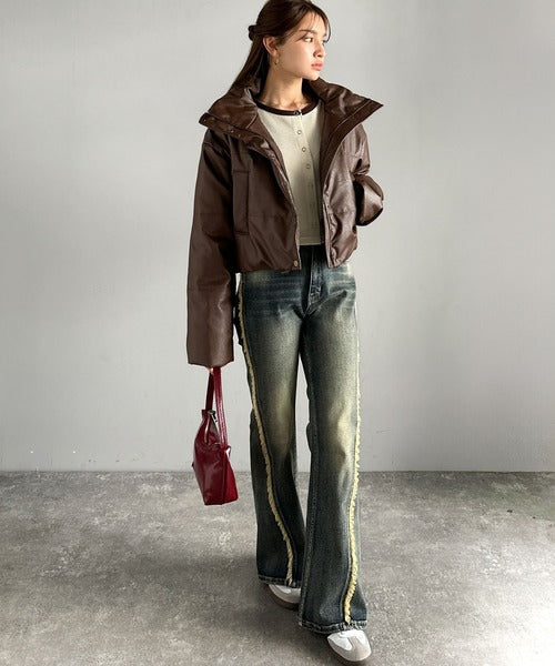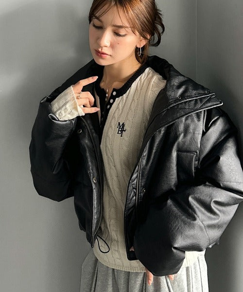 【mily bilet】ショート丈でスタイルアップ◎ ヴィンテージライクレザークロップド中綿コート mi1269013