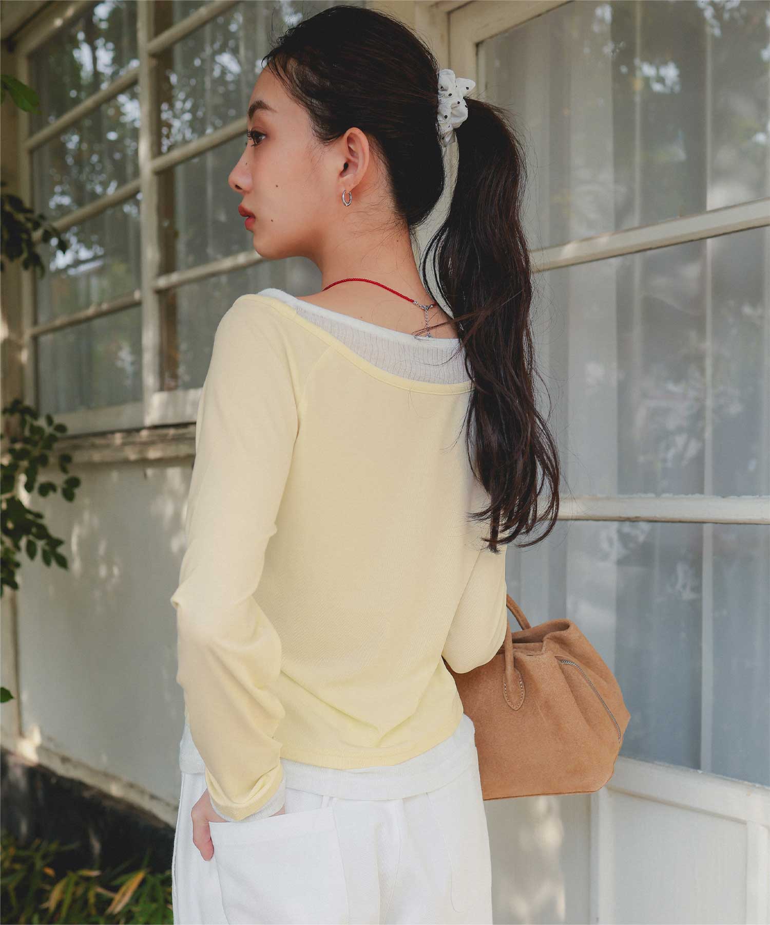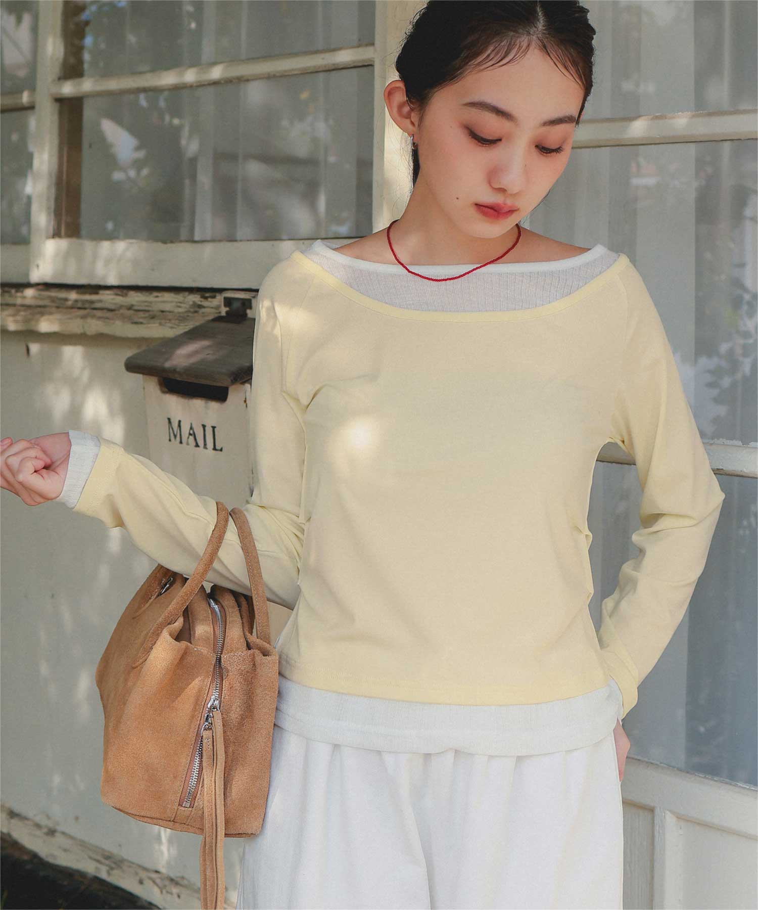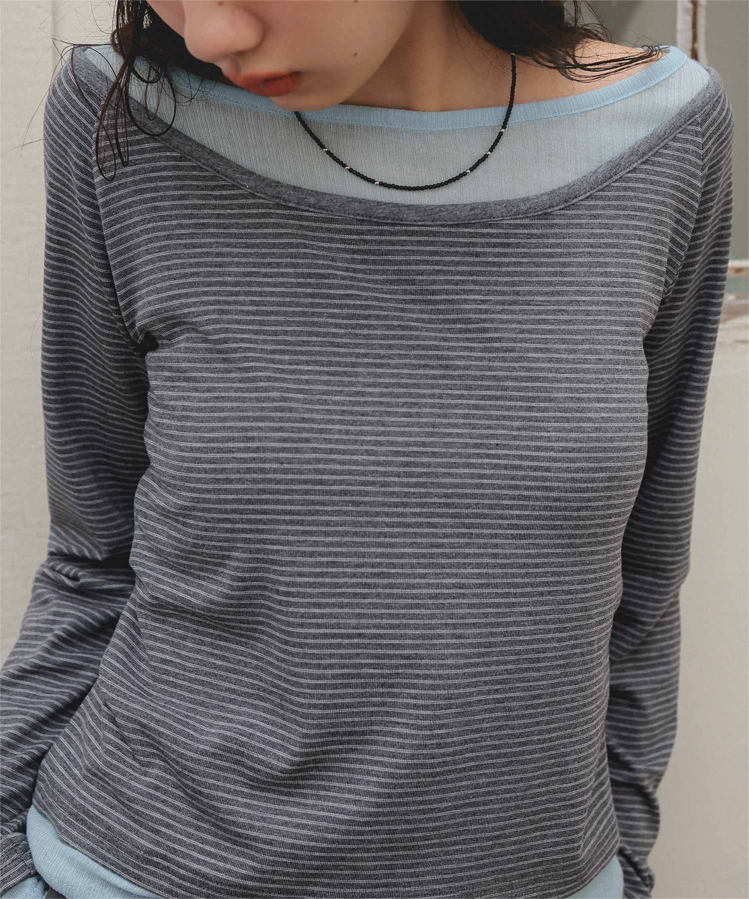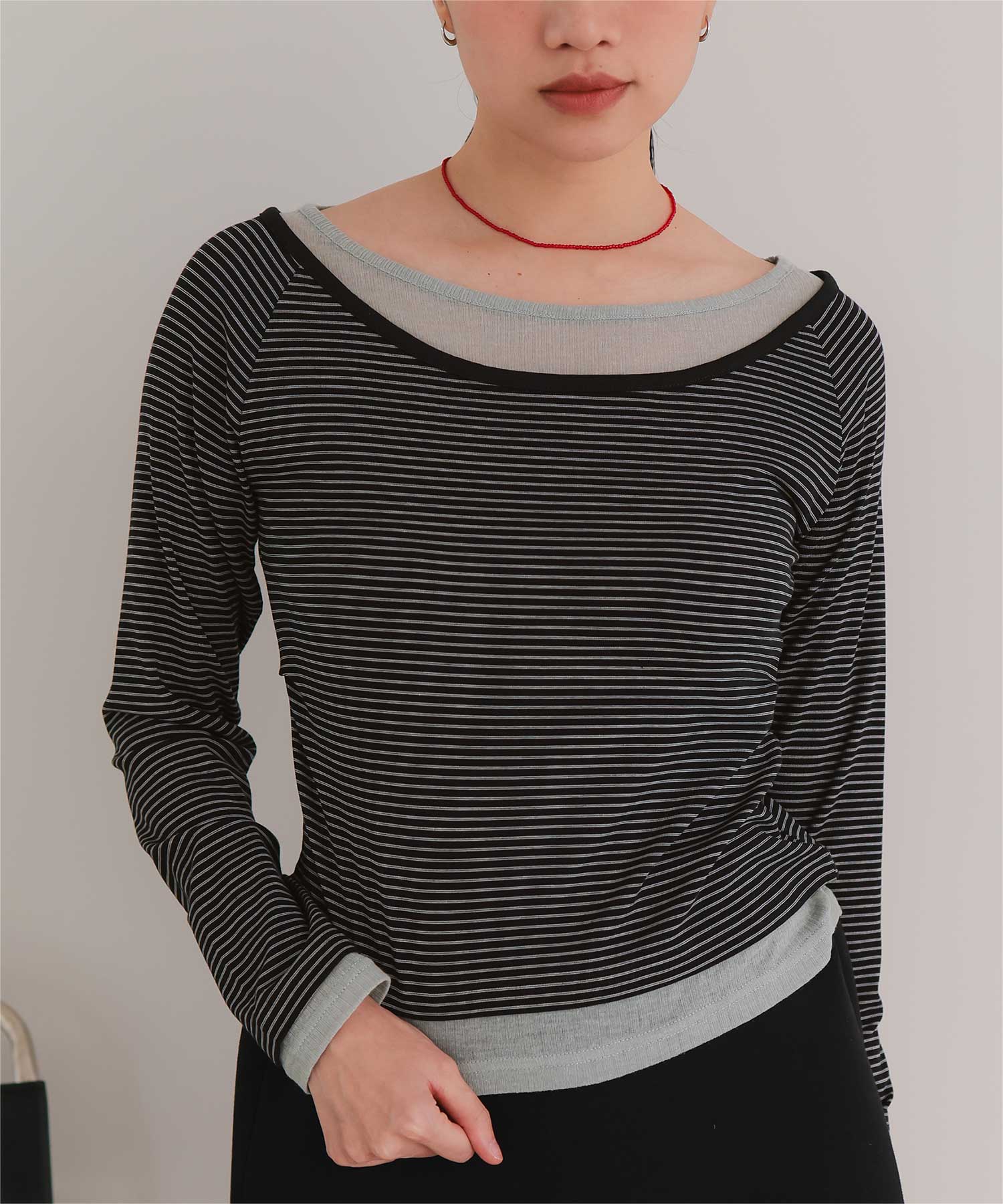 ・重ね着風の配色デザインがポイントで、1枚で決まるレイヤード風トップス